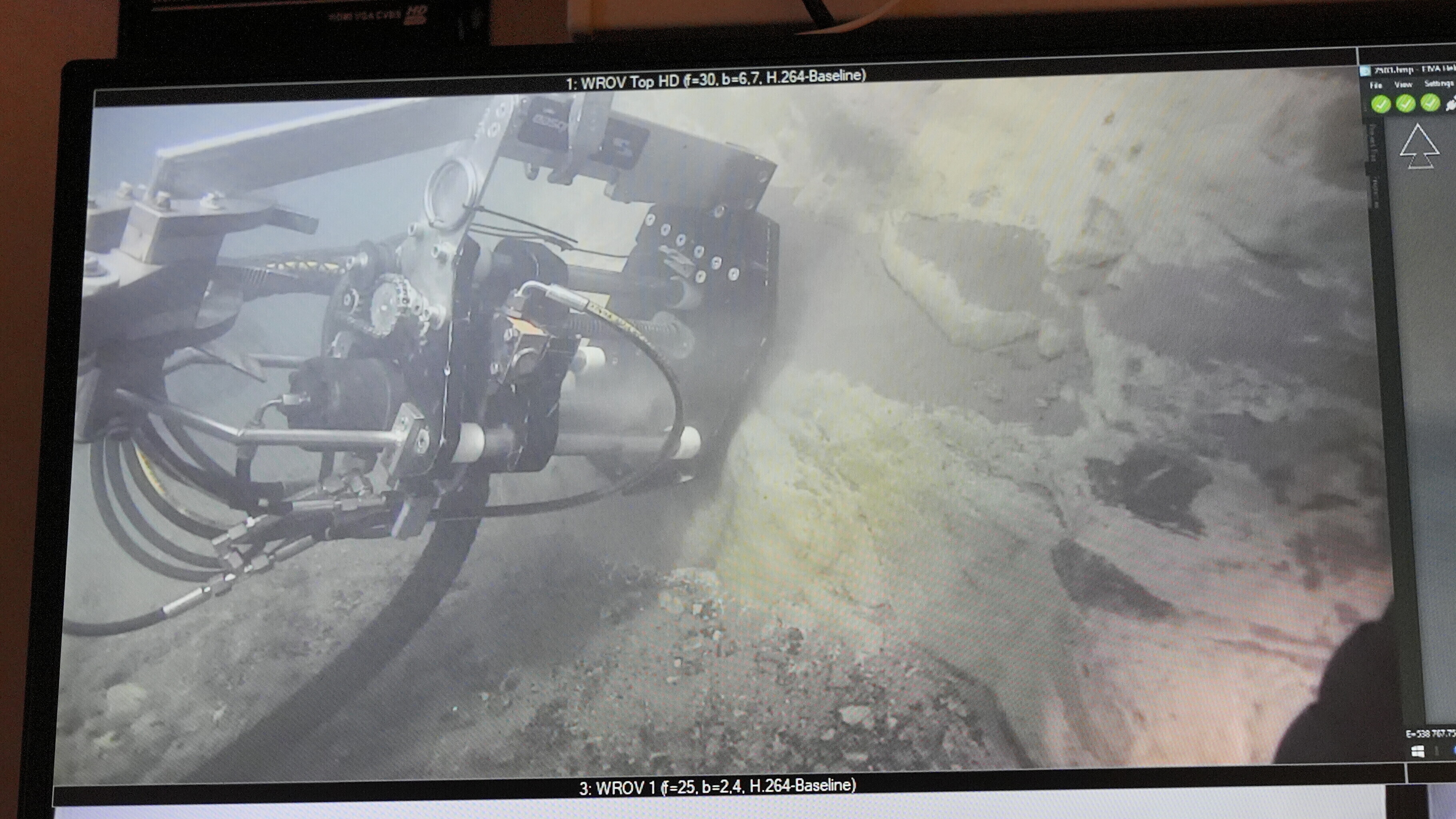 The section of rock raised from the seabed is, the research team believes, most likely granite, and will be examined in the lab.