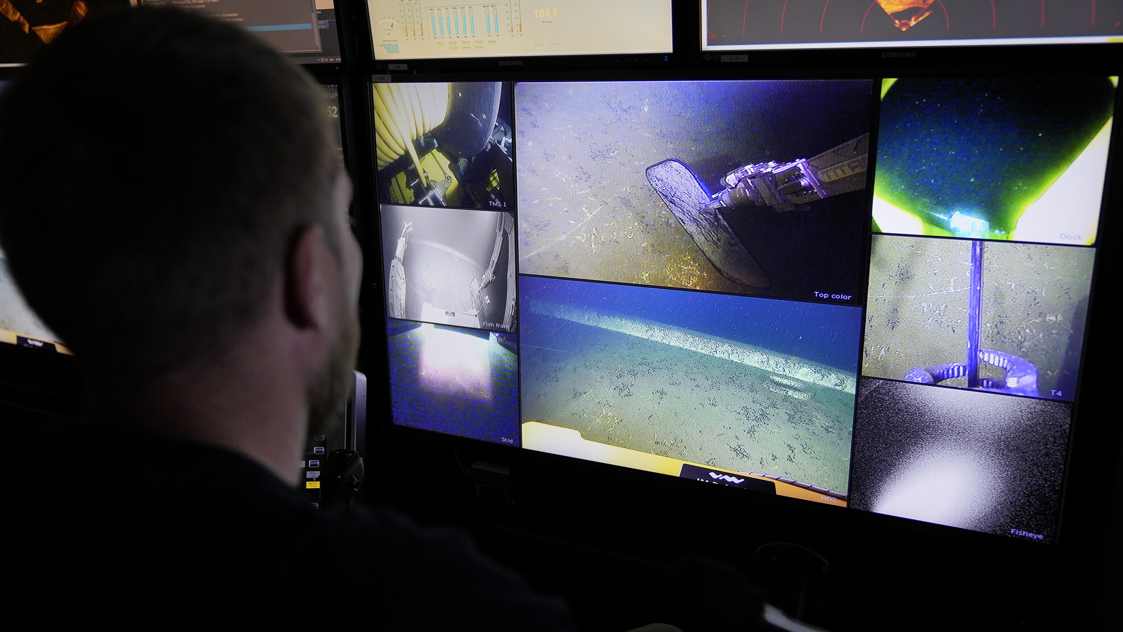 The investigation is Estonian-led and makes use of a dive robot, rather than human divers. Having already obtained bedrock samples and cut out sections of the wreck's hull, as of Sunday, glass from a smaller ferry window, a seal from a larger window, and cabling from the port side of the Estonia have been brought to the surface for investigation (see gallery).