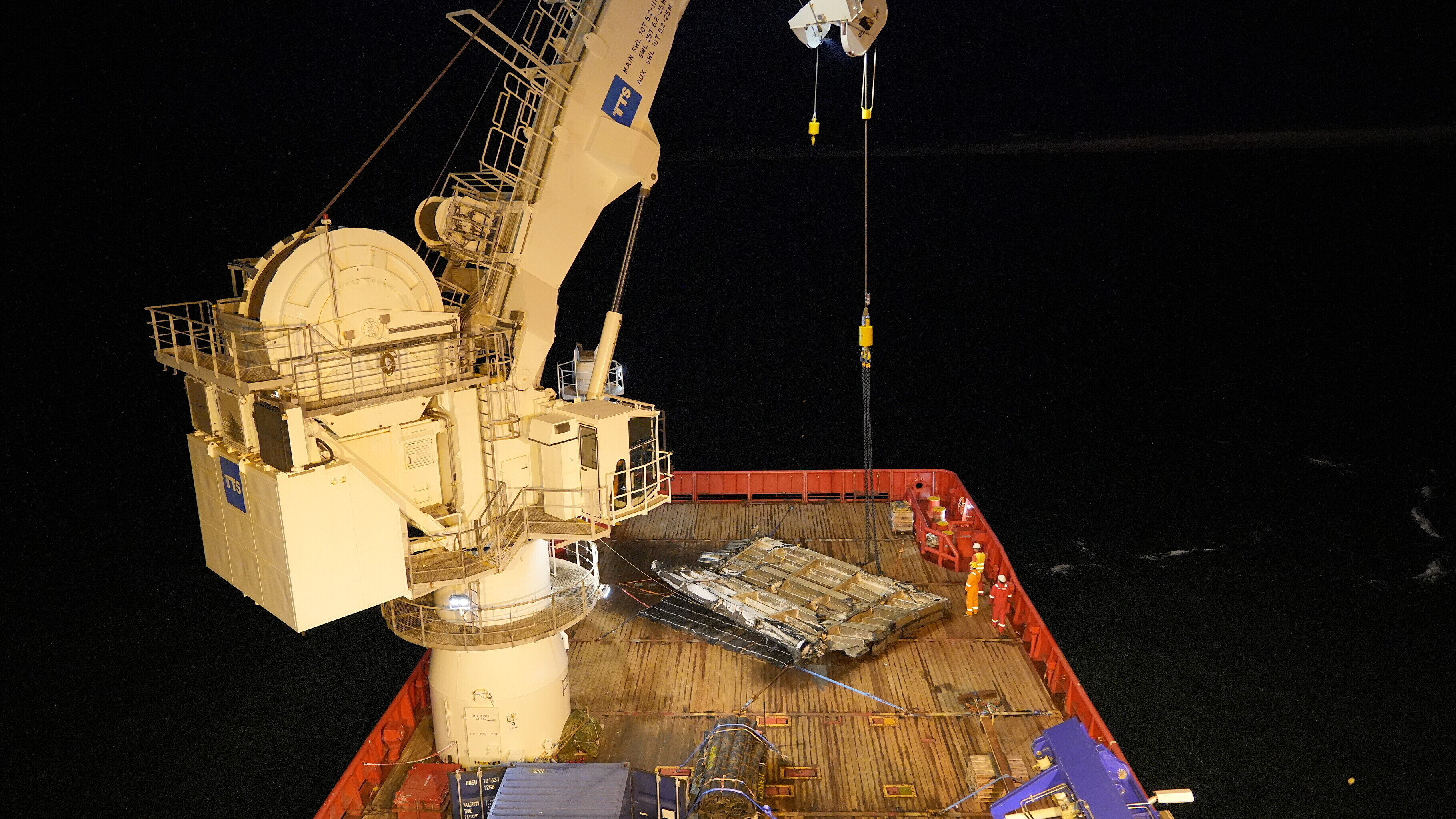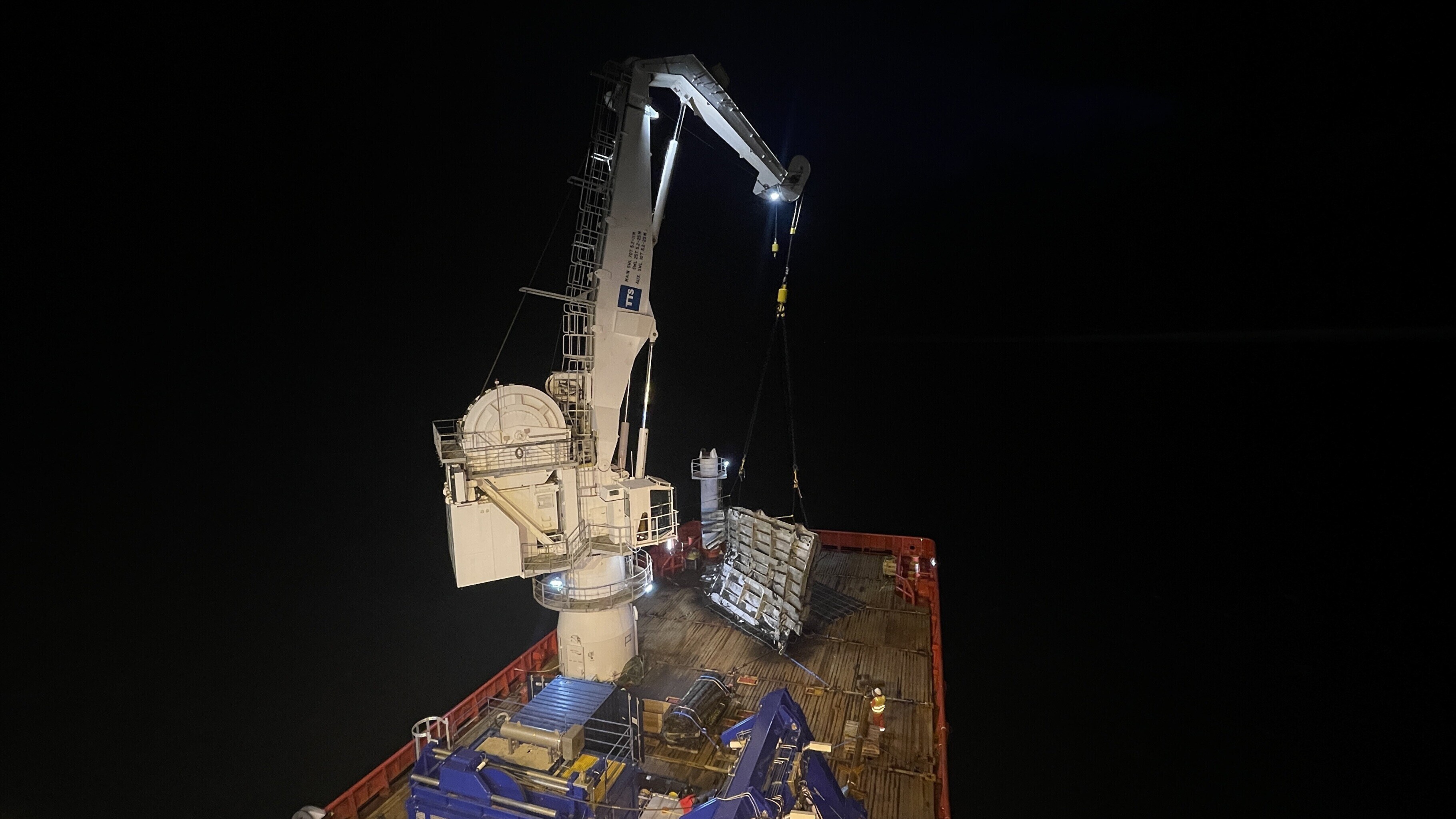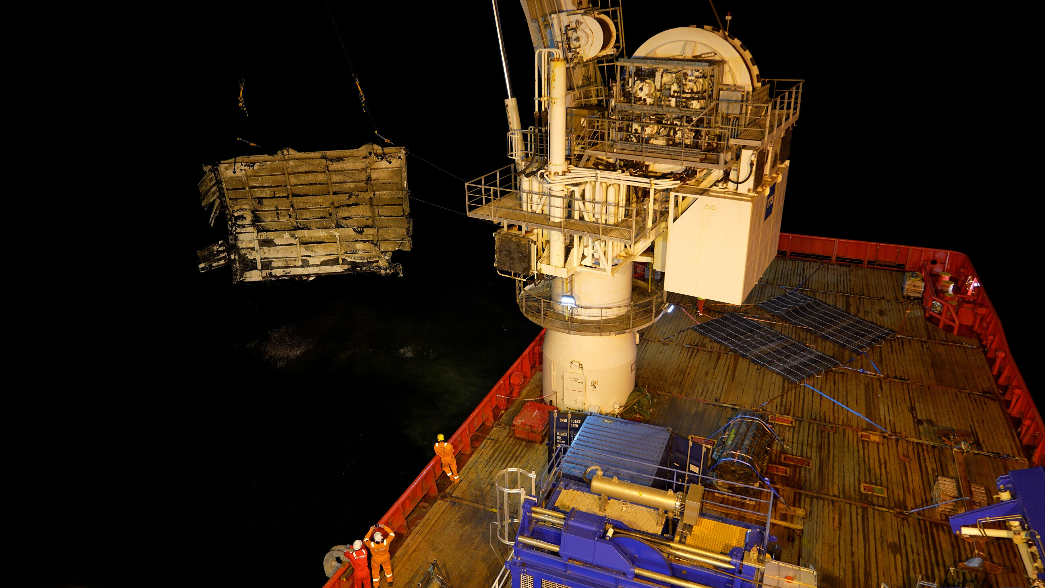 The work went on round-the-clock, in shifts, starting from the moment the Viking Reach arrived at the wreck site, shortly after midnight last Thursday.