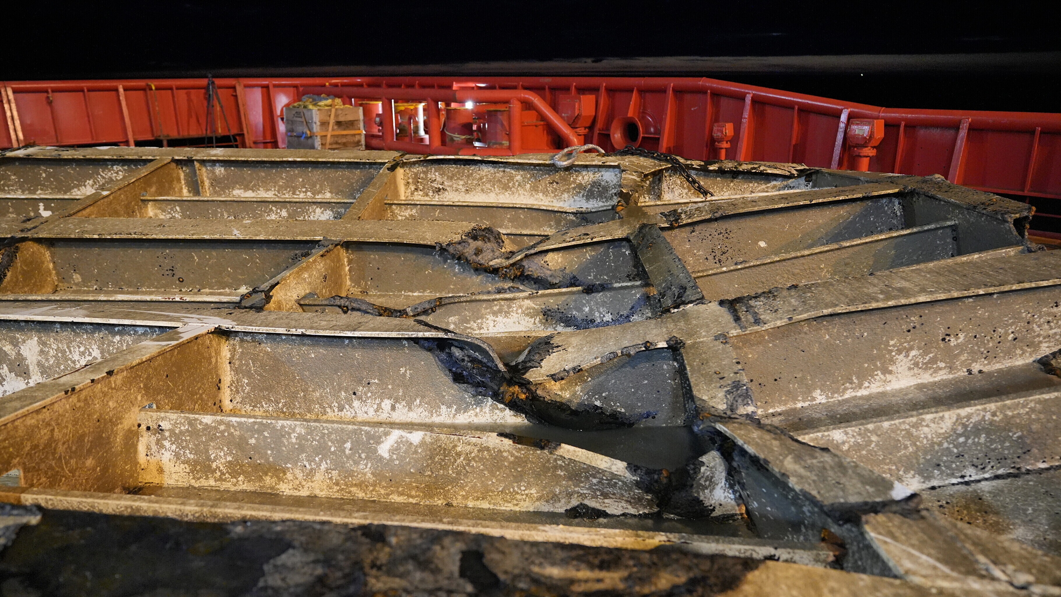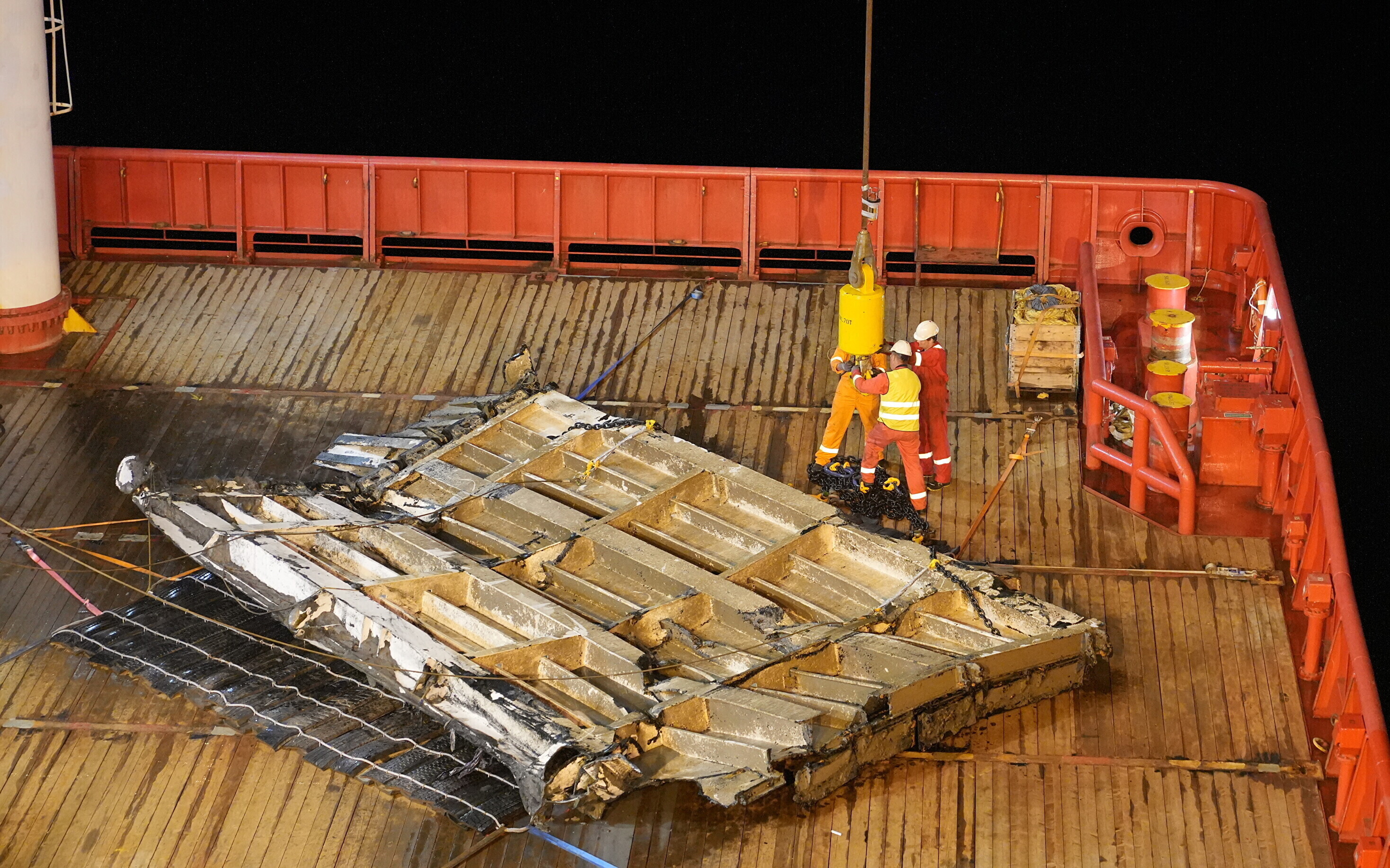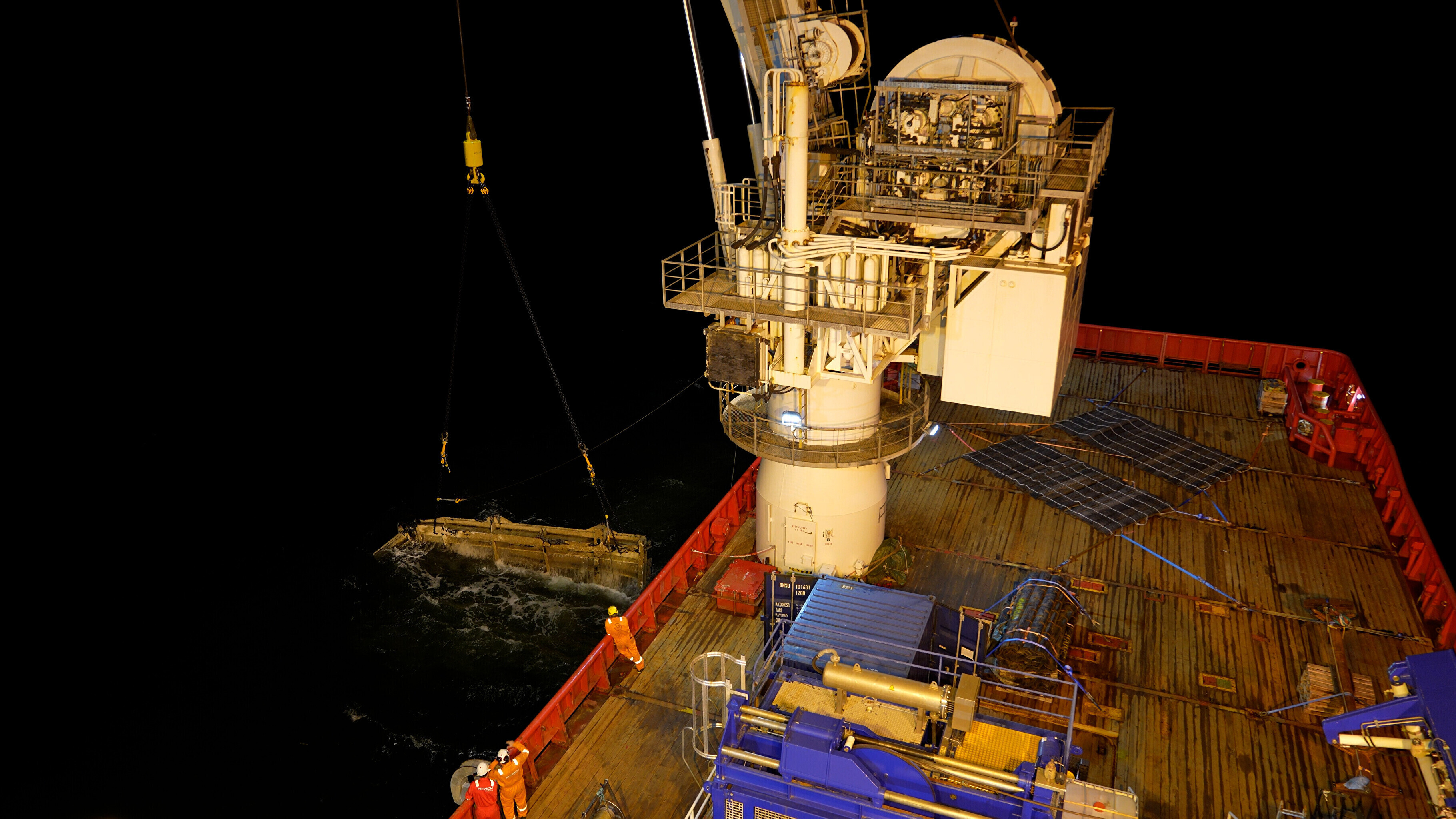 The work went on round-the-clock, in shifts, starting from the moment the Viking Reach arrived at the wreck site, shortly after midnight last Thursday.