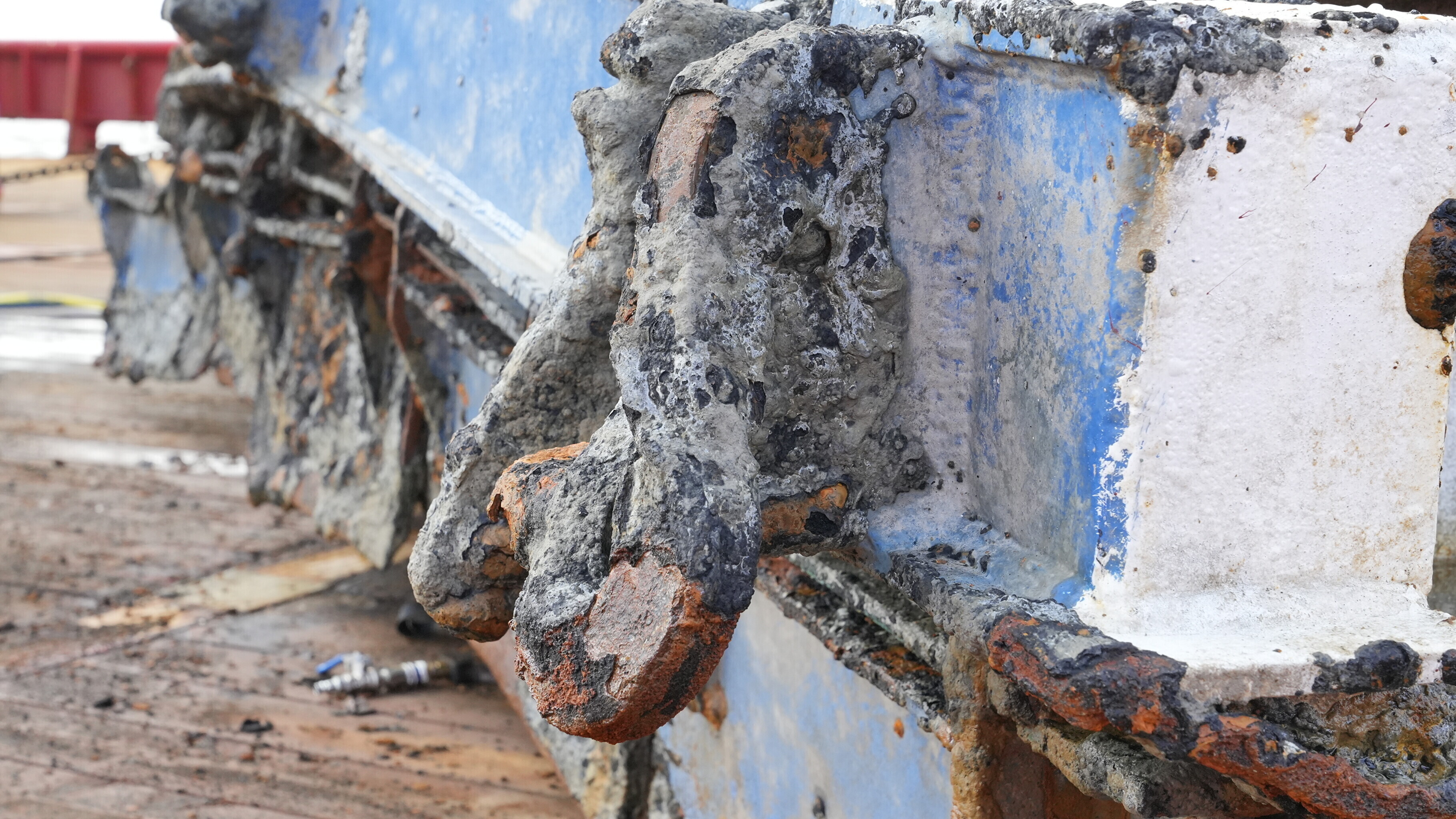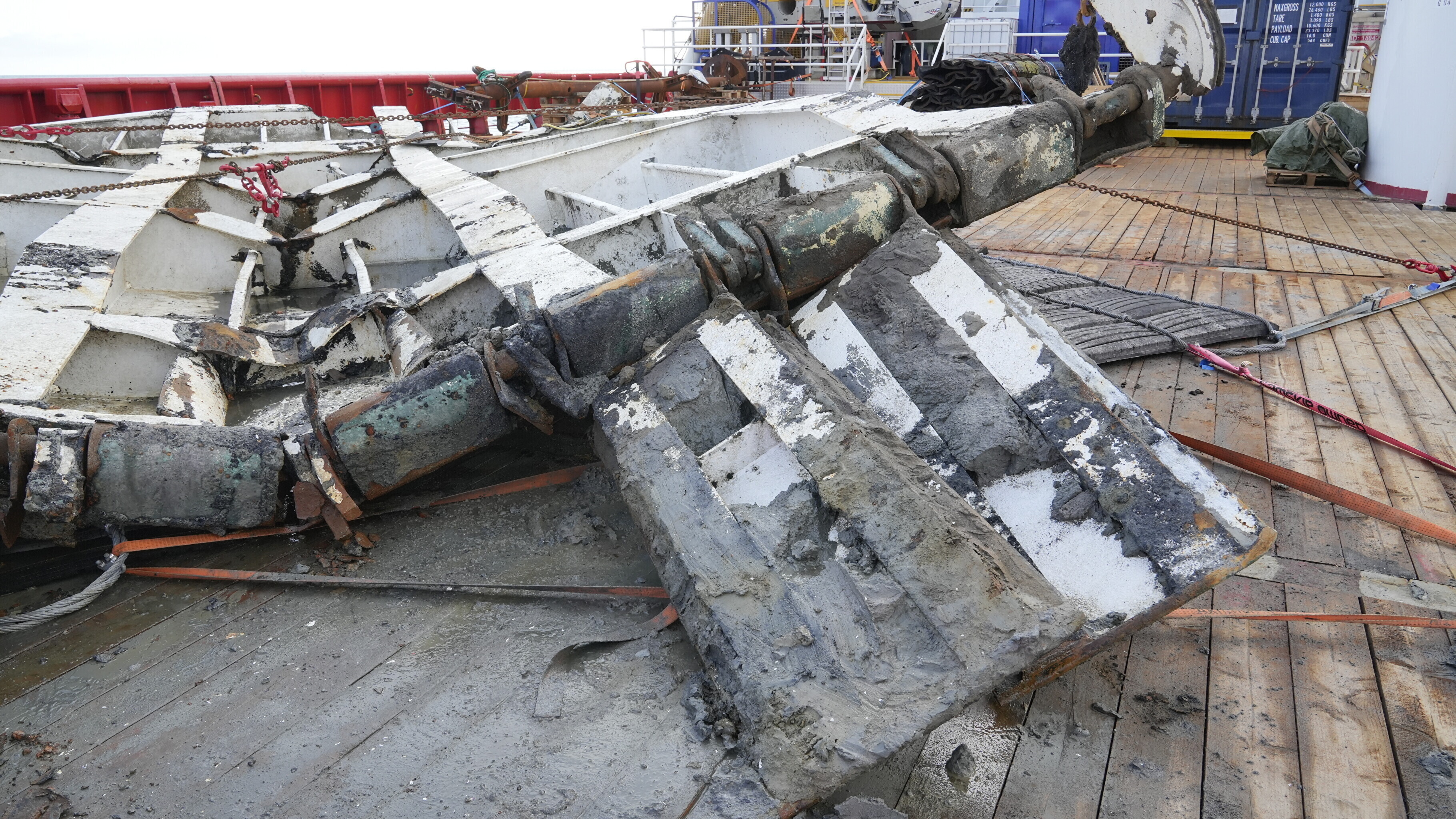 During the course of the past few days' work, bedrock and fouling samples were acquired from near a significant hole in the starboard side of the hull.