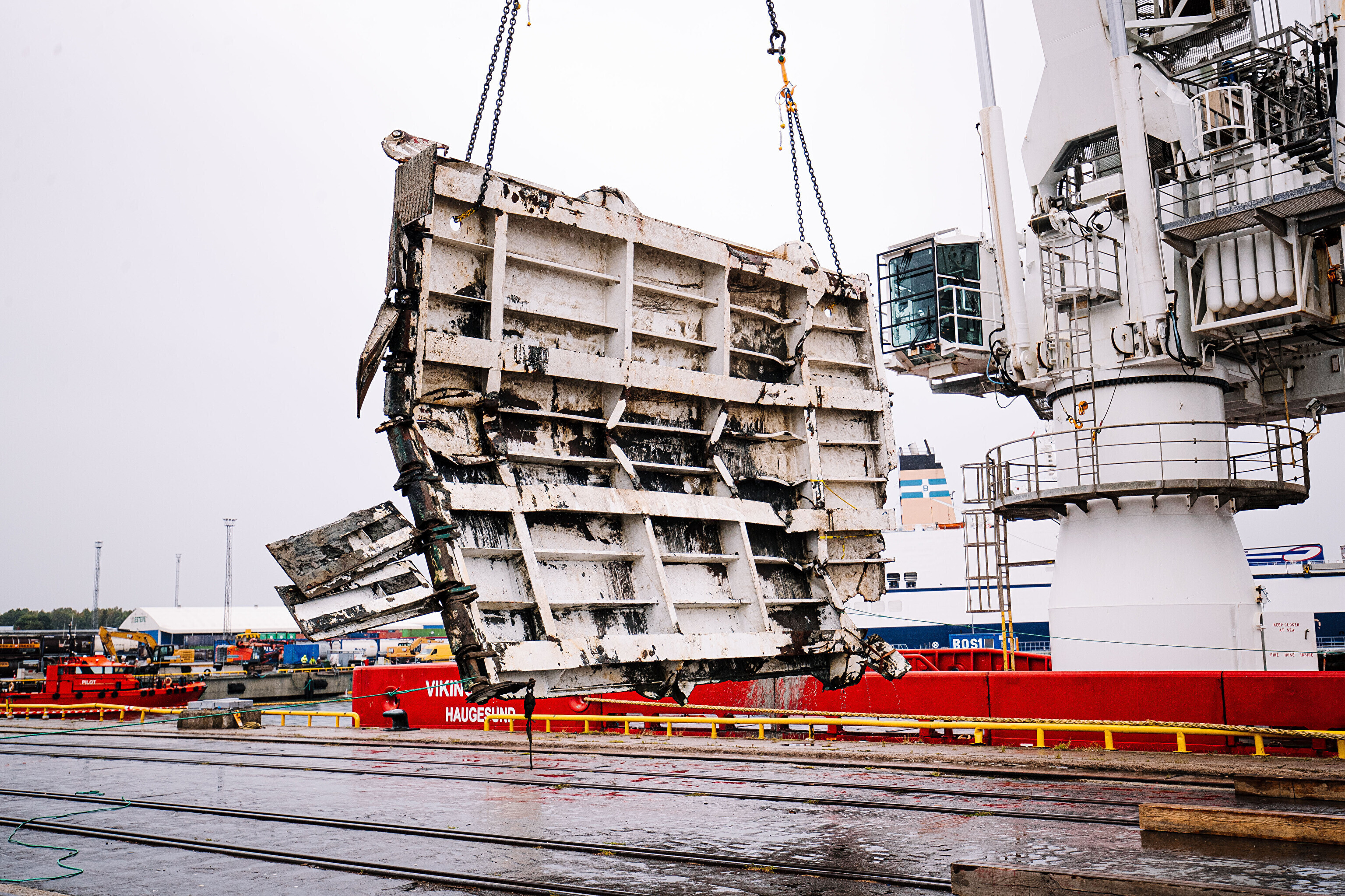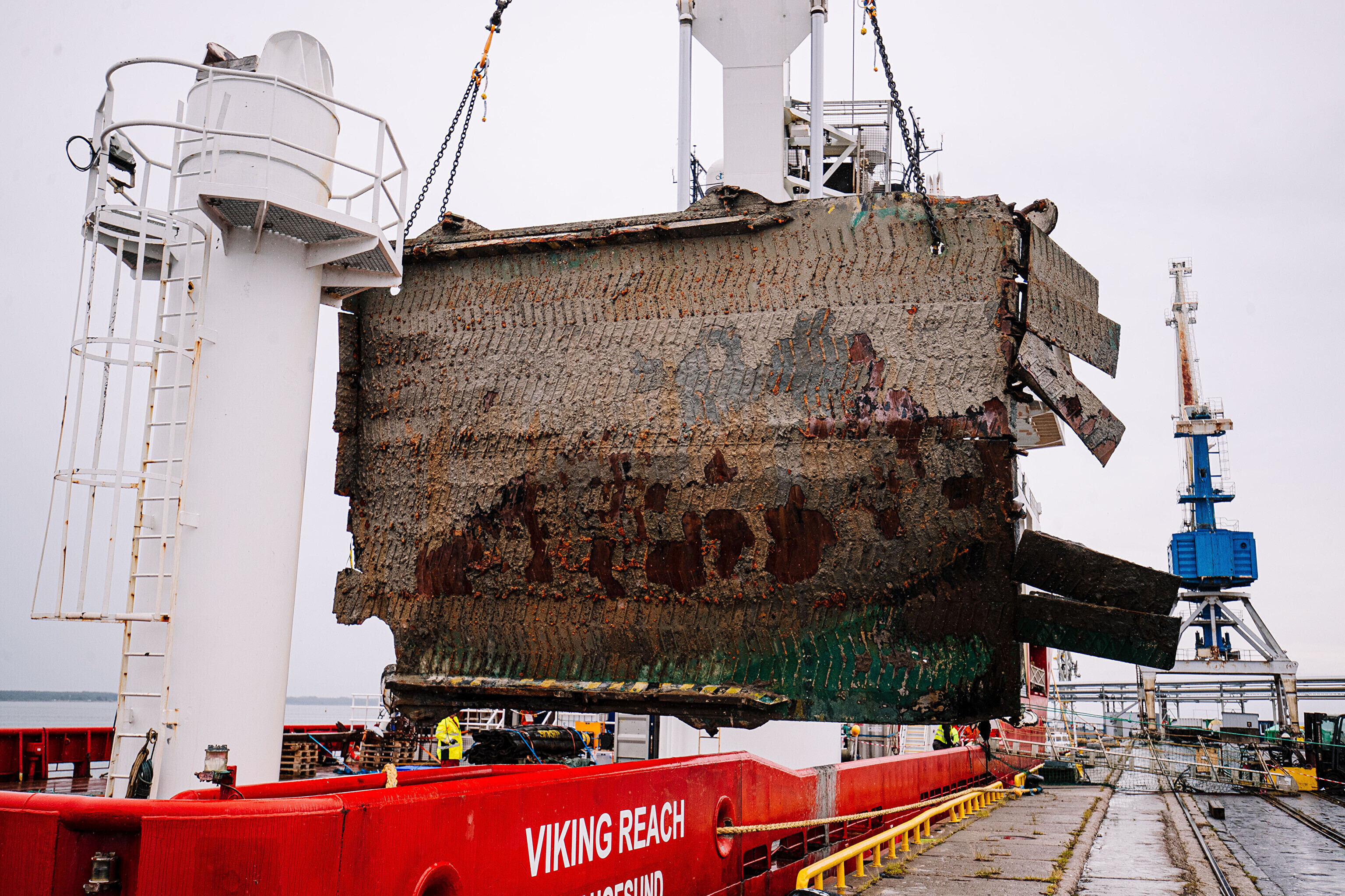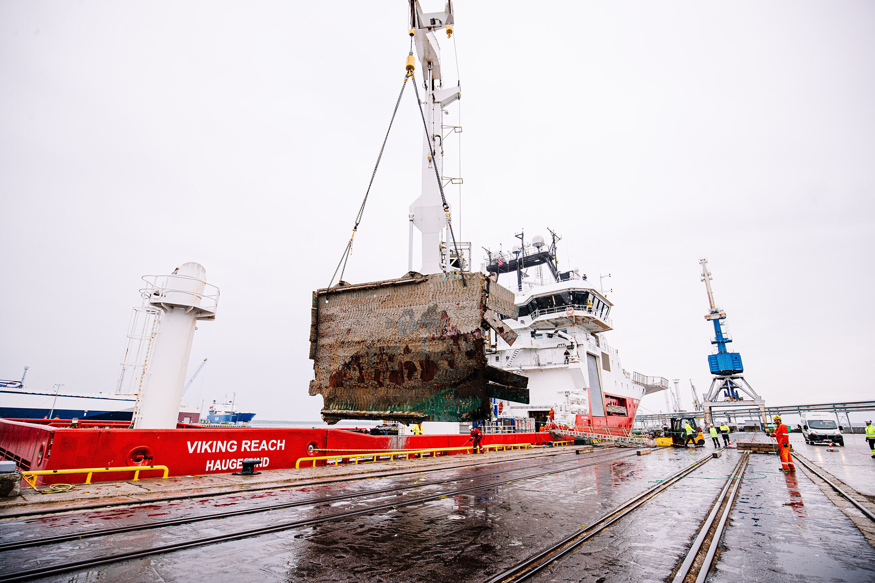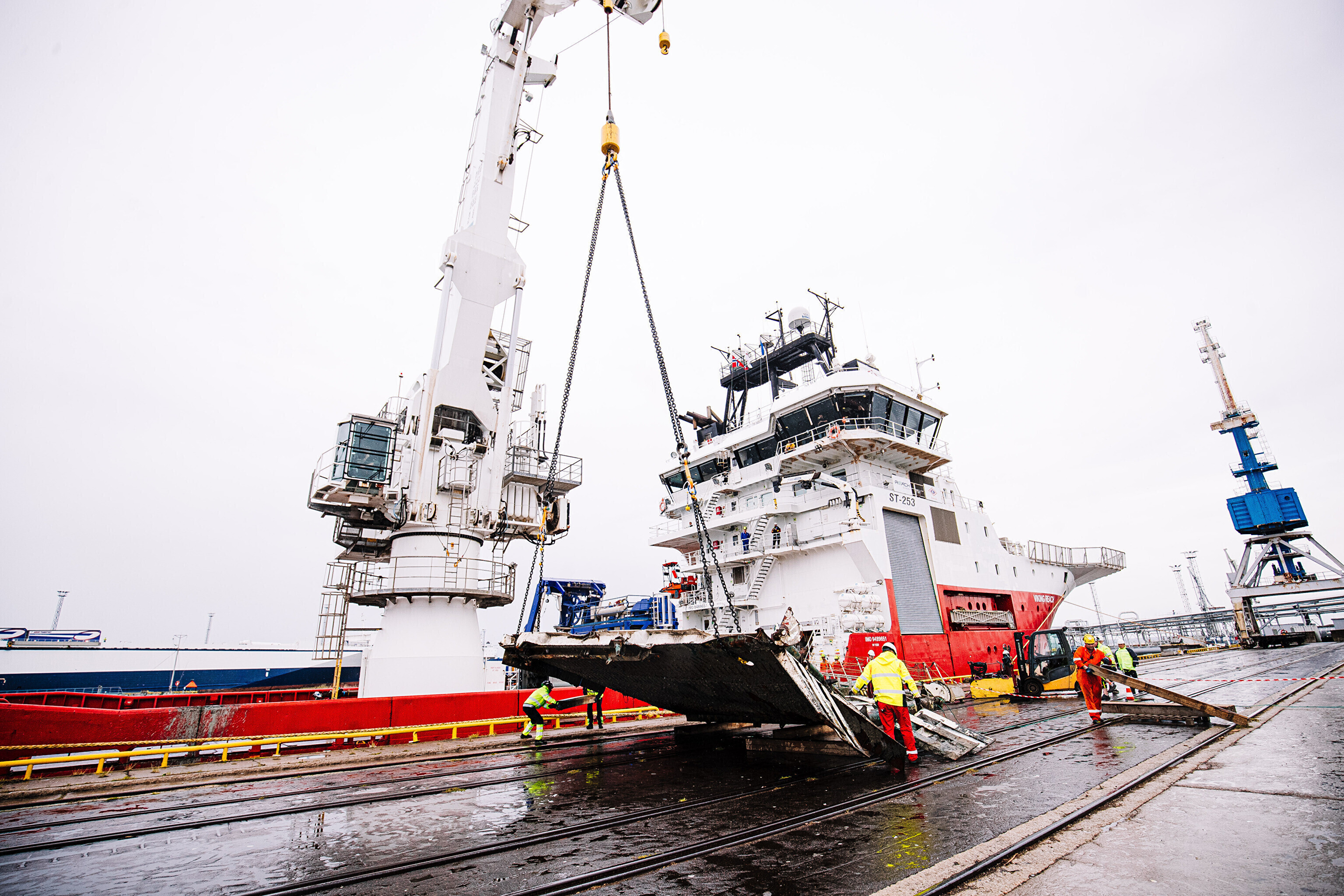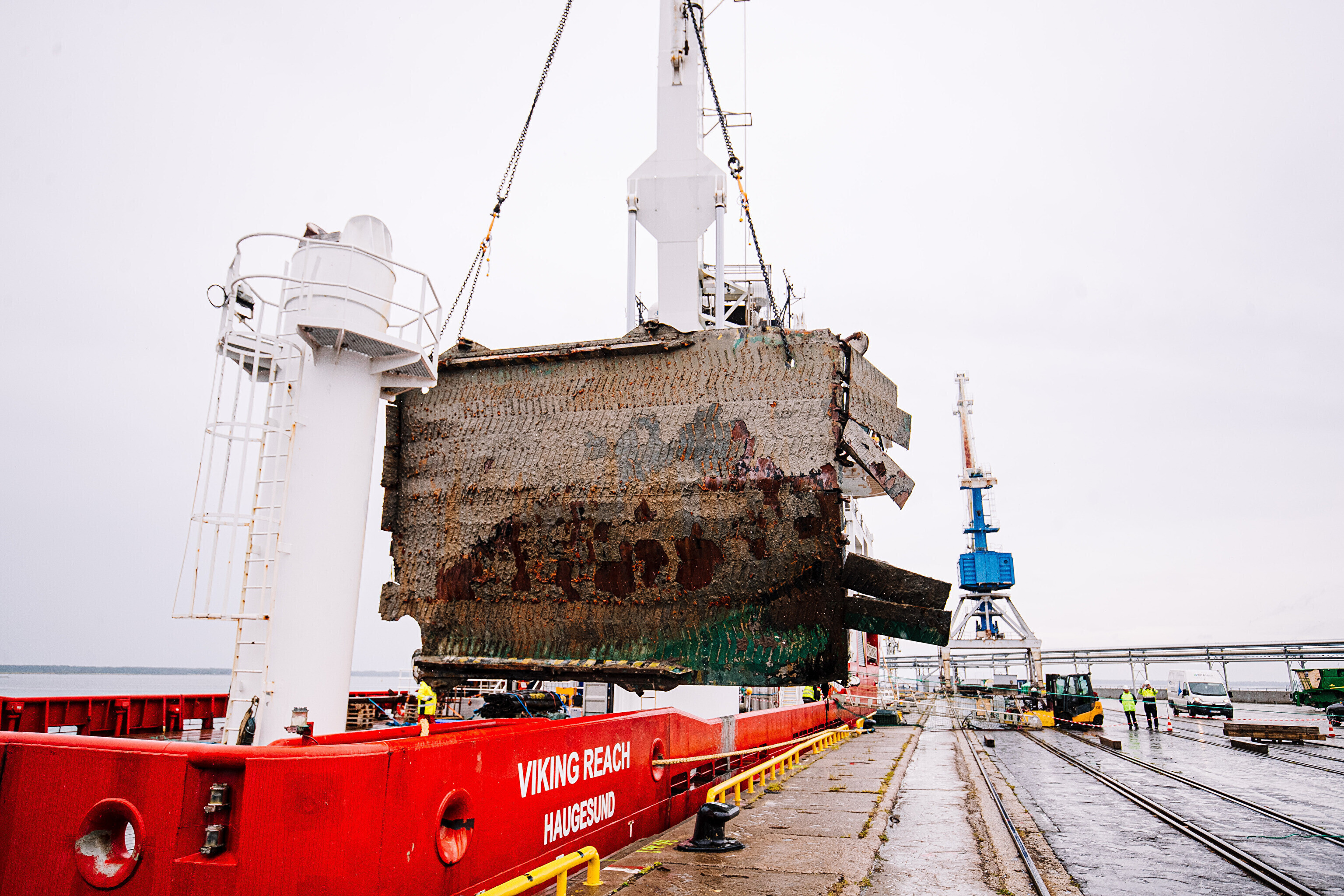 The bow ramp arrived at Paldiski South Harbor on Tuesday after being raised from the bottom of the seabed. This wraps up investigations taking place at the wreck site in the Baltic Sea, Tuesday's "Aktuaalne kaamera" reported.