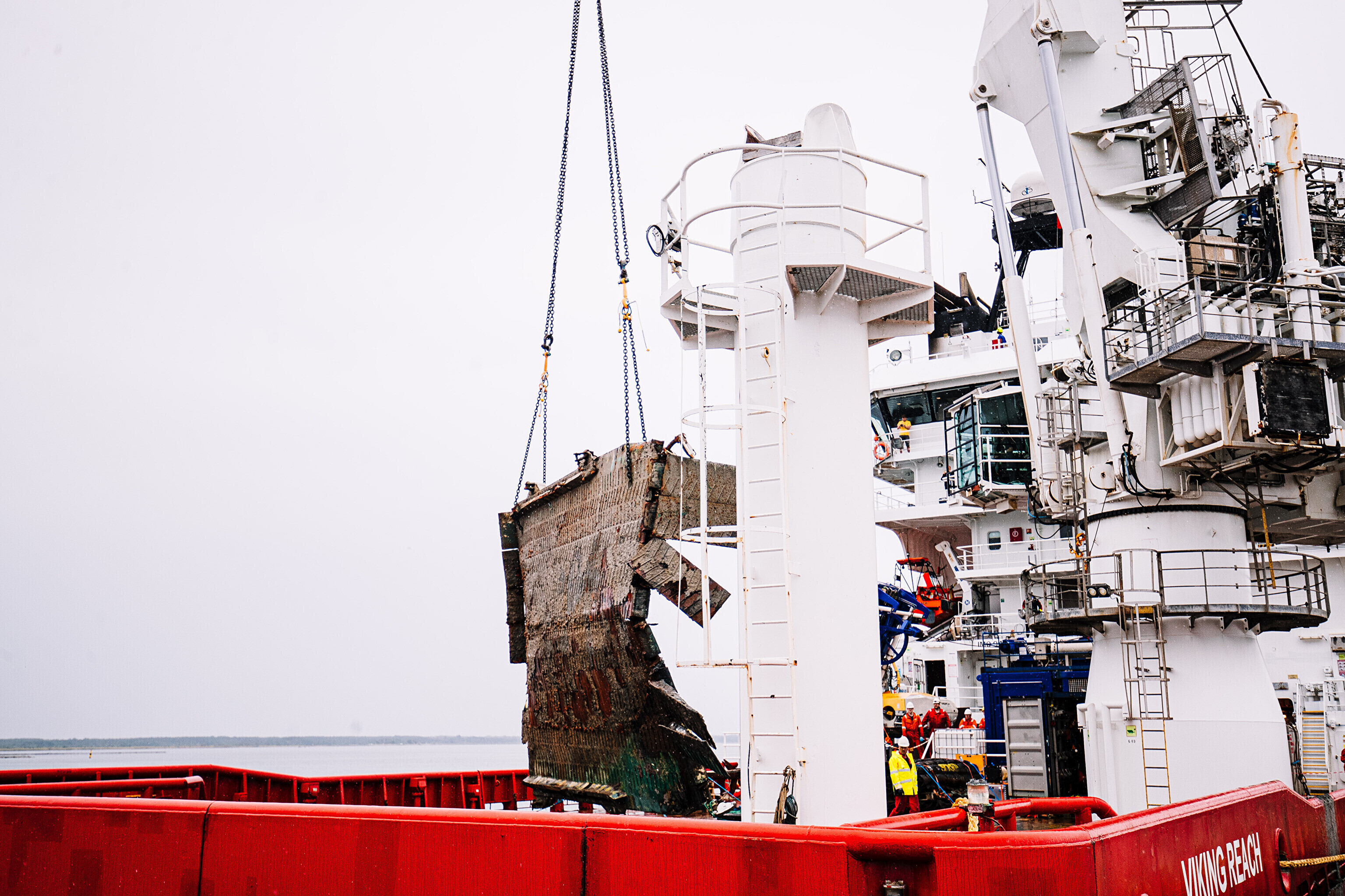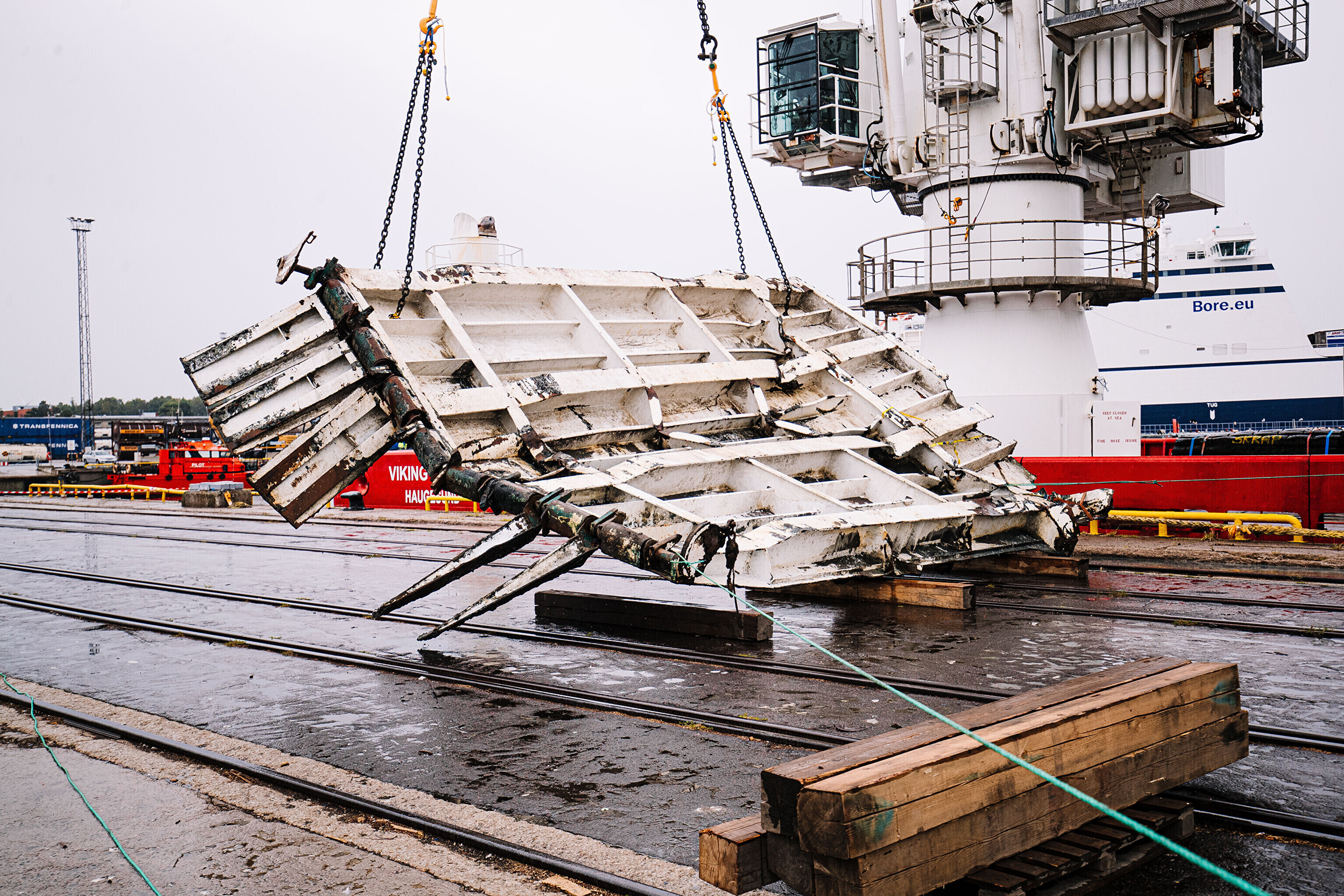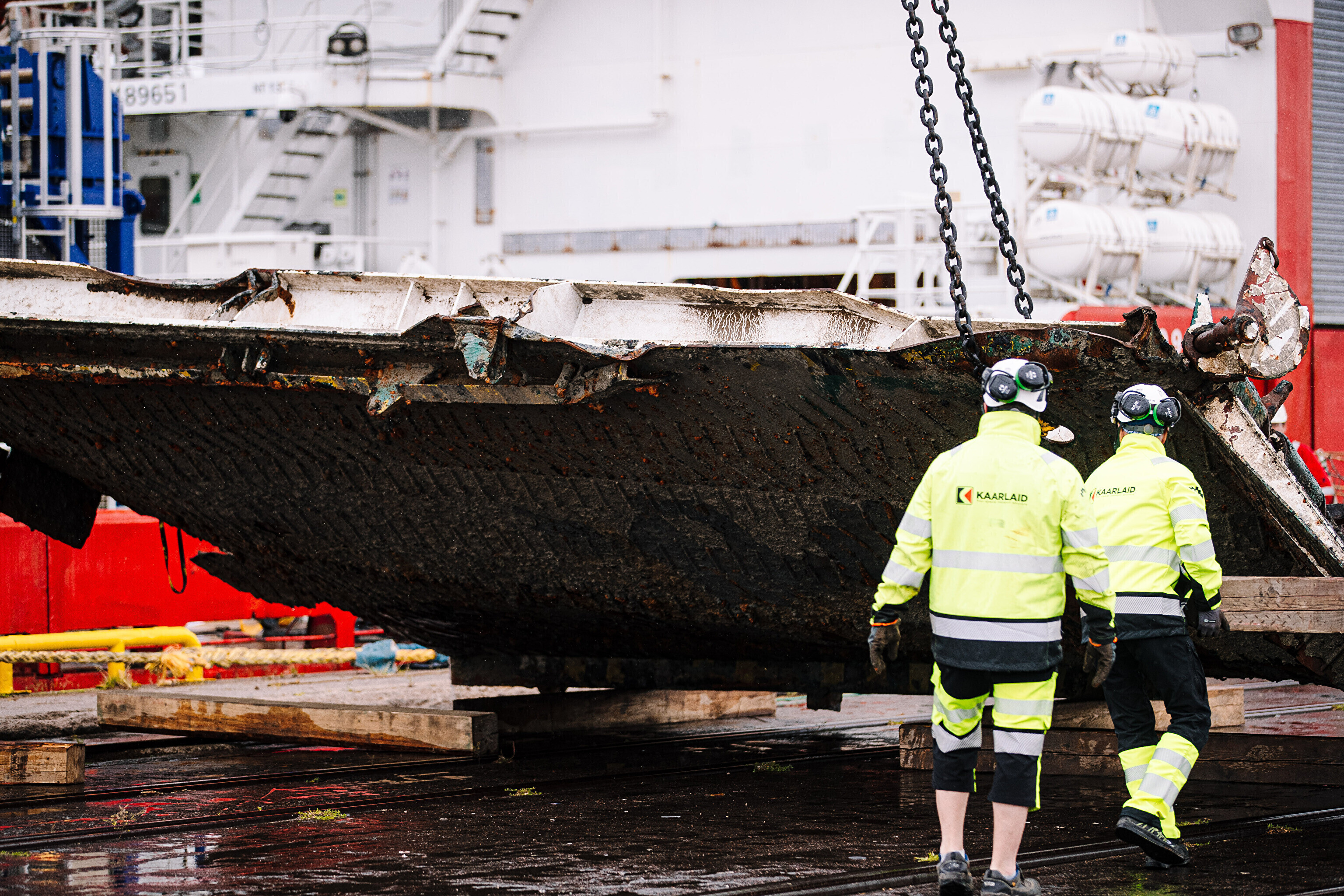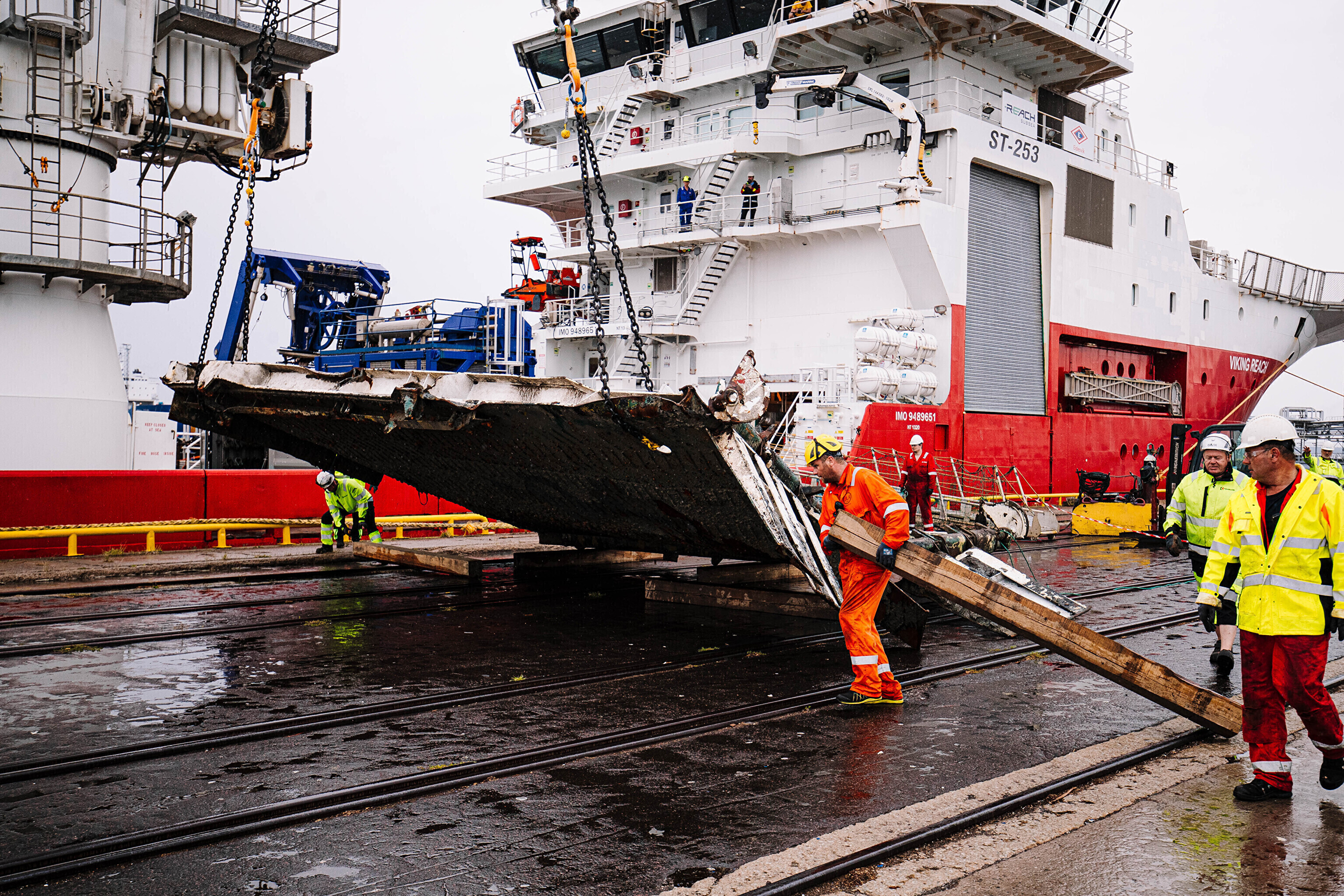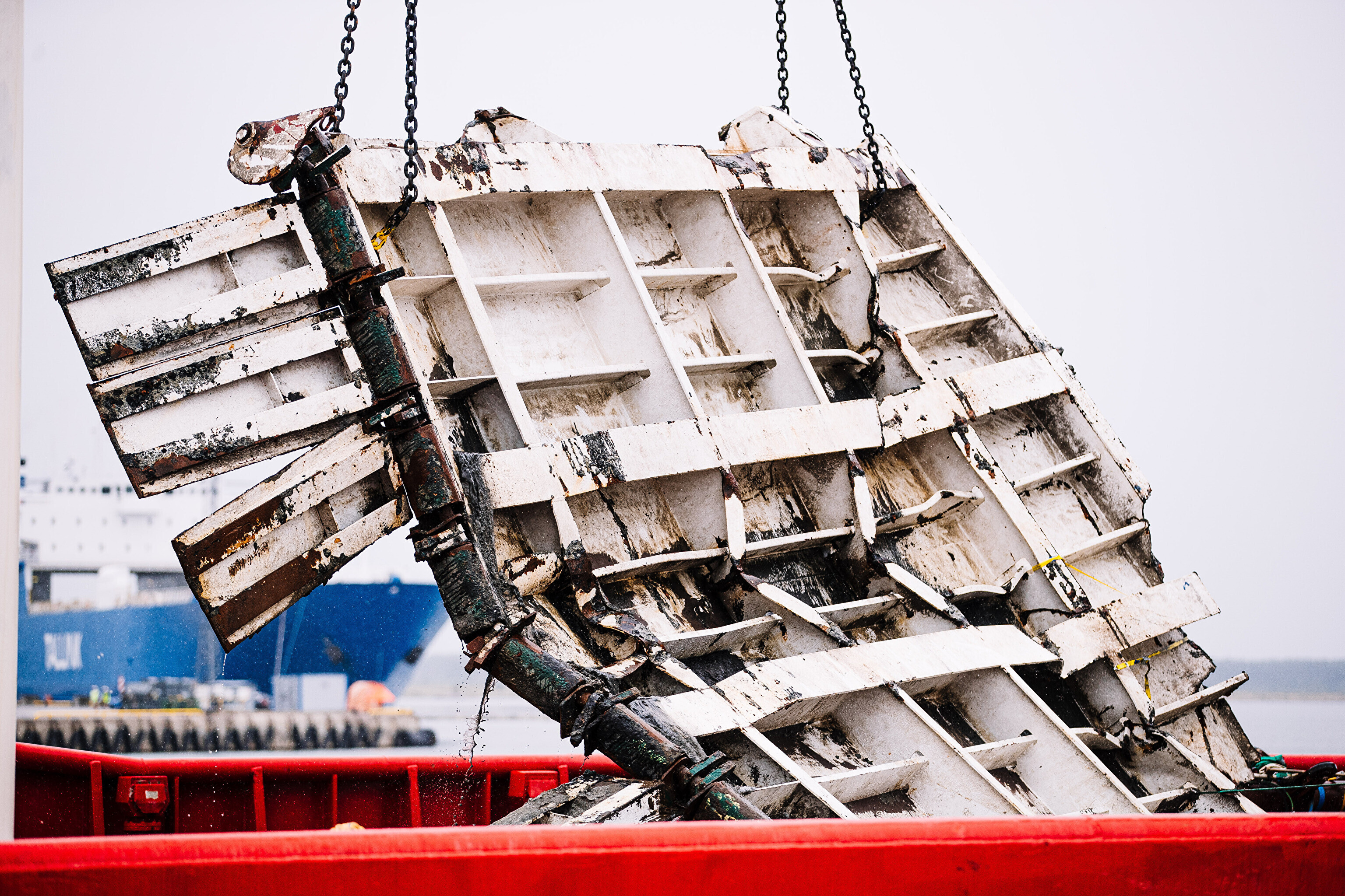 The bow ramp arrived at Paldiski South Harbor on Tuesday after being raised from the bottom of the seabed. This wraps up investigations taking place at the wreck site in the Baltic Sea, Tuesday's "Aktuaalne kaamera" reported.