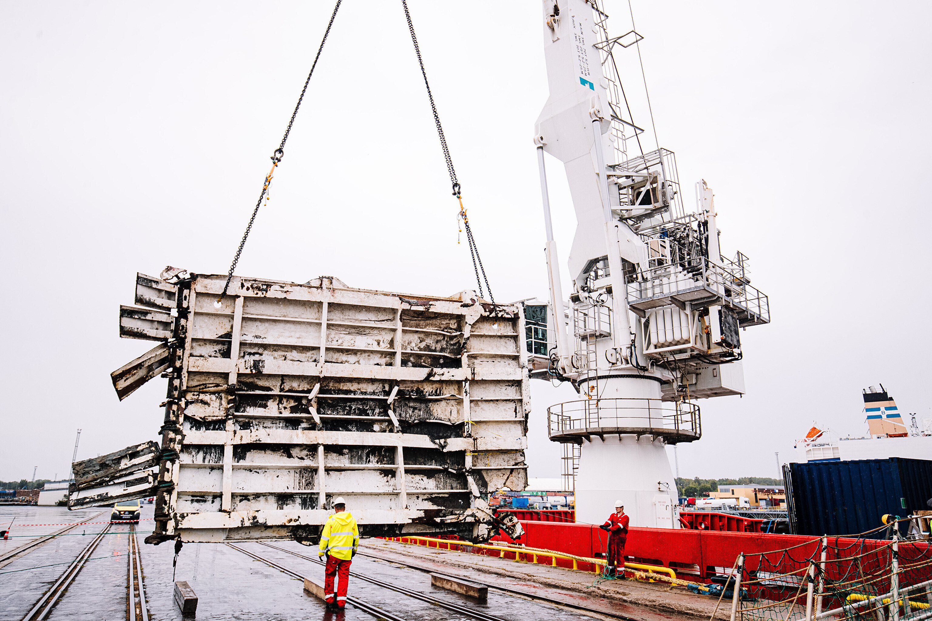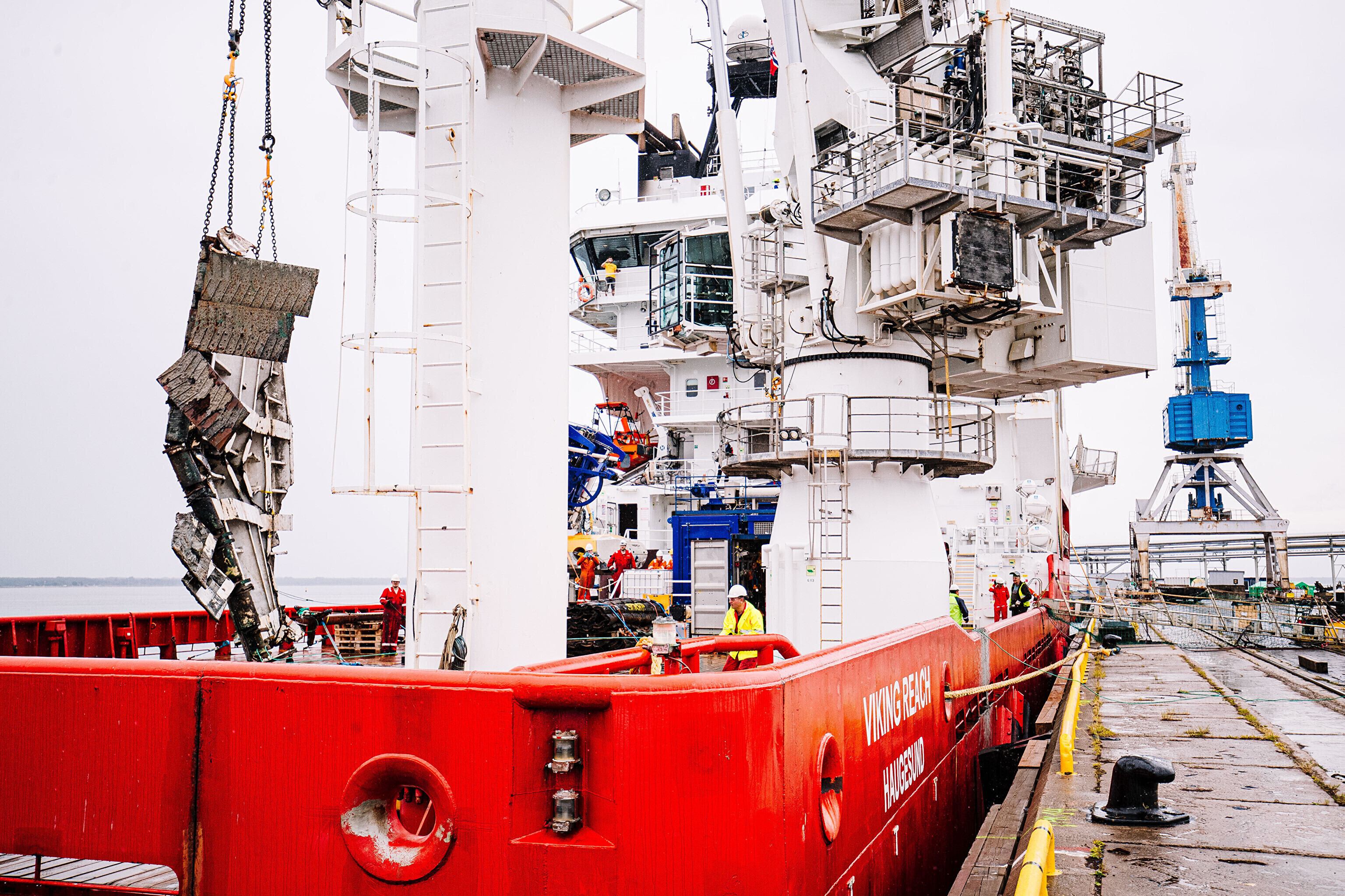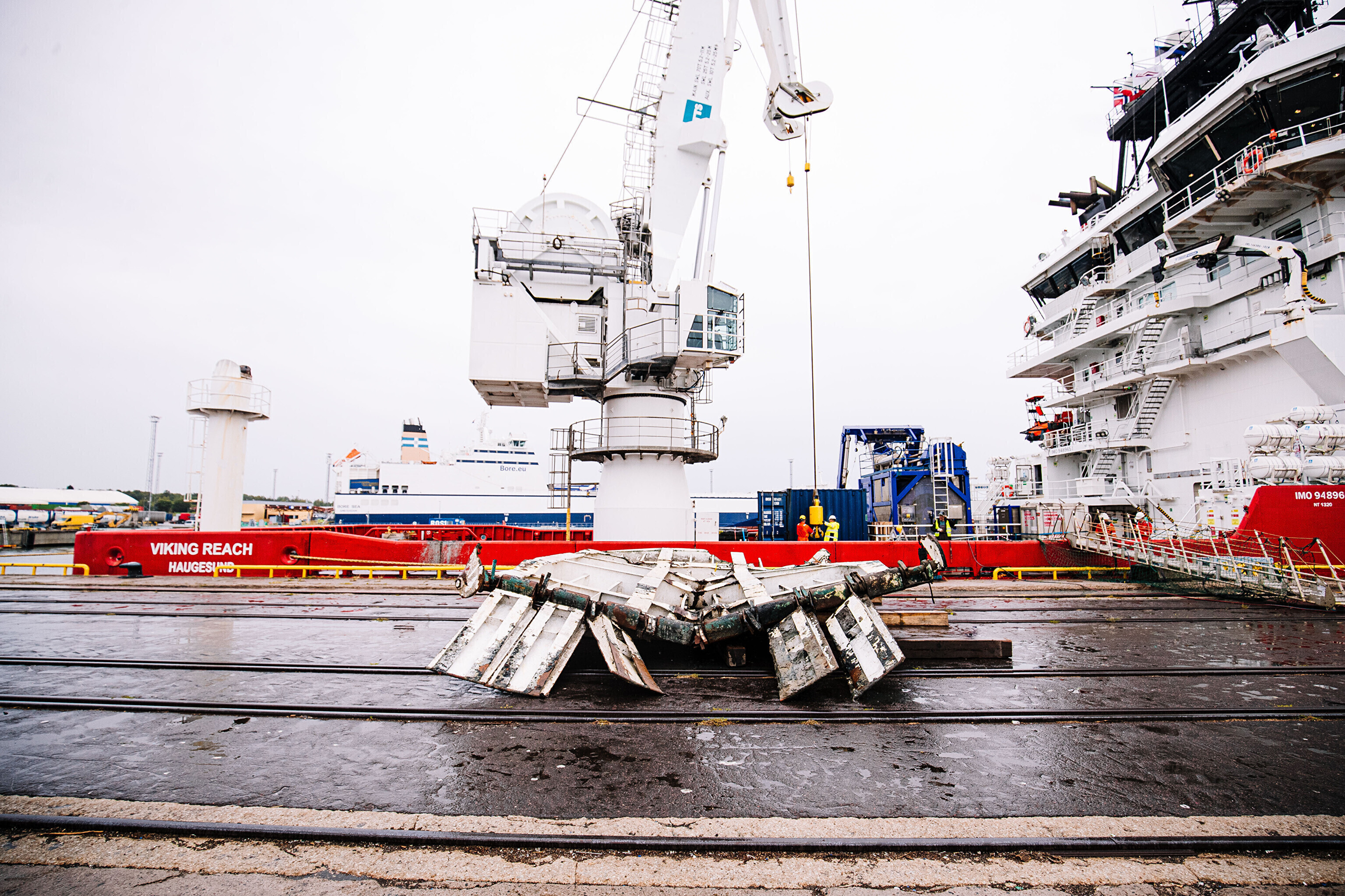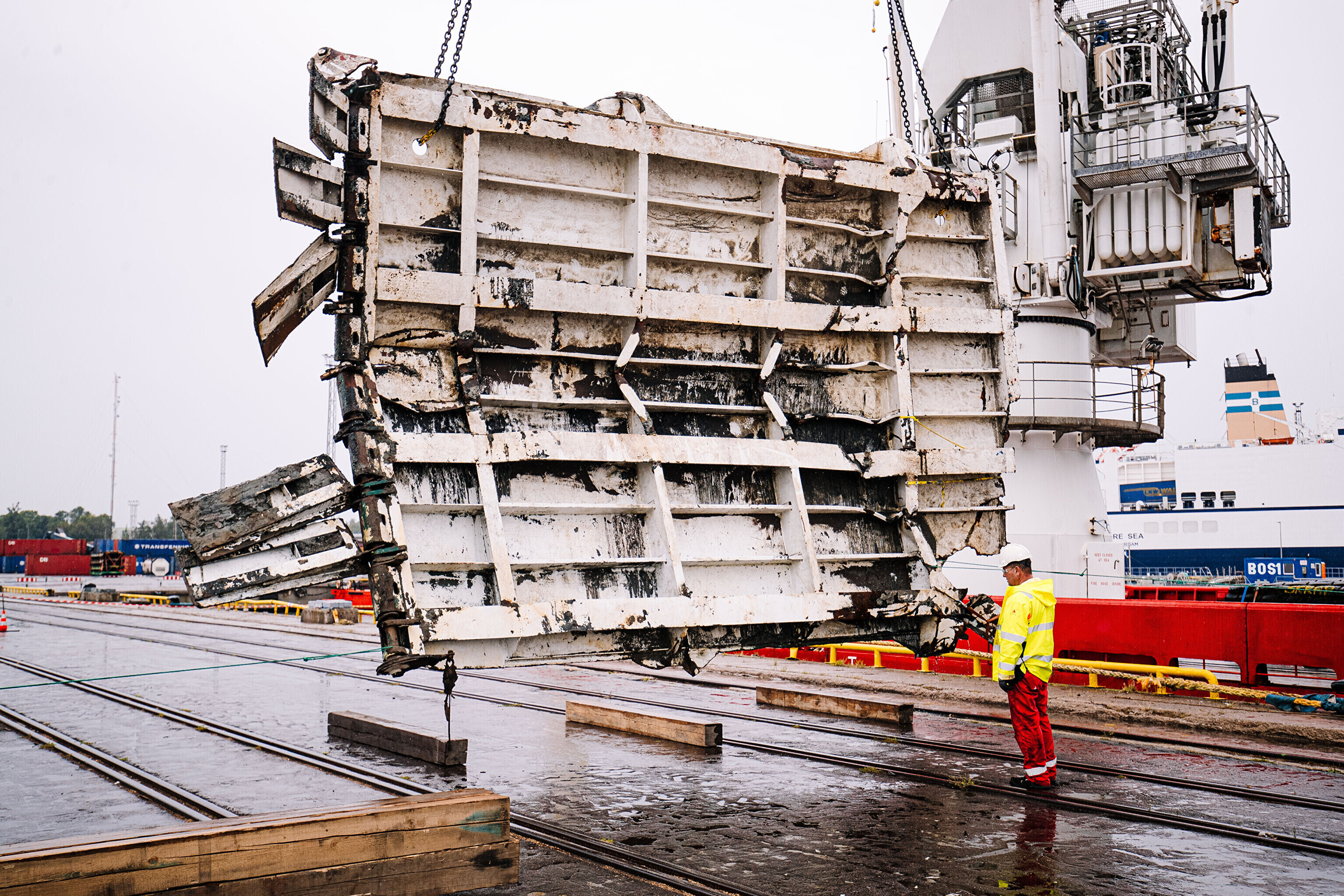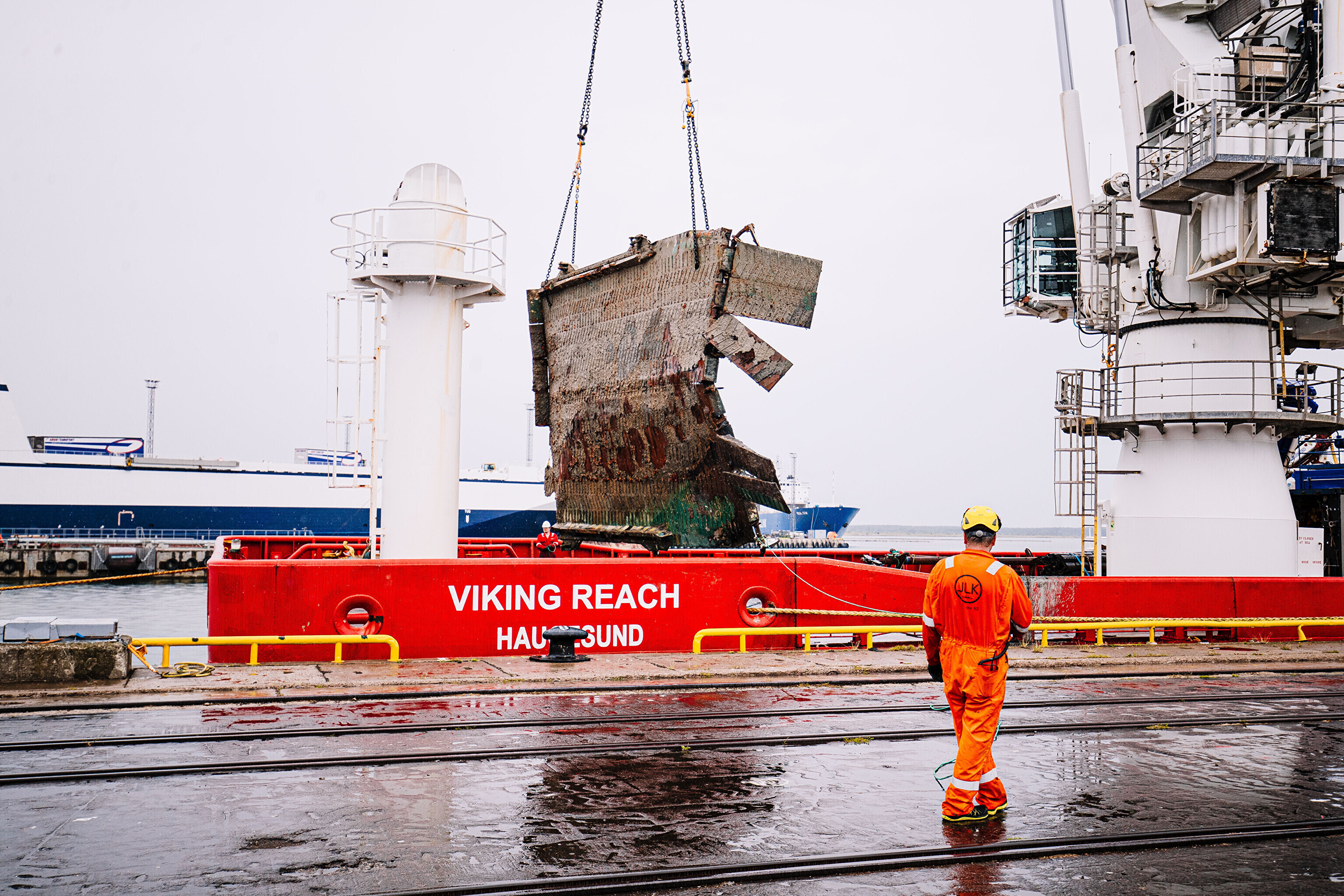 The bow ramp arrived at Paldiski South Harbor on Tuesday after being raised from the bottom of the seabed. This wraps up investigations taking place at the wreck site in the Baltic Sea, Tuesday's "Aktuaalne kaamera" reported.