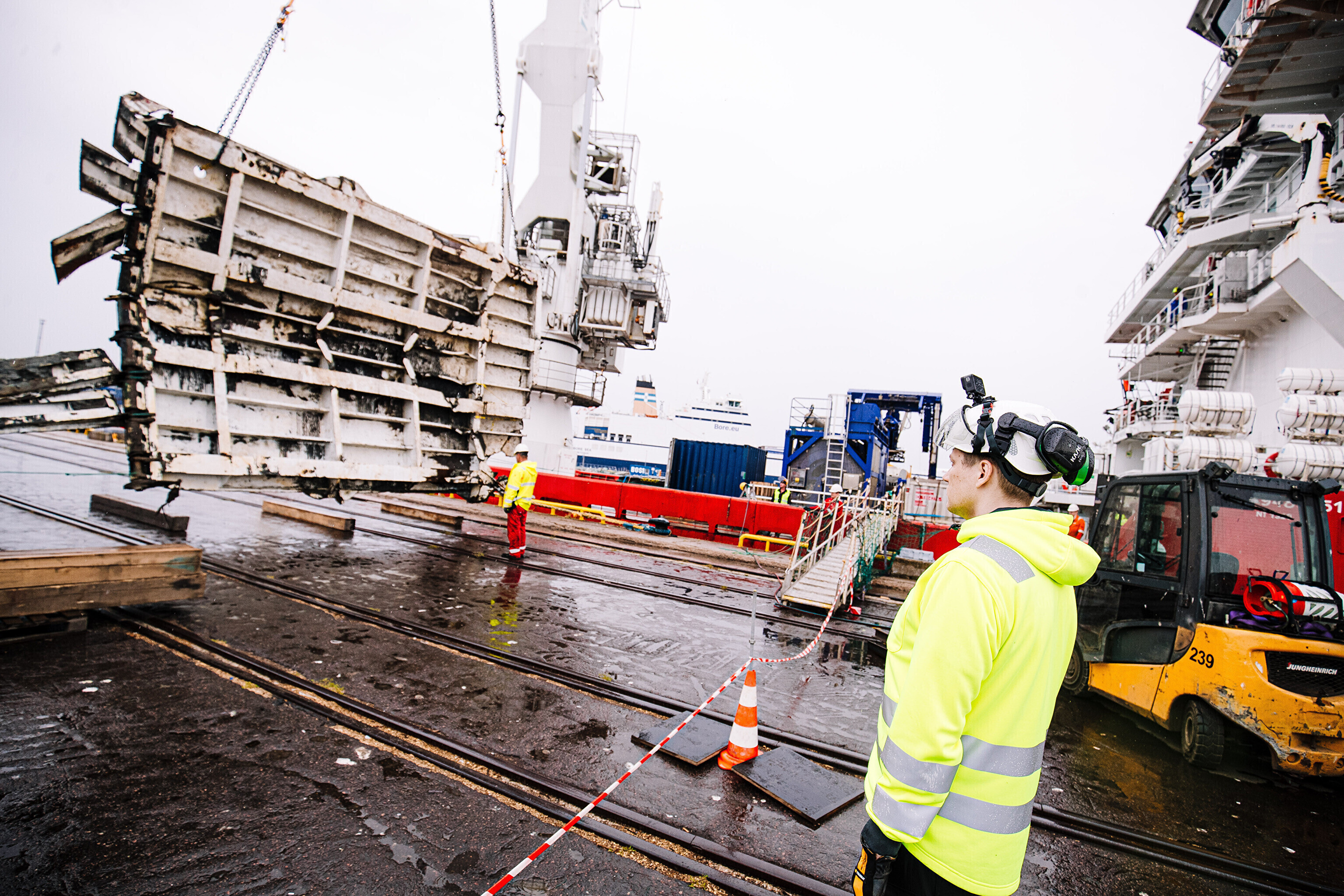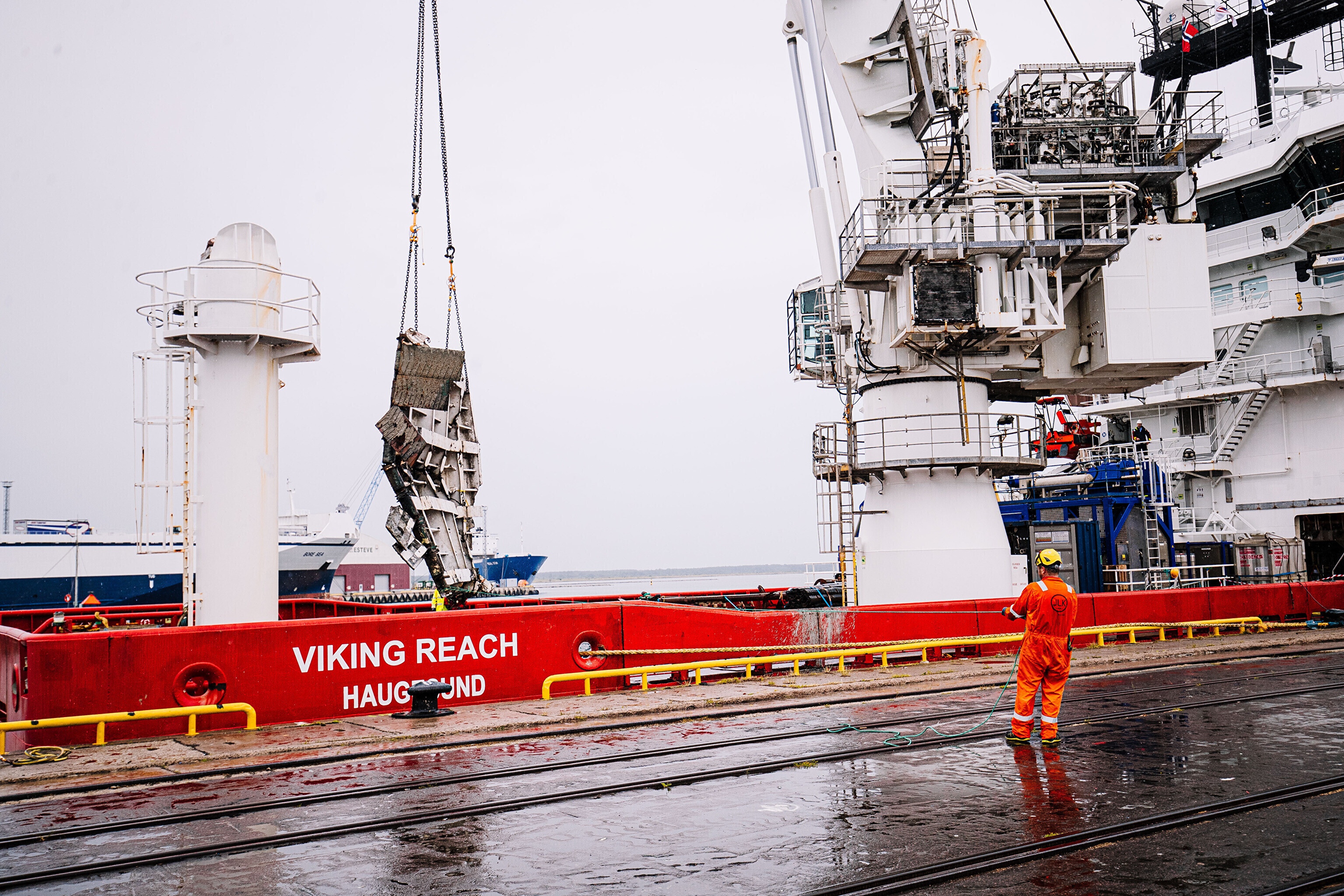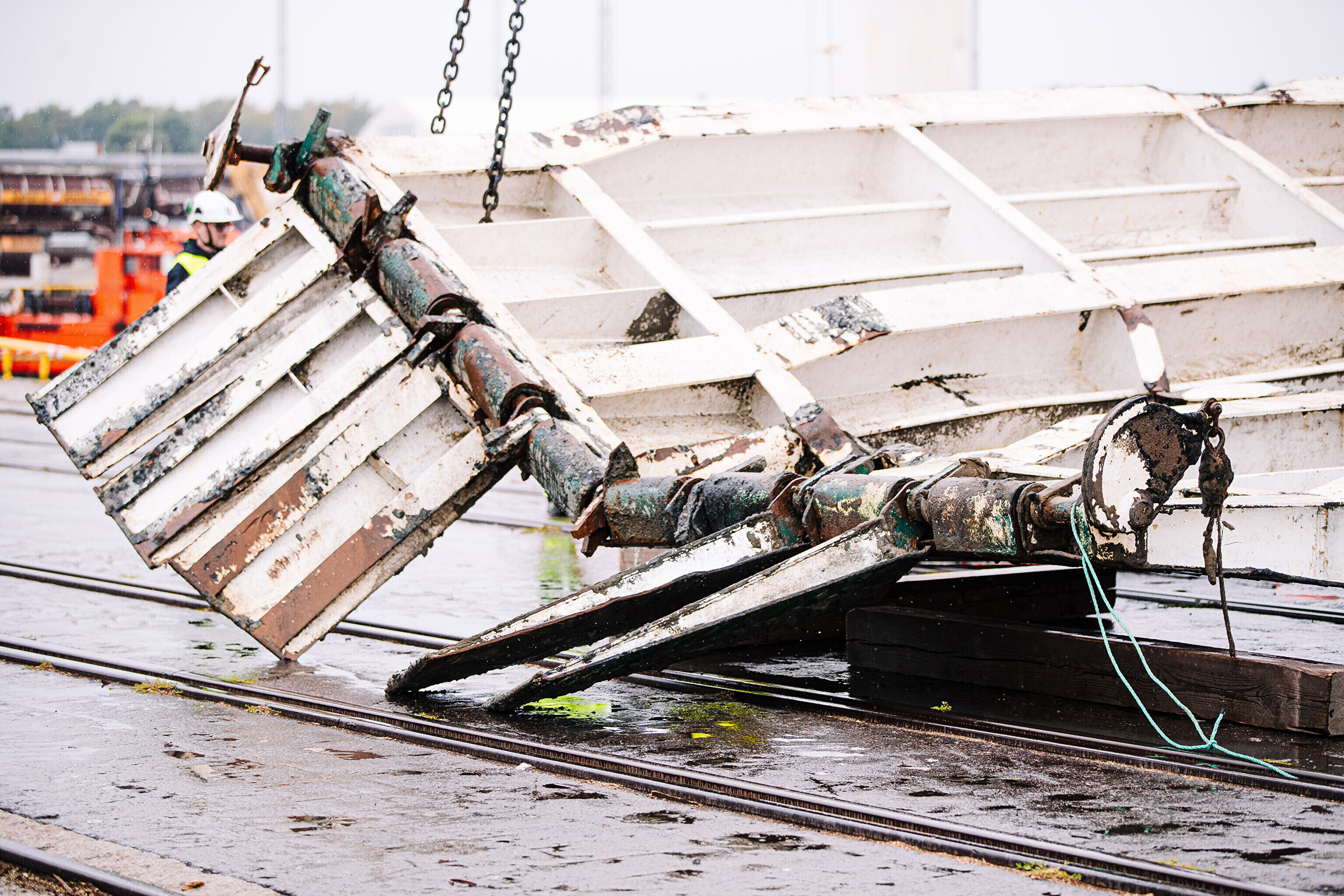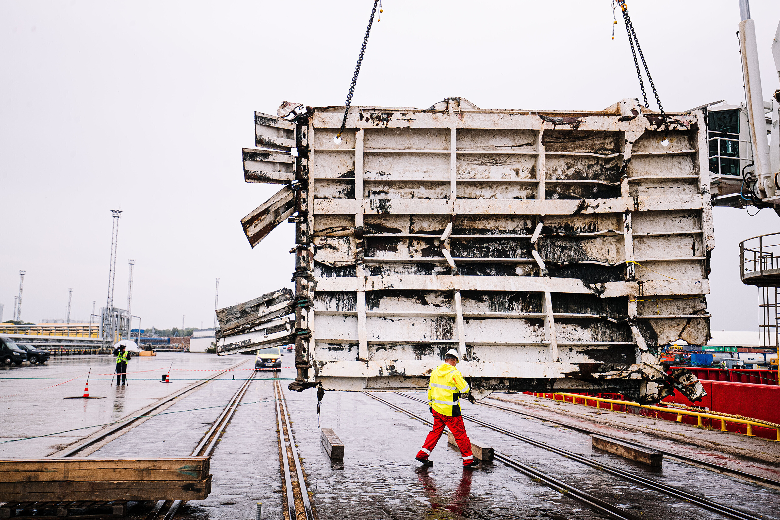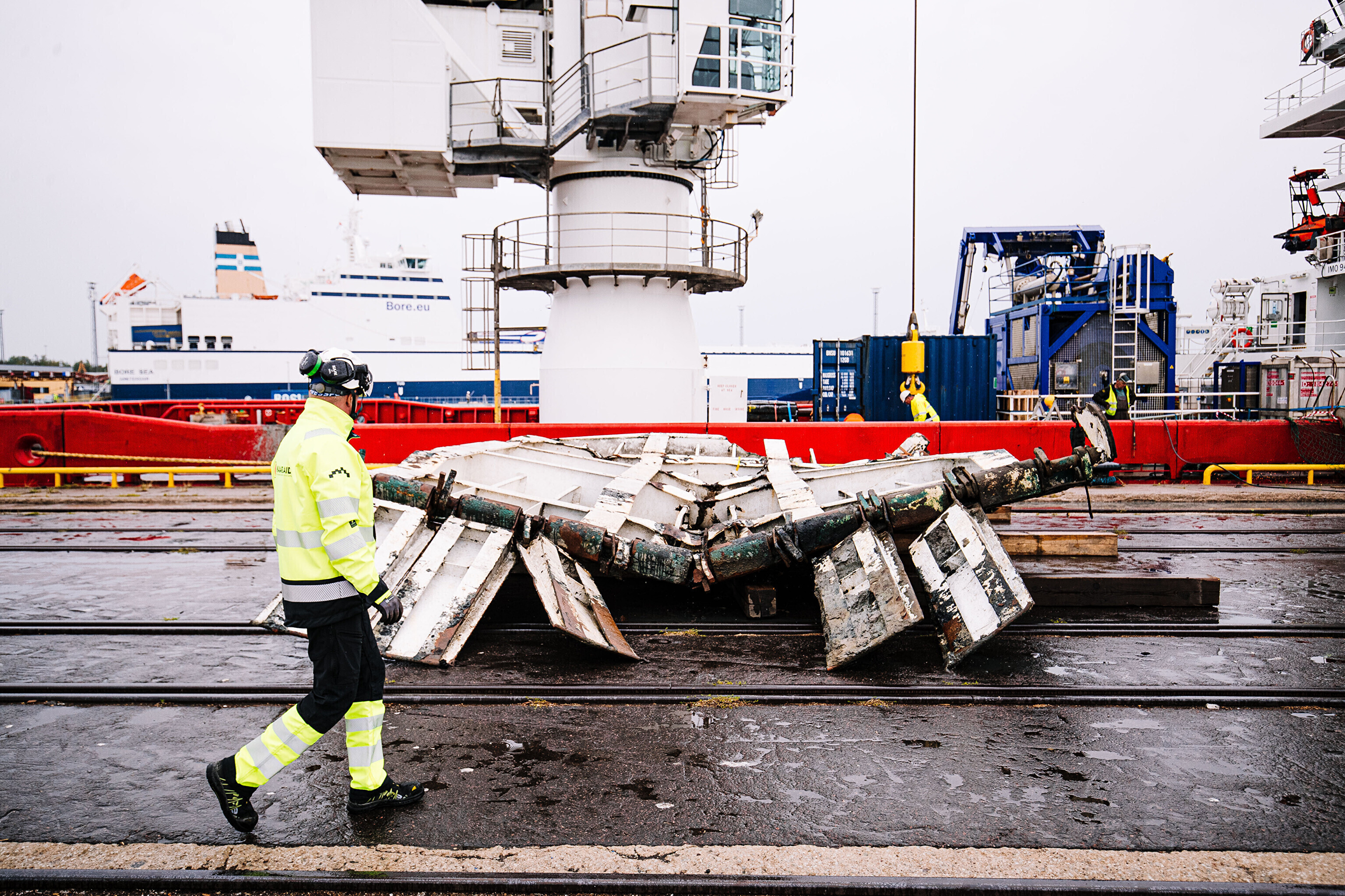 The bow ramp arrived at Paldiski South Harbor on Tuesday after being raised from the bottom of the seabed. This wraps up investigations taking place at the wreck site in the Baltic Sea, Tuesday's "Aktuaalne kaamera" reported.