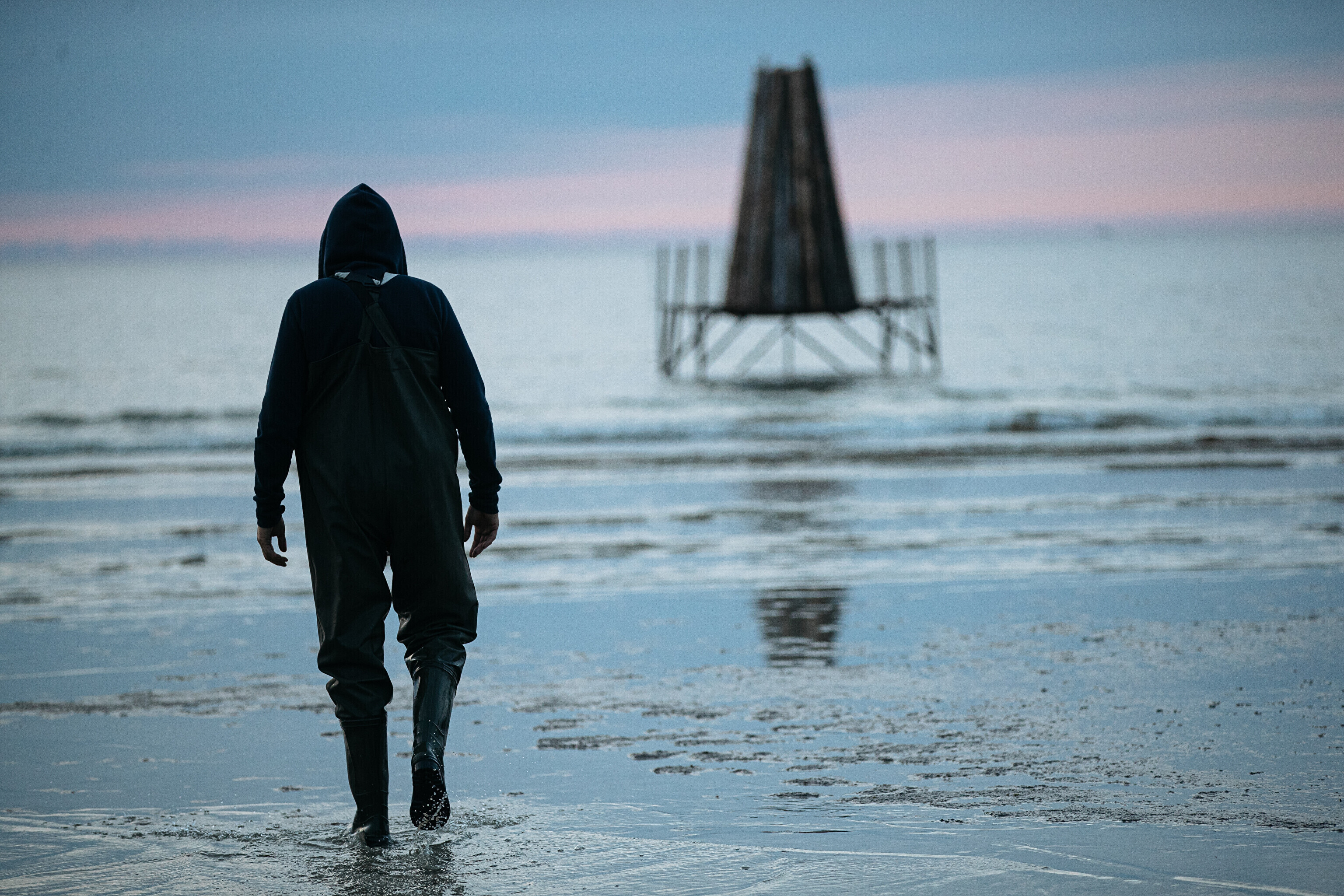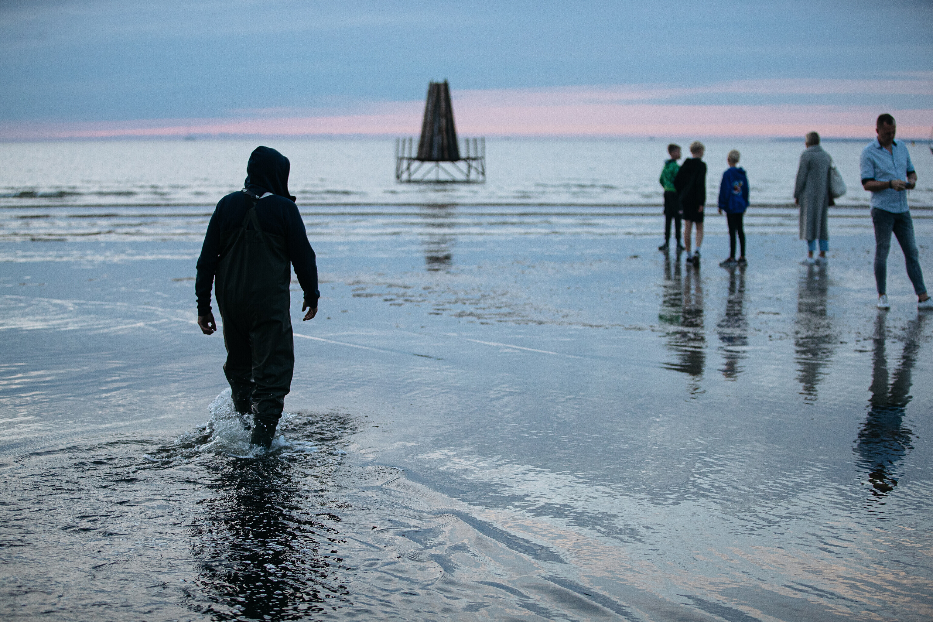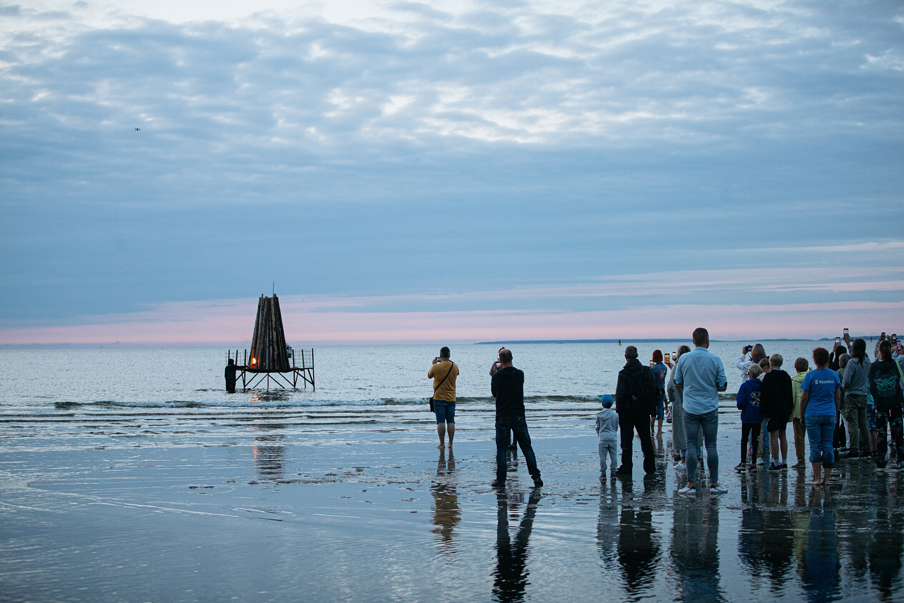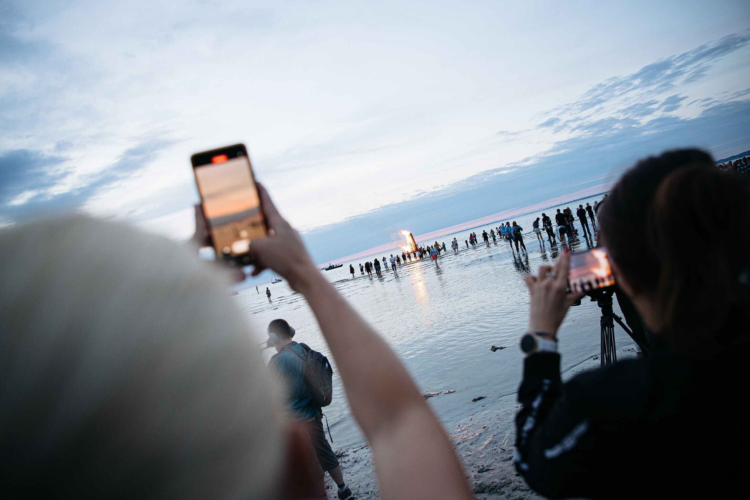 In addition to several bonfires that popped up along the shoreline, one of the fires lit at sundown was surrounded by water.