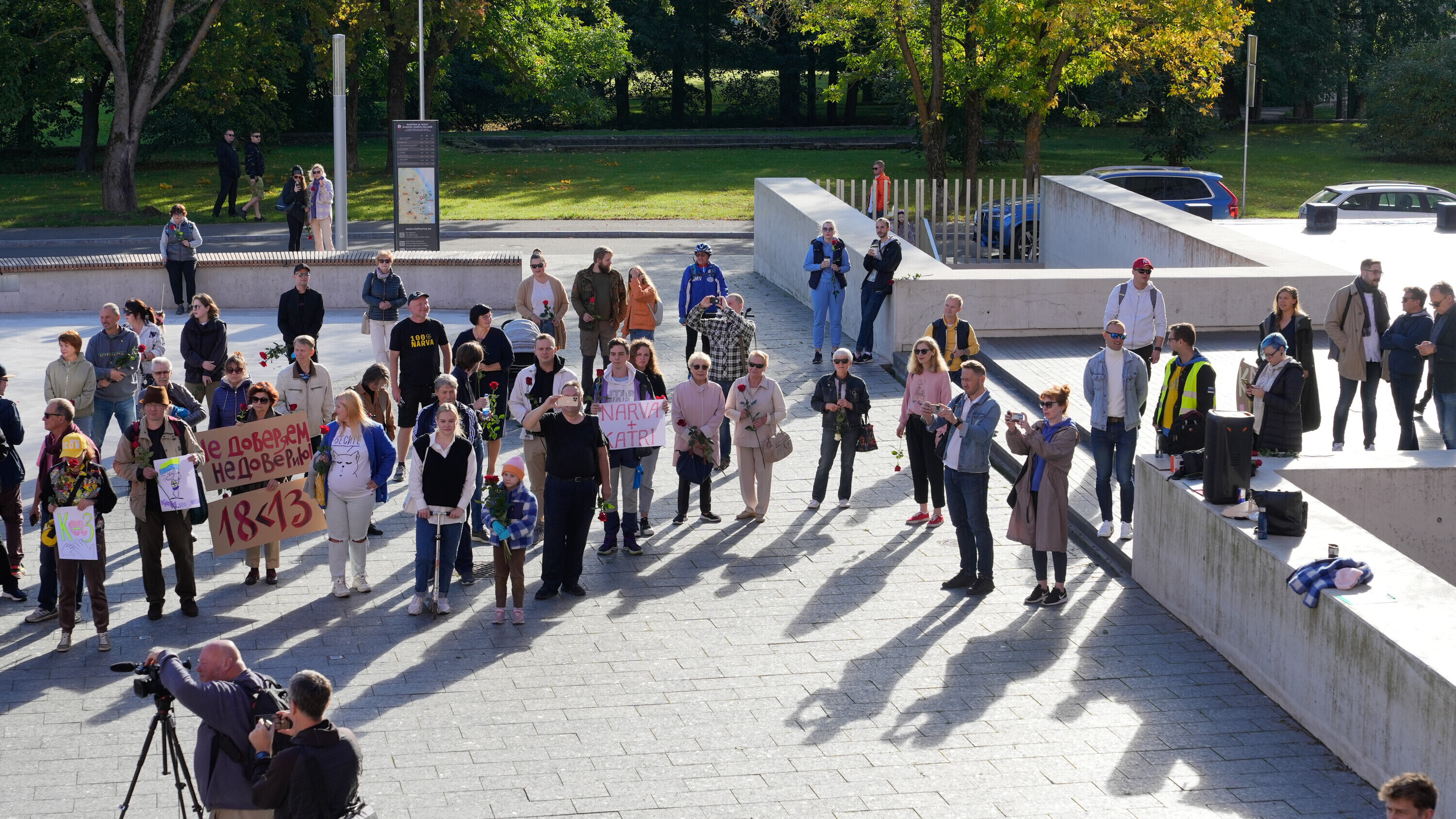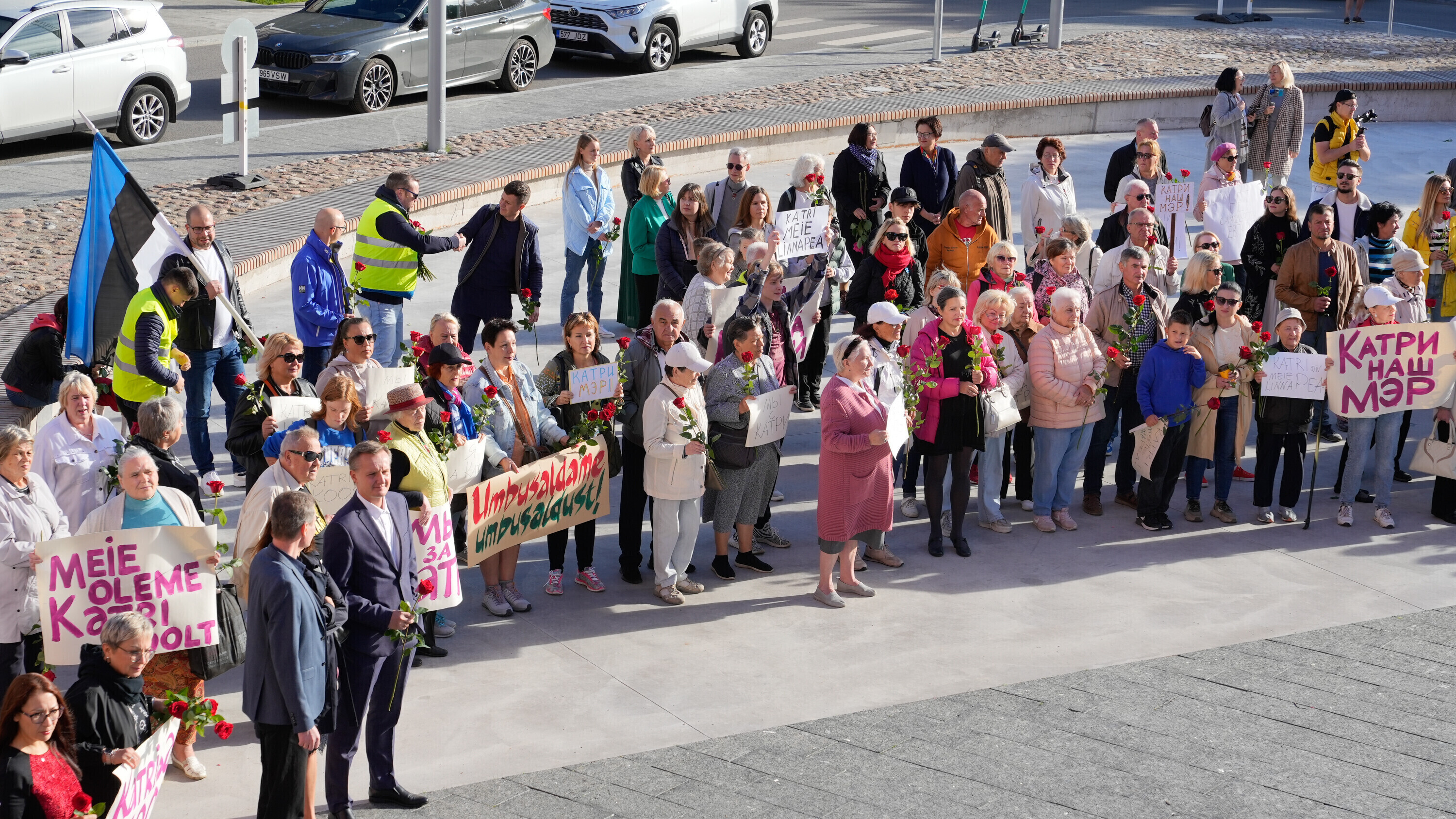 The extraordinary session started at 10 a.m., half an hour before, several hundreds (estimate of ERR Narva correspondent Sergei Stepanov) of Raik supporters gathered in front of the Town Hall.