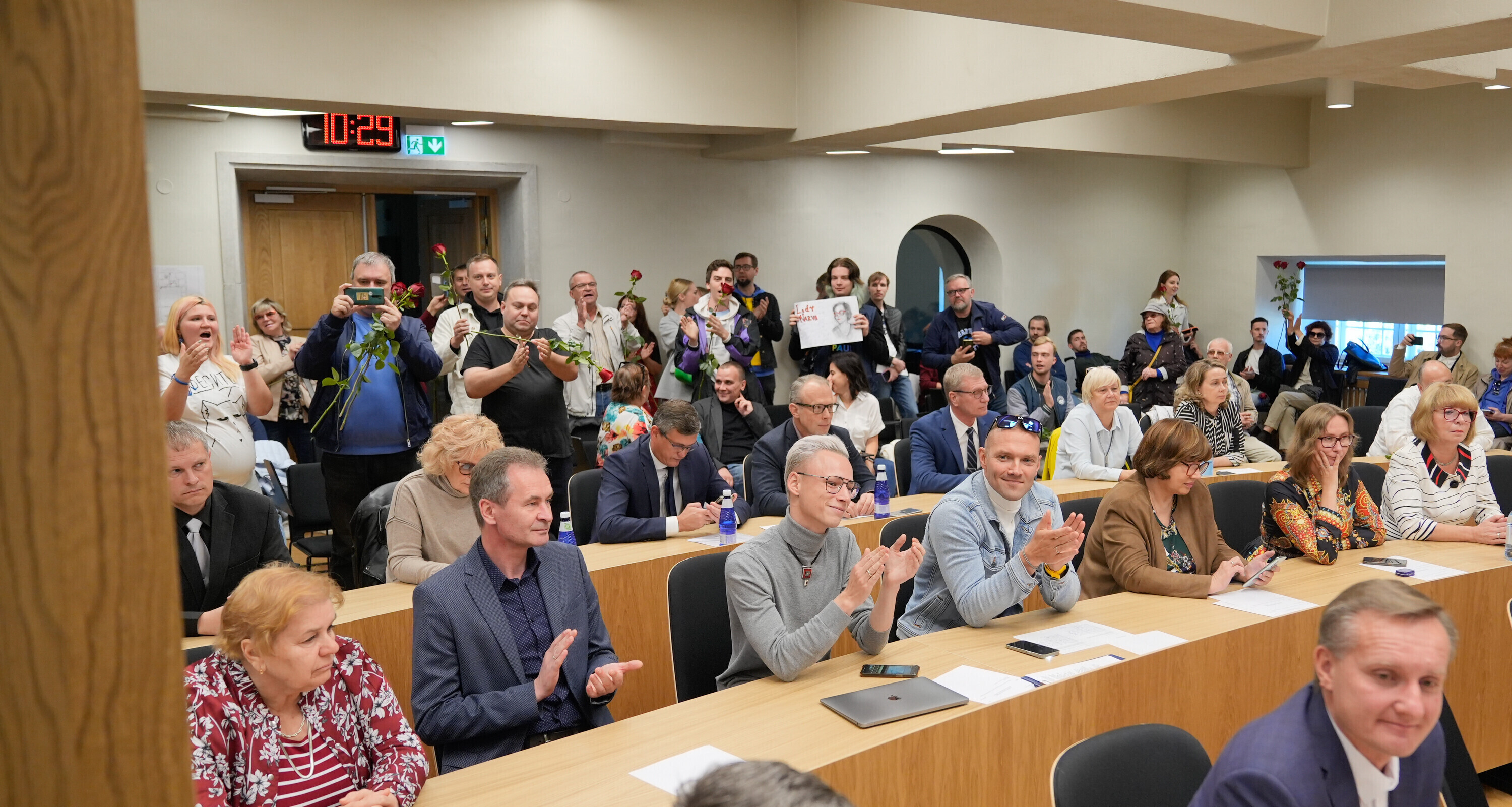 The statement of no confidence in Mayor Katri Raik was read out by Aleksei Jevgrafov (Center), the chair of the newly formed Narva group, whose 18 members started the vote of no confidence in the mayor last Monday. Raik then gave a speech, which was met with enthusiastic applause.
