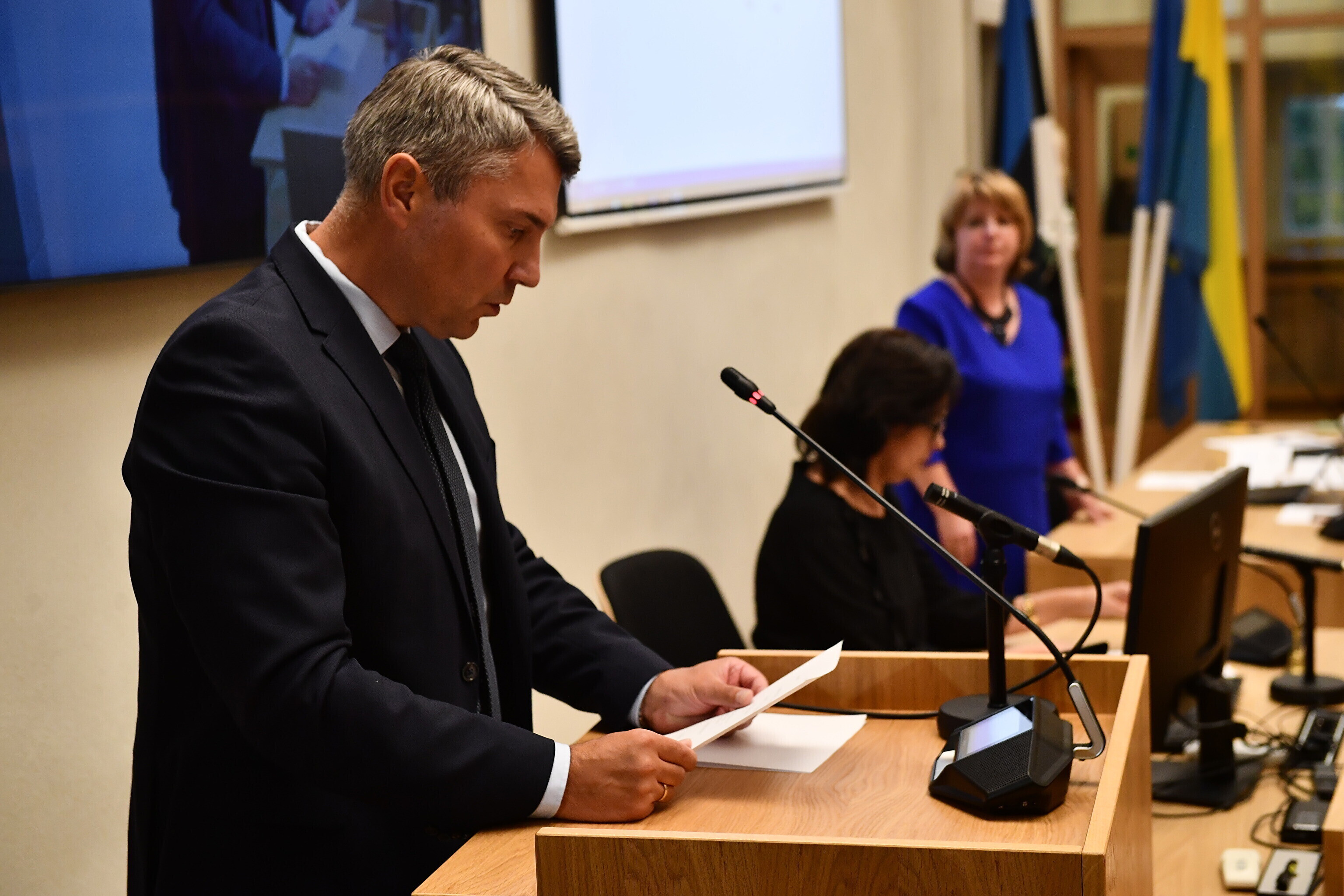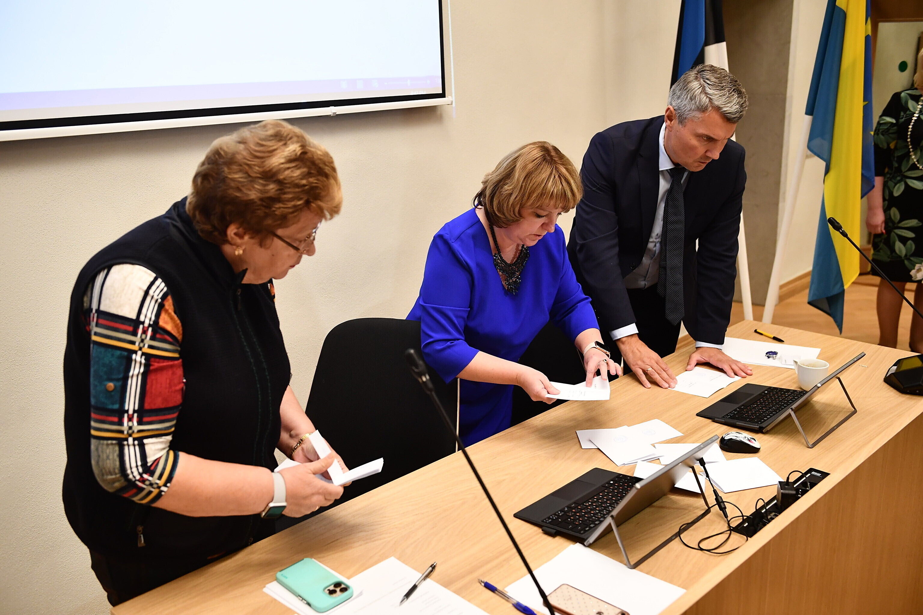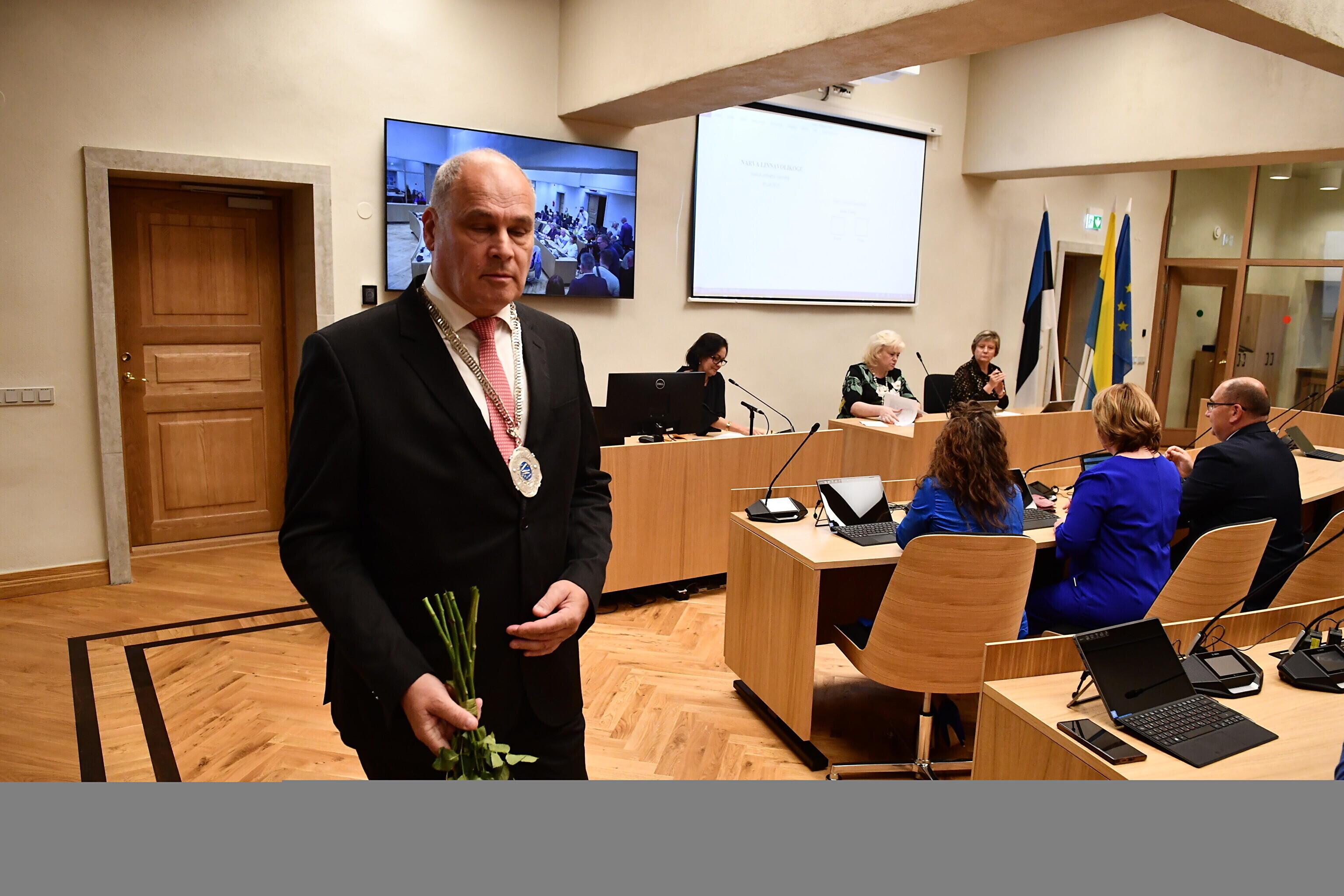 Narva Council elected Jaan Toots (Center) as the city's new mayor at Thursday's session.