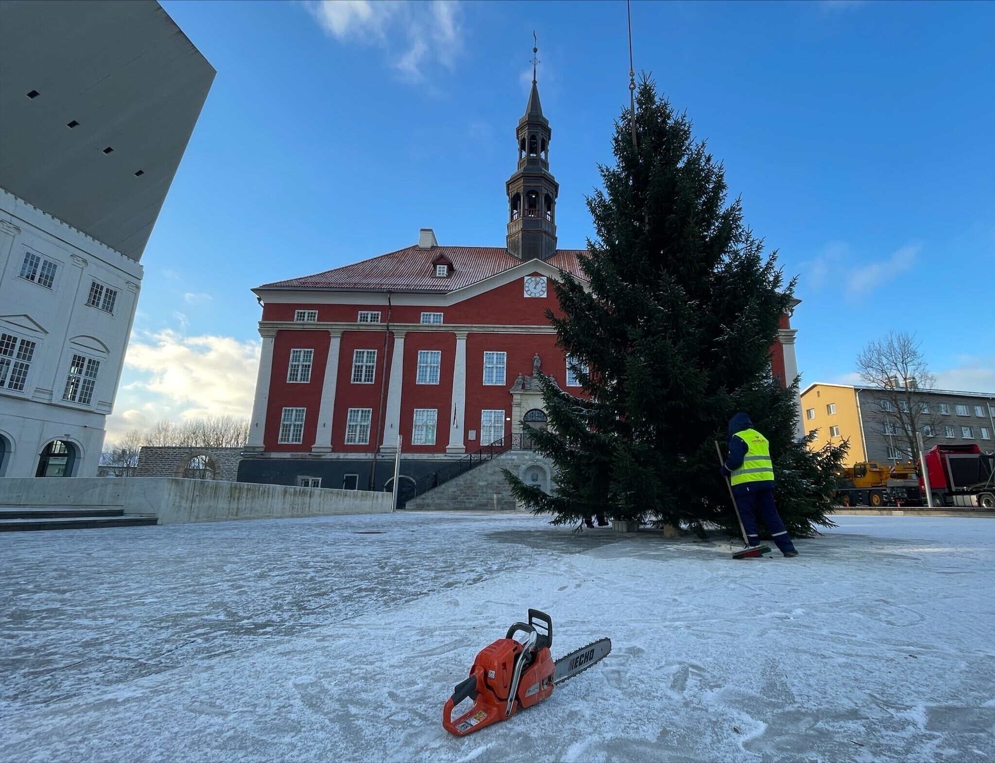 It is there that the city government building is locates and where Narva residents usually go to ring in the New Year. However, this year, the city's residents will also have chance to step into the Christmas spirt in the city's historical center, with a second tree being placed in the newly-renovated Town Hall Square (Raekoja Plats).