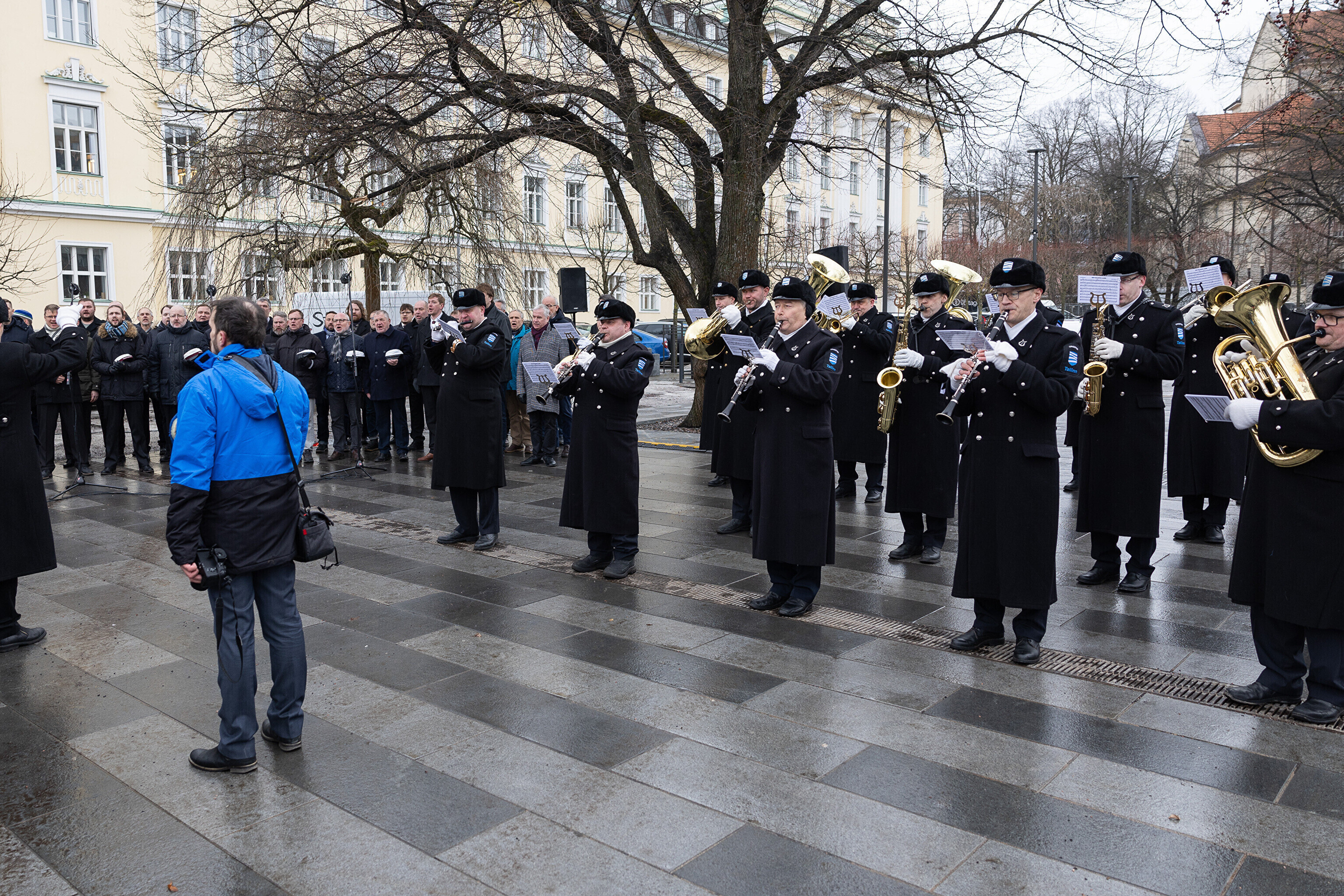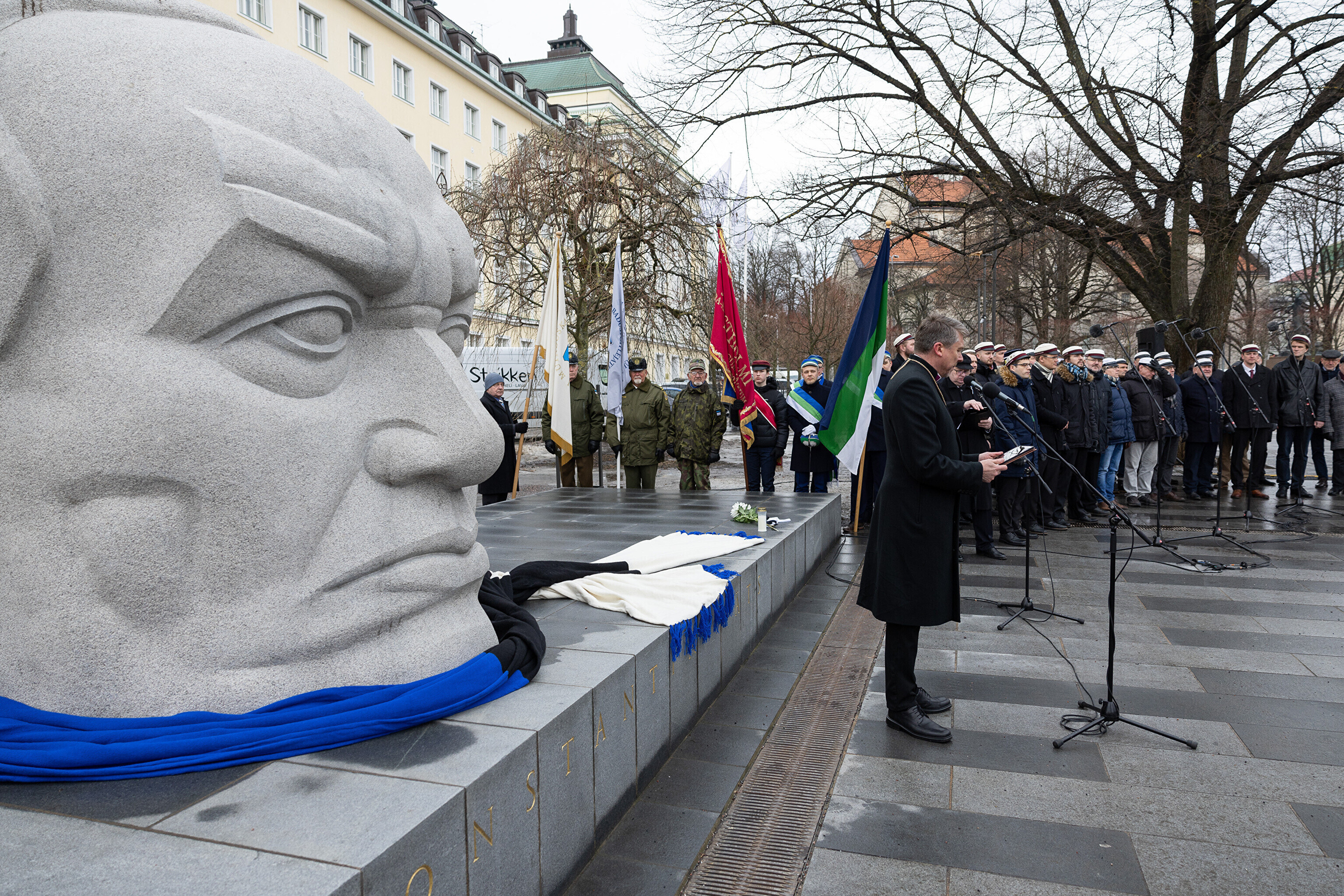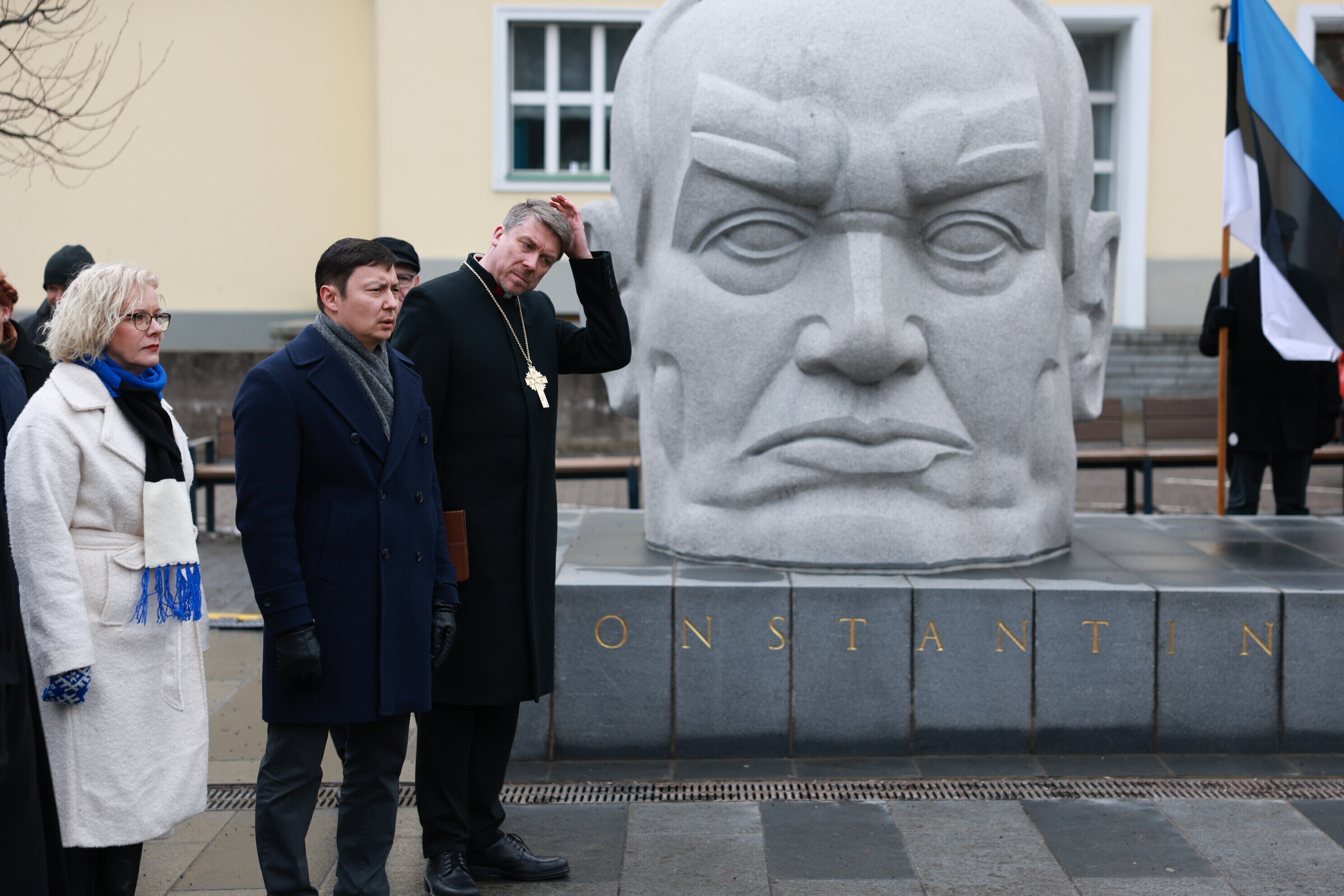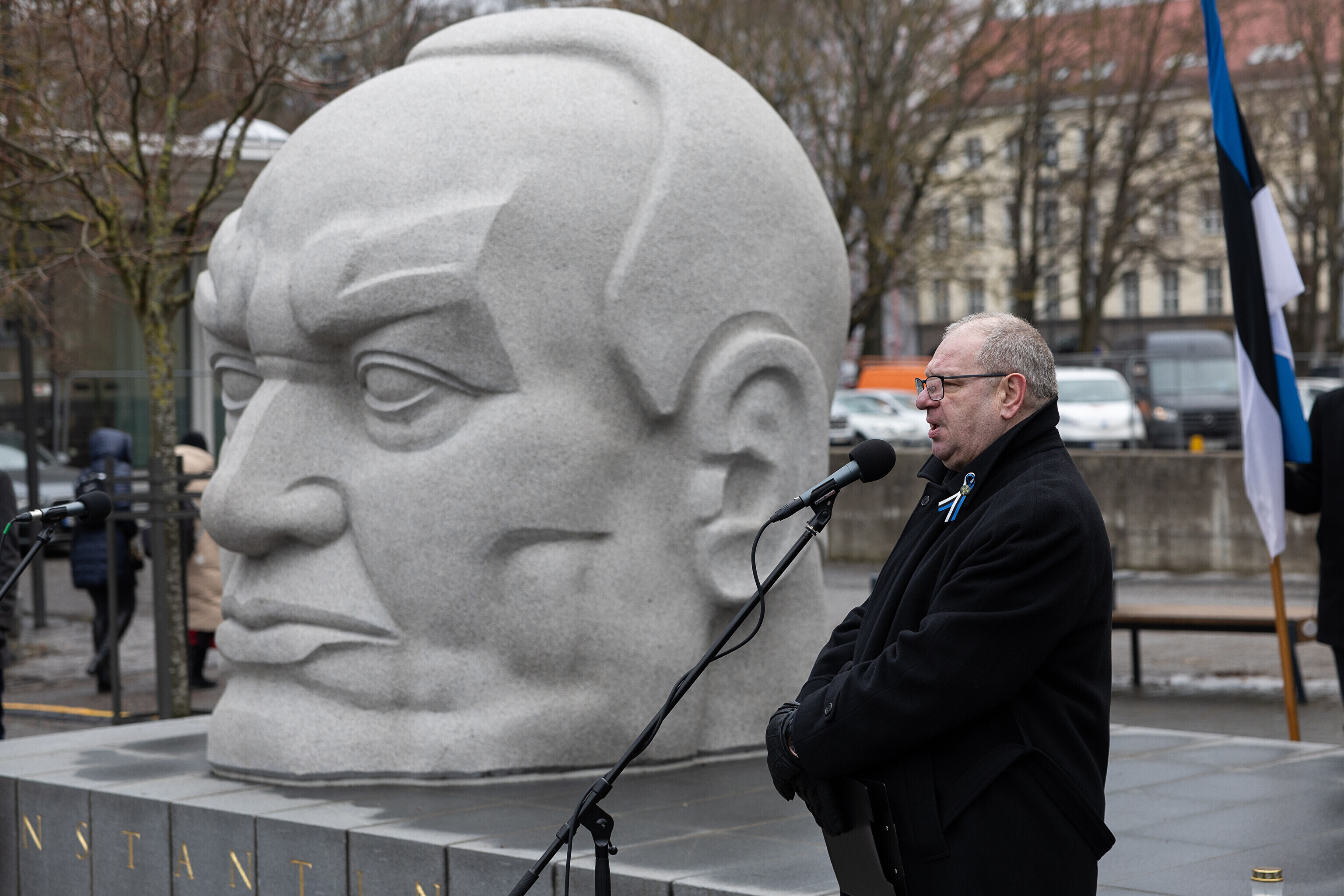 The Mayor of Tallinn Mihhail Kõlvart and other city officials made speeches and Archbishop Urmas Viilma held a service at the ceremony by the Päts memorial behind the Estonia Theater.