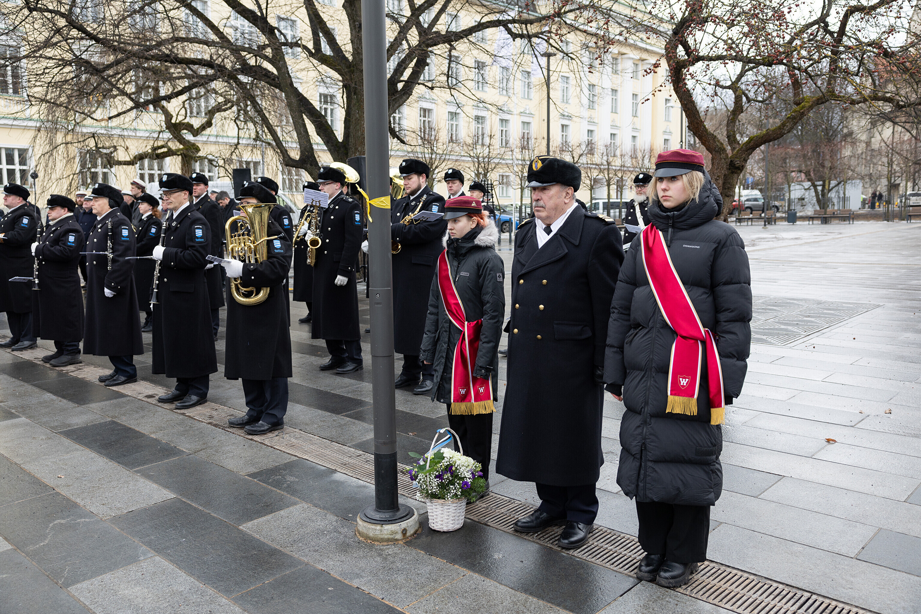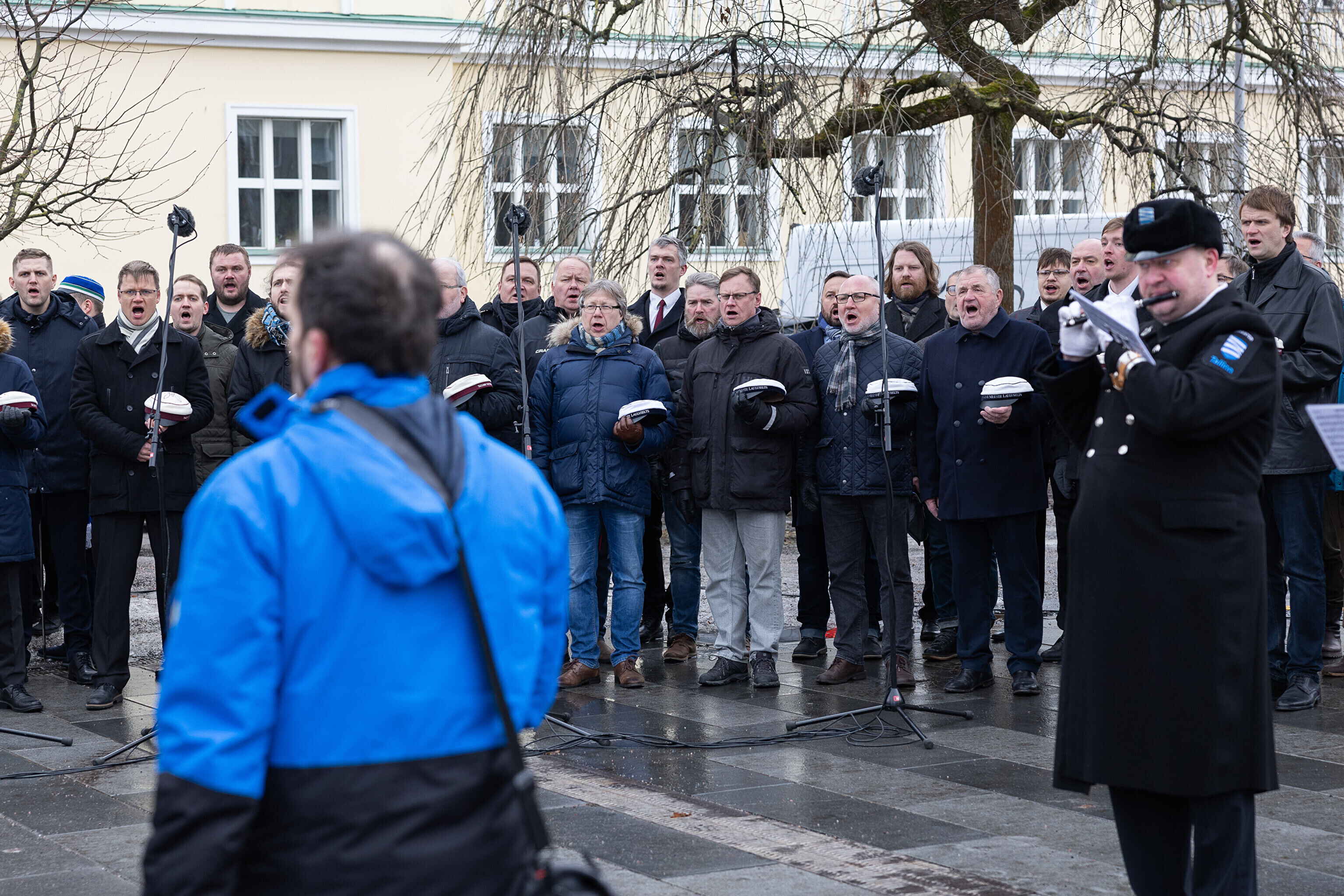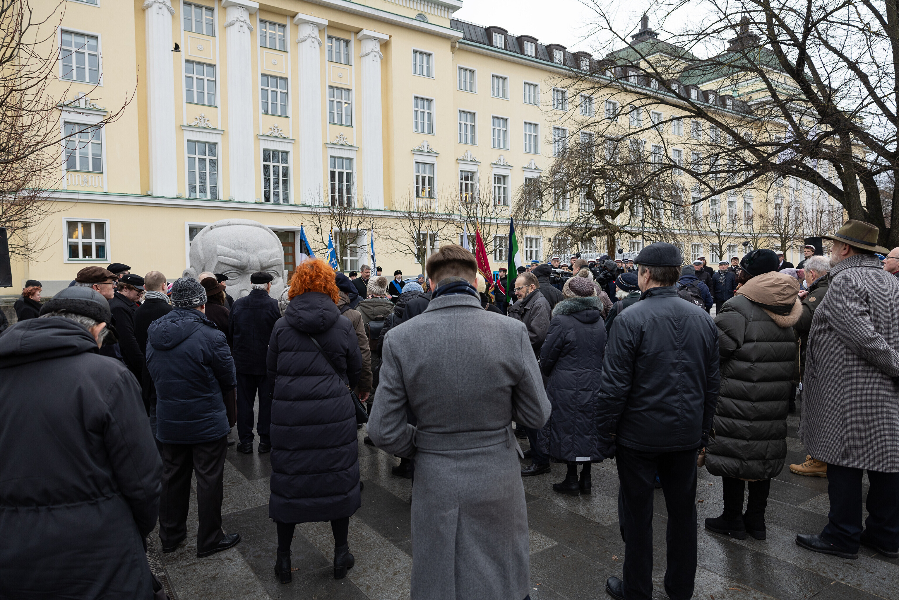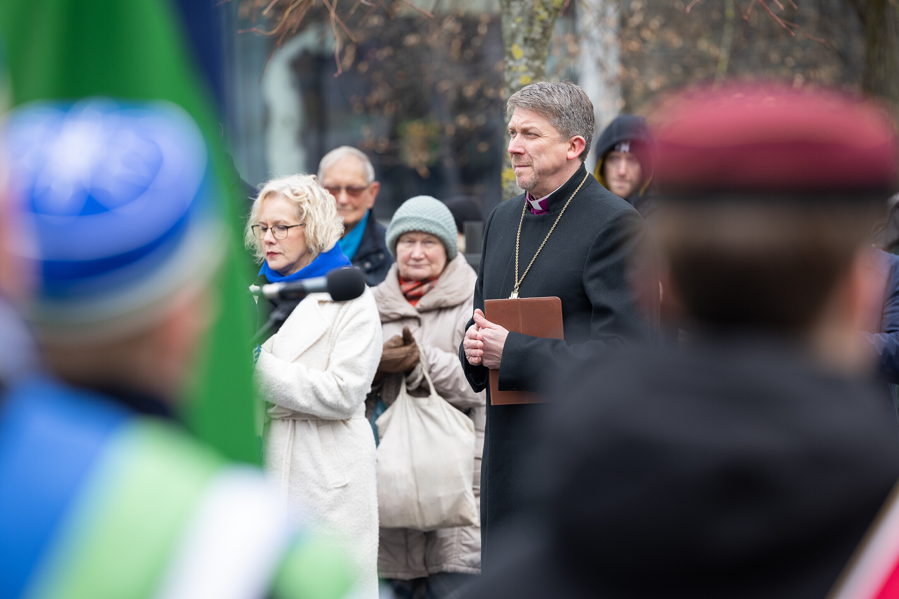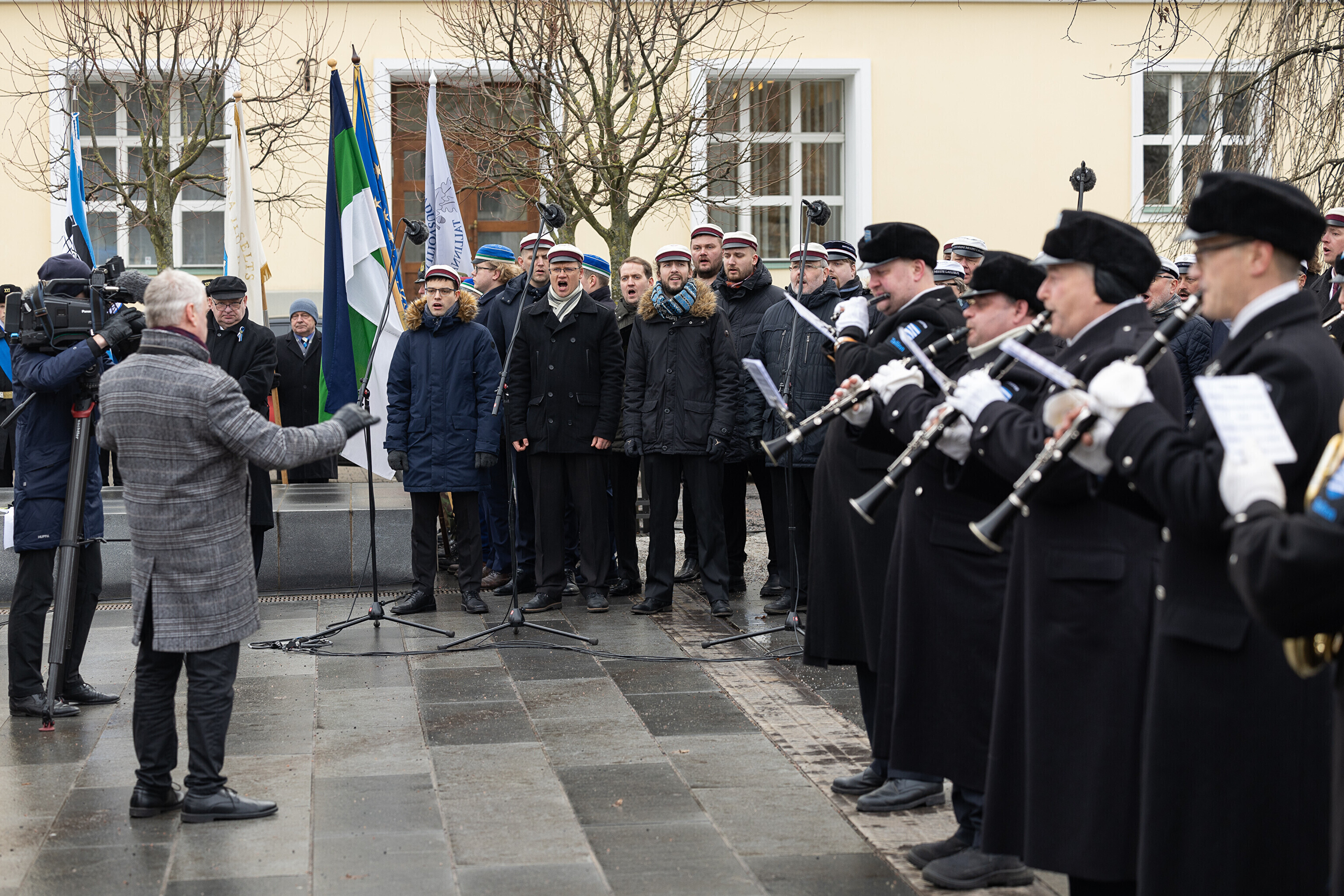 The Mayor of Tallinn Mihhail Kõlvart and other city officials made speeches and Archbishop Urmas Viilma held a service at the ceremony by the Päts memorial behind the Estonia Theater.