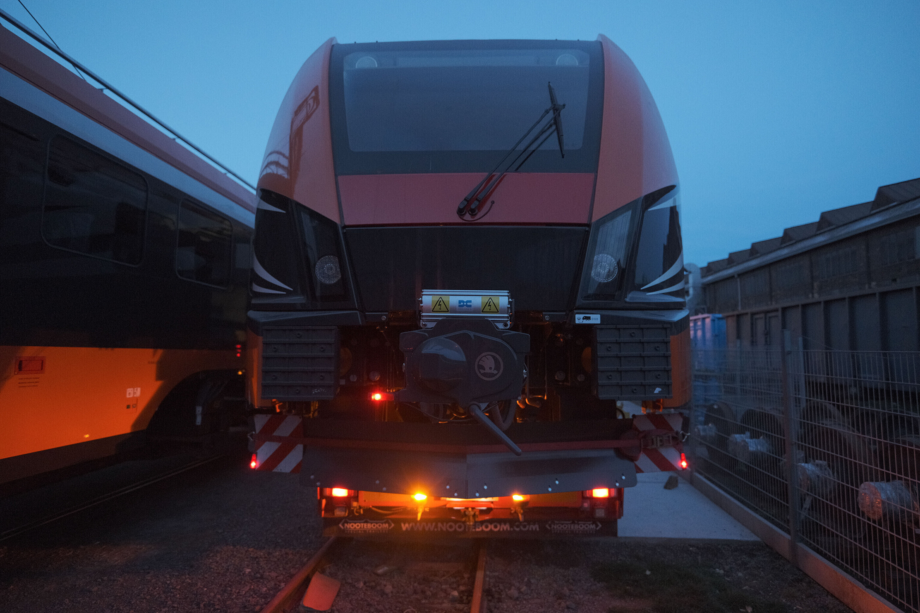 Elron board member Märt Ehrenpreis said: "So far, two out of the 16 trains have been finished. One has been tested in a factory located in the [Czech] city of Pilsen, while the other is being transported by road to a factory in Riga."