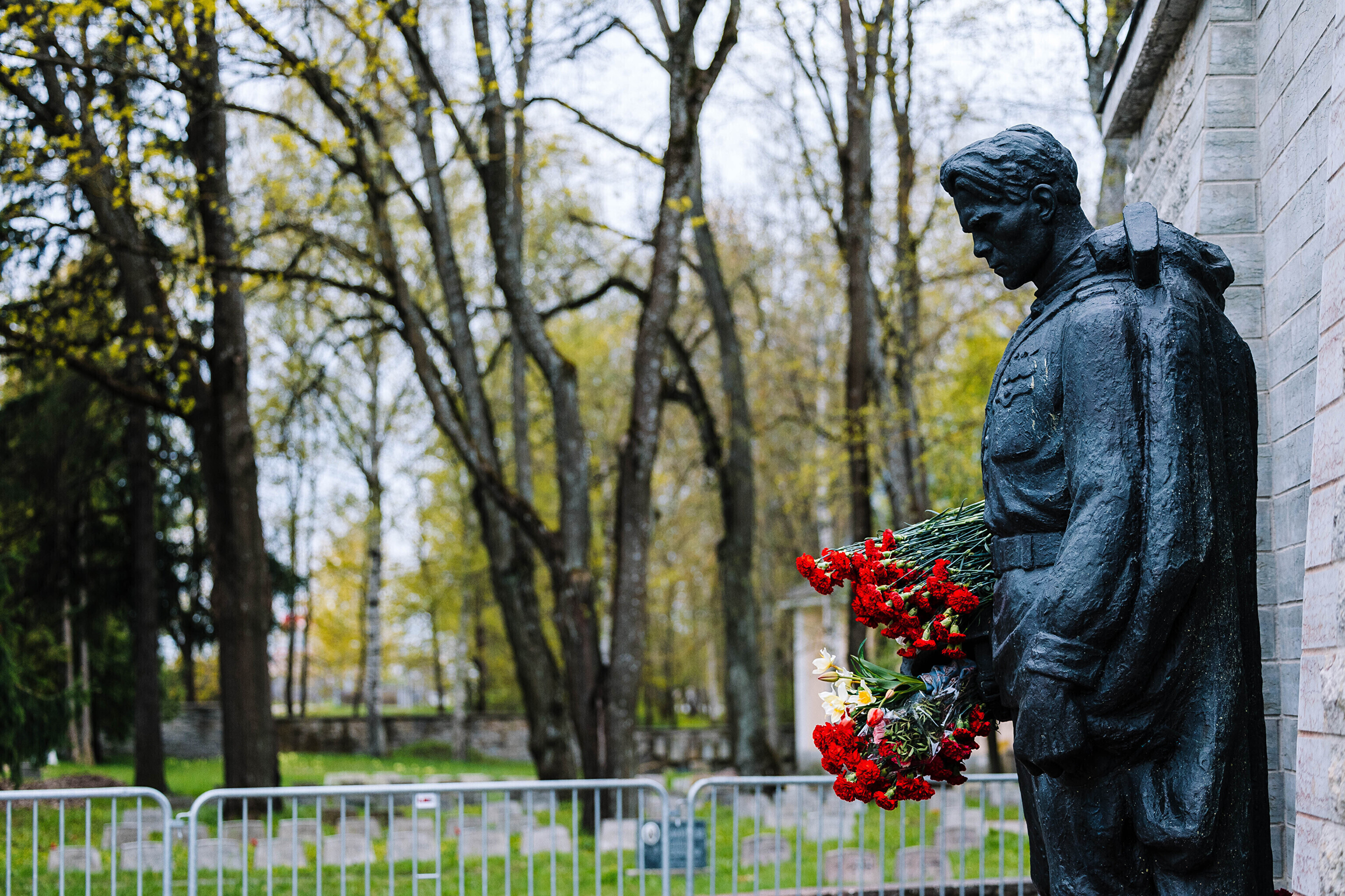 The Bronze Soldier monument stands in a quiet corner of the Estonian Defense Forces Cemetery on Filtri tee, but every year on May 9 sees heightened security, fencing and media attention as crowds come to lay flowers at the site.