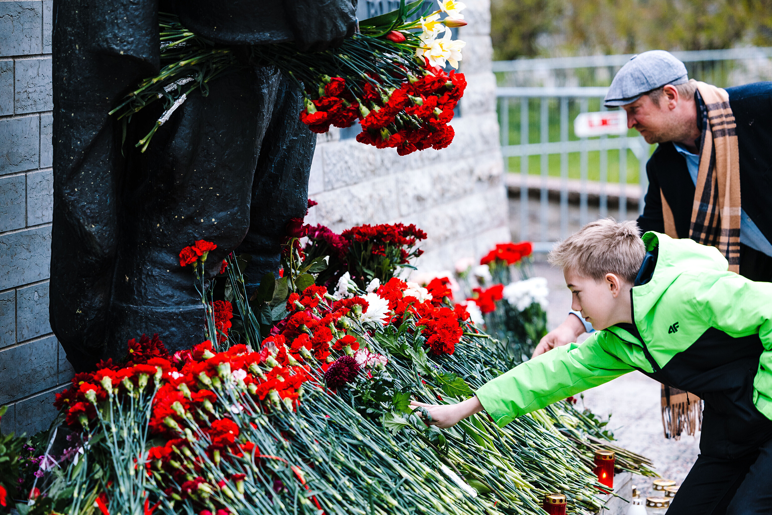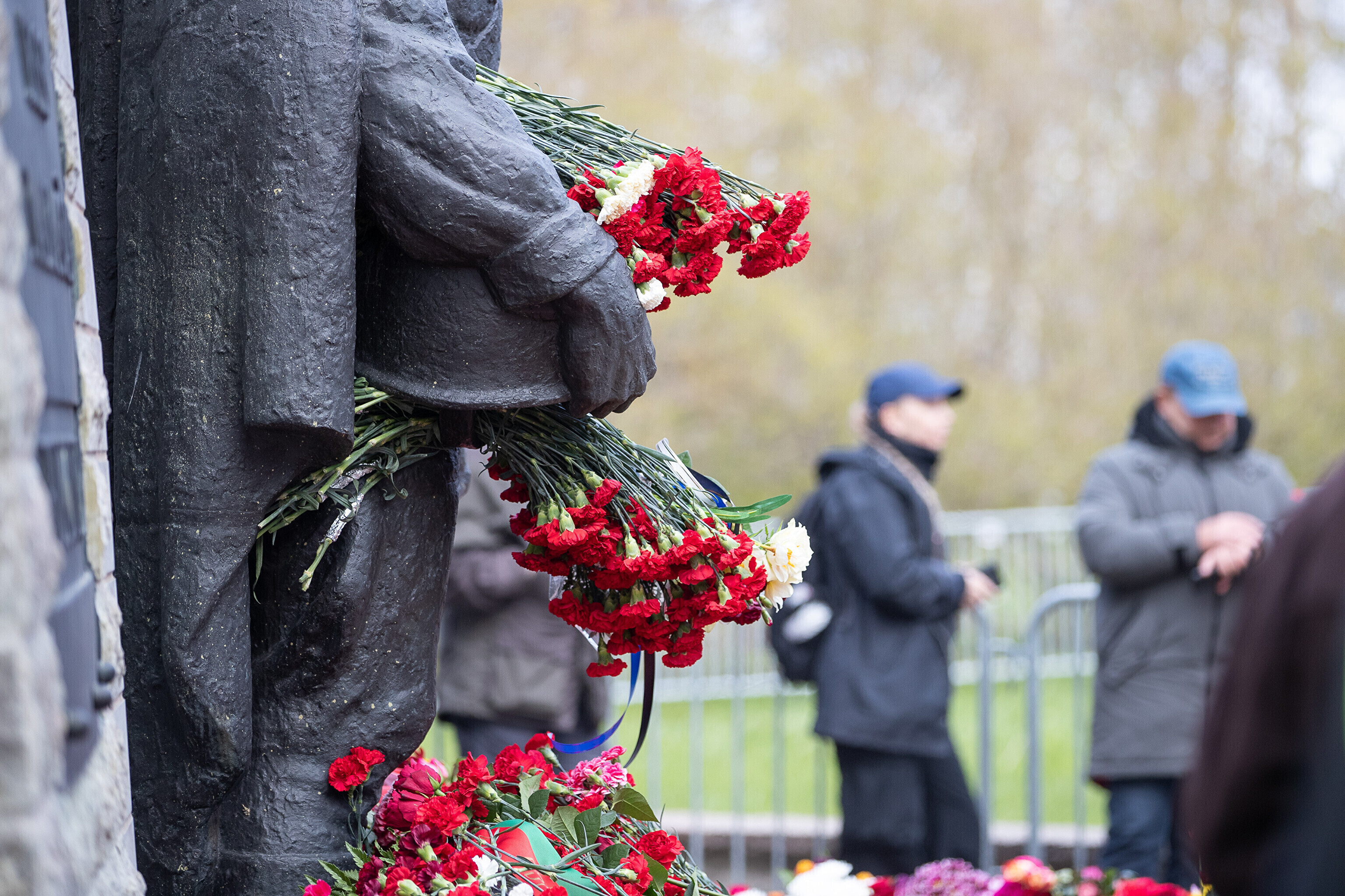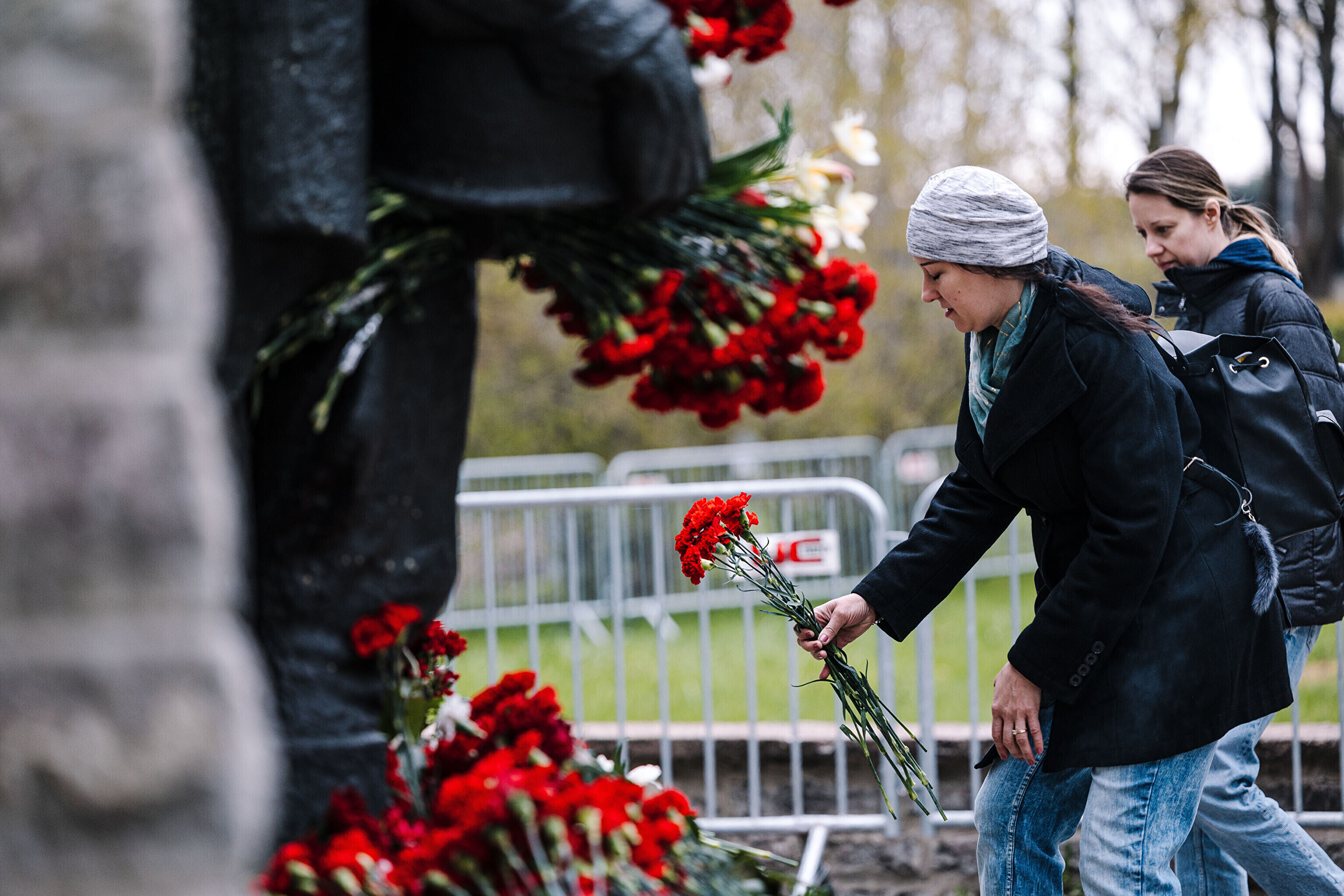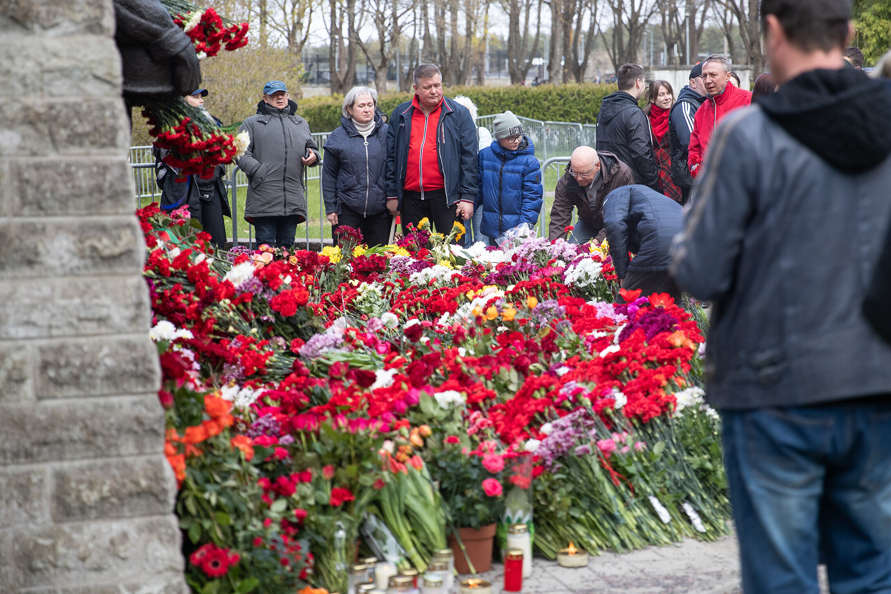Heaps of red carnations had already been laid at the site of a controversial statue in central Tallinn early on this morning, as Russian-speaking residents of Estonia mark "victory day."