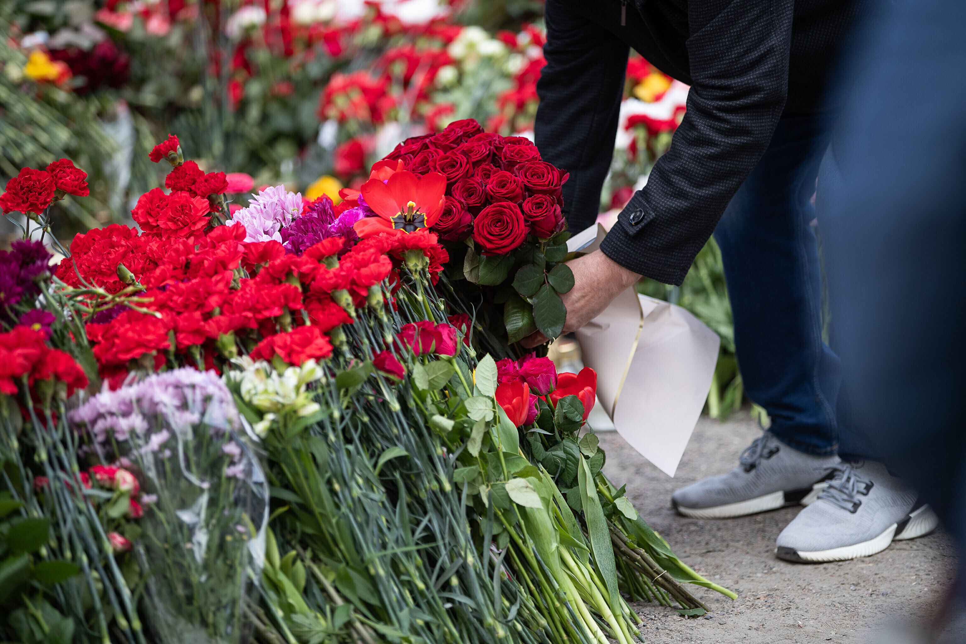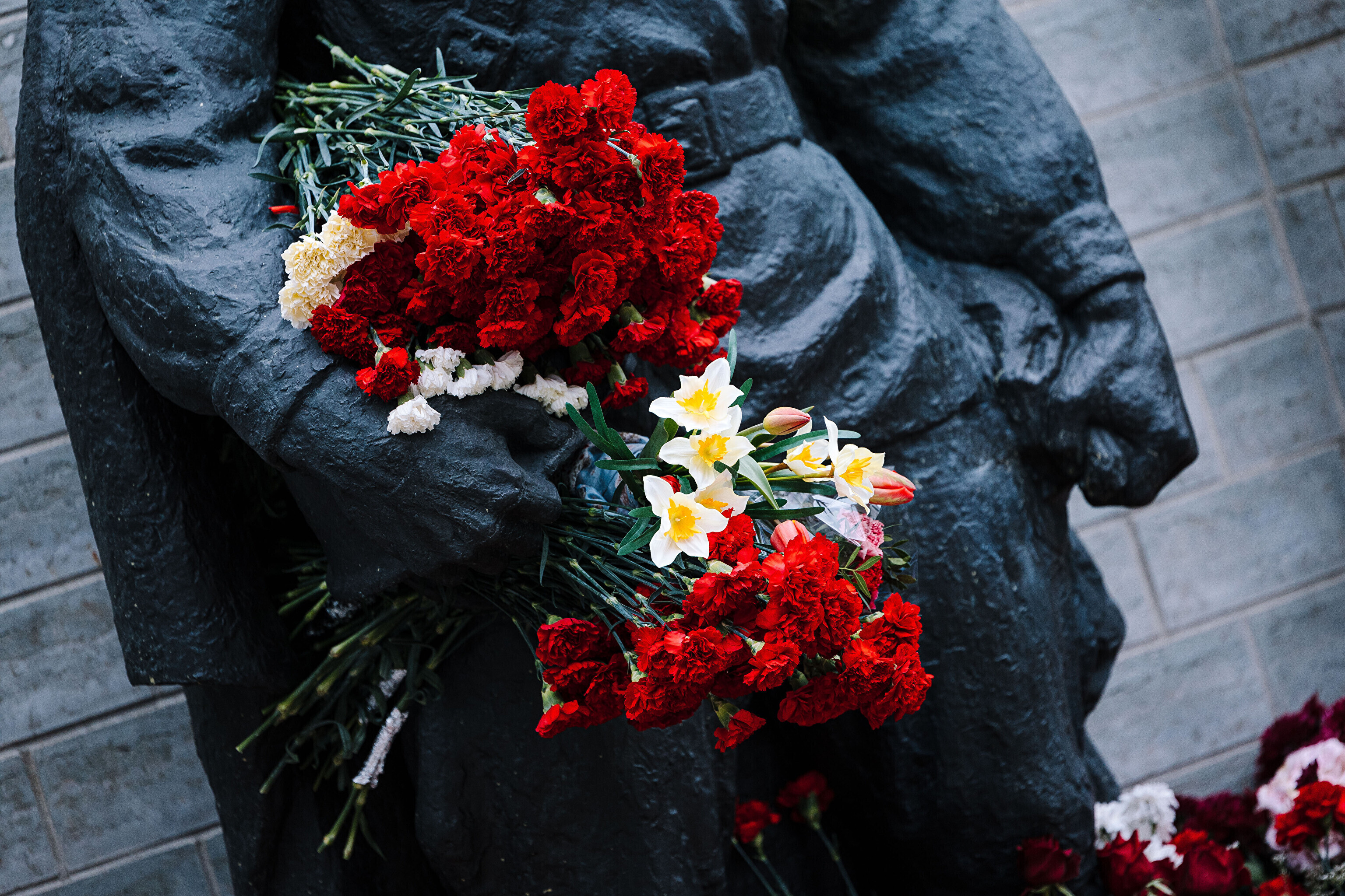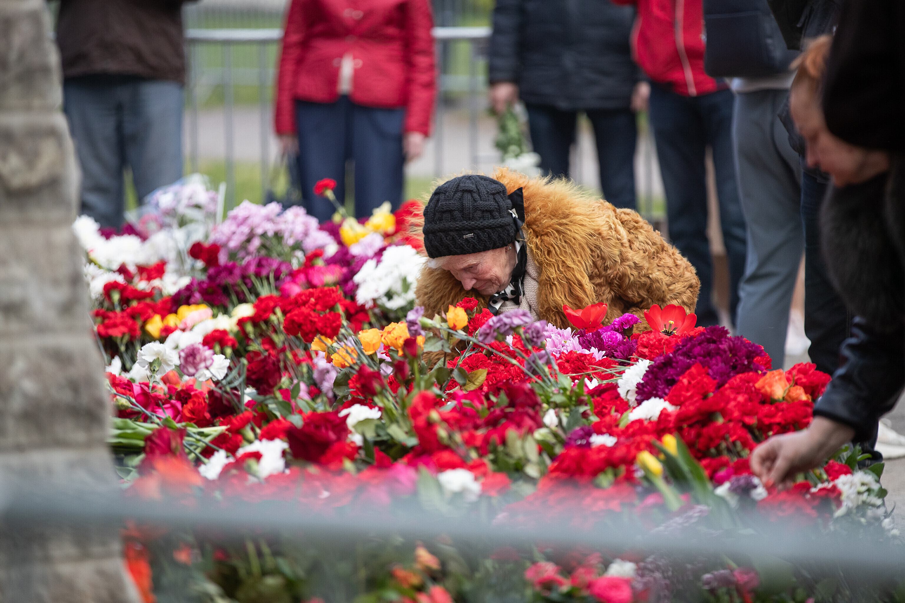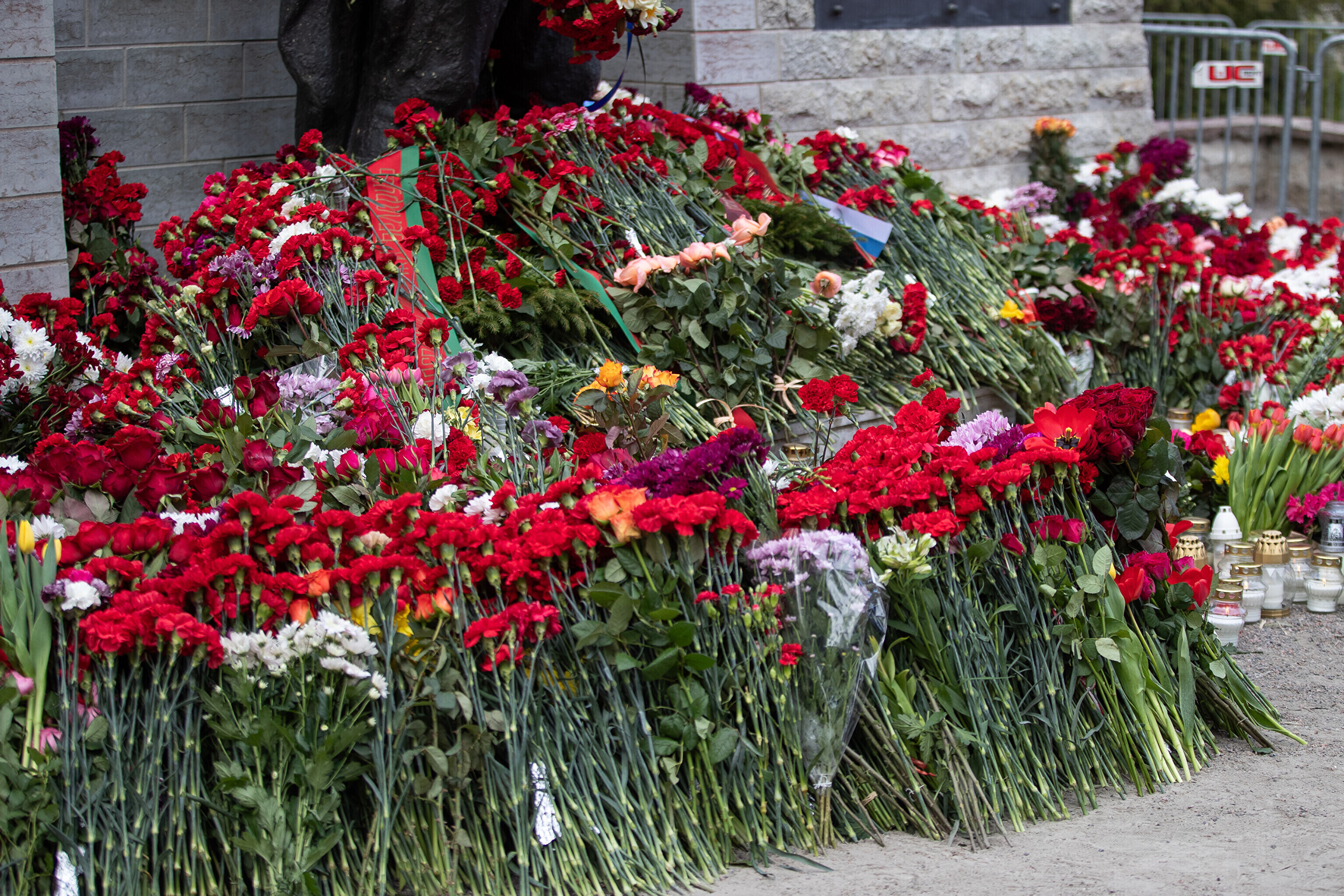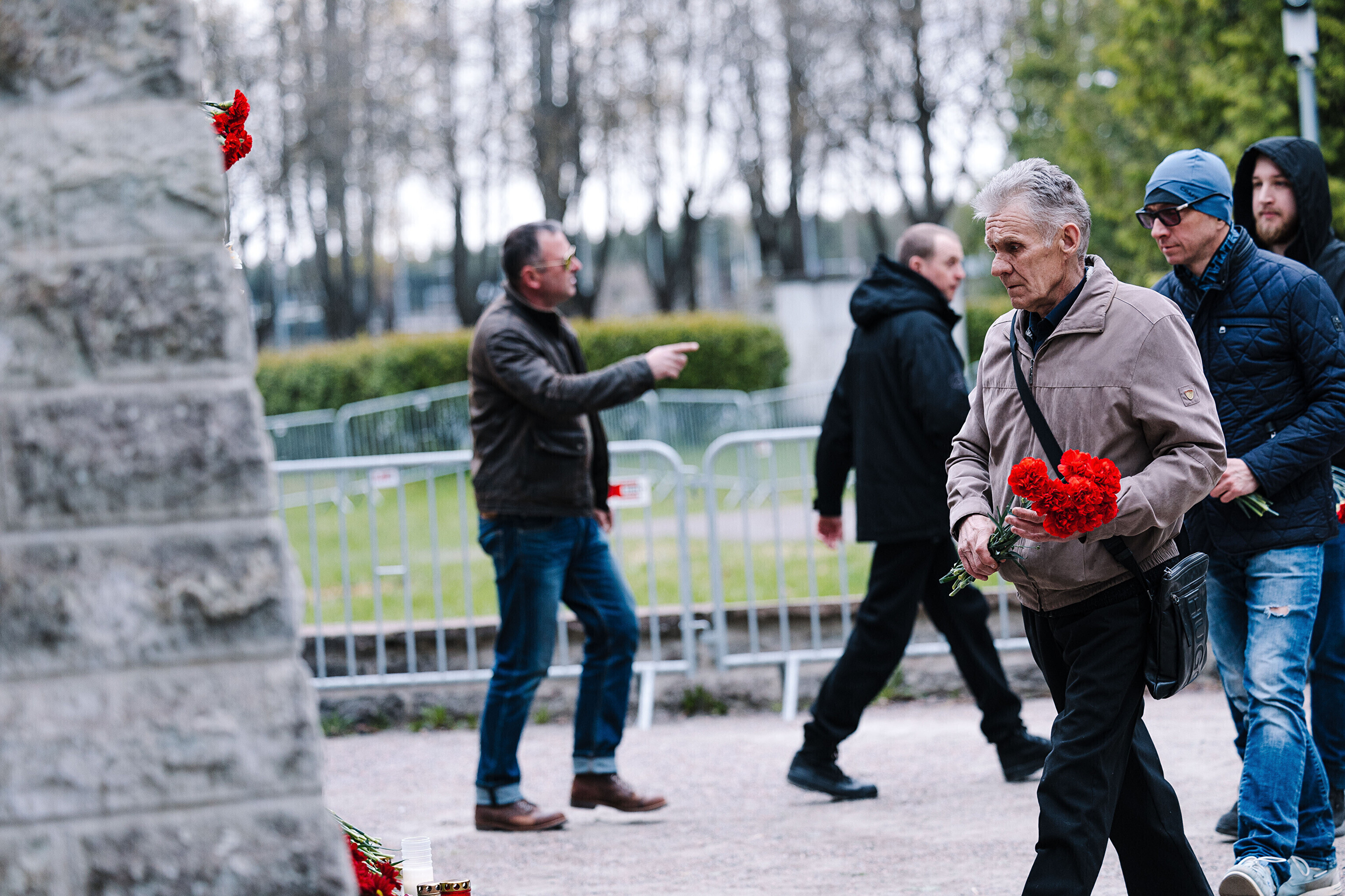 Heaps of red carnations had already been laid at the site of a controversial statue in central Tallinn early on this morning, as Russian-speaking residents of Estonia mark "victory day."
