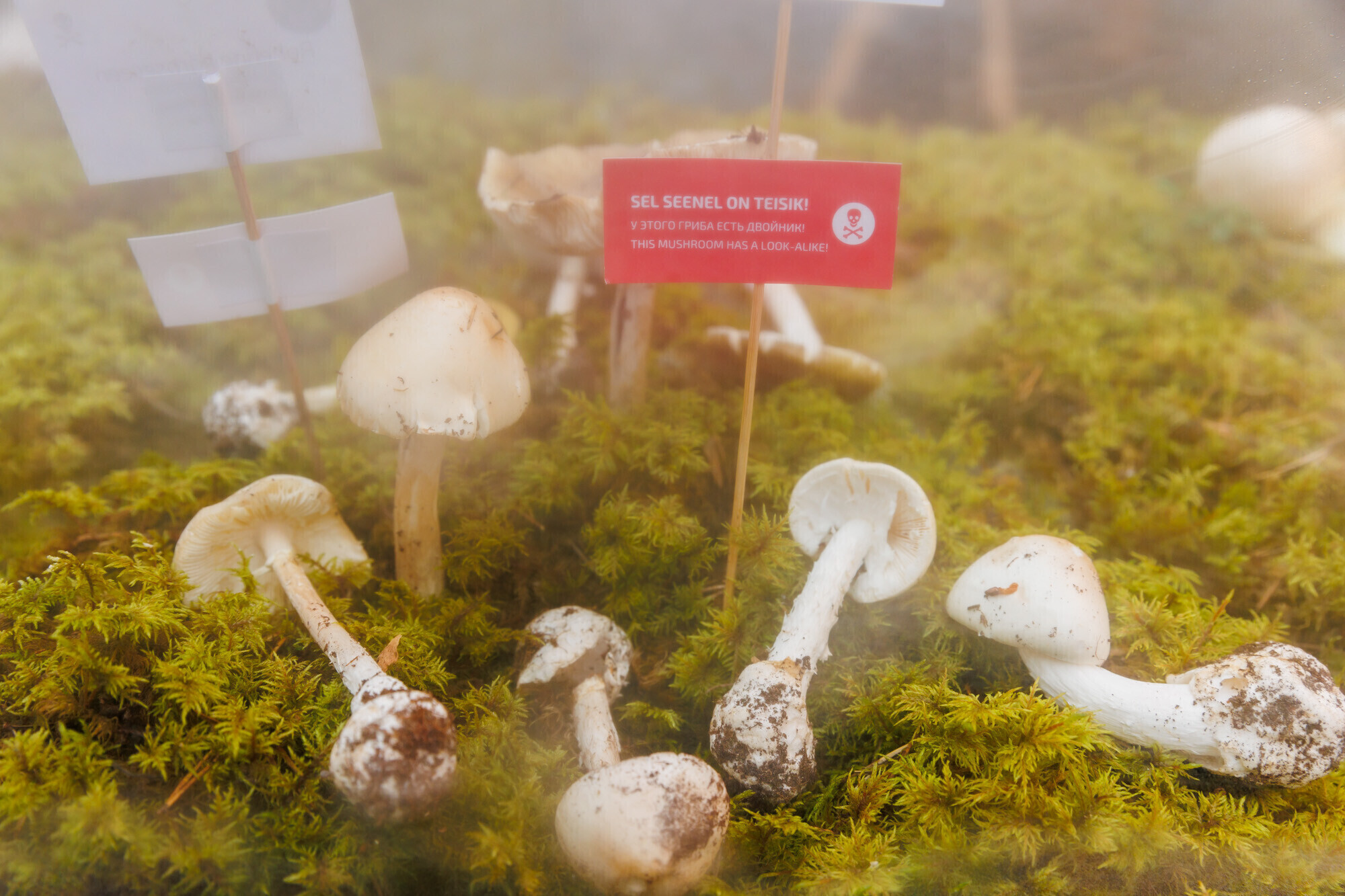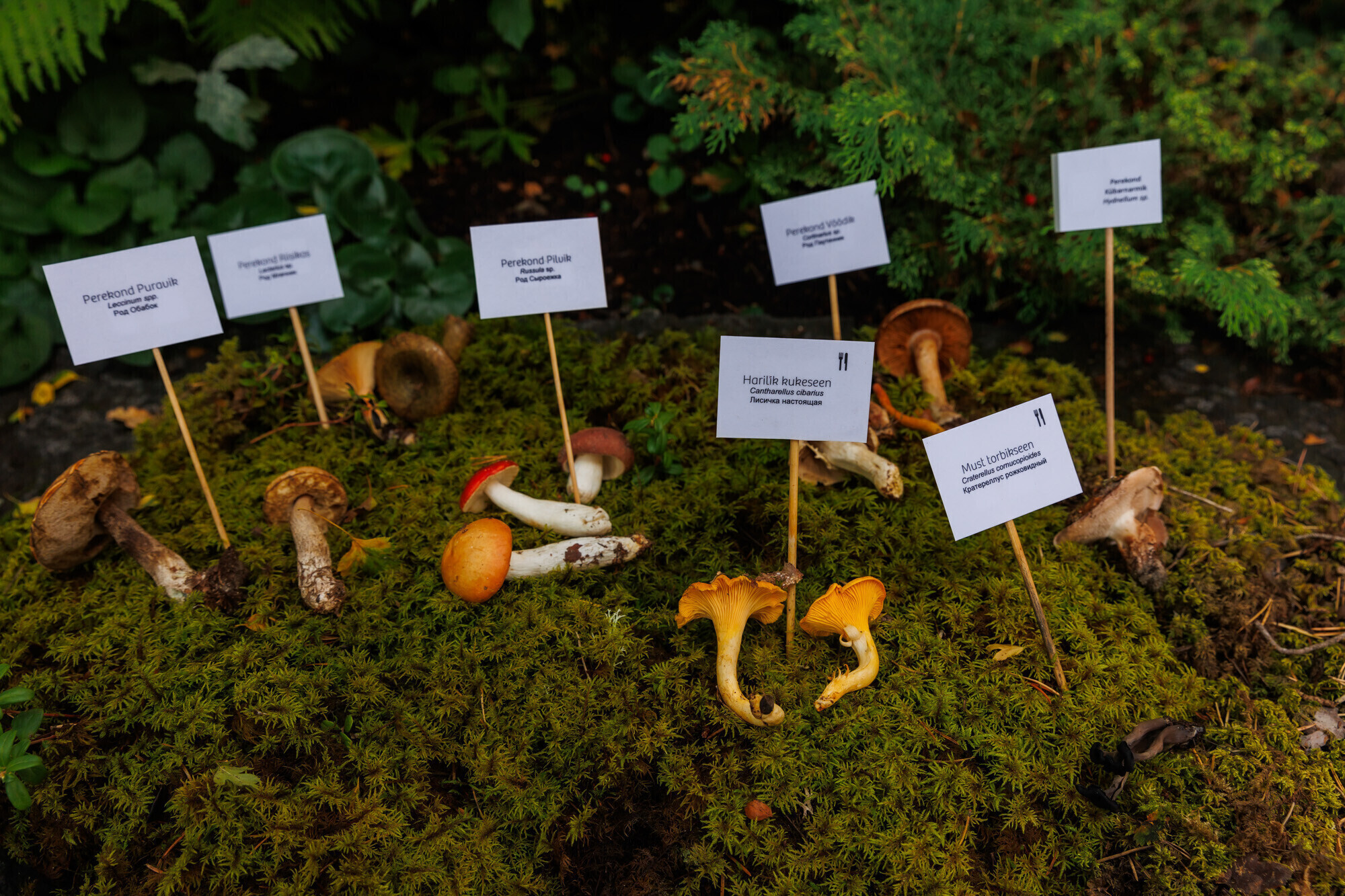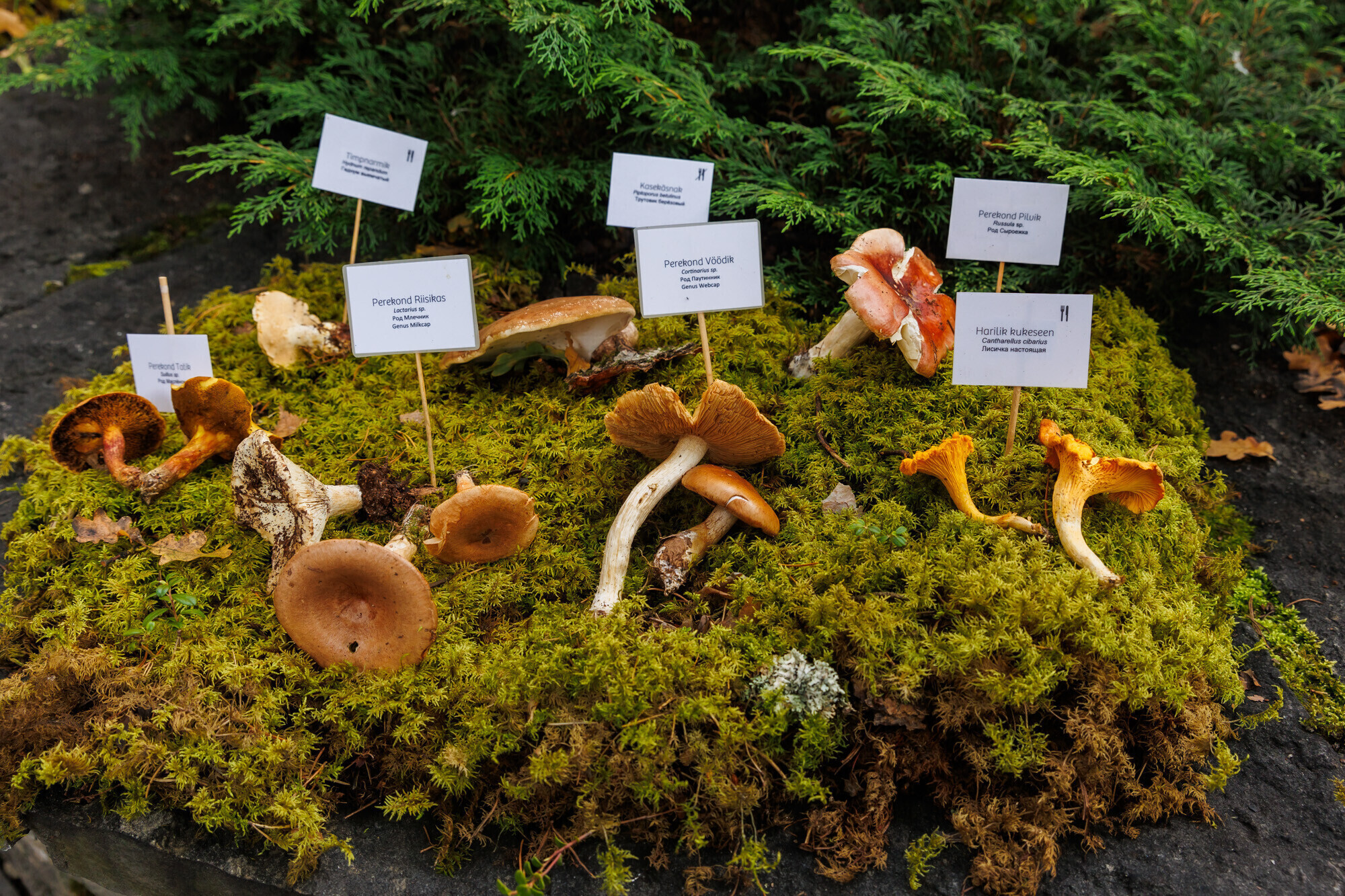 The exhibition teaches visitors about edible, non-edible, and poisonous mushrooms and displays specimens from across Estonia.