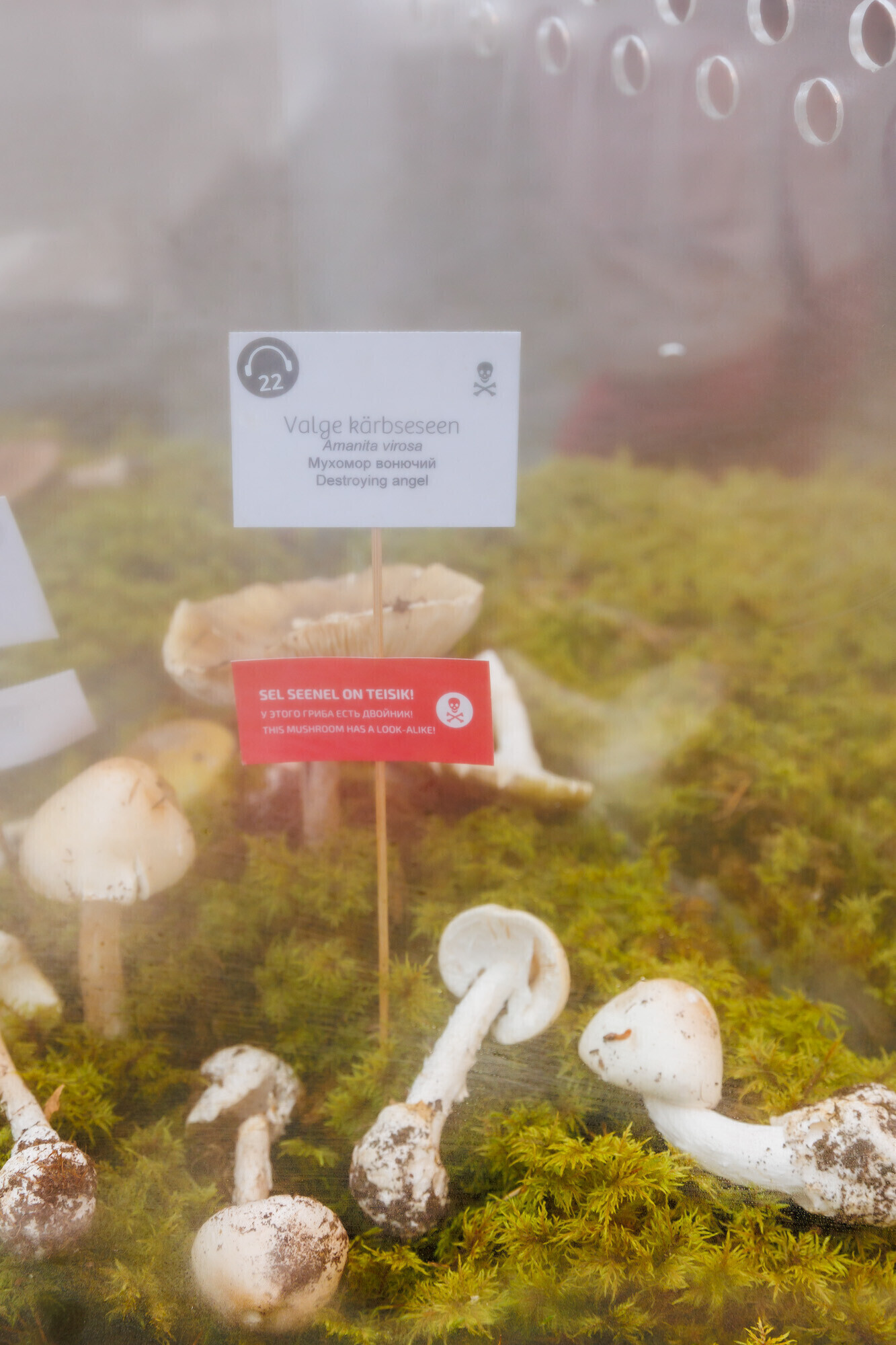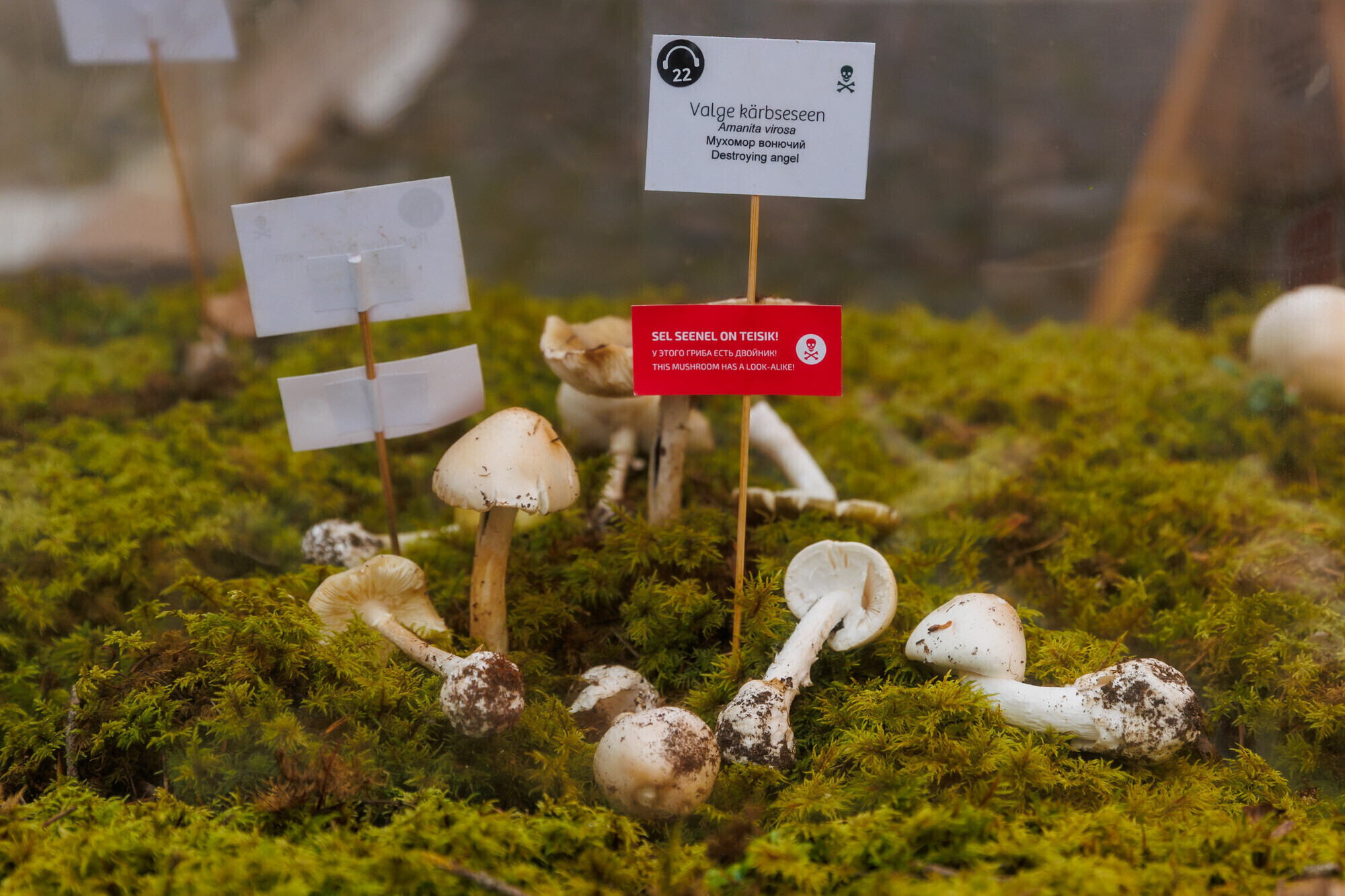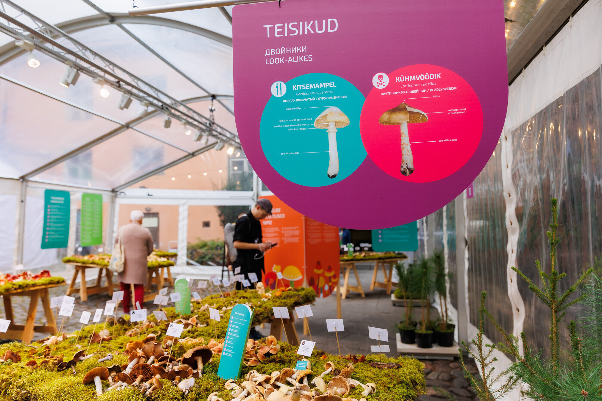 The exhibition teaches visitors about edible, non-edible, and poisonous mushrooms and displays specimens from across Estonia.