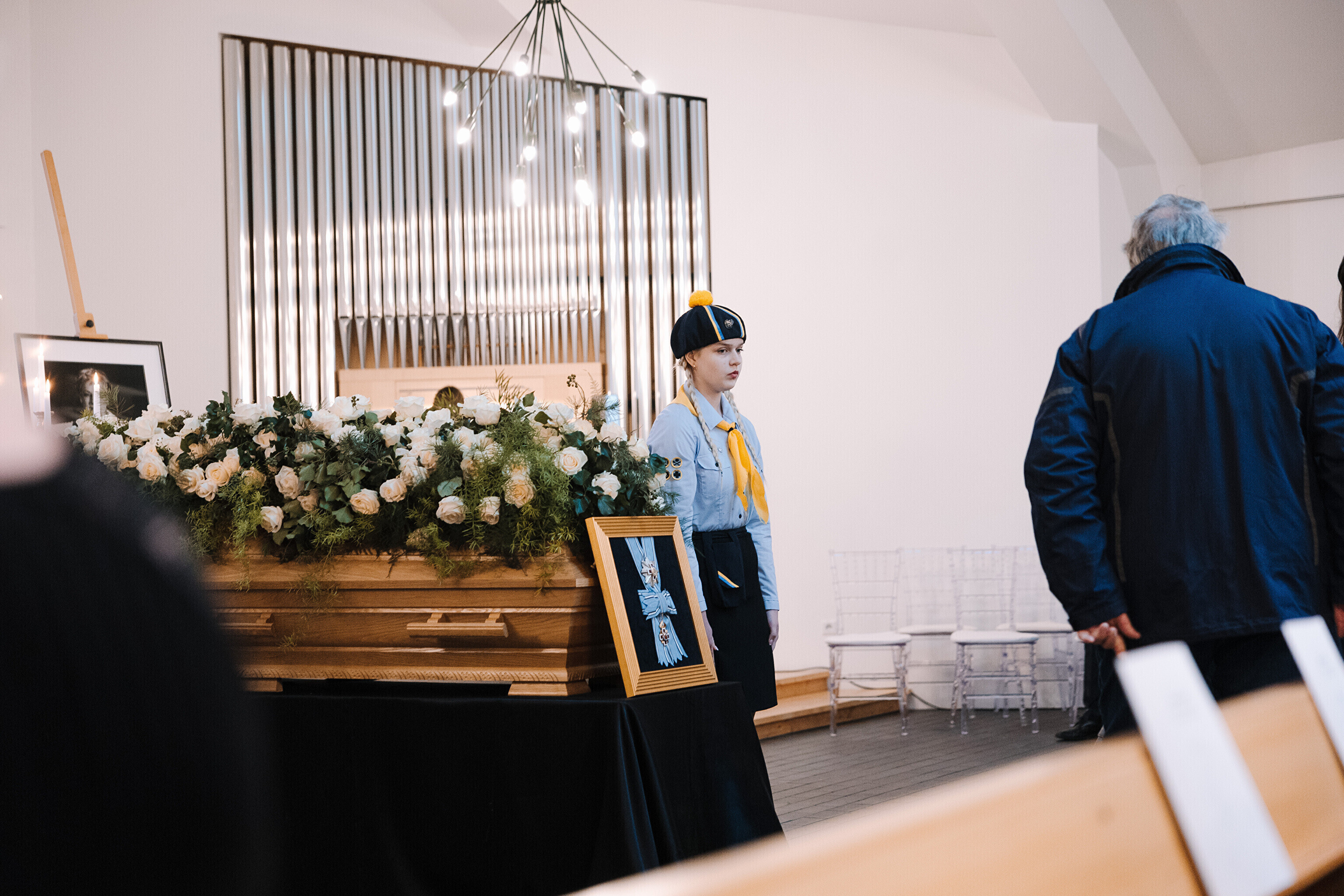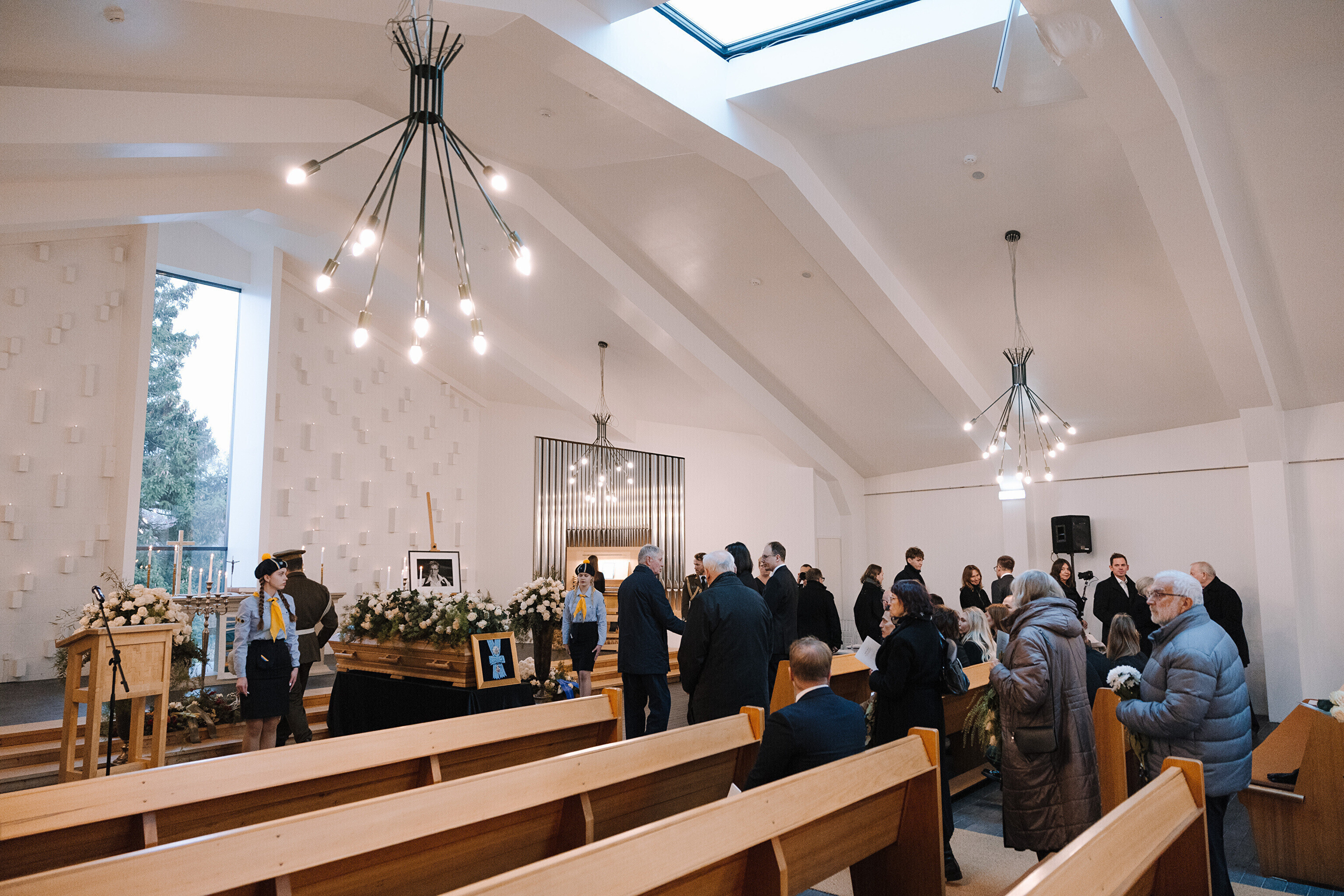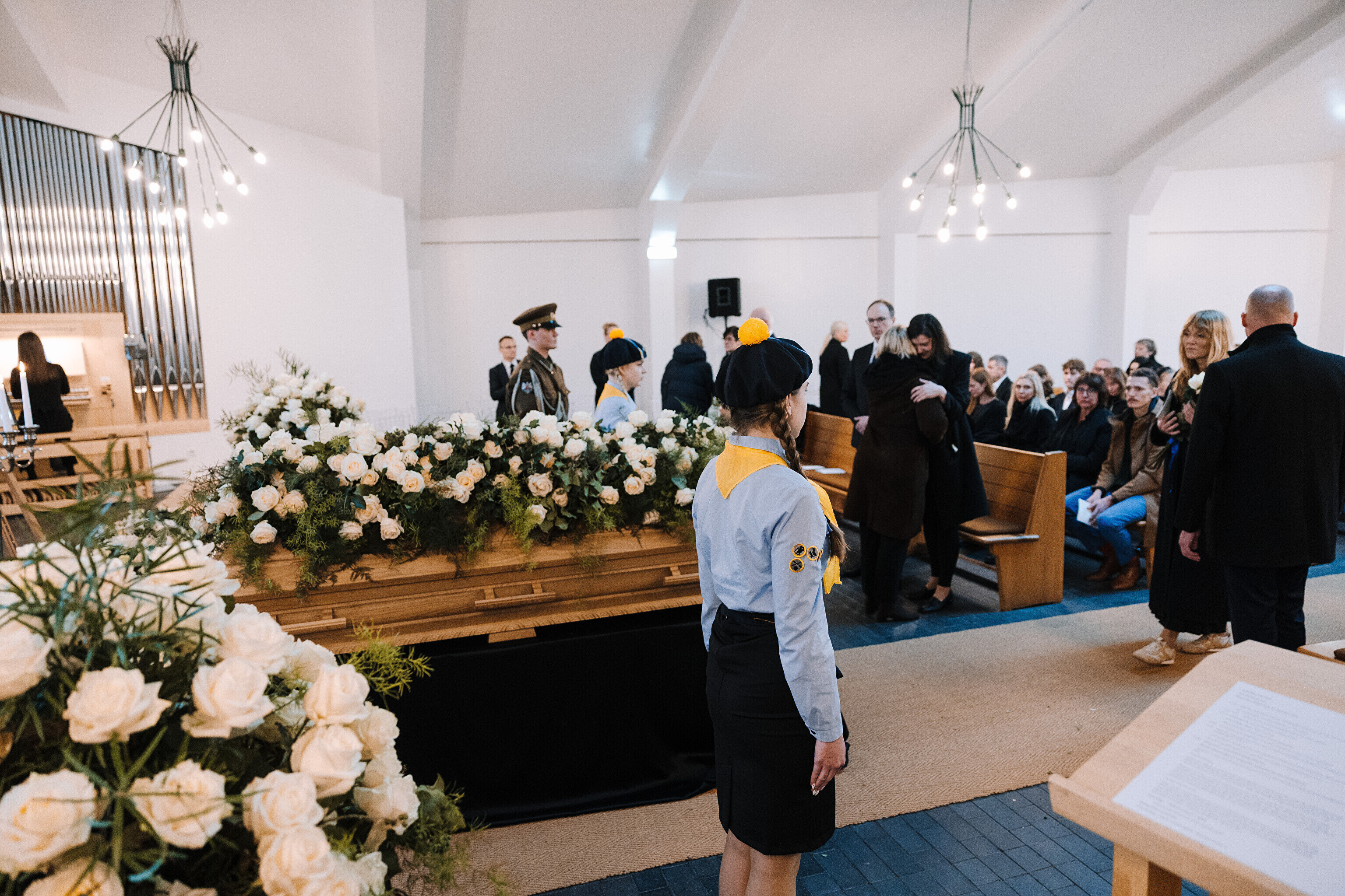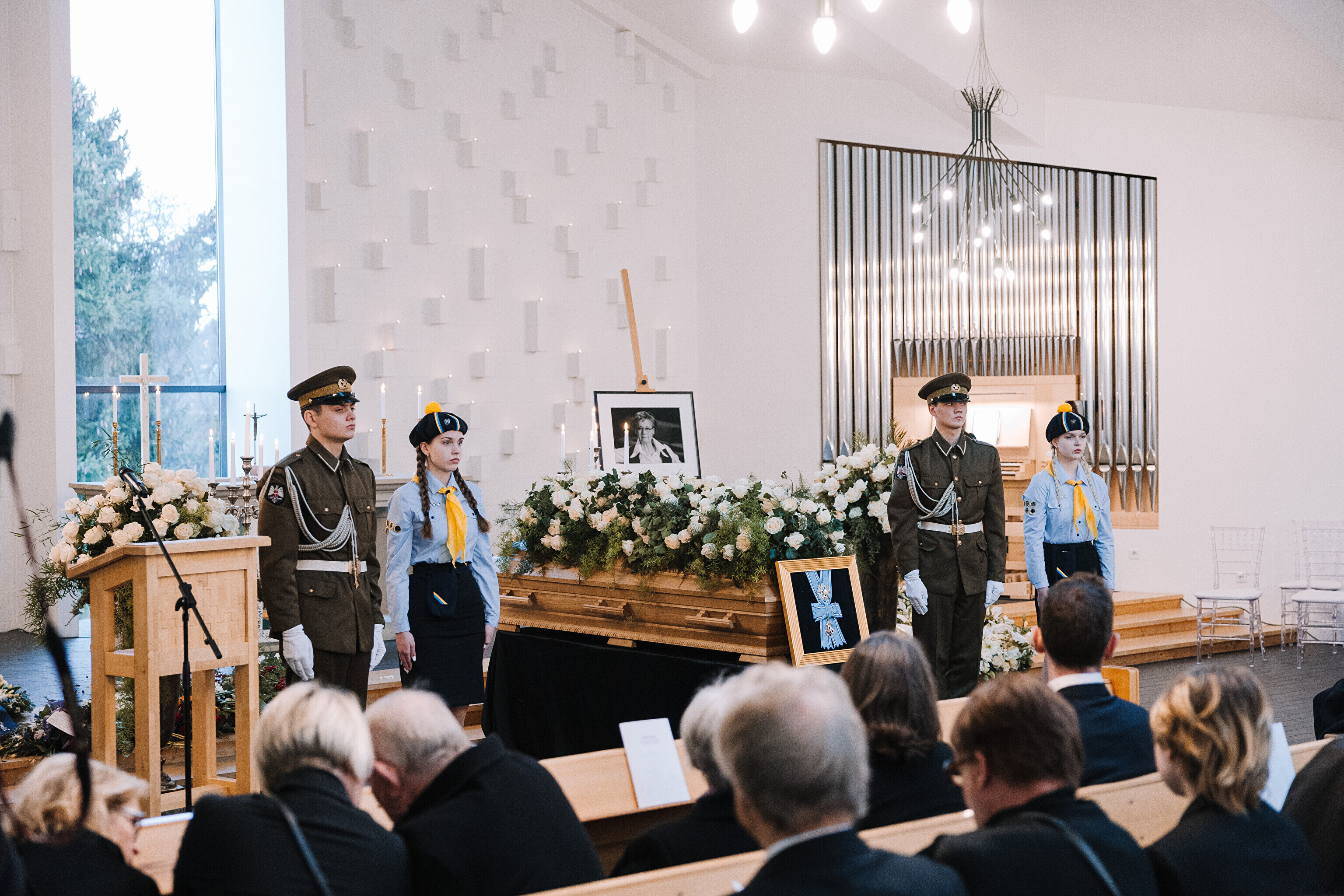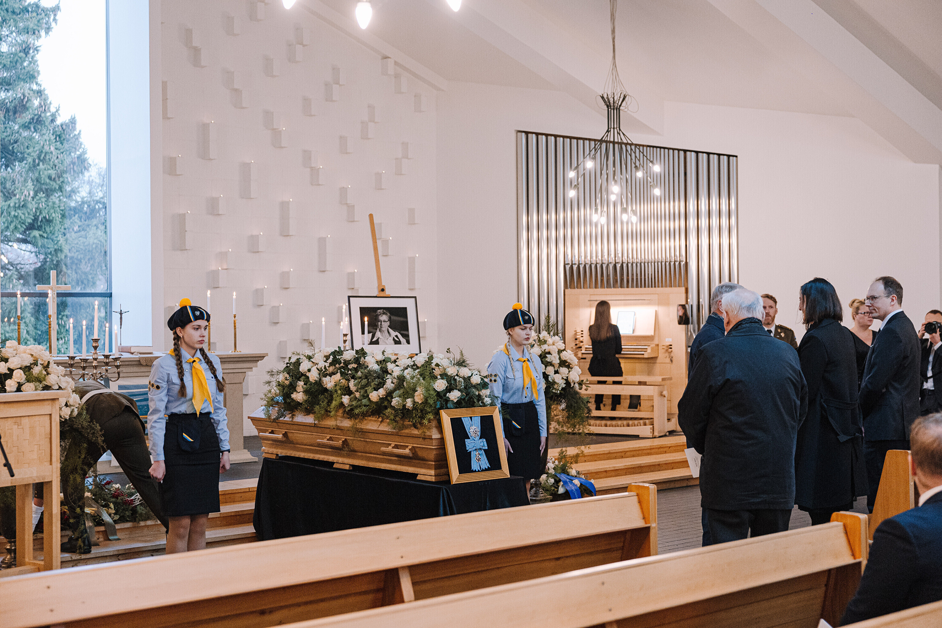 Condolences could be left at Viimsi St. Jacob's Church (Viimsi Jaakobi kirik) on Friday.