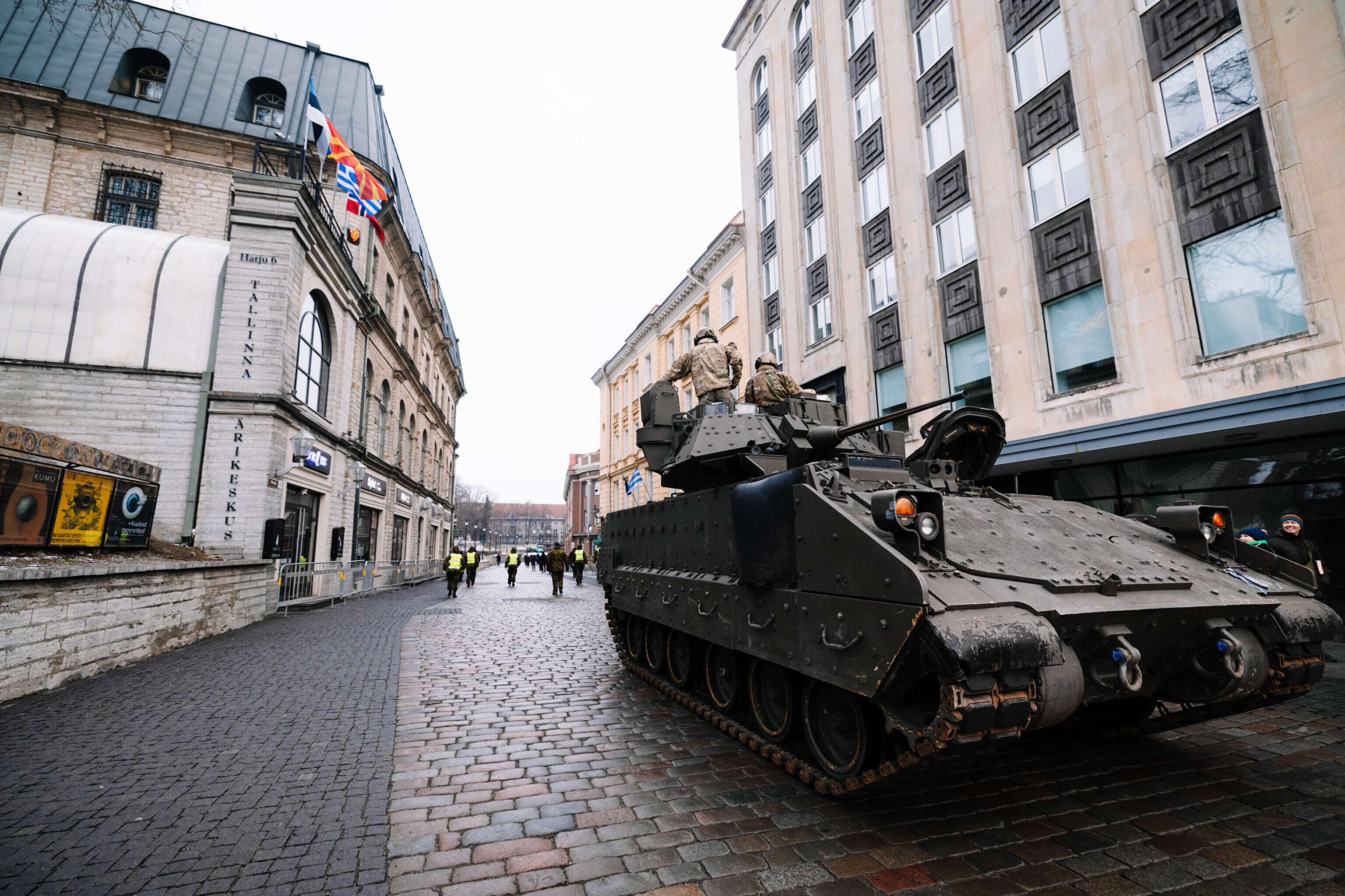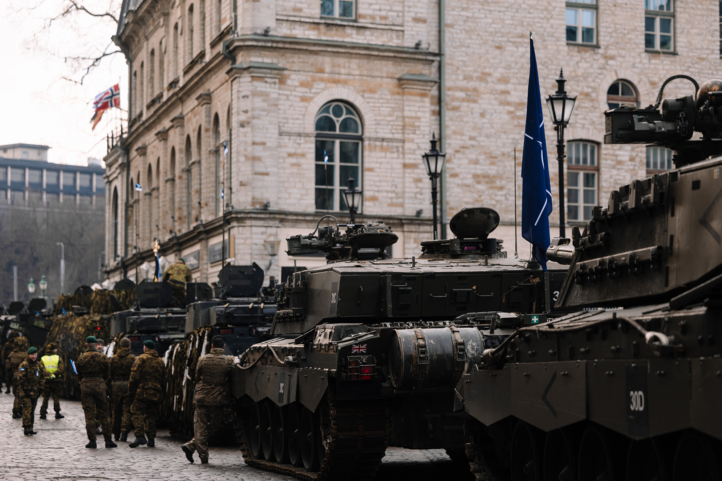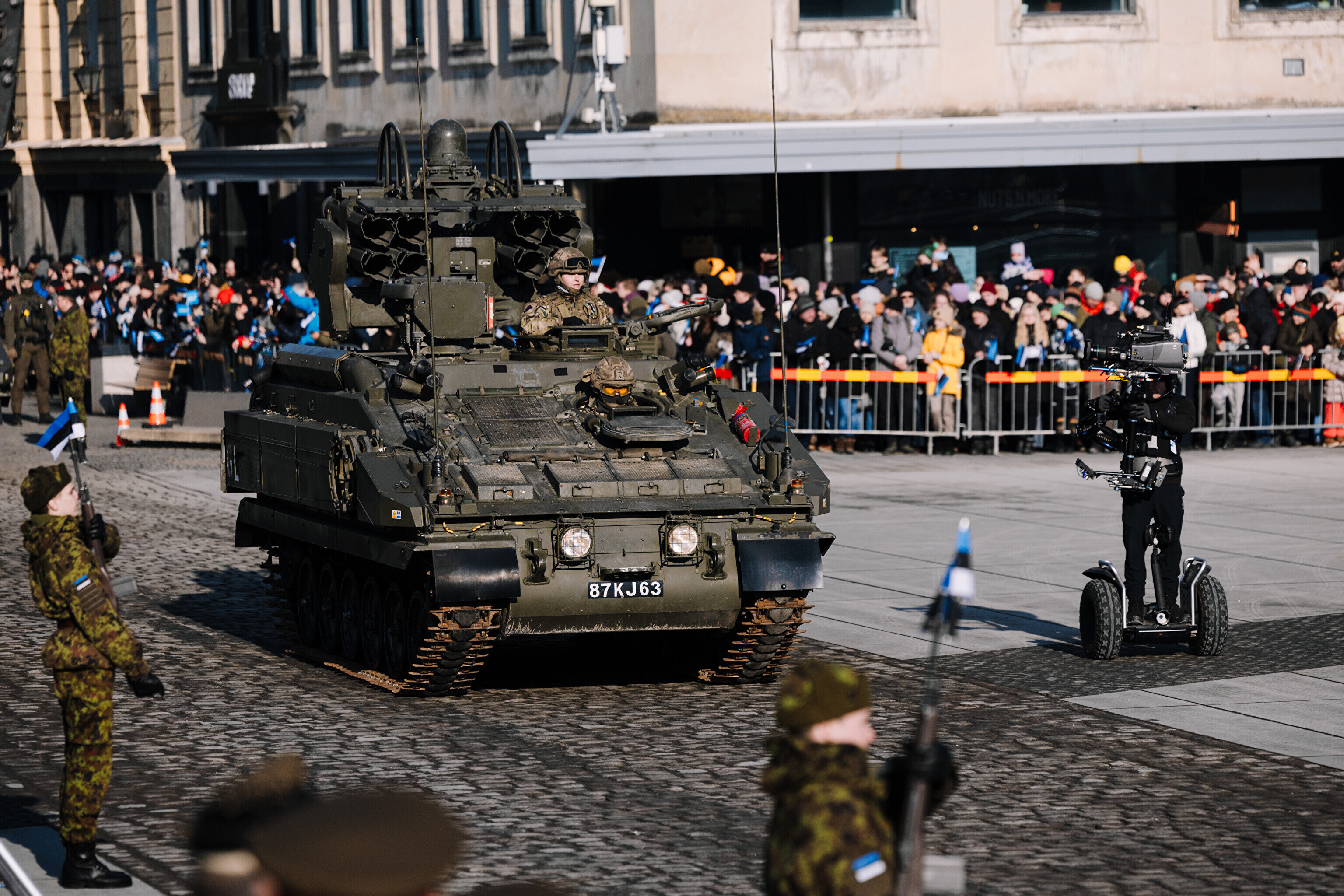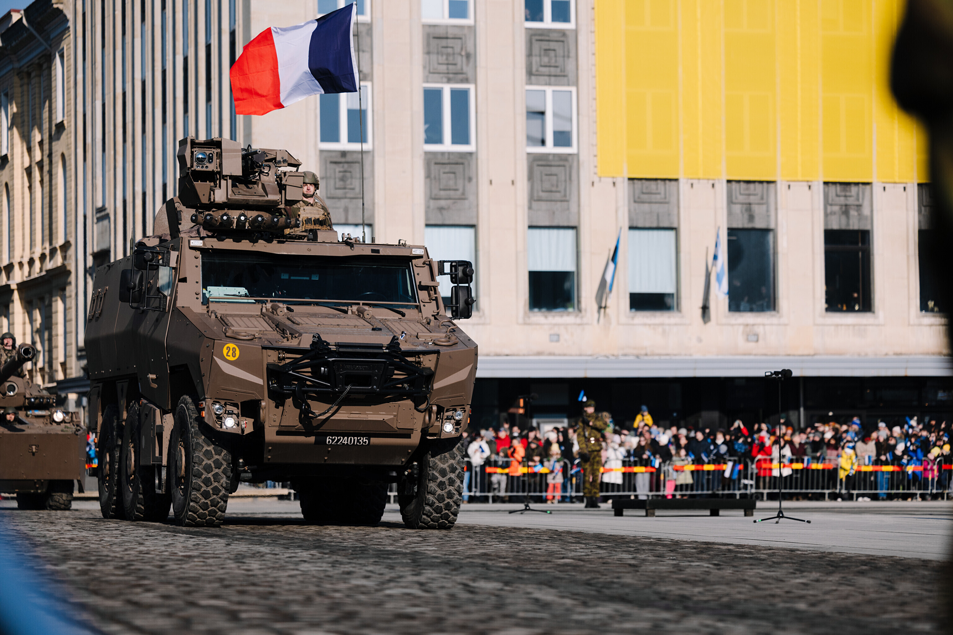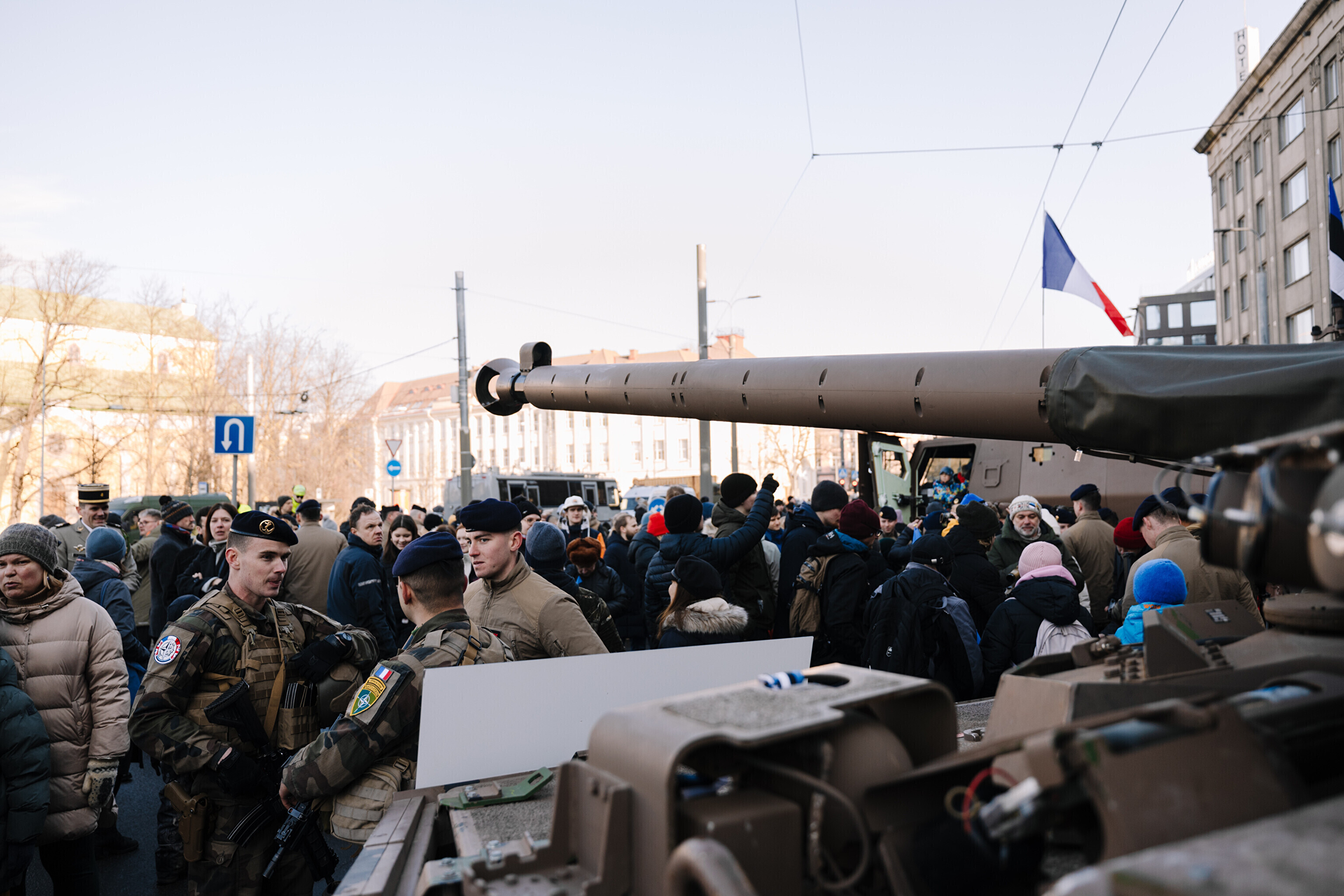 In addition to Estonian Defence Forces equipment, the parade showcased military equipment from NATO's enhanced Forward Presence battlegroup, including vehicles from the United Kingdom, France, and the United States.