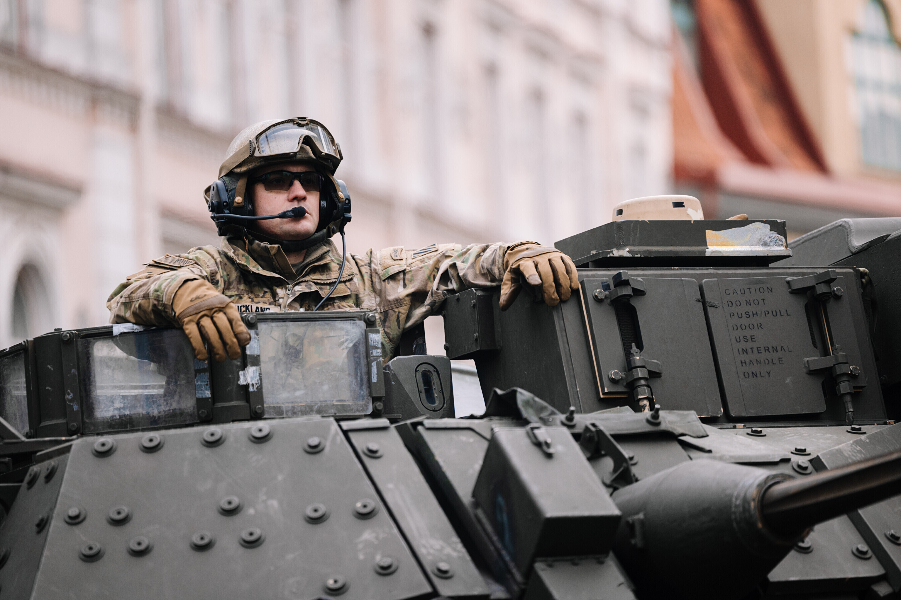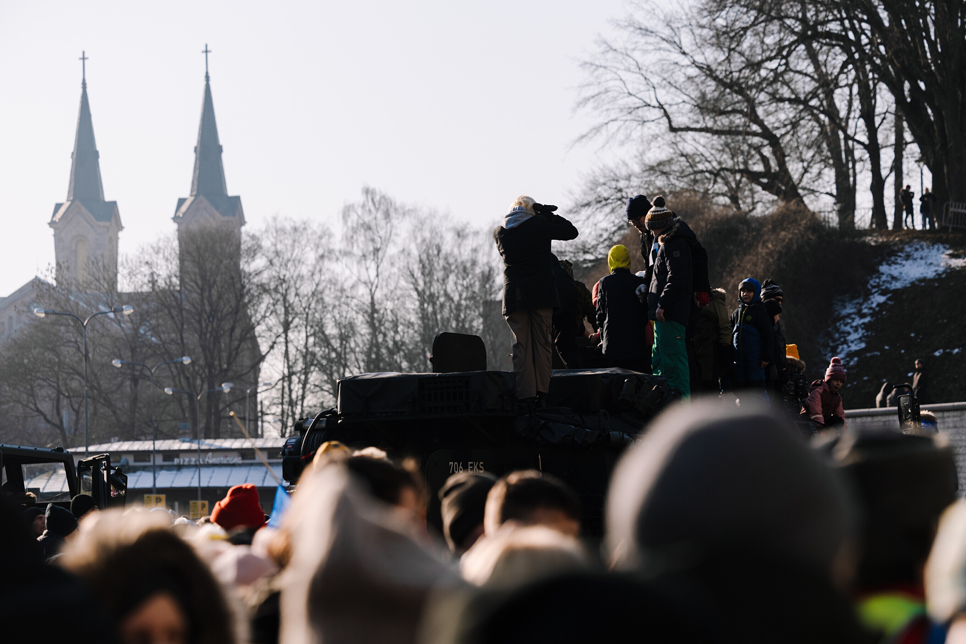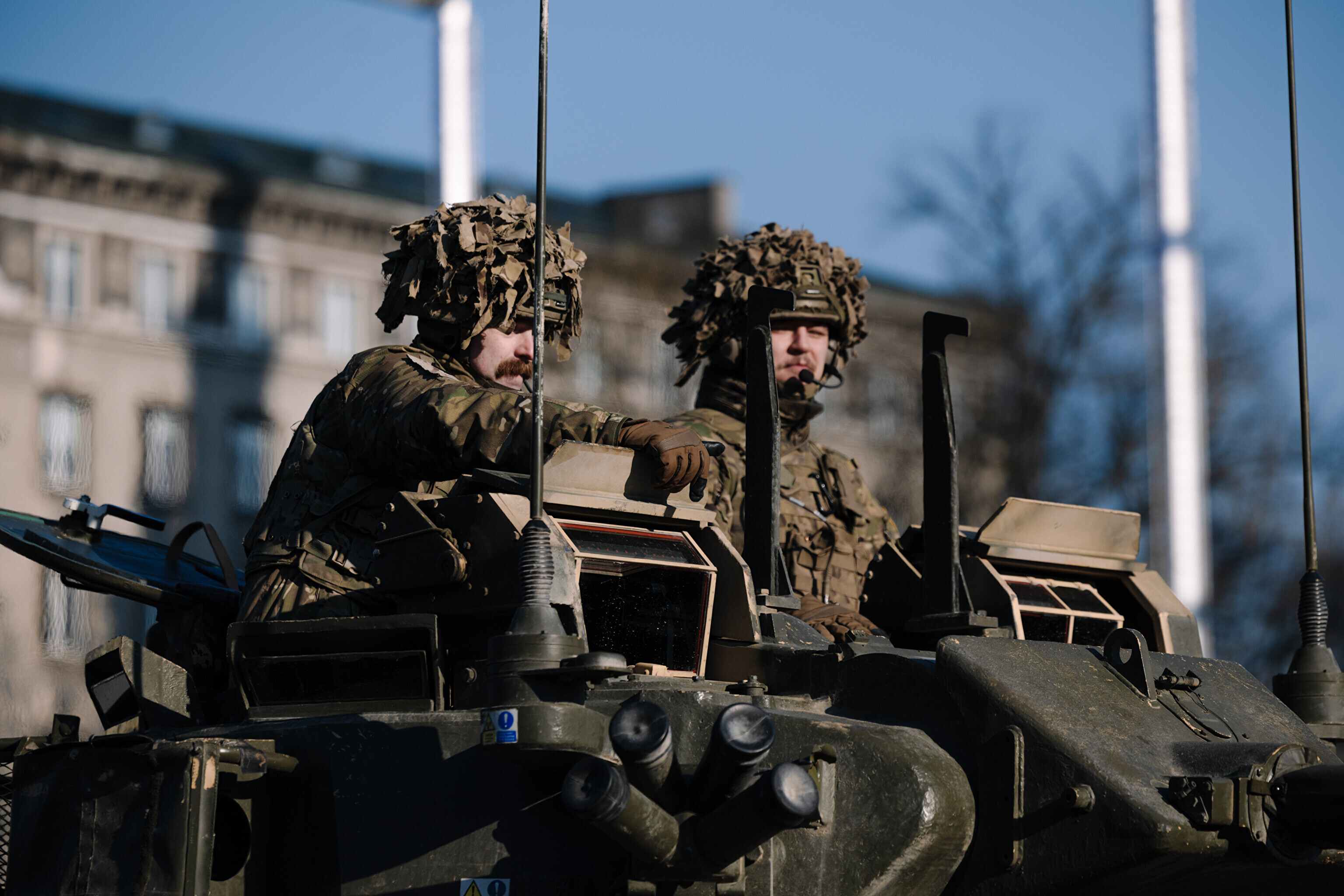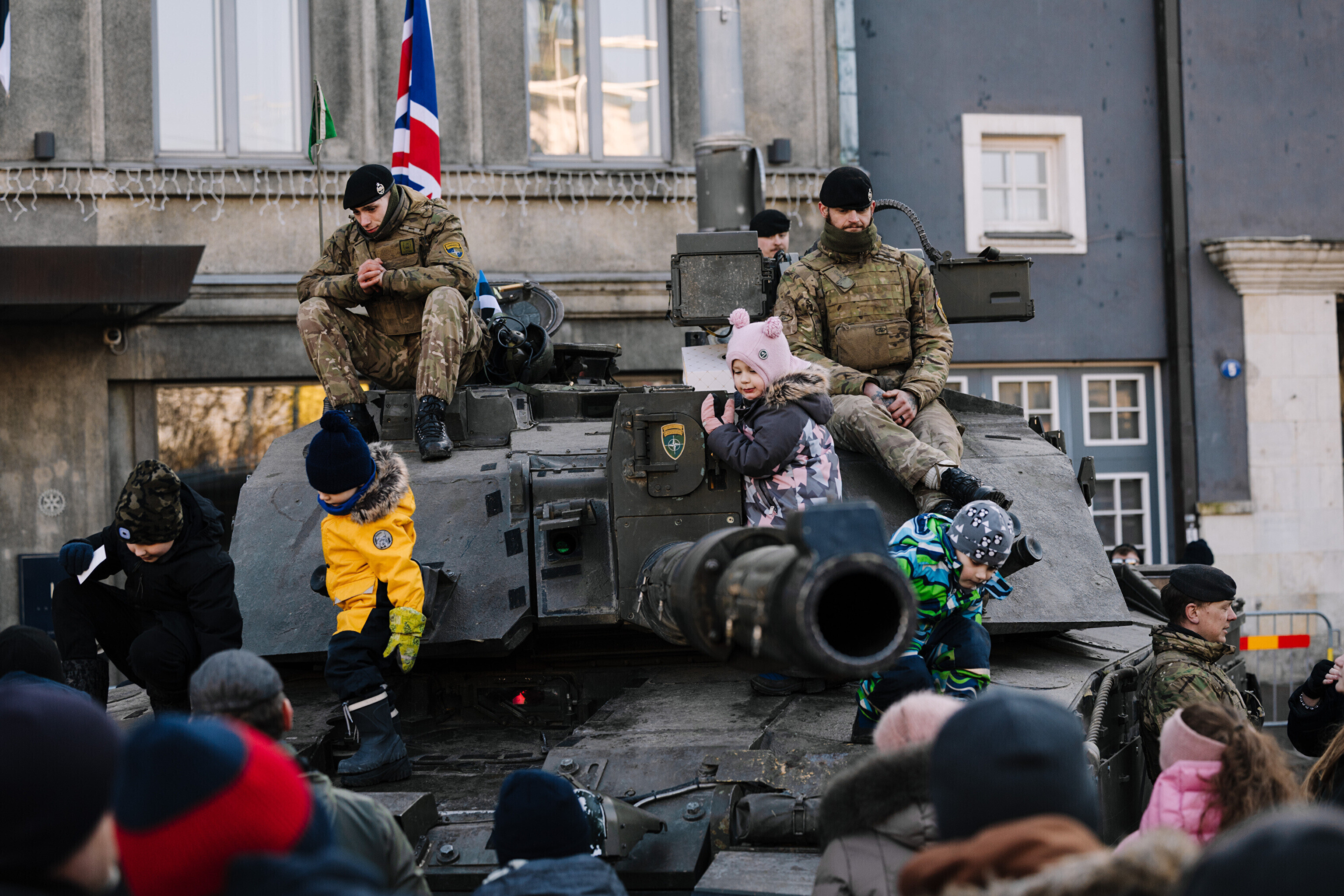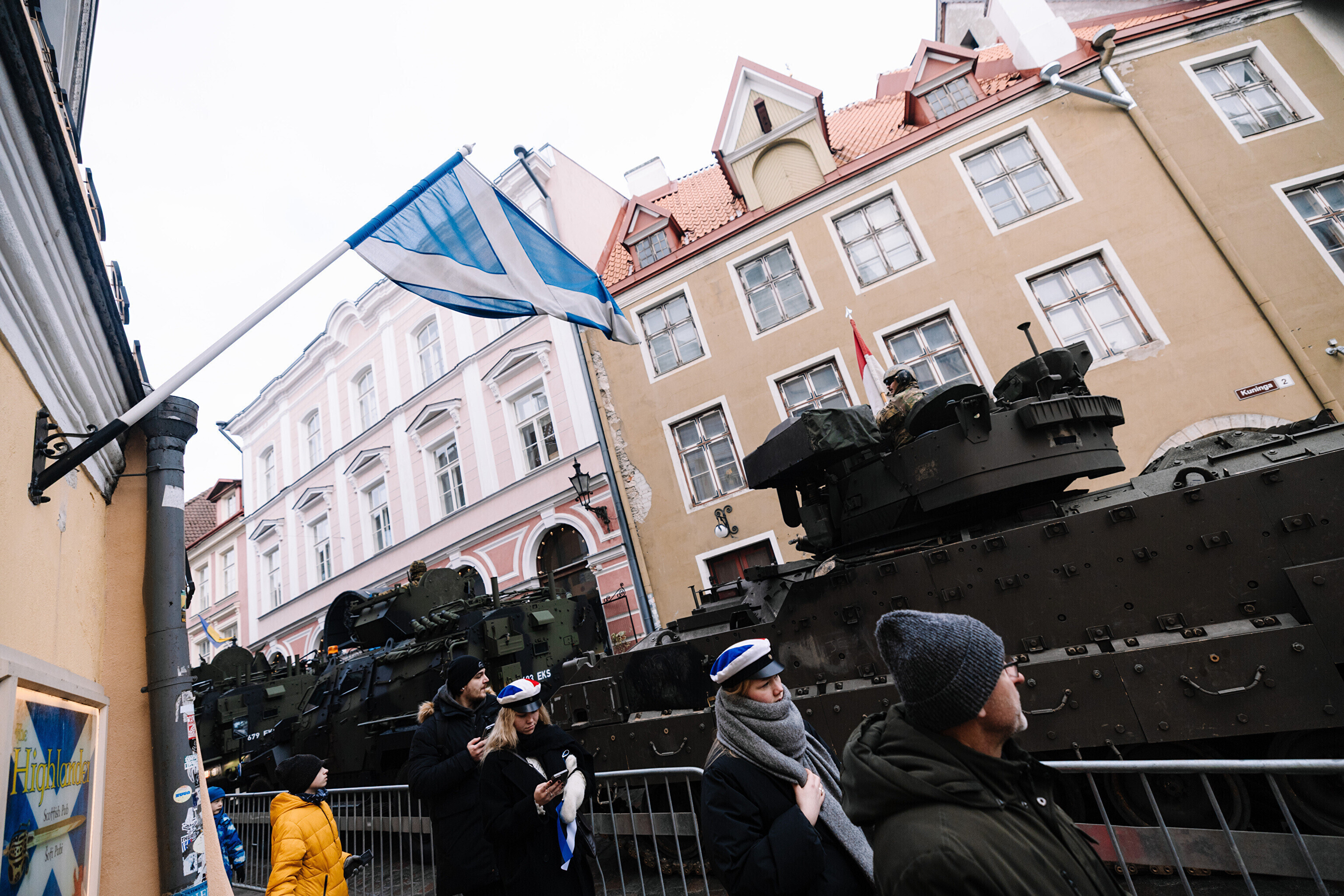 In addition to Estonian Defence Forces equipment, the parade showcased military equipment from NATO's enhanced Forward Presence battlegroup, including vehicles from the United Kingdom, France, and the United States.