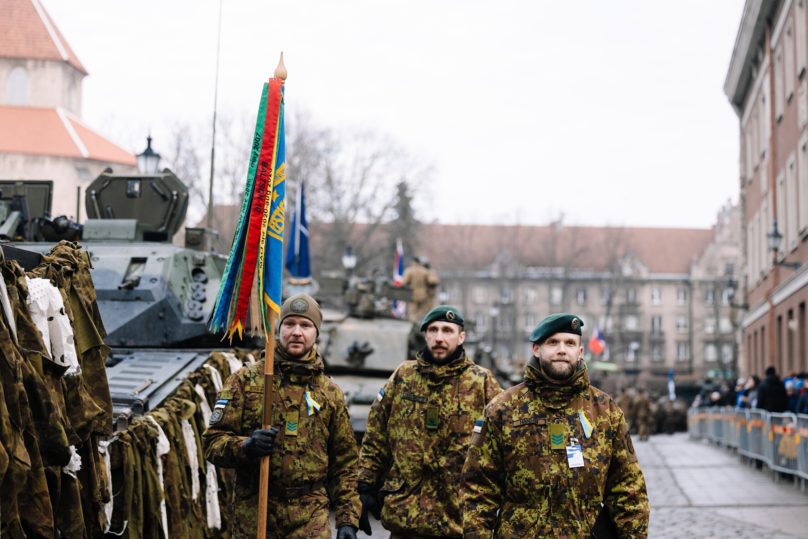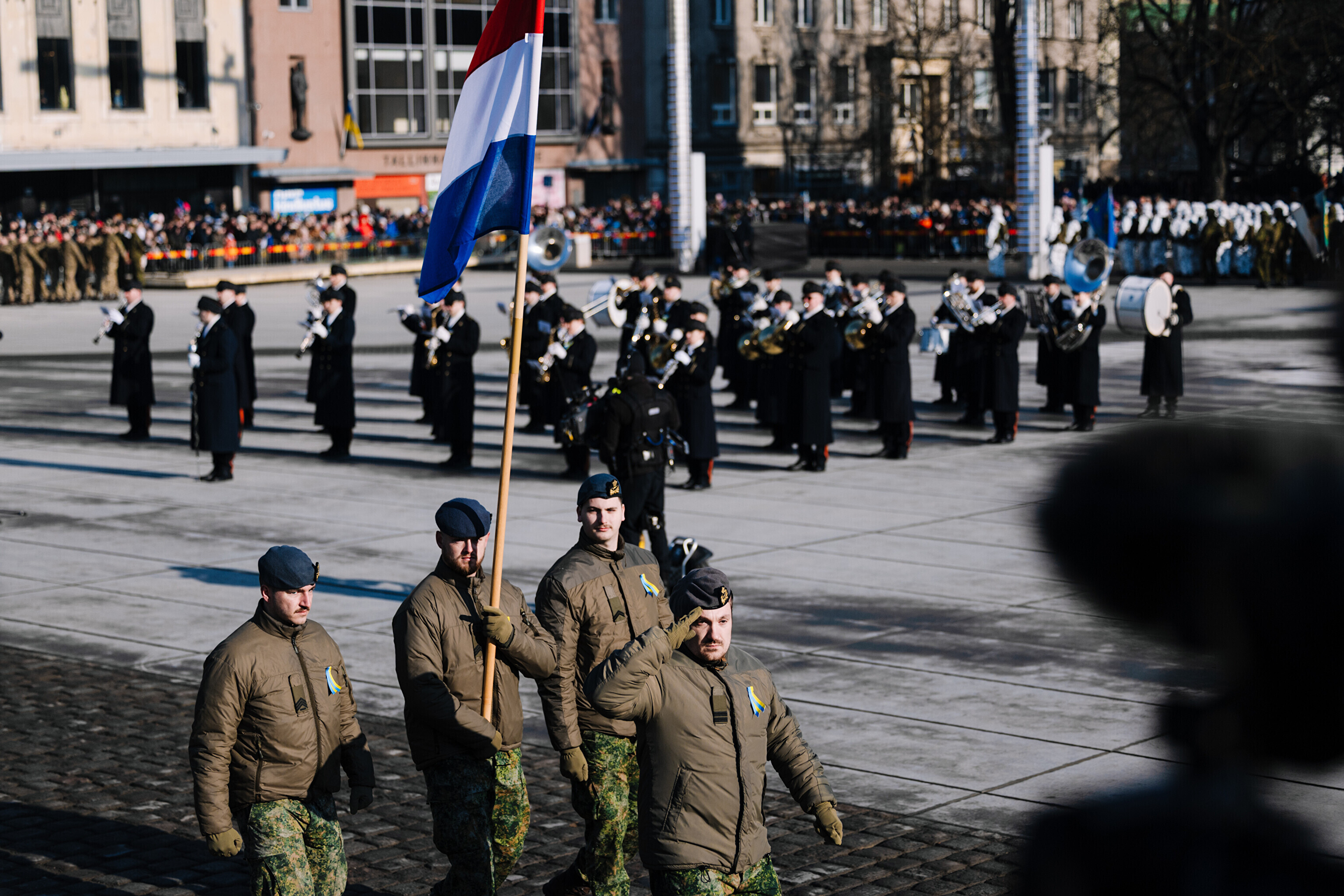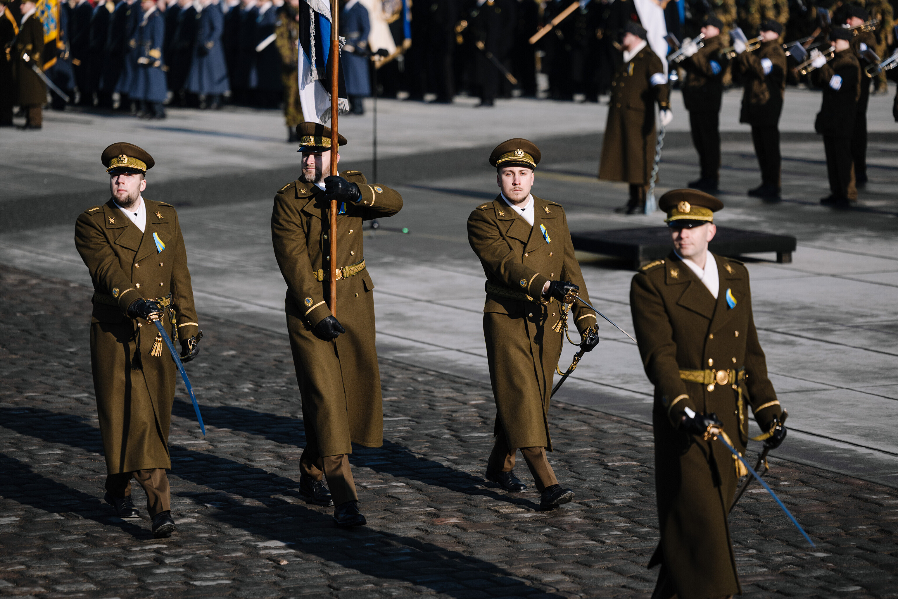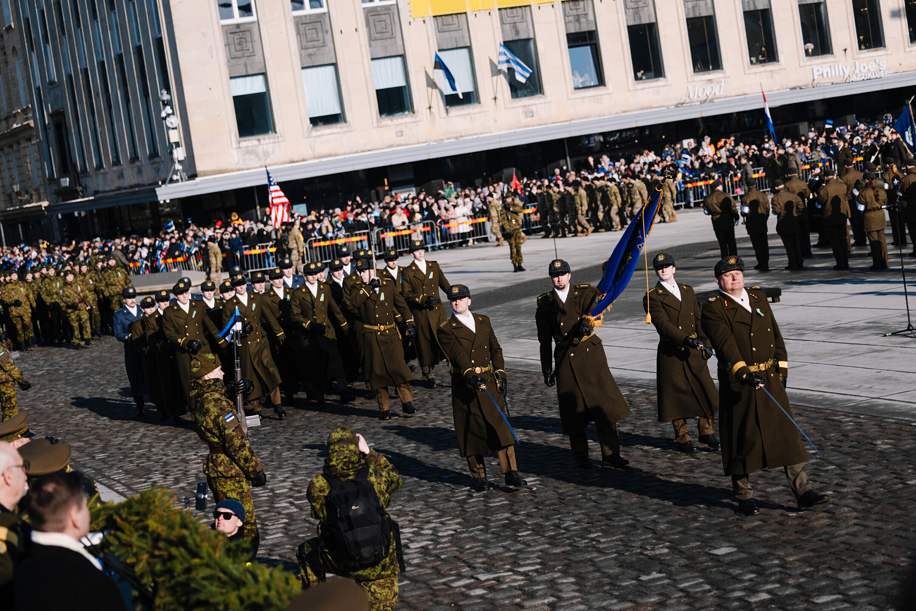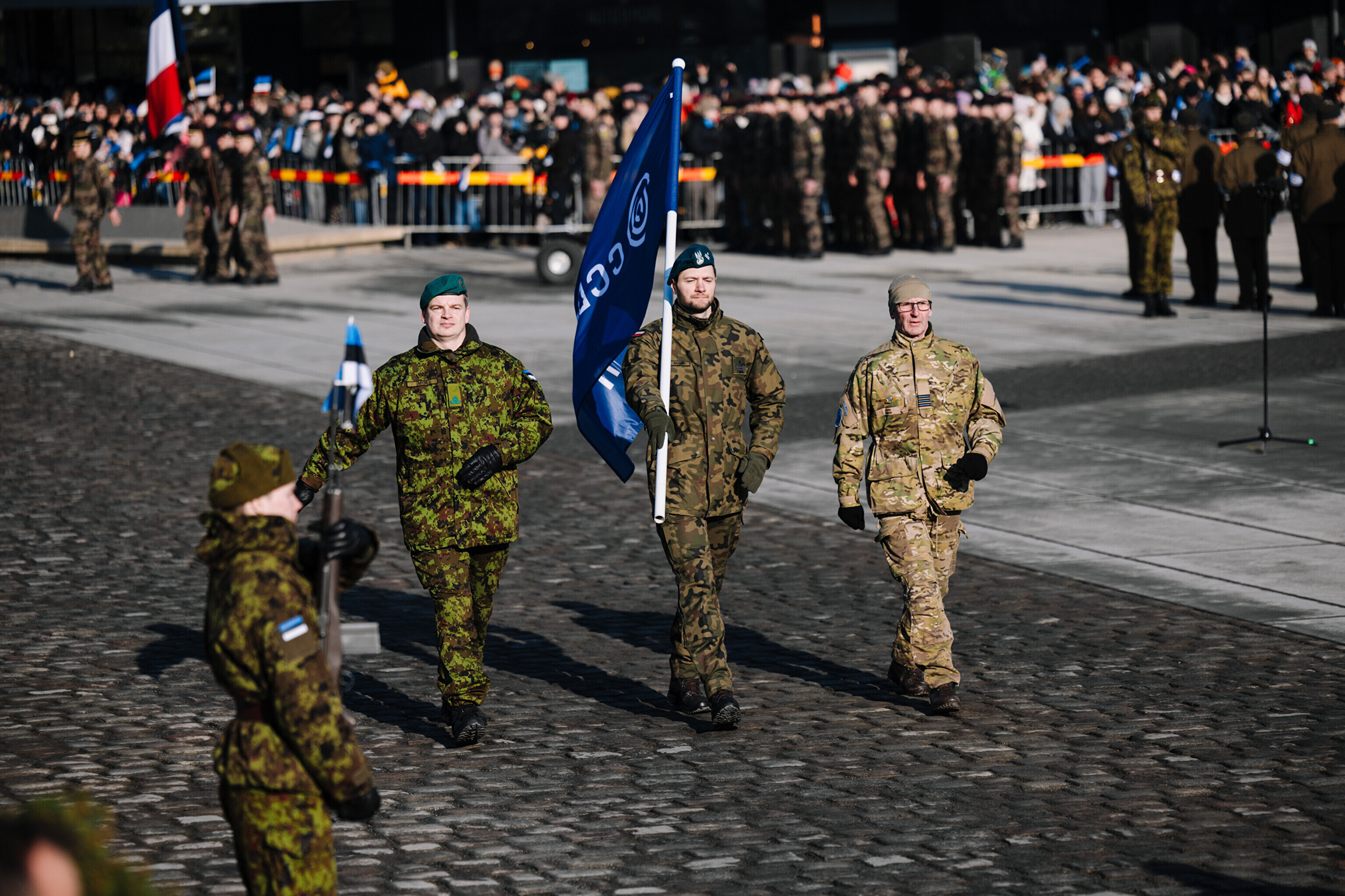Also participating in the parade were the color guards of the Baltic Defence College, NATO Cooperative Cyber Defence Centre of Excellence (CCDCOE), and NATO Force Integration Unit (NFIU). Among the allies, the Netherlands had a color guard present, as well as the United Kingdom, France, and the United States, who participated with both their color guards and units.
