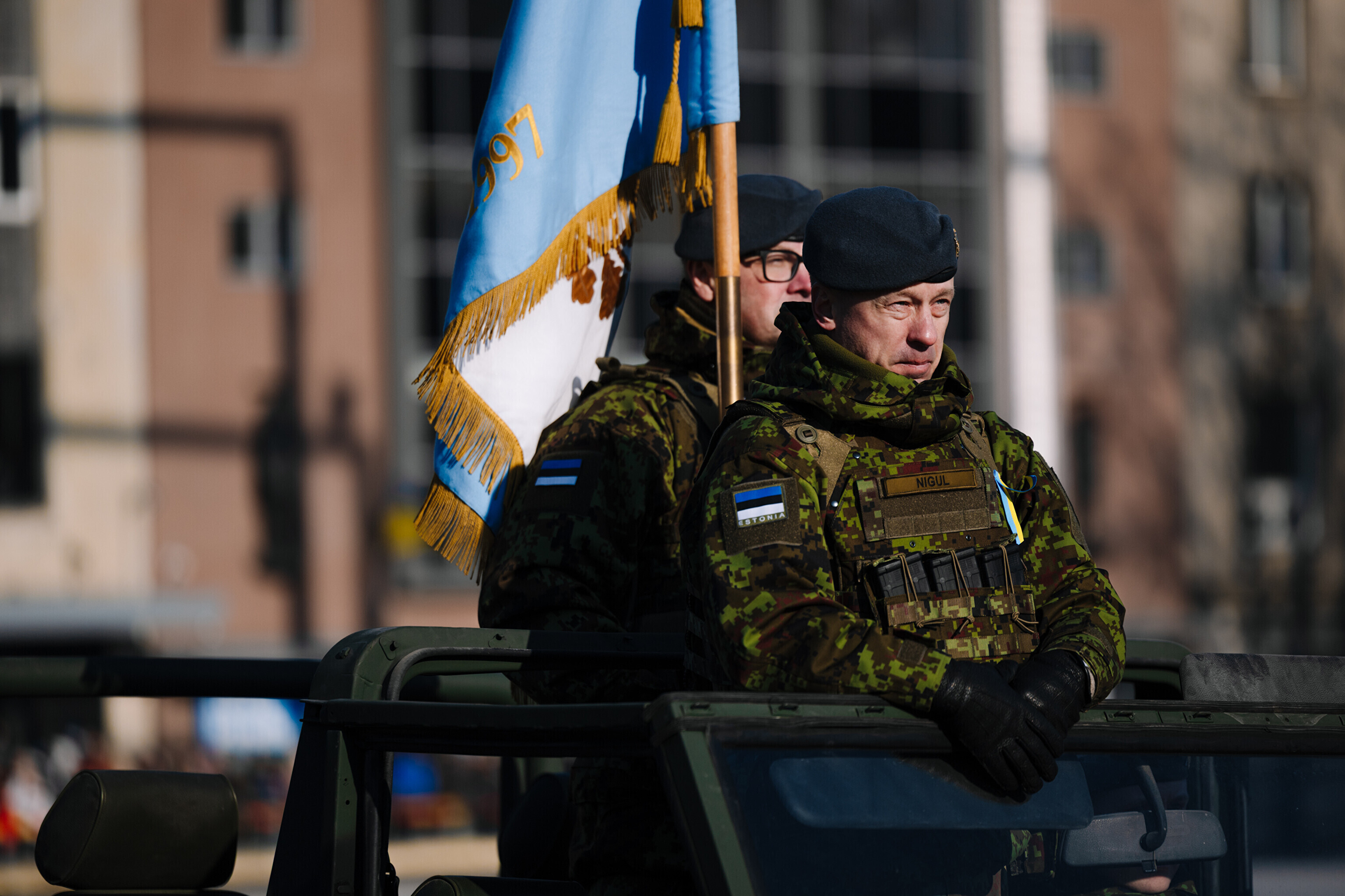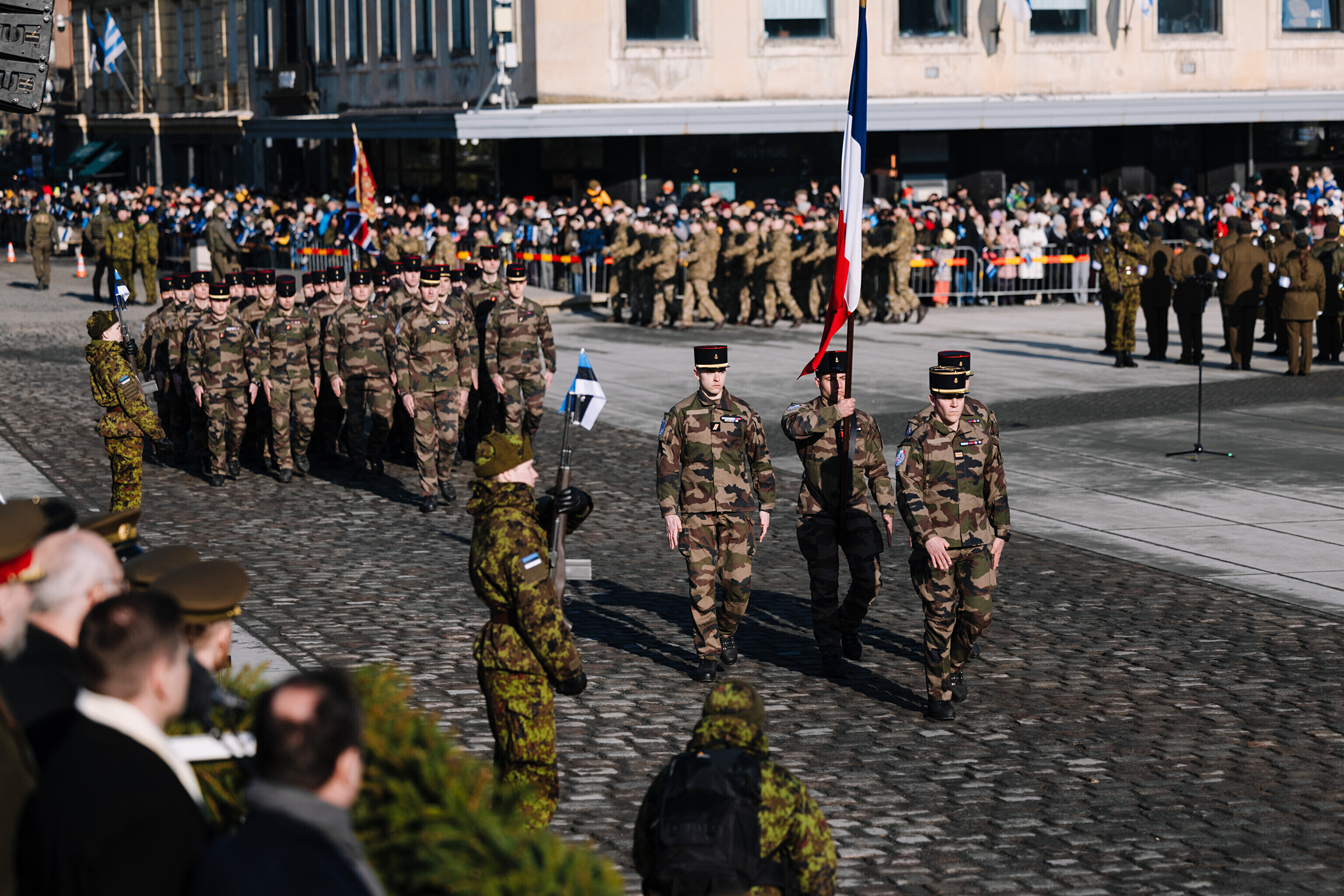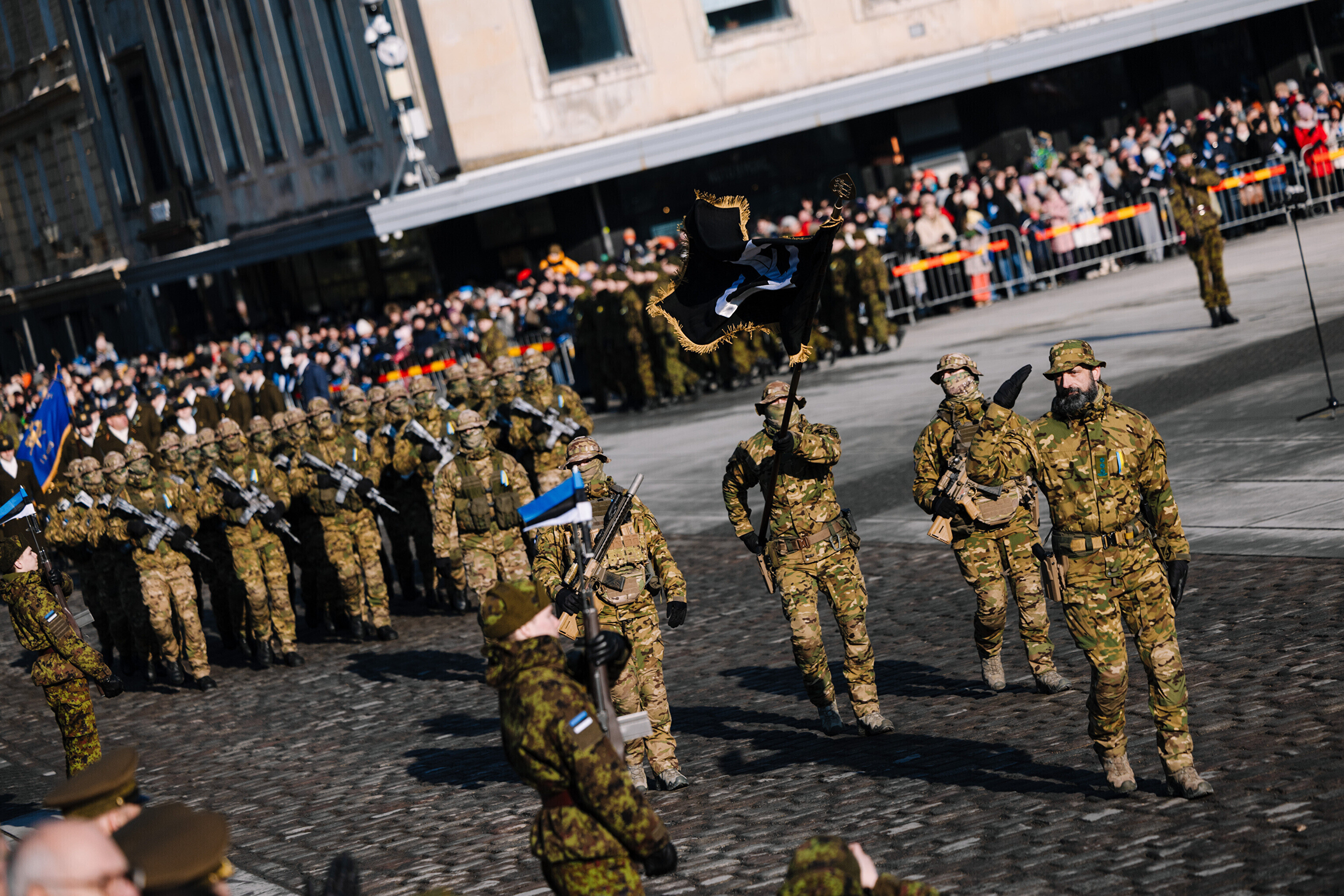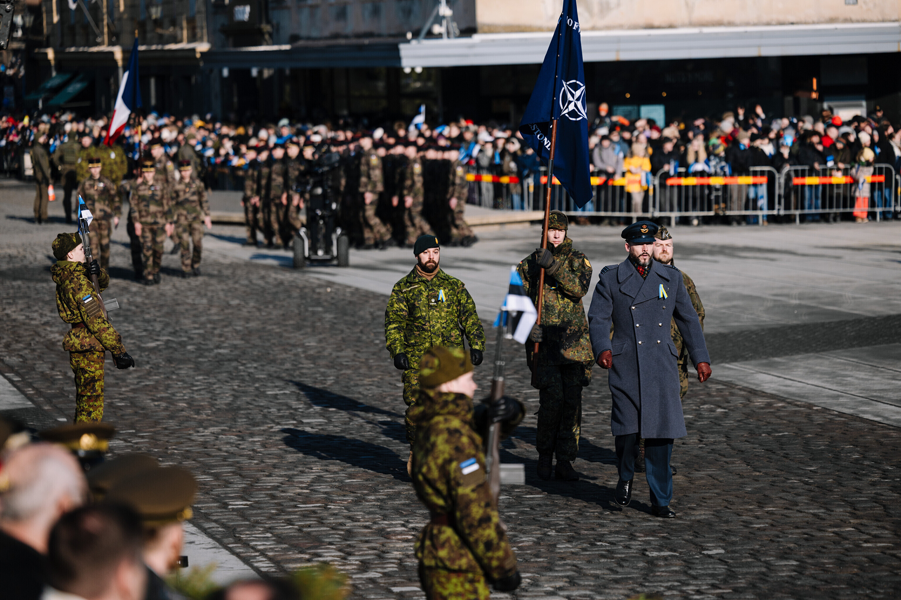 Also participating in the parade were the color guards of the Baltic Defence College, NATO Cooperative Cyber Defence Centre of Excellence (CCDCOE), and NATO Force Integration Unit (NFIU). Among the allies, the Netherlands had a color guard present, as well as the United Kingdom, France, and the United States, who participated with both their color guards and units.