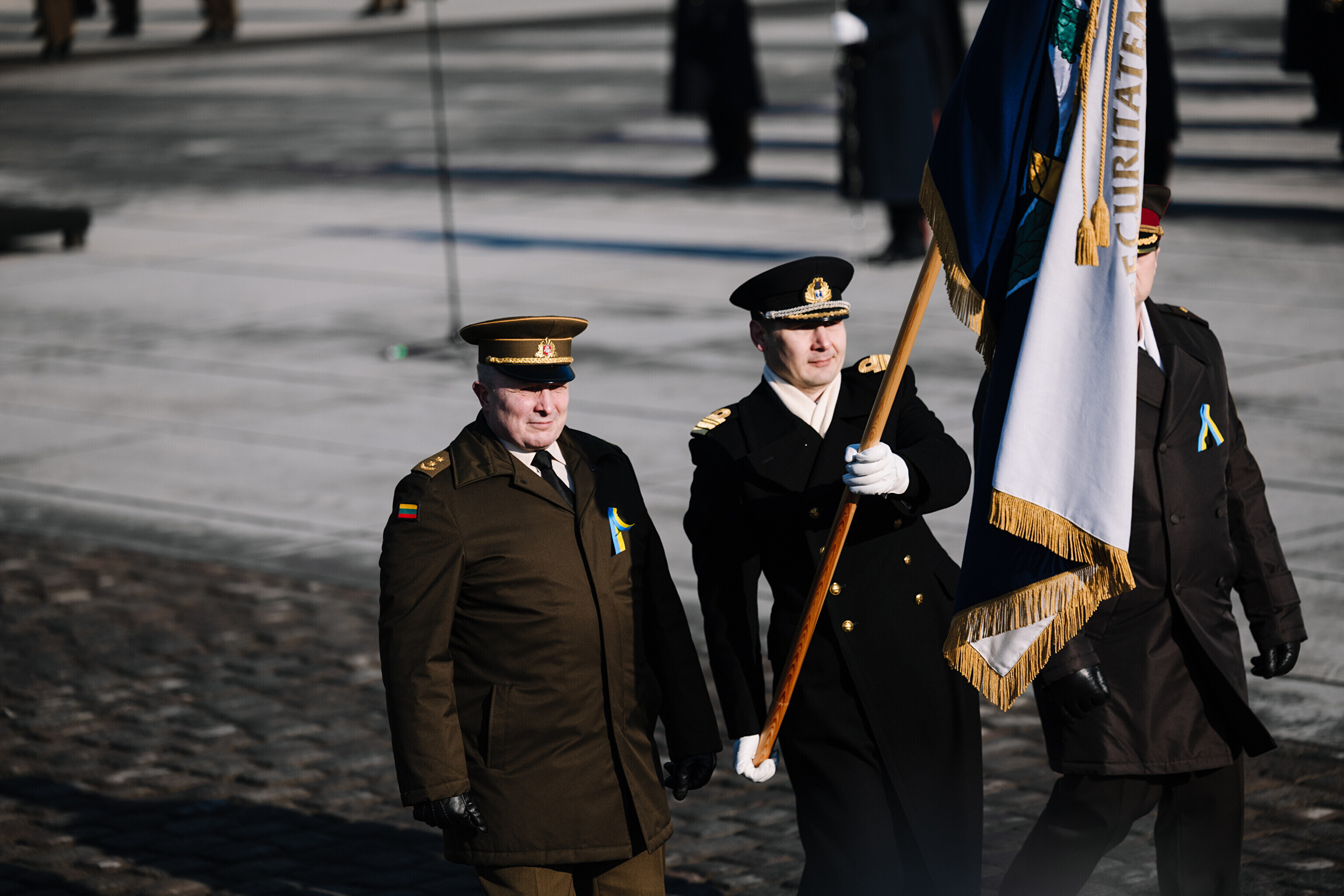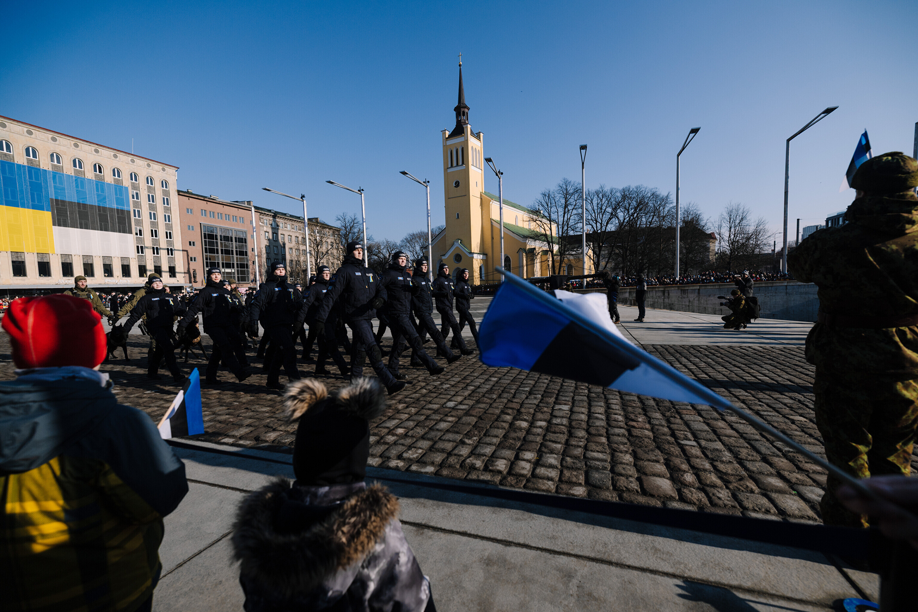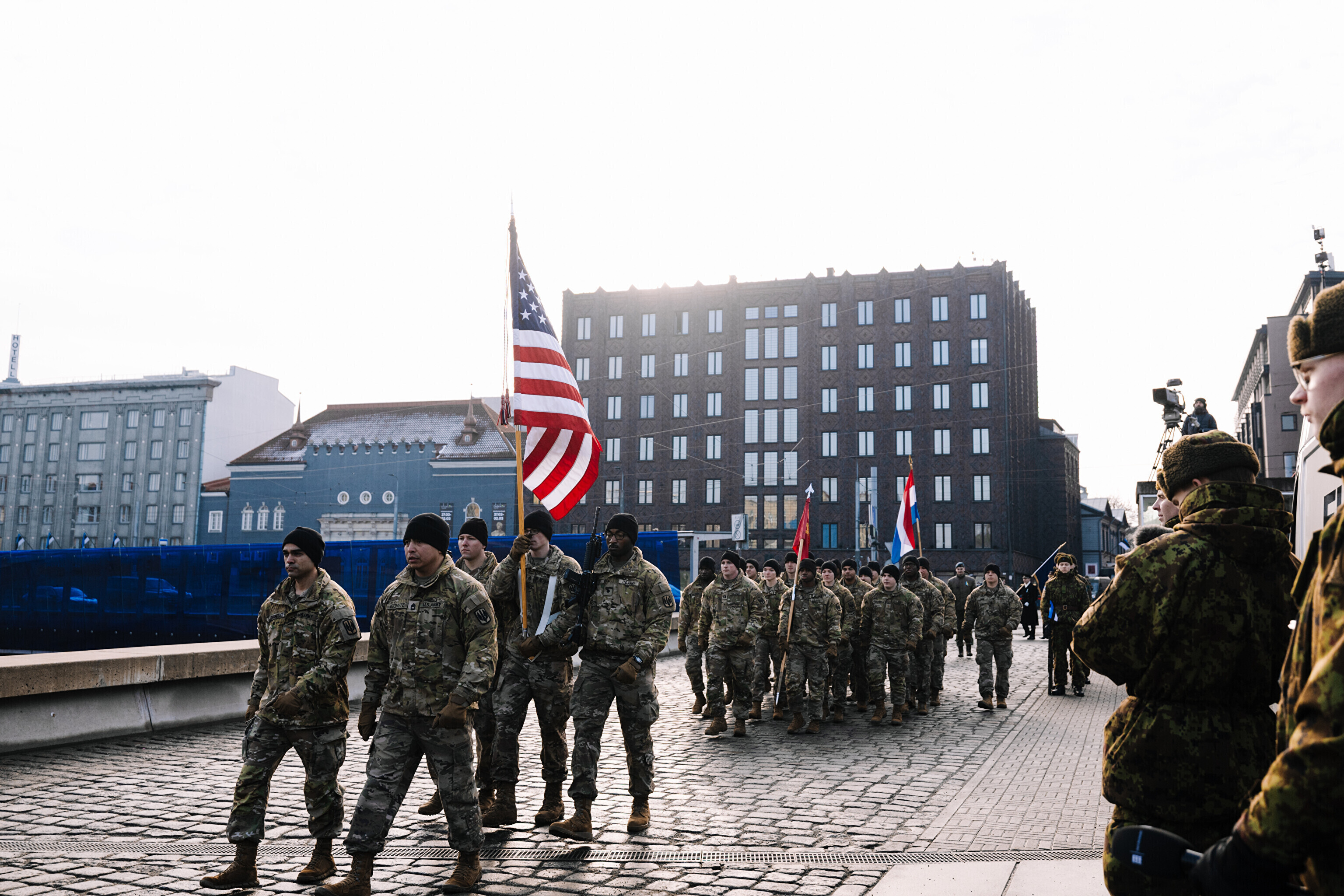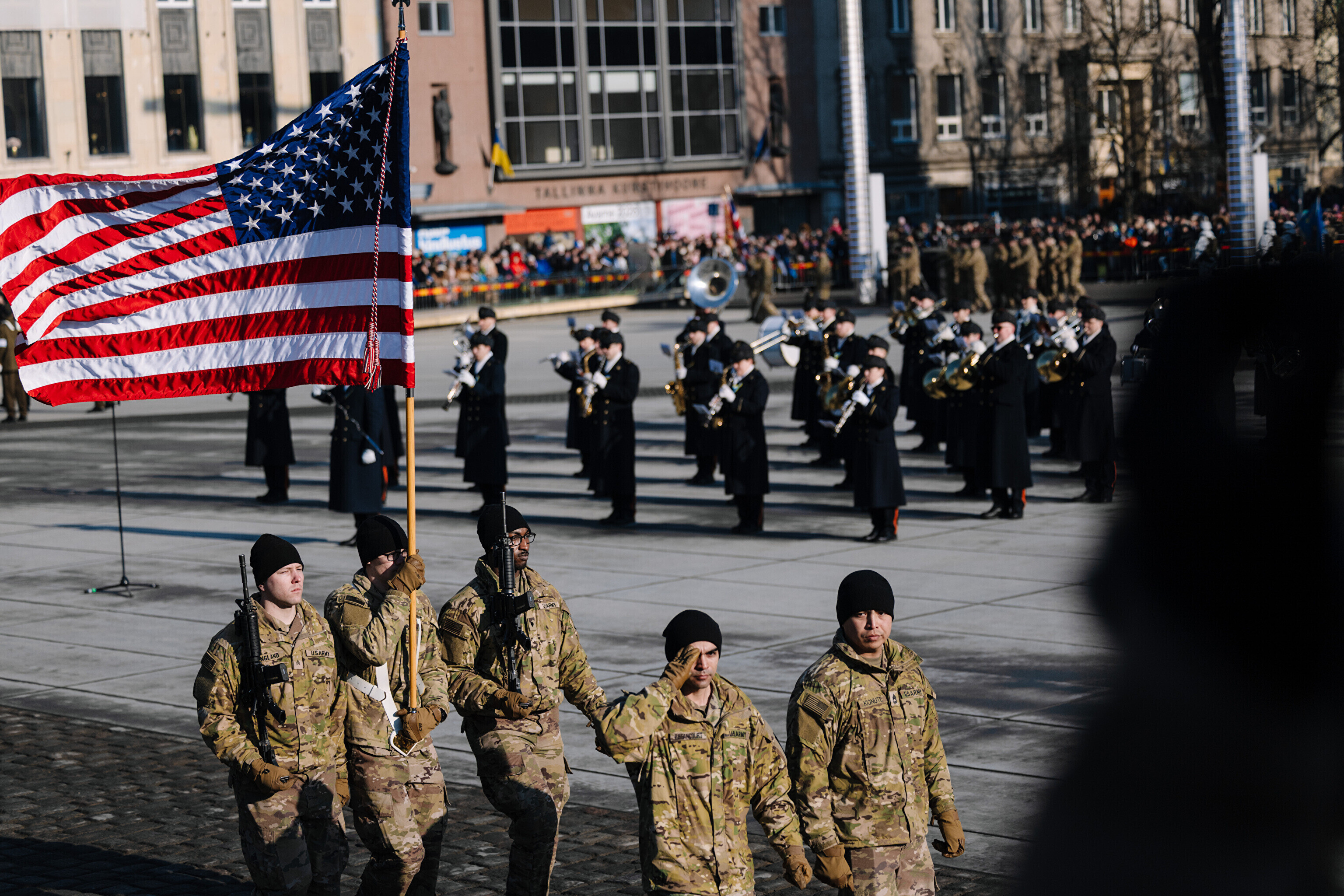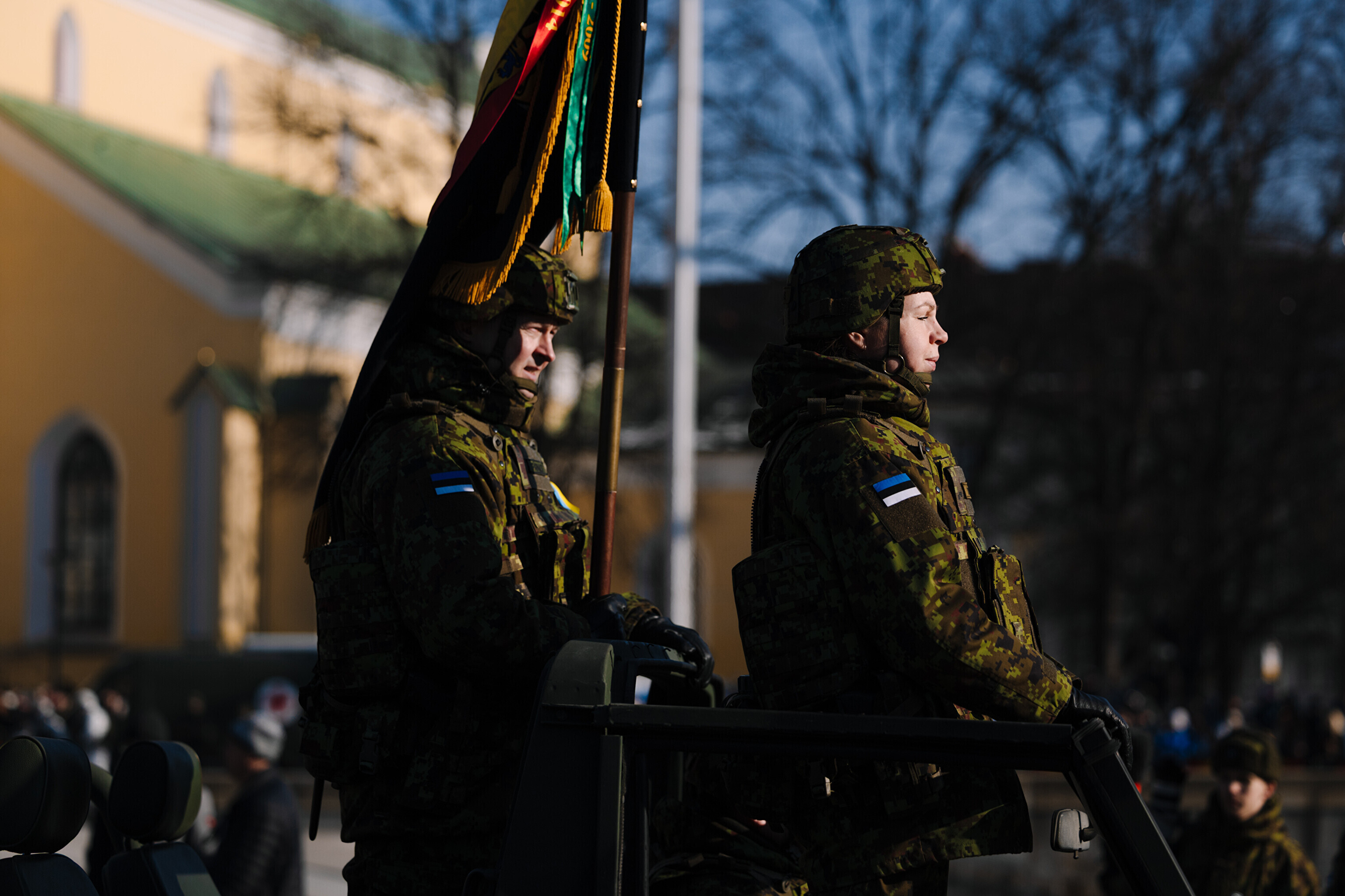 Also participating in the parade were the color guards of the Baltic Defence College, NATO Cooperative Cyber Defence Centre of Excellence (CCDCOE), and NATO Force Integration Unit (NFIU). Among the allies, the Netherlands had a color guard present, as well as the United Kingdom, France, and the United States, who participated with both their color guards and units.