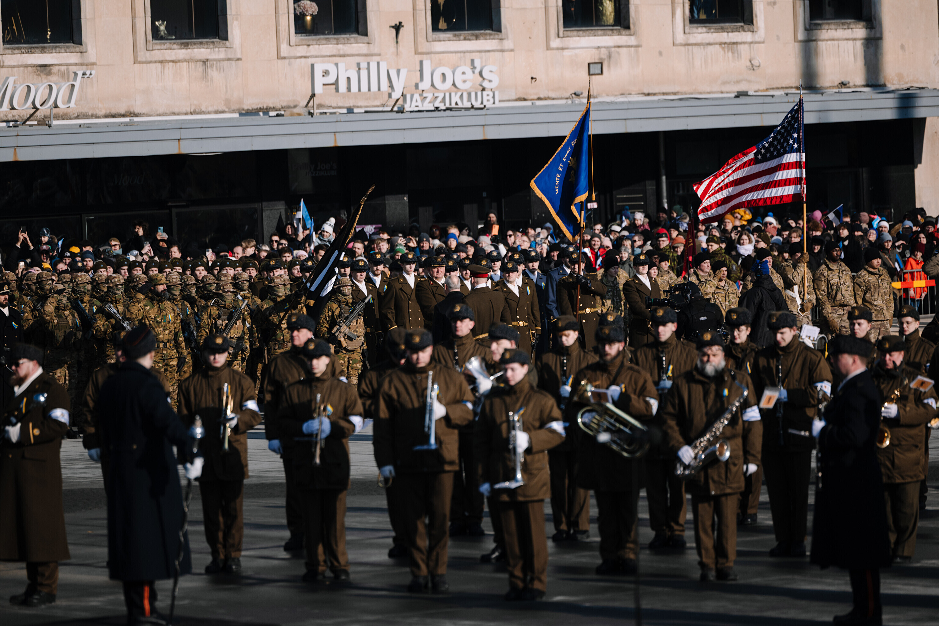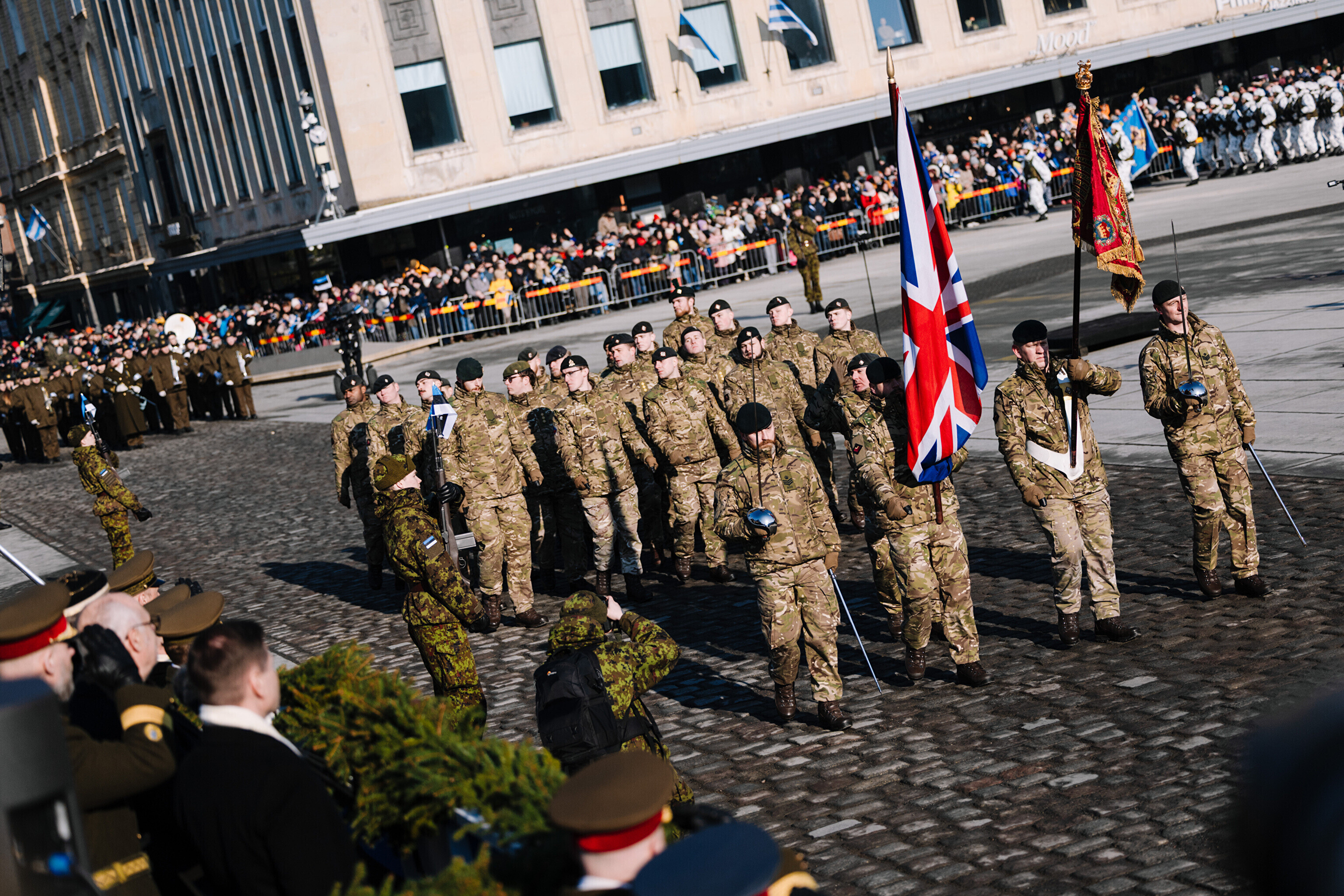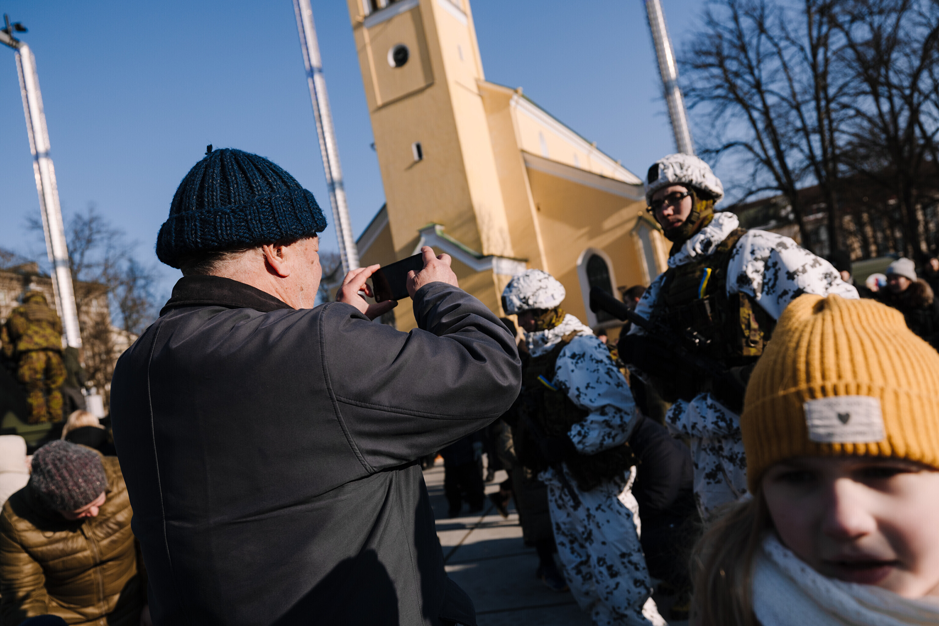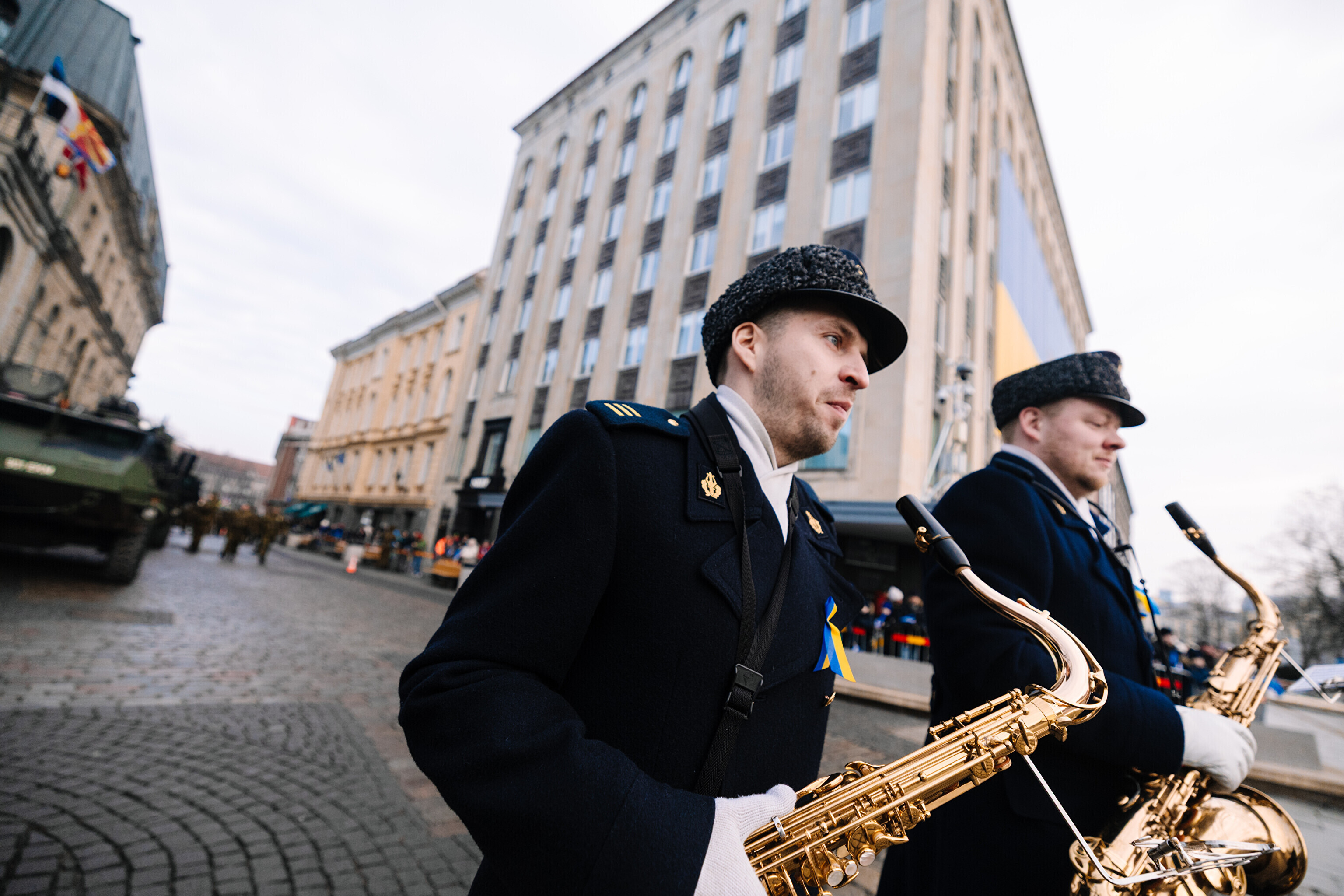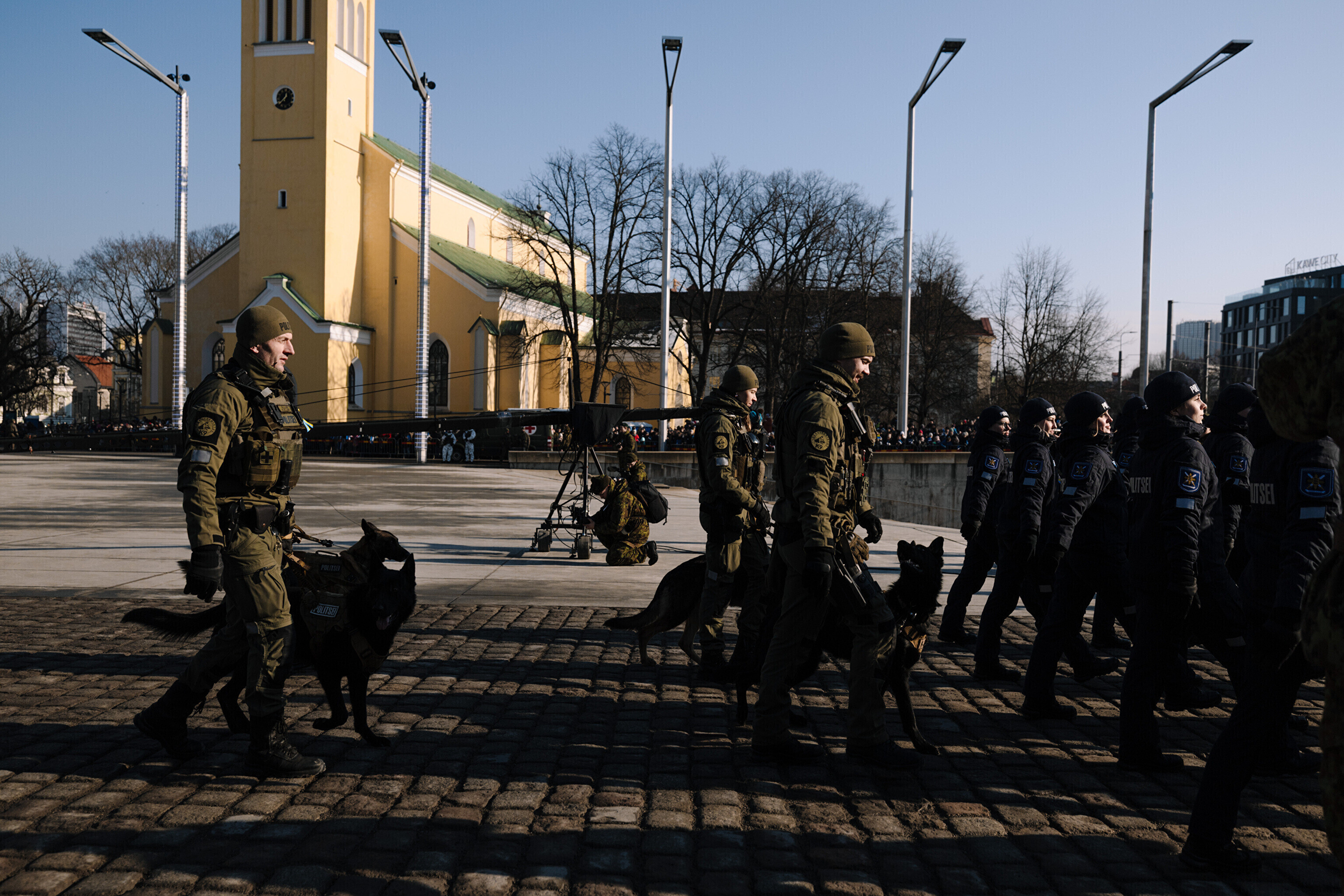 Also participating in the parade were the color guards of the Baltic Defence College, NATO Cooperative Cyber Defence Centre of Excellence (CCDCOE), and NATO Force Integration Unit (NFIU). Among the allies, the Netherlands had a color guard present, as well as the United Kingdom, France, and the United States, who participated with both their color guards and units.