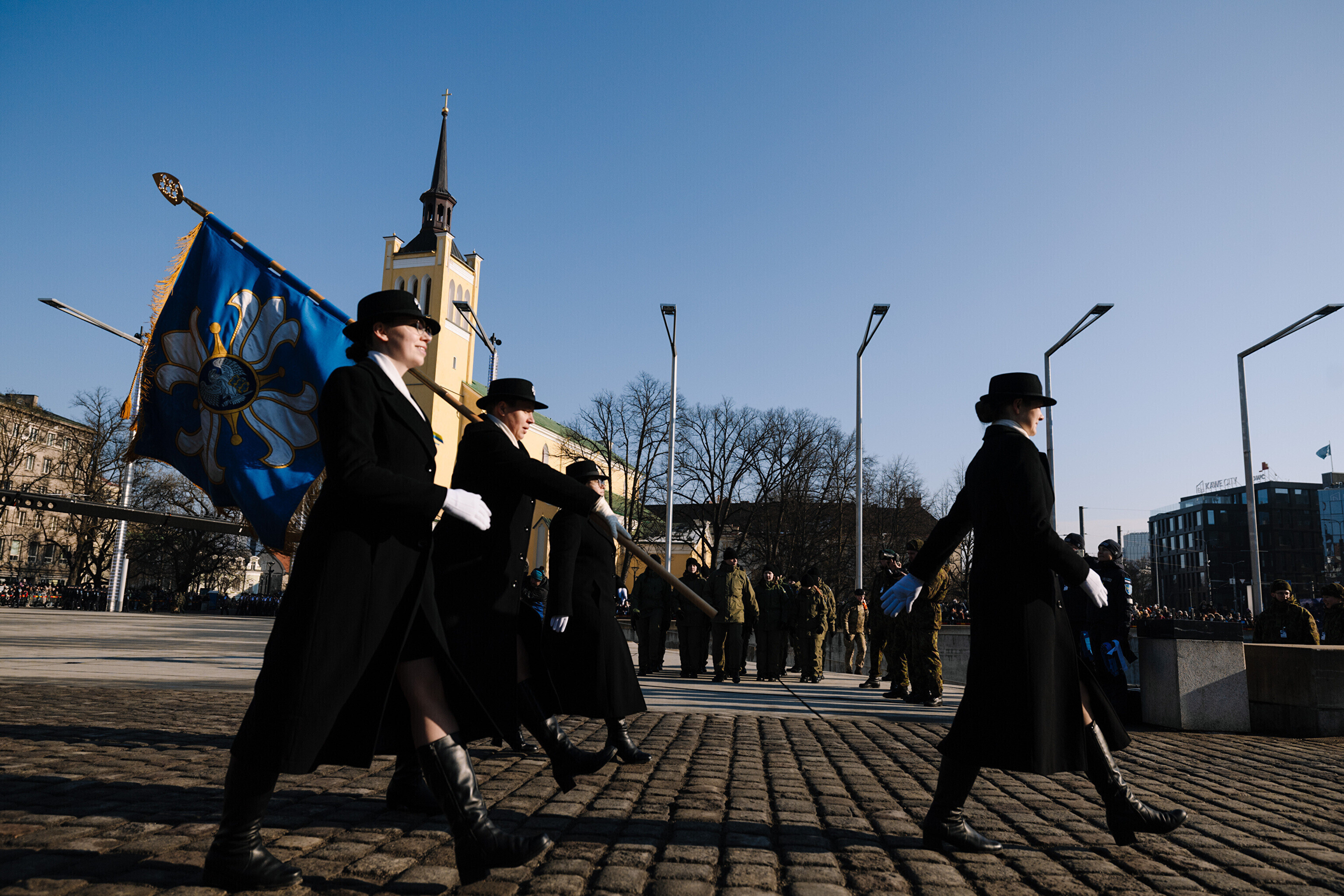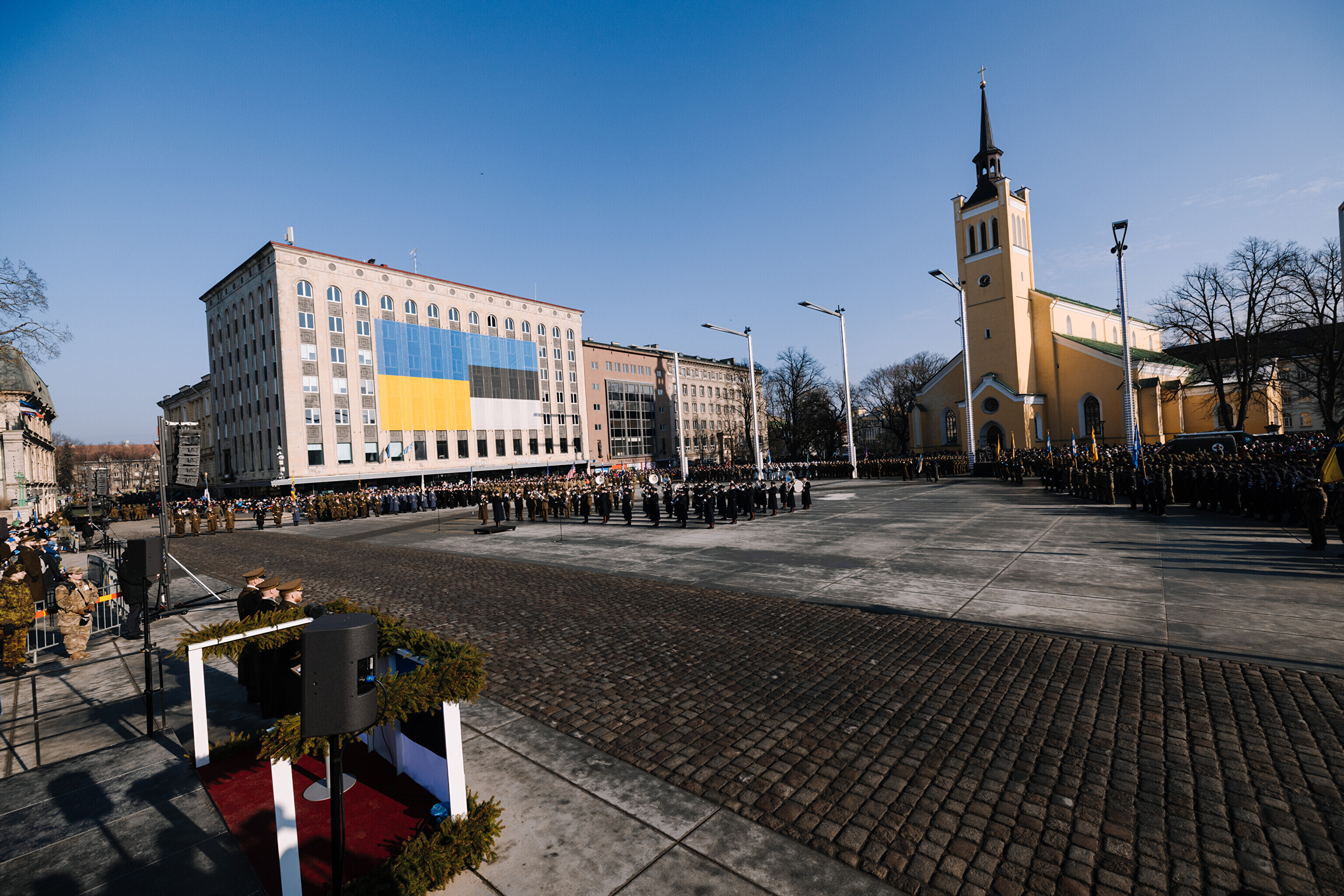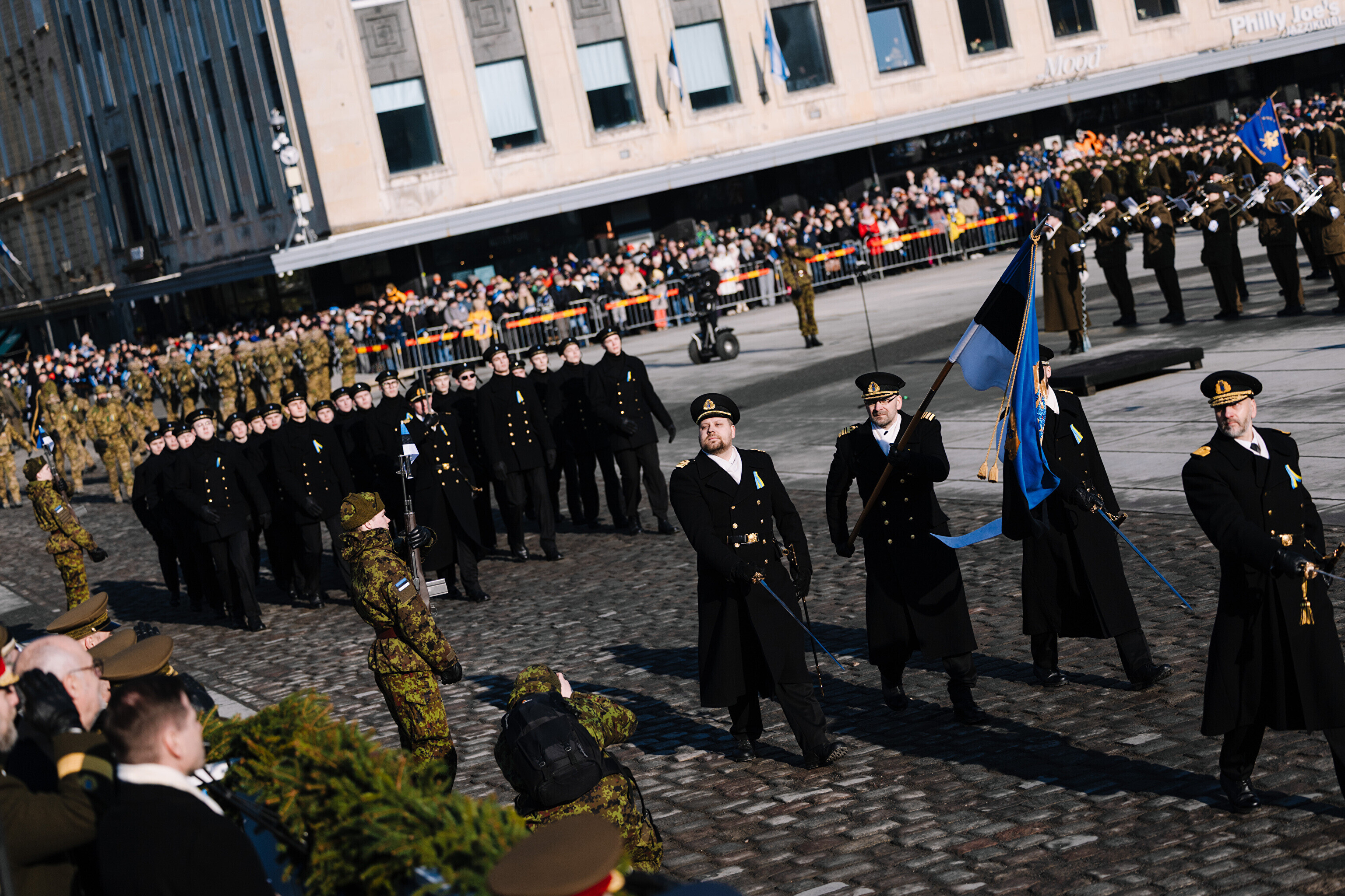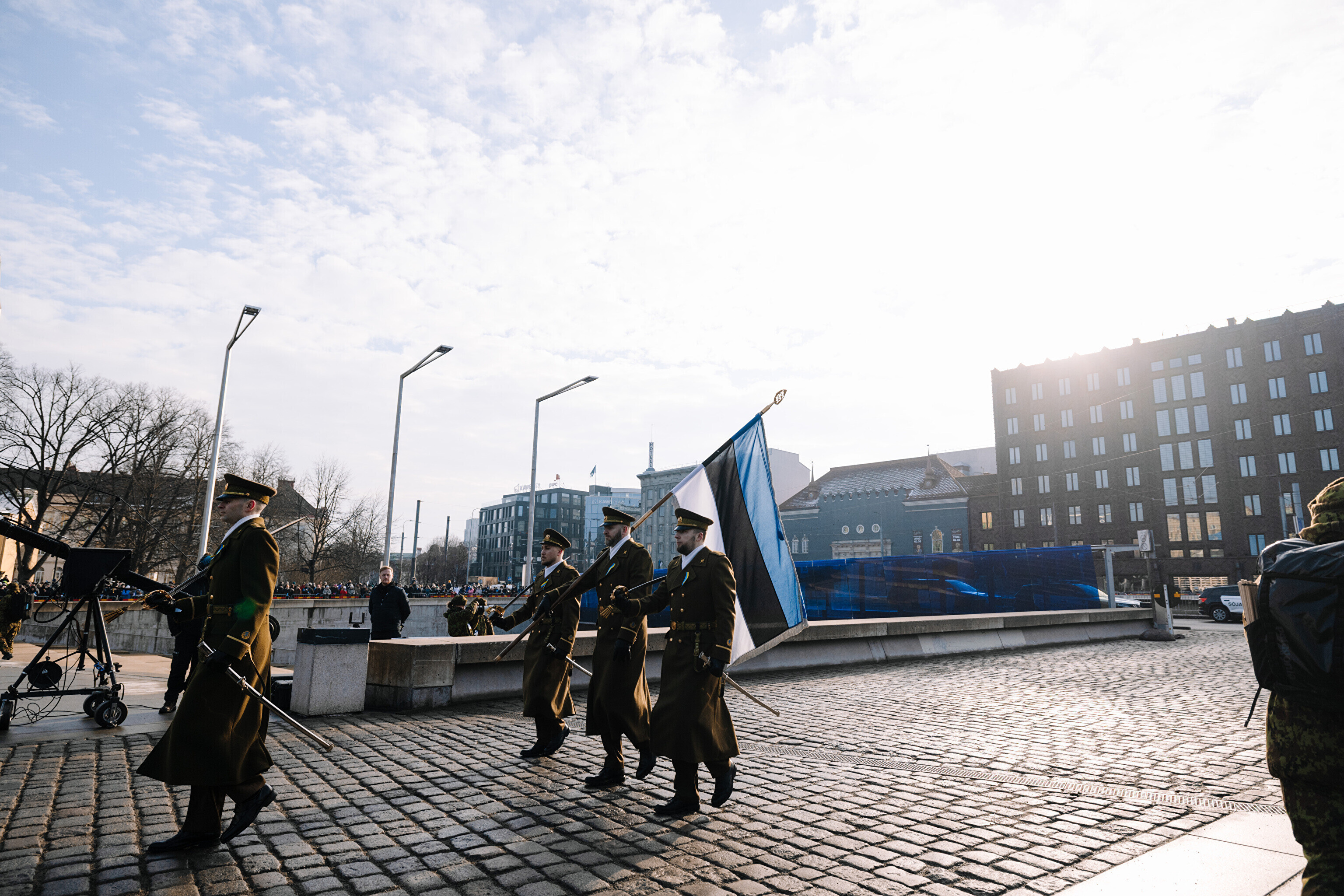 11:30 a.m. – Units are in formation, and the flag of the Republic of Estonia is brought in (Tallinn, Freedom Square).