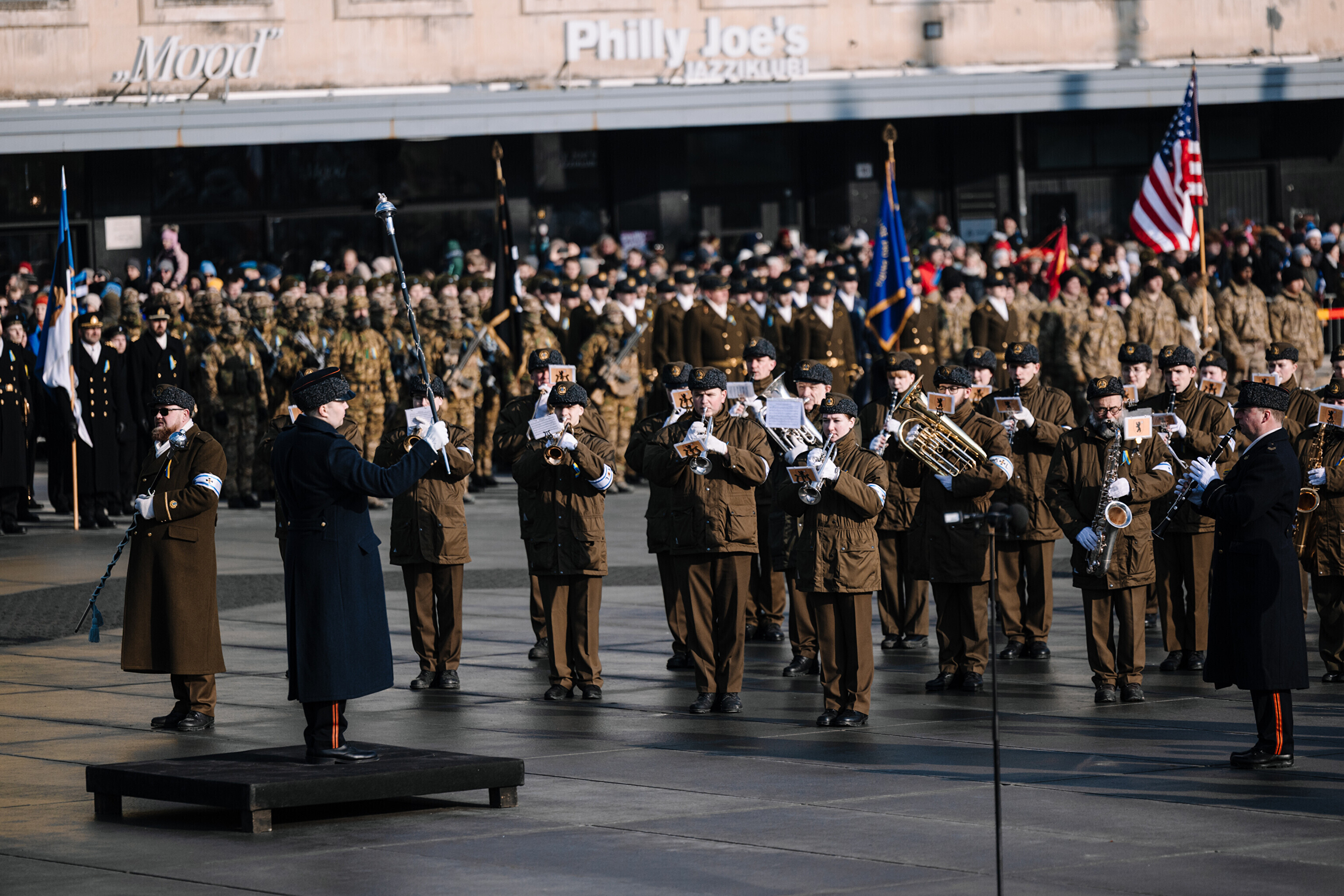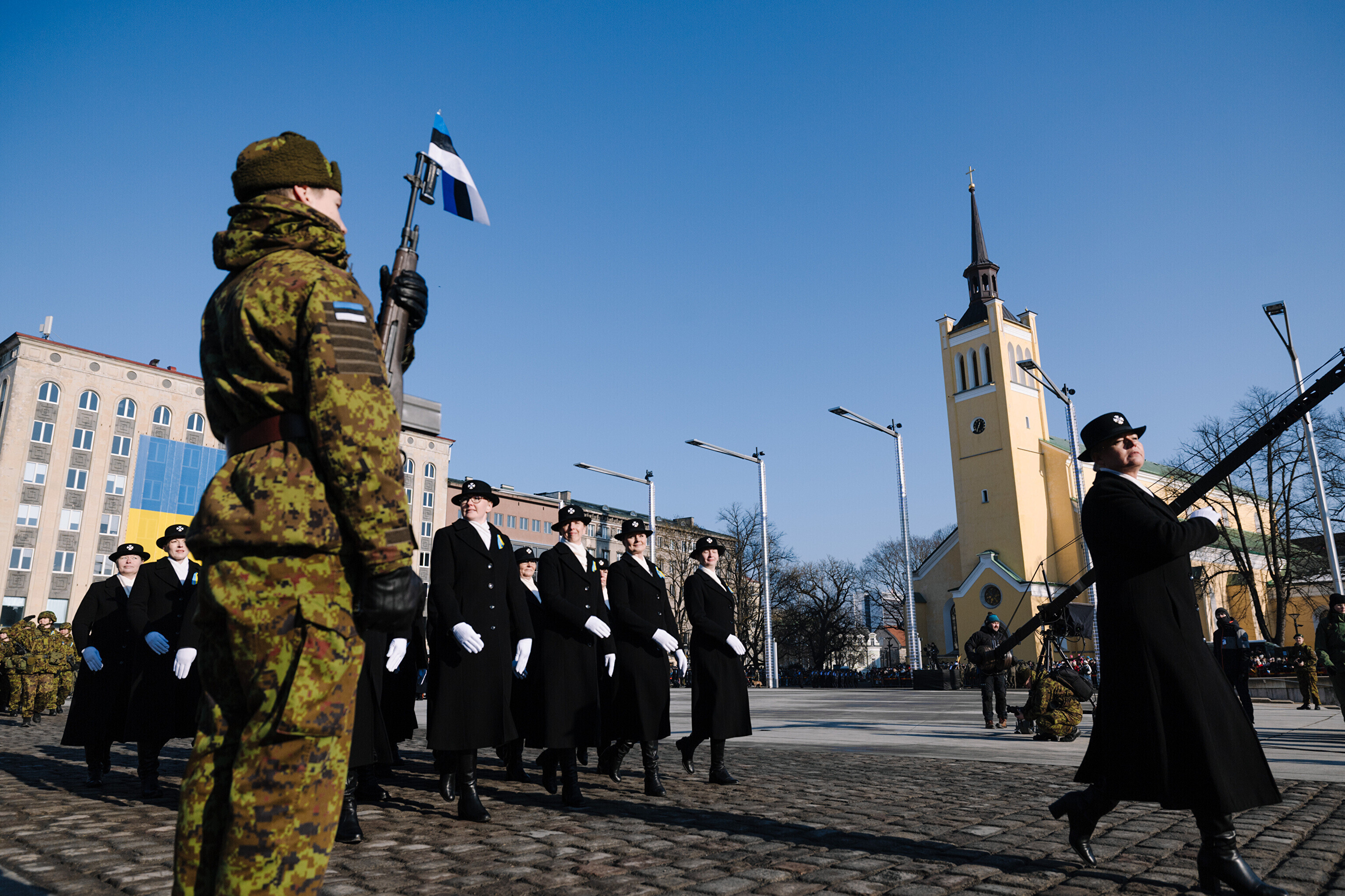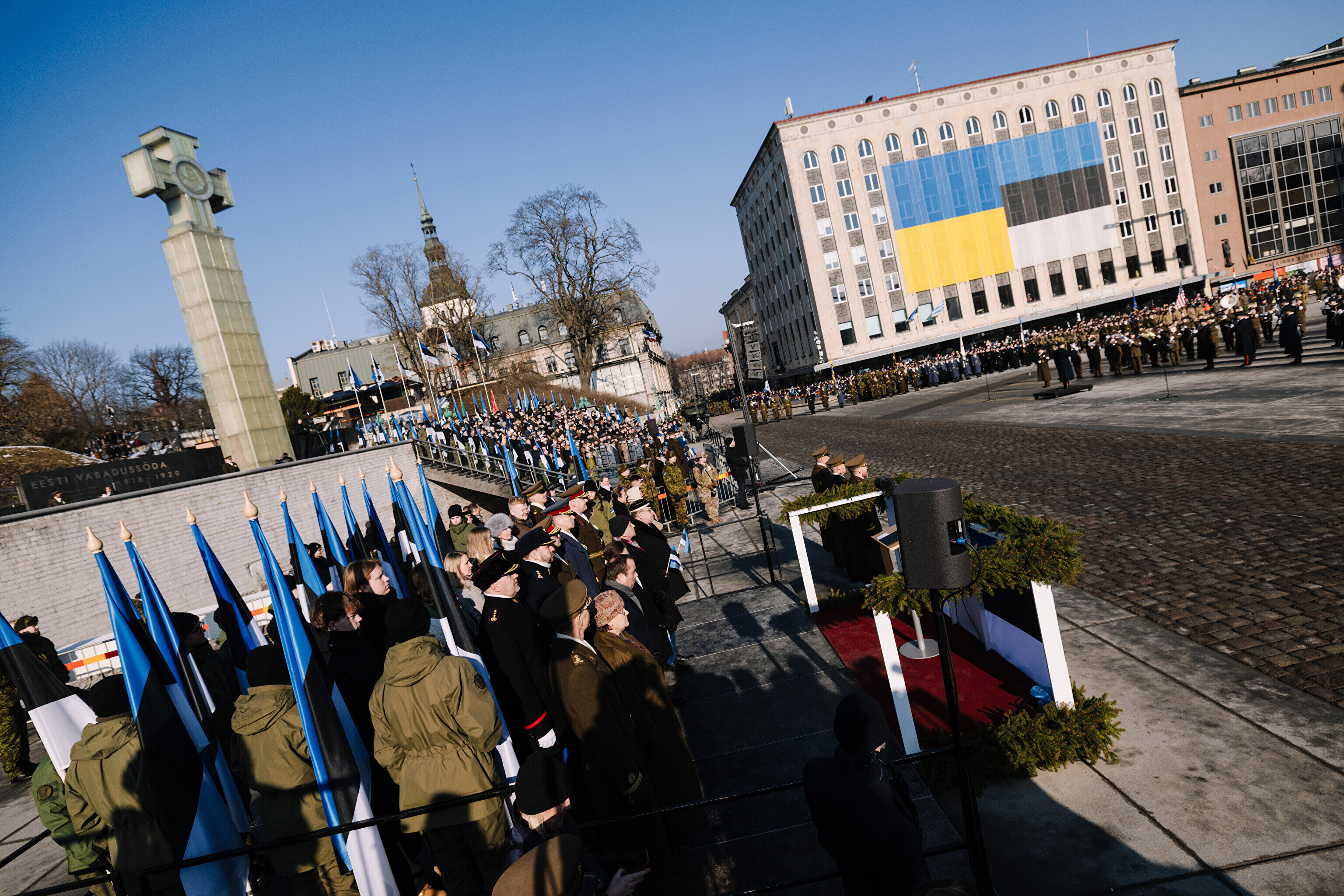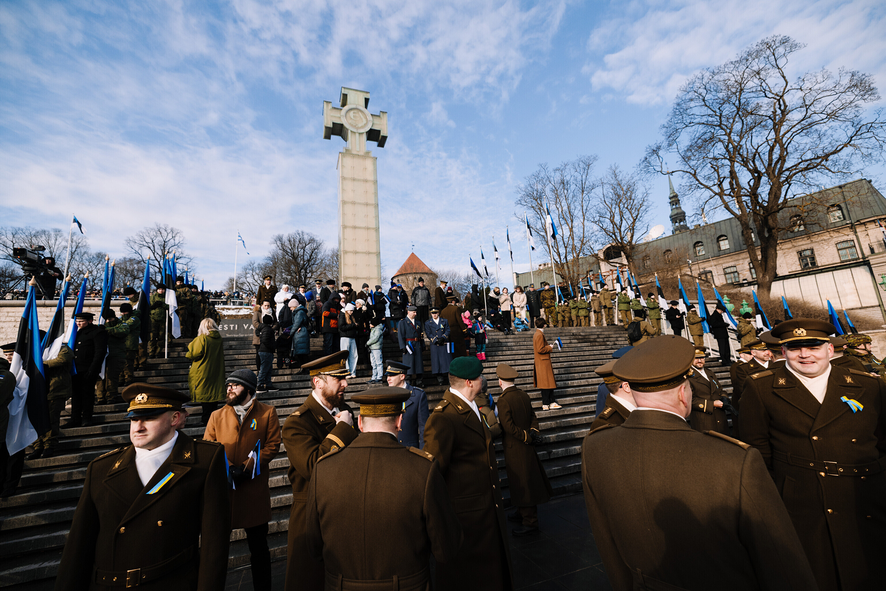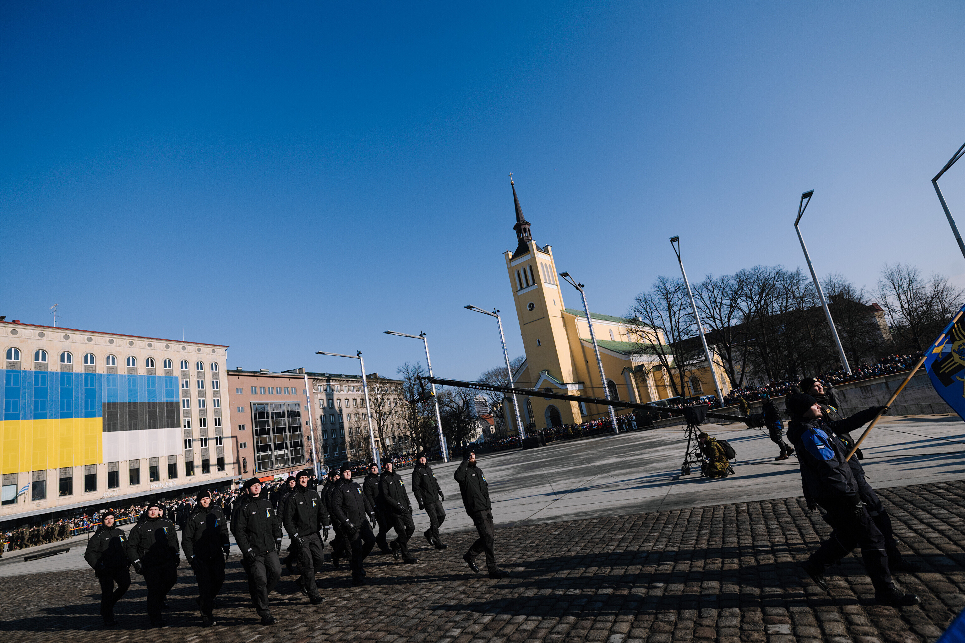 11:30 a.m. – Units are in formation, and the flag of the Republic of Estonia is brought in (Tallinn, Freedom Square).