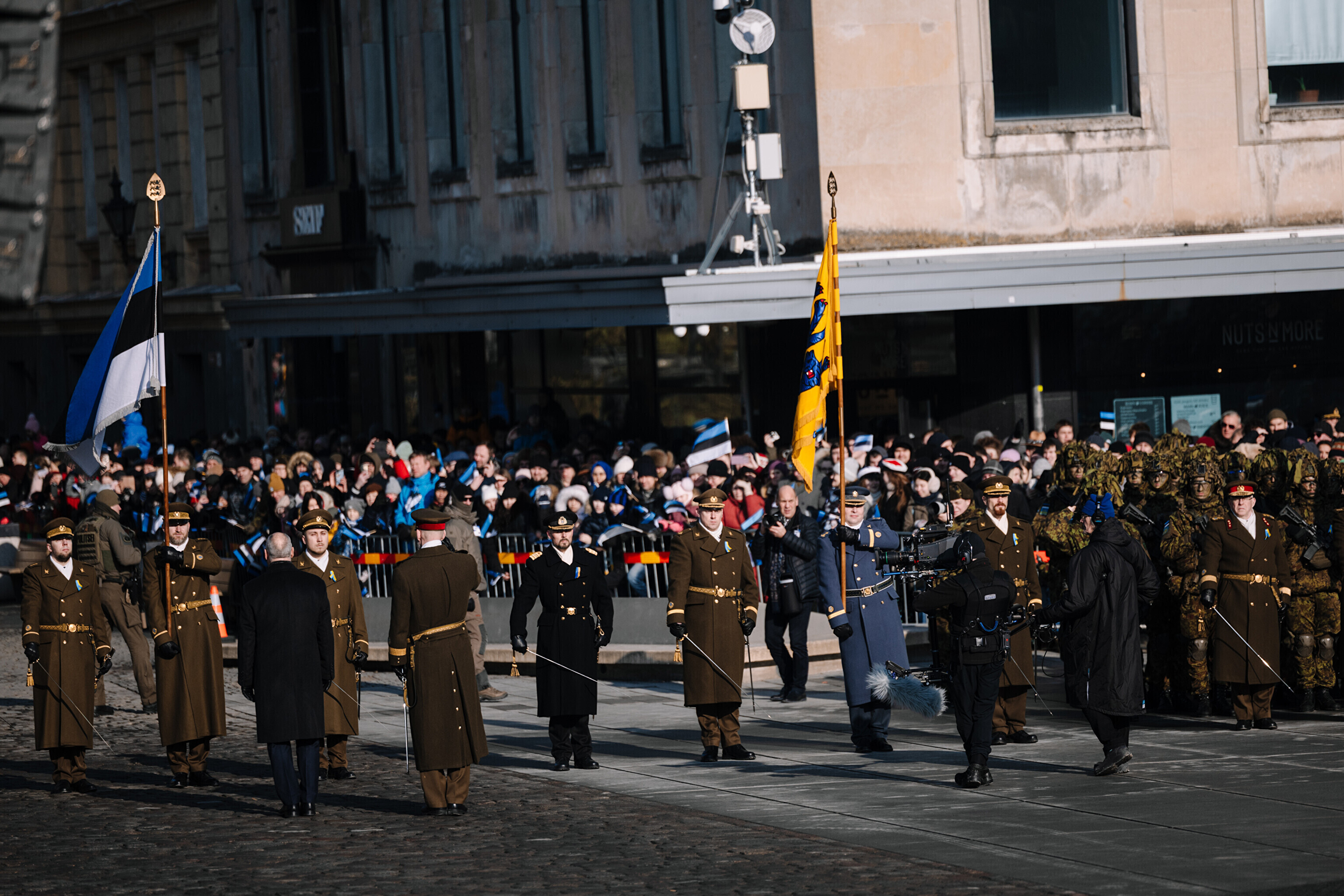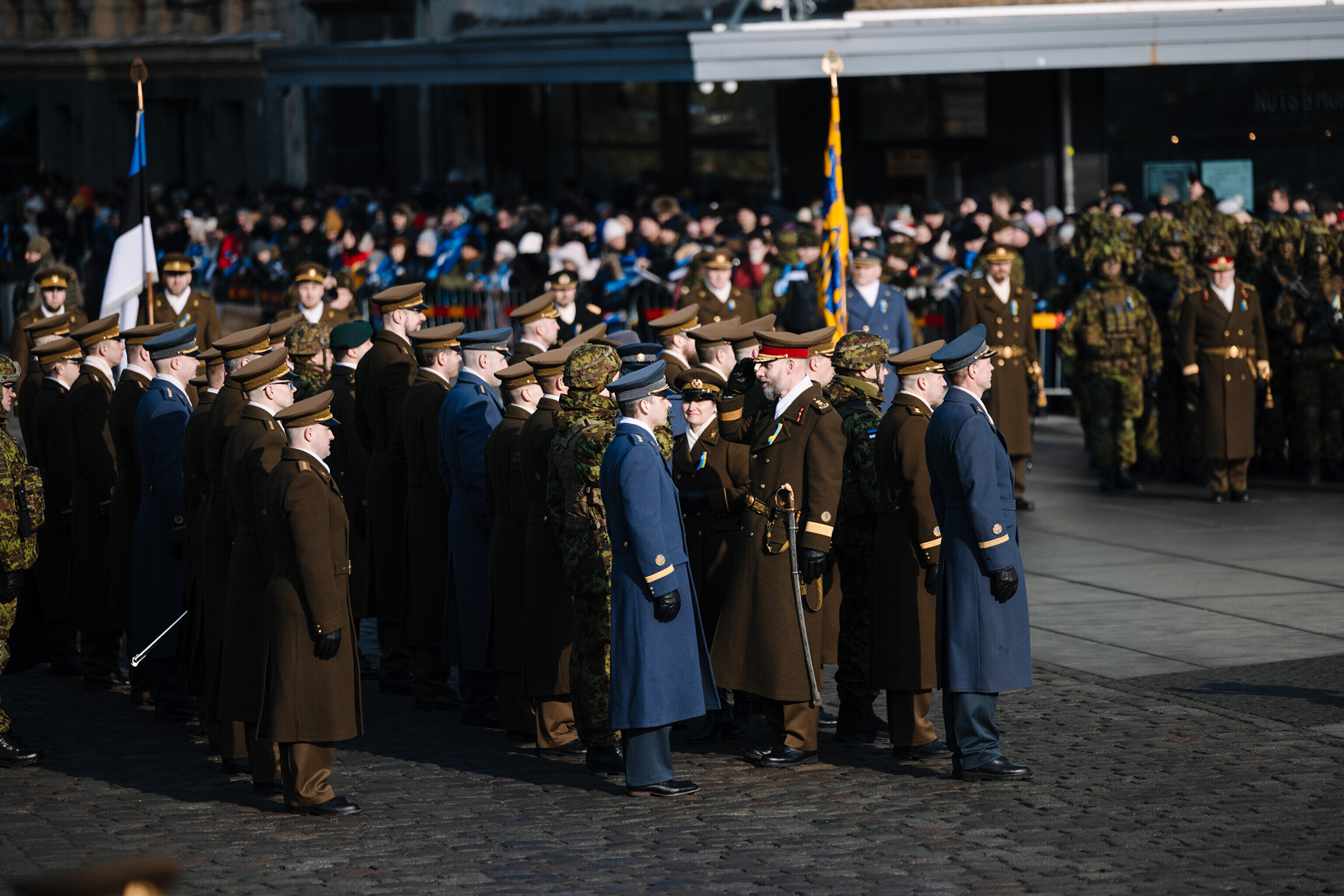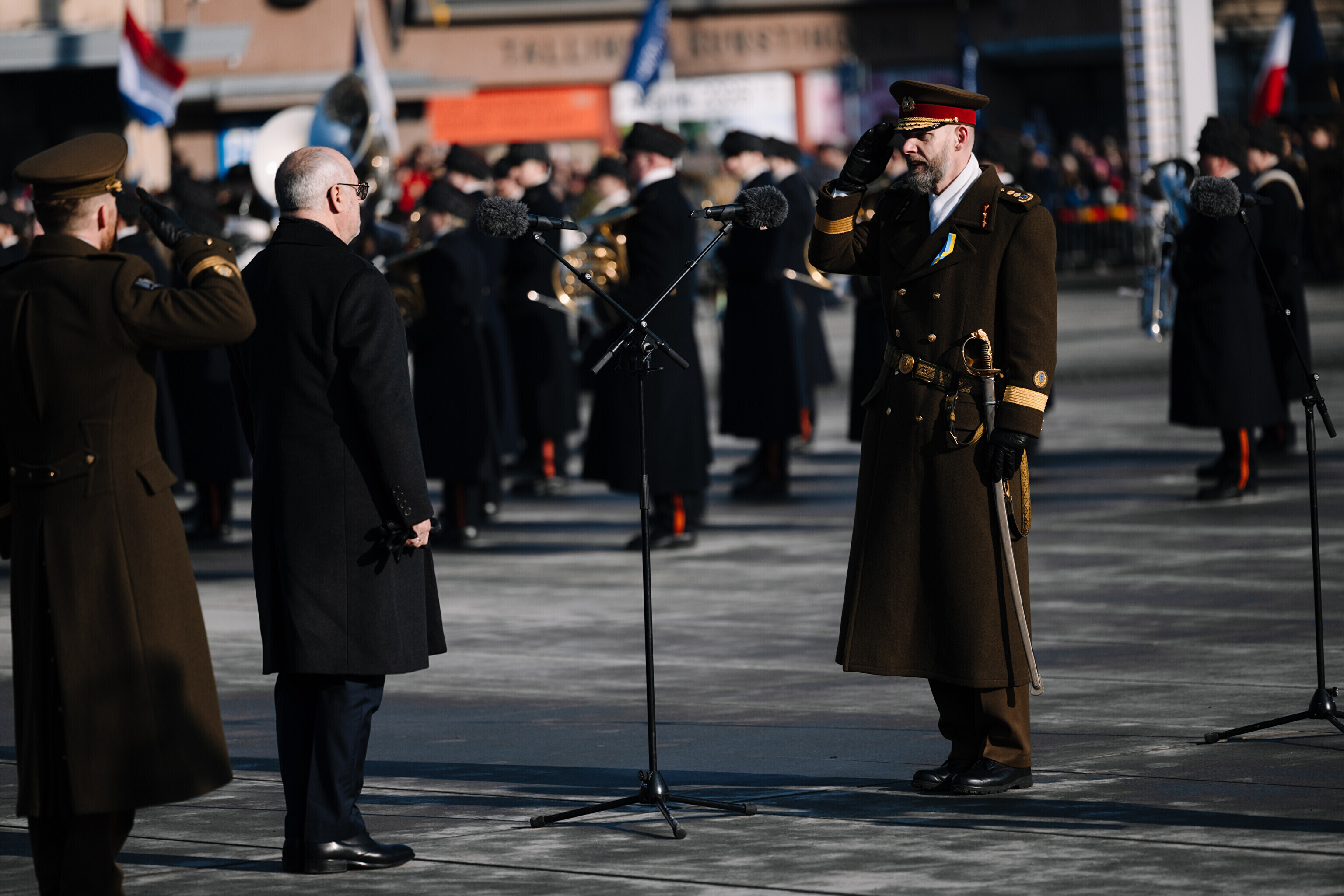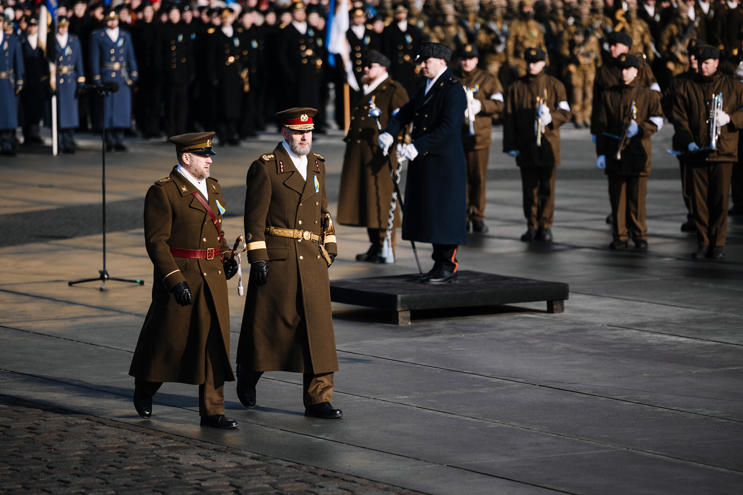 The parade was reviewed by President Alar Karis, and for the first time, it was led by the Commander of the Estonian Defence Forces, Major General Andrus Merilo. The parade formation was organized for the last time by the Defence Forces' Sergeant Major, Warrant Officer Enn Adoson.
