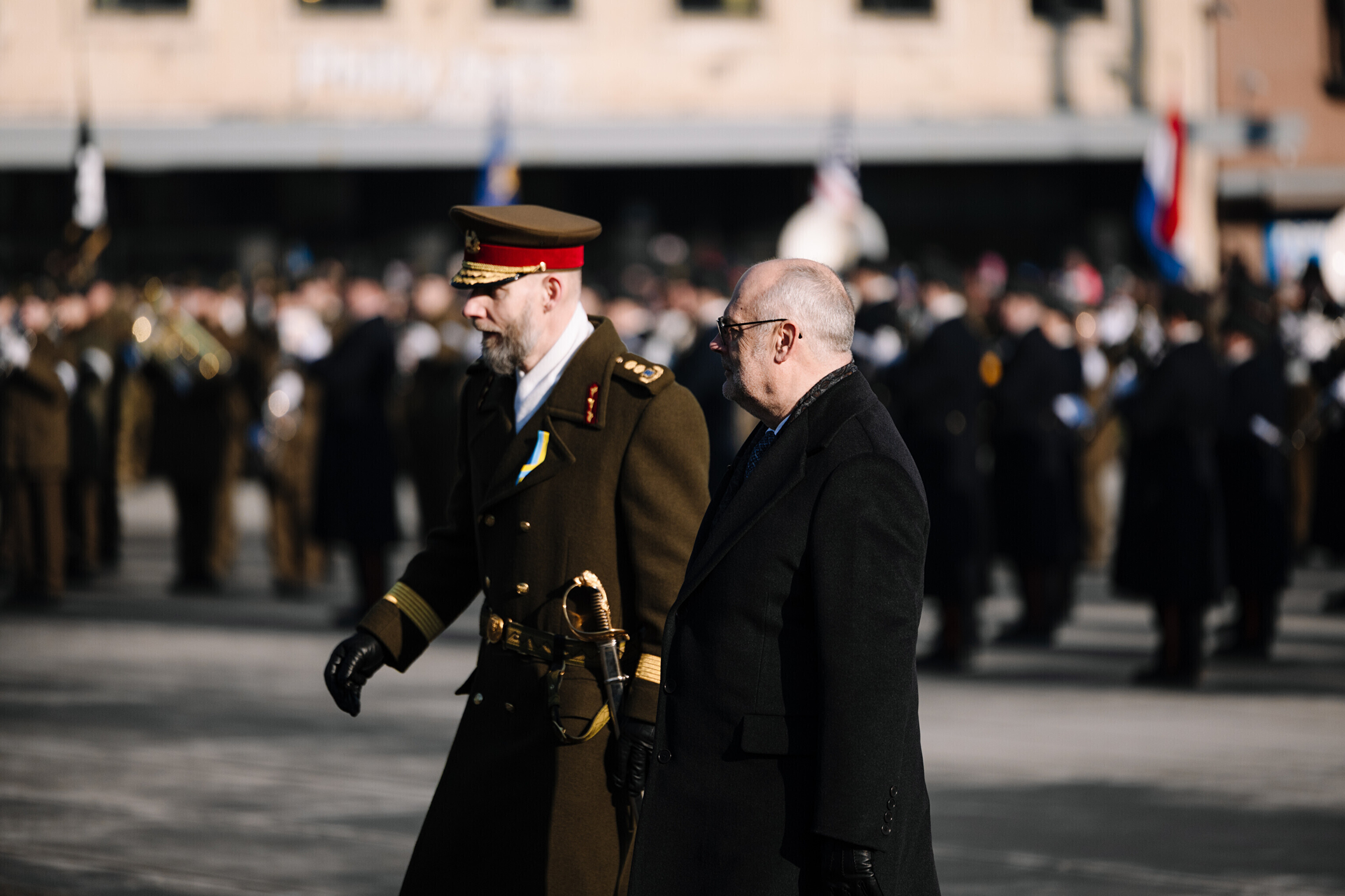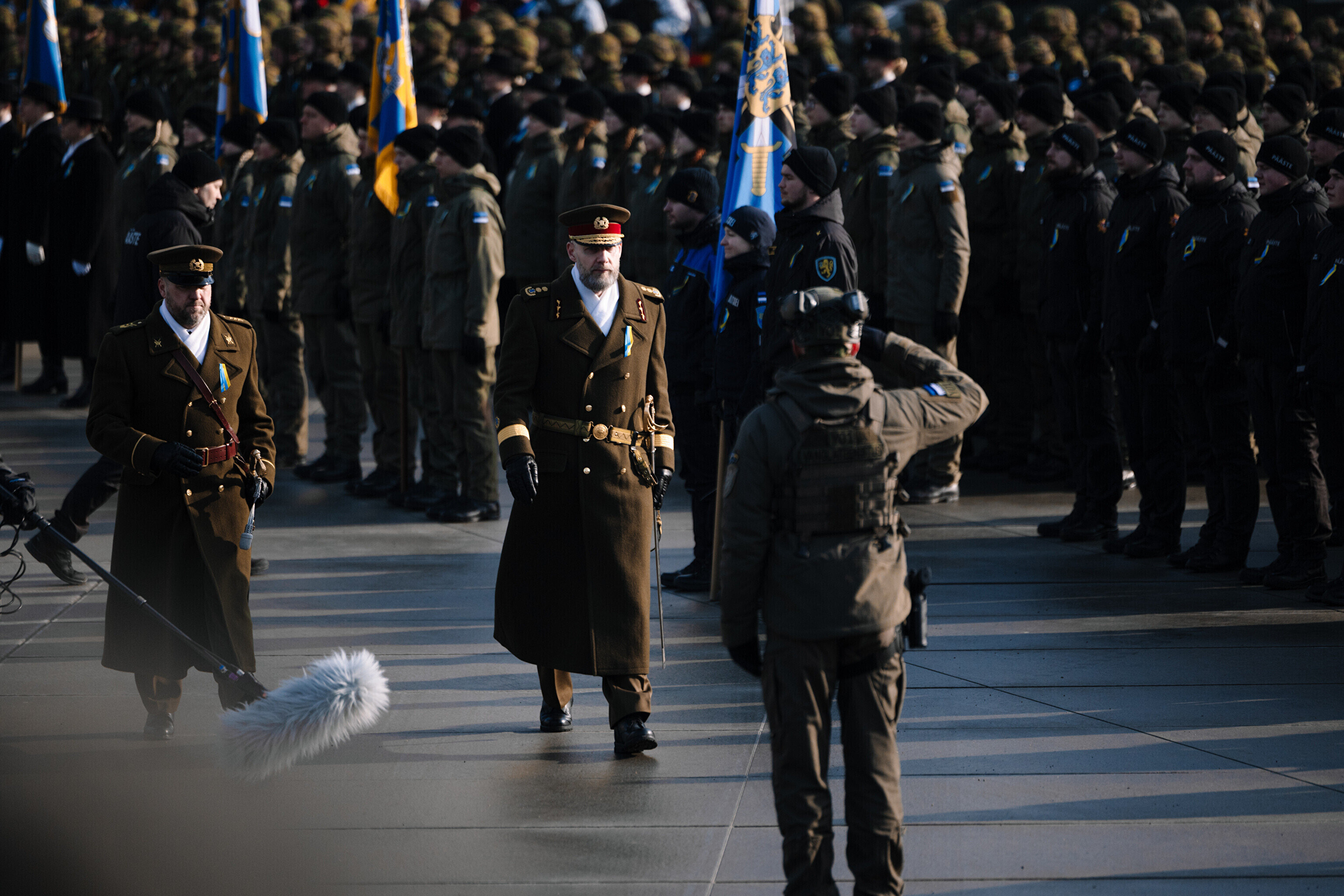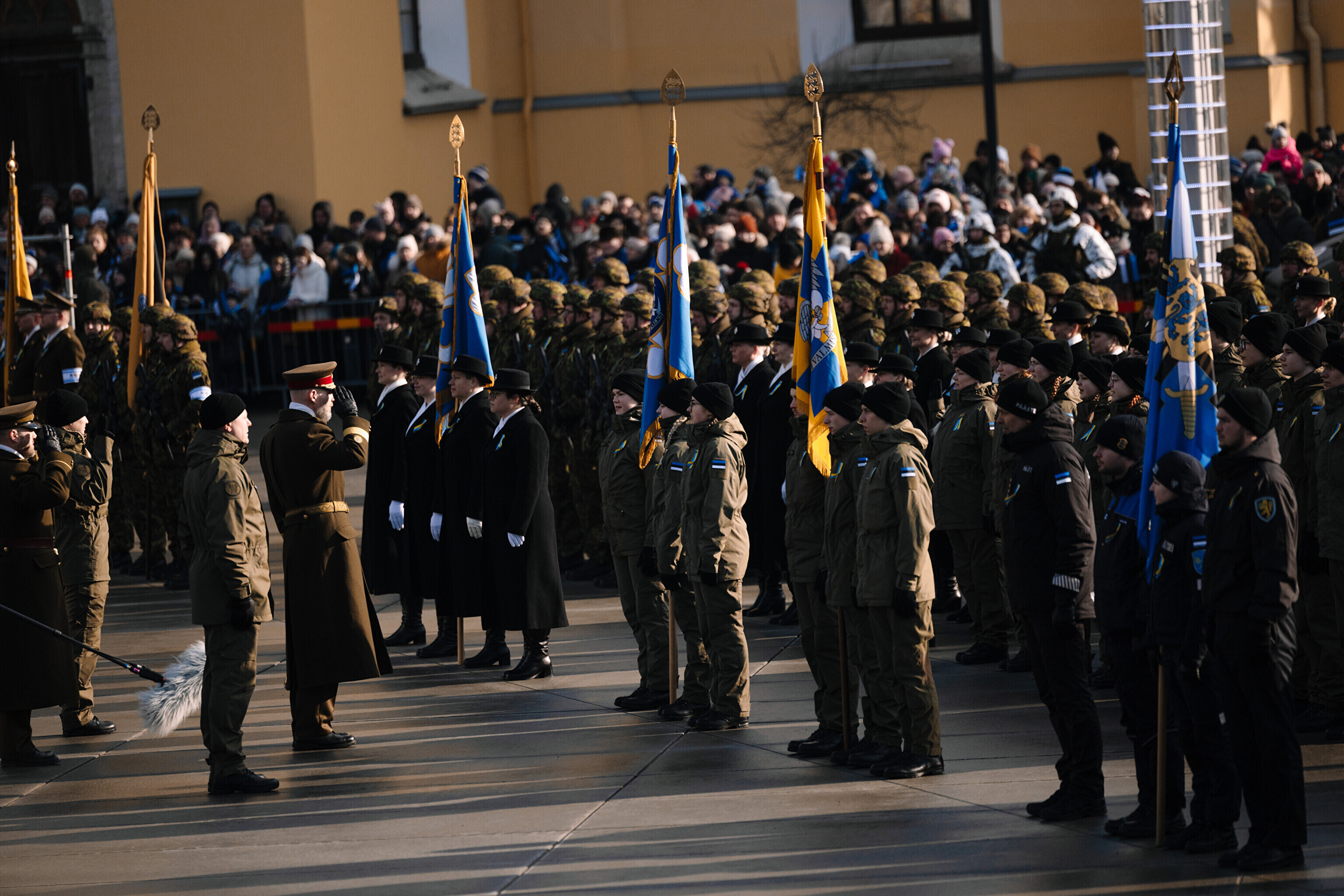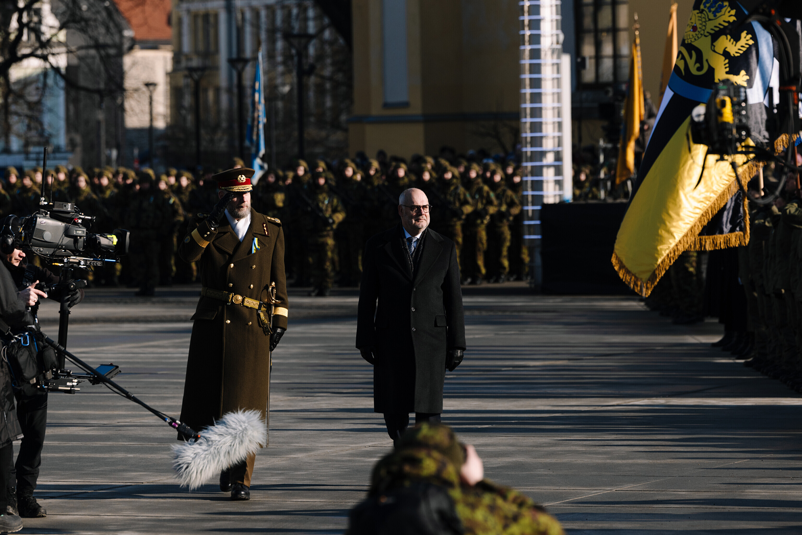 The parade was reviewed by President Alar Karis, and for the first time, it was led by the Commander of the Estonian Defence Forces, Major General Andrus Merilo. The parade formation was organized for the last time by the Defence Forces' Sergeant Major, Warrant Officer Enn Adoson.