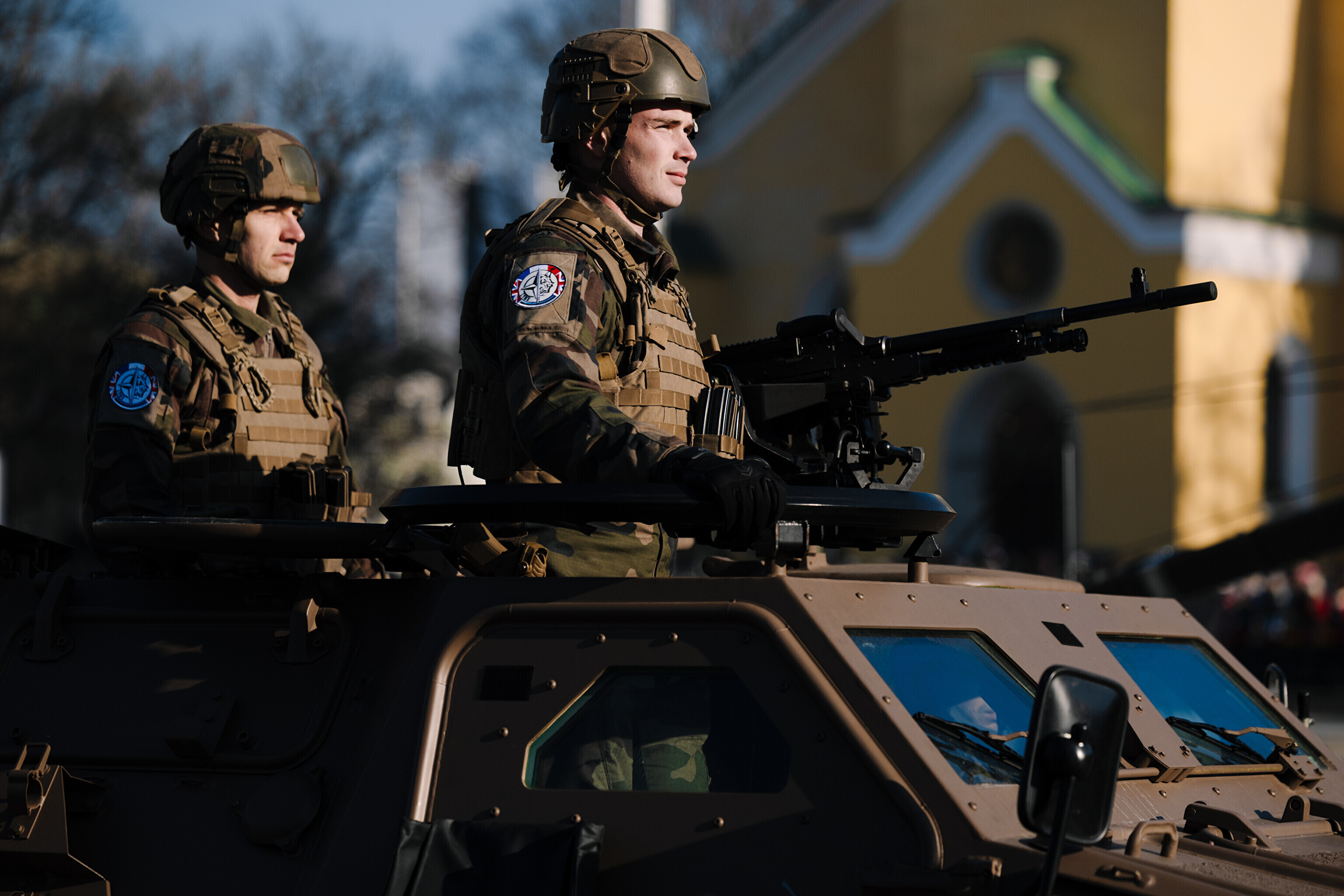 A total of 1,075 participants and 47 pieces of military equipment took part in the parade, which included 40 flags, 11 companies, eight platoons, two orchestras, and four service dogs.