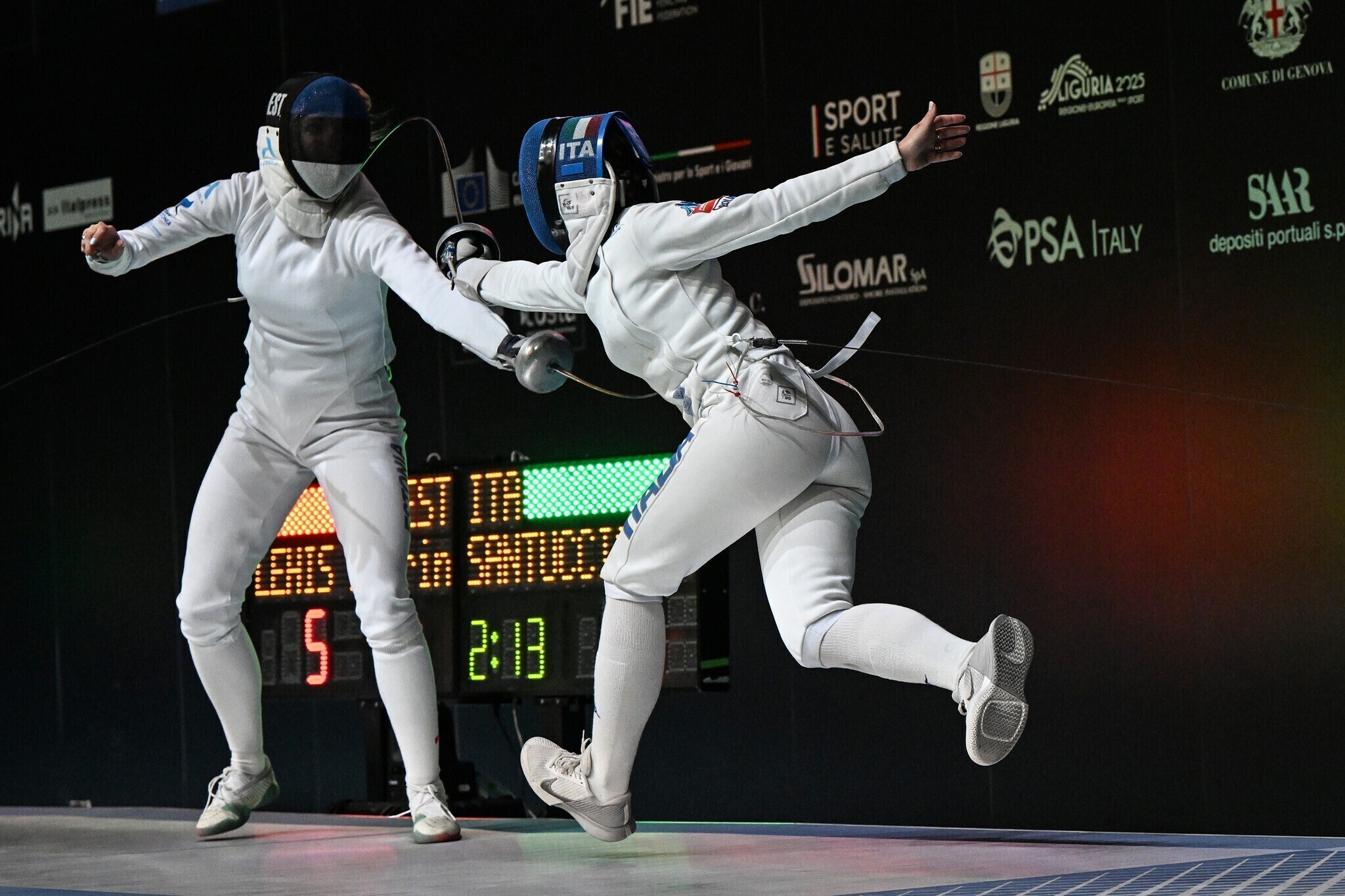 In the semifinal, Lehis faced reigning world silver medalist and Paris Olympic champion Alberta Santuccio of Italy, in front of a home crowd. Lehis won the opening period 2–1, then the Italian scored two consecutive touches in the second, cheered on by the home crowd, only for Lehis to equalize.