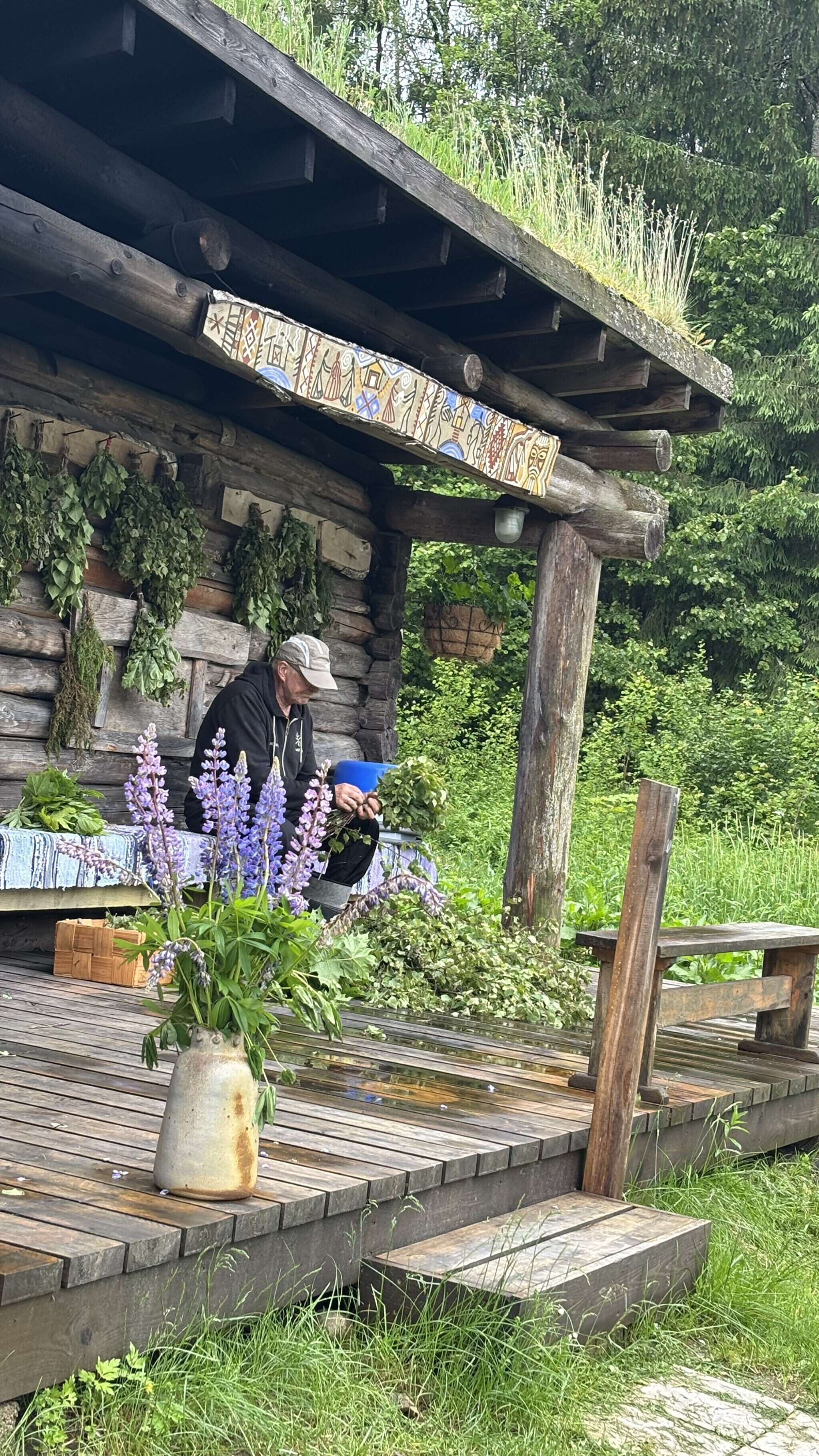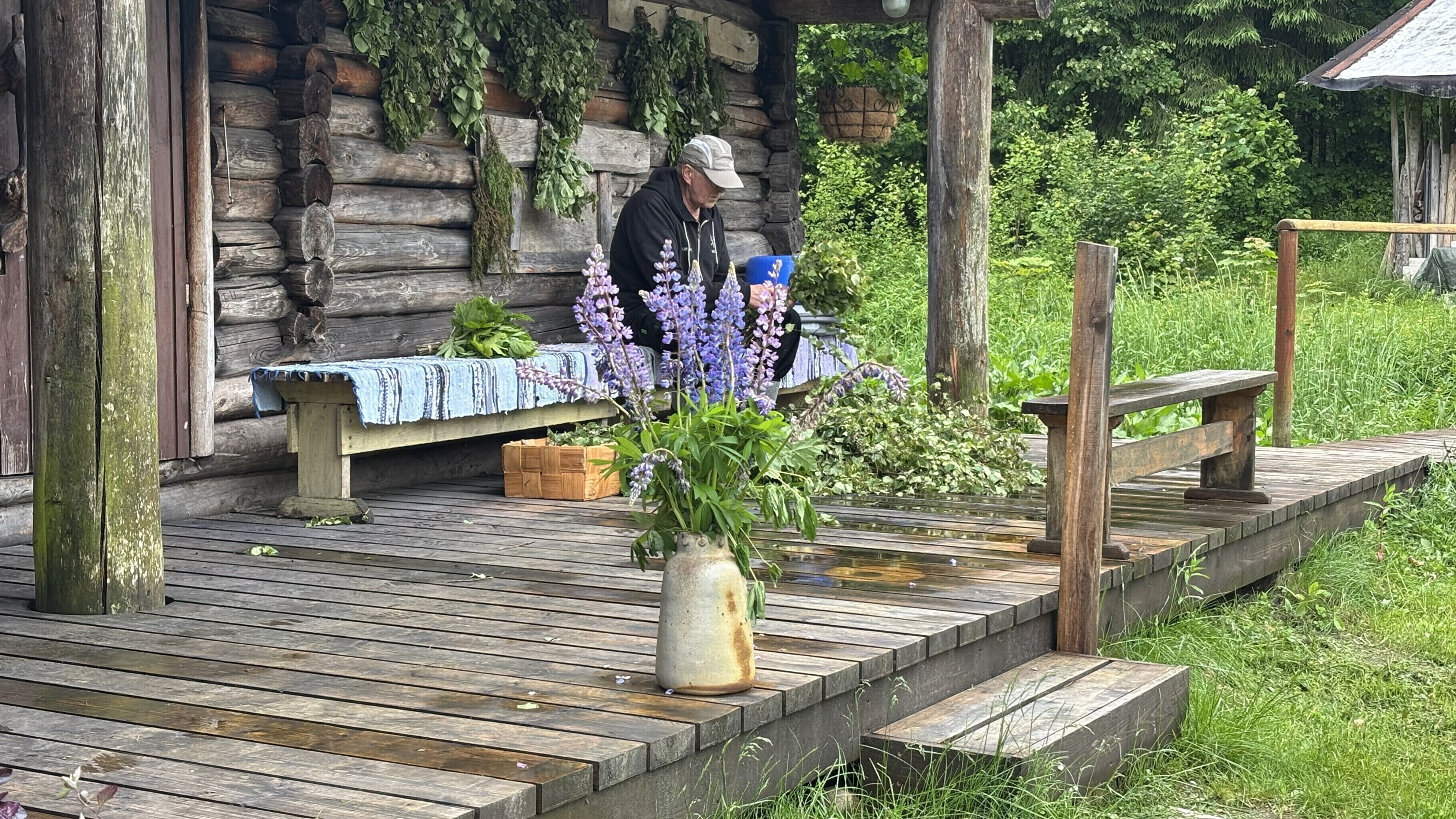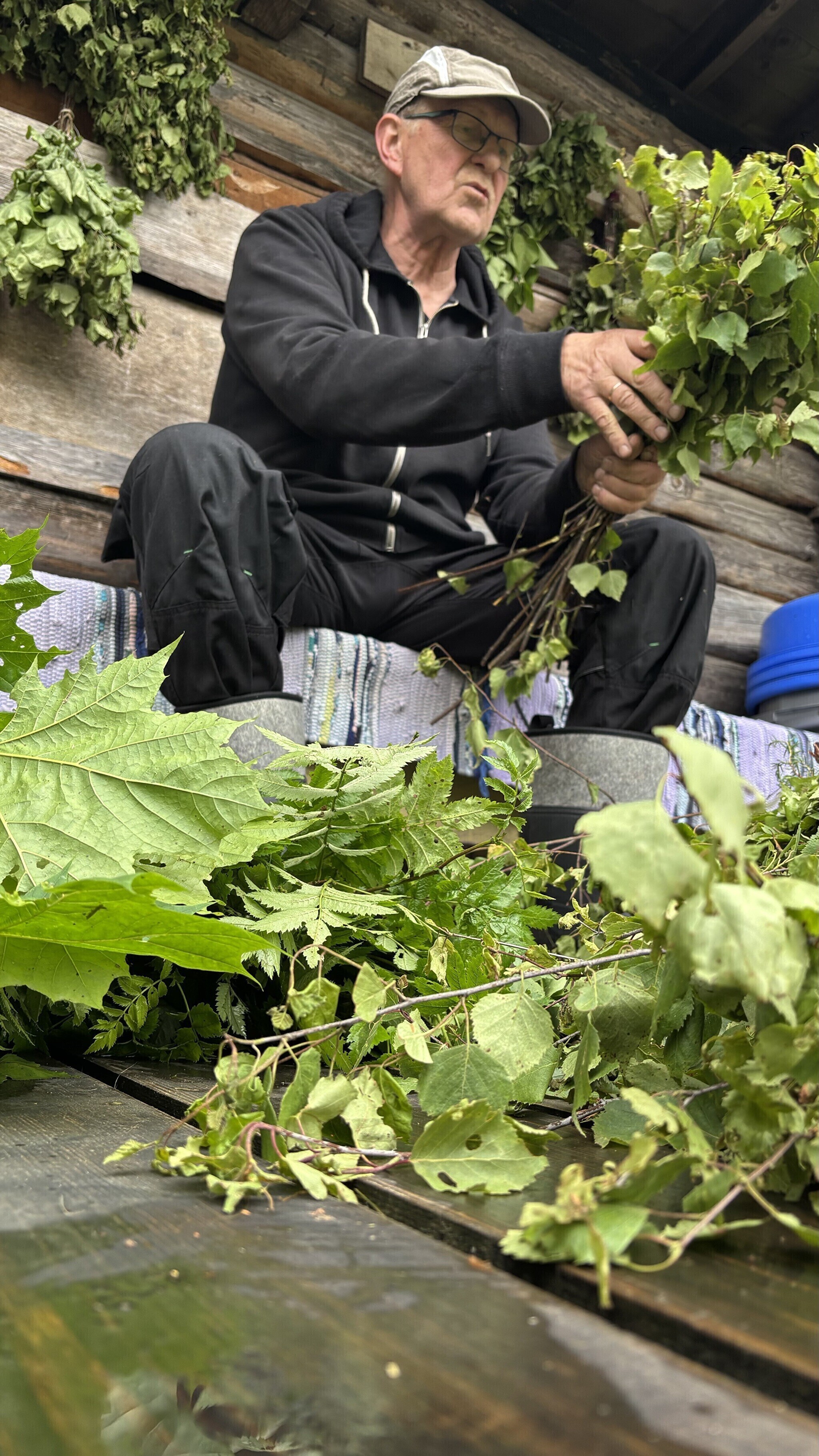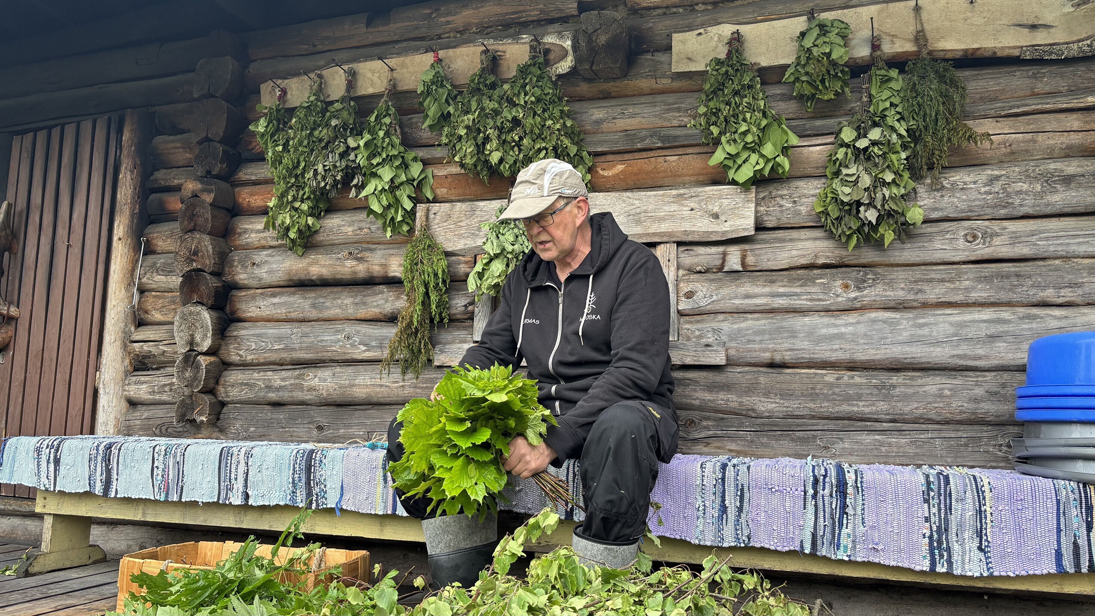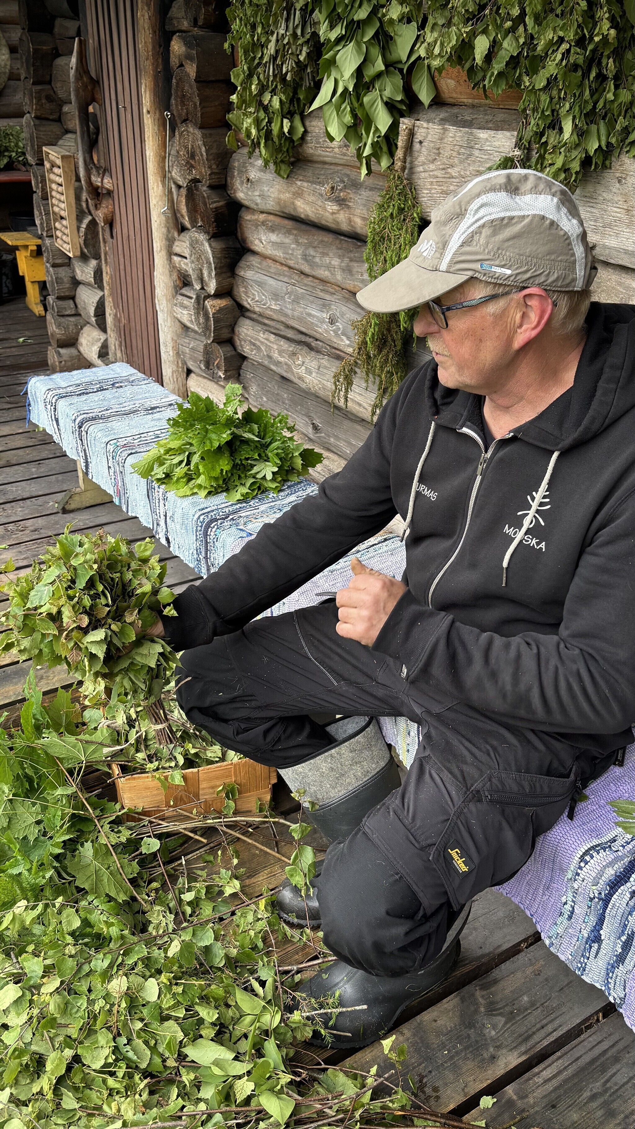 "When you go to the sauna, choose branches that speak to you the most. Today, I'm making a mixed whisk with some rowan branches, a few hazel branches, and I'll add some birch branches too. I pick third-year branches — I don't take the youngest ones because they bend quickly and fall apart. You can also add a sprig of mint, a blackcurrant branch or any plant that resonates with you. It gives off a really nice aroma," the Mooska farm owner added.
