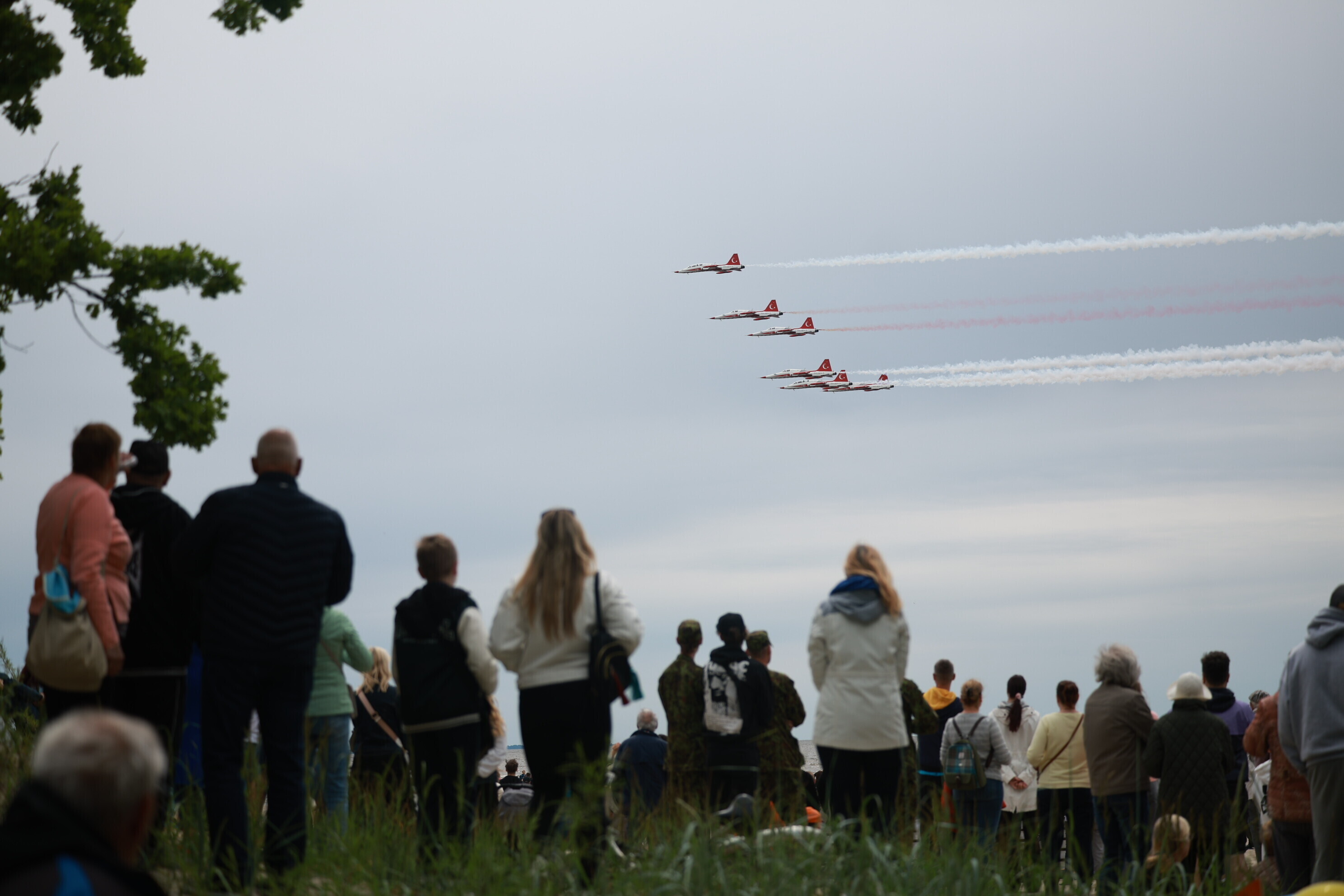 Aircraft from Estonia and its allies performed a flyover during the parade, including UH-60 Black Hawk helicopters, an Augusta Westland 139 helicopter, King Air B350 and M28 airplanes, as well as F-16 fighter jets. At 2 p.m., the Turkish Air Force's aerobatic team, Turkish Stars, will present an air show over Pärnu Bay.