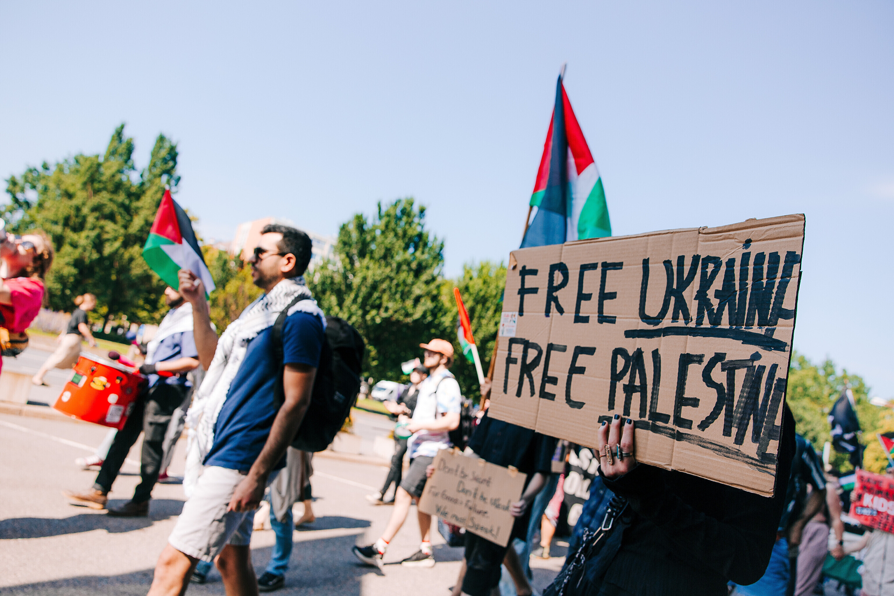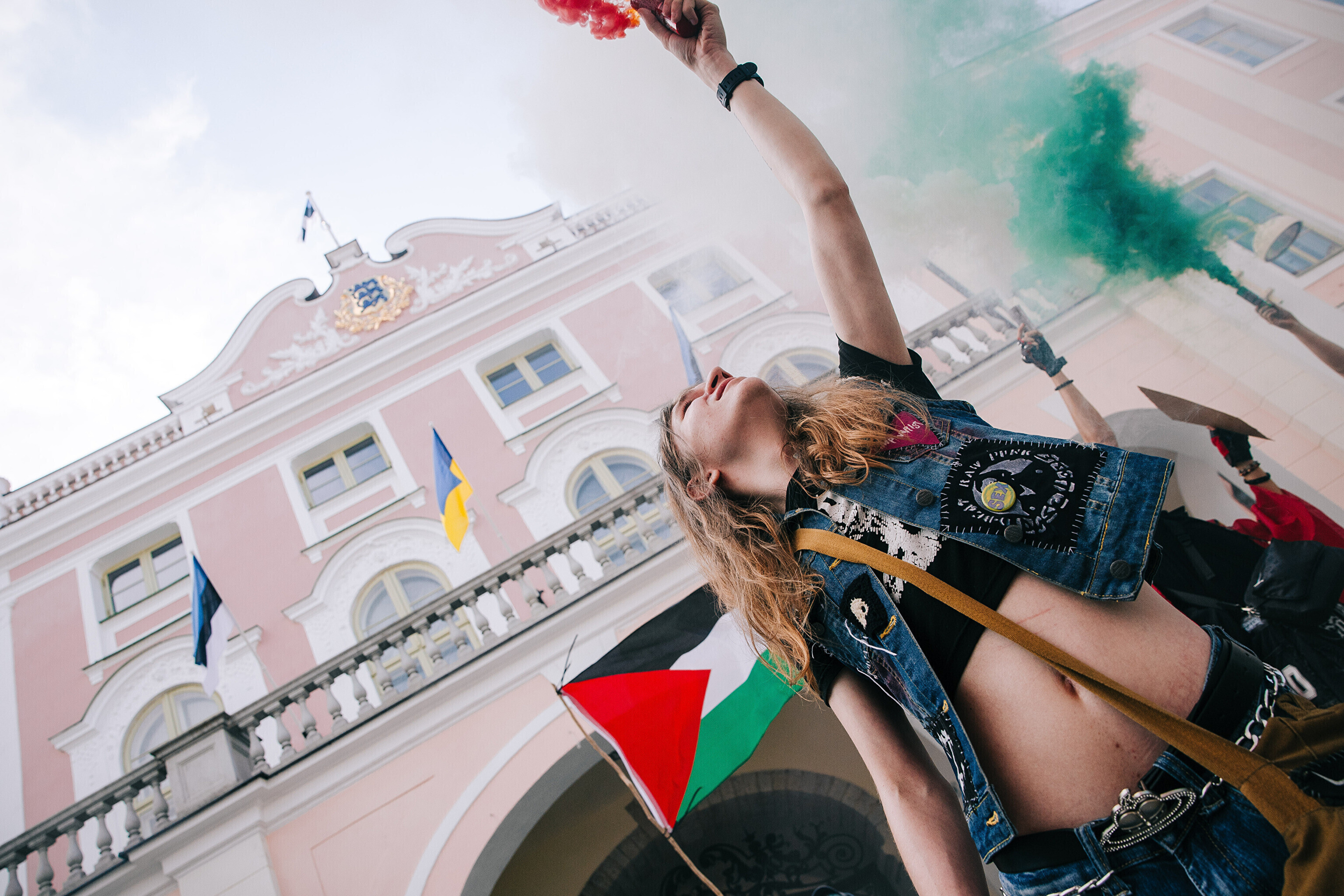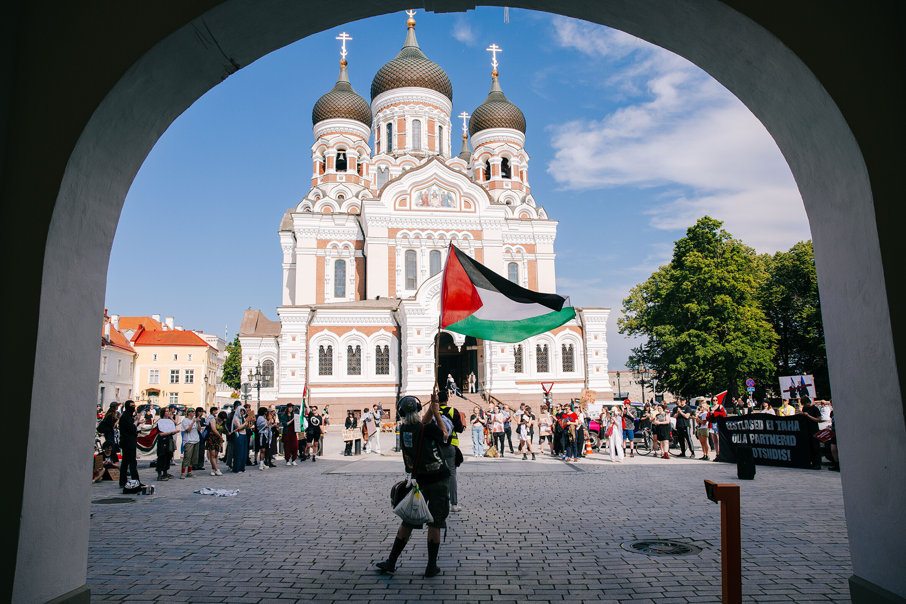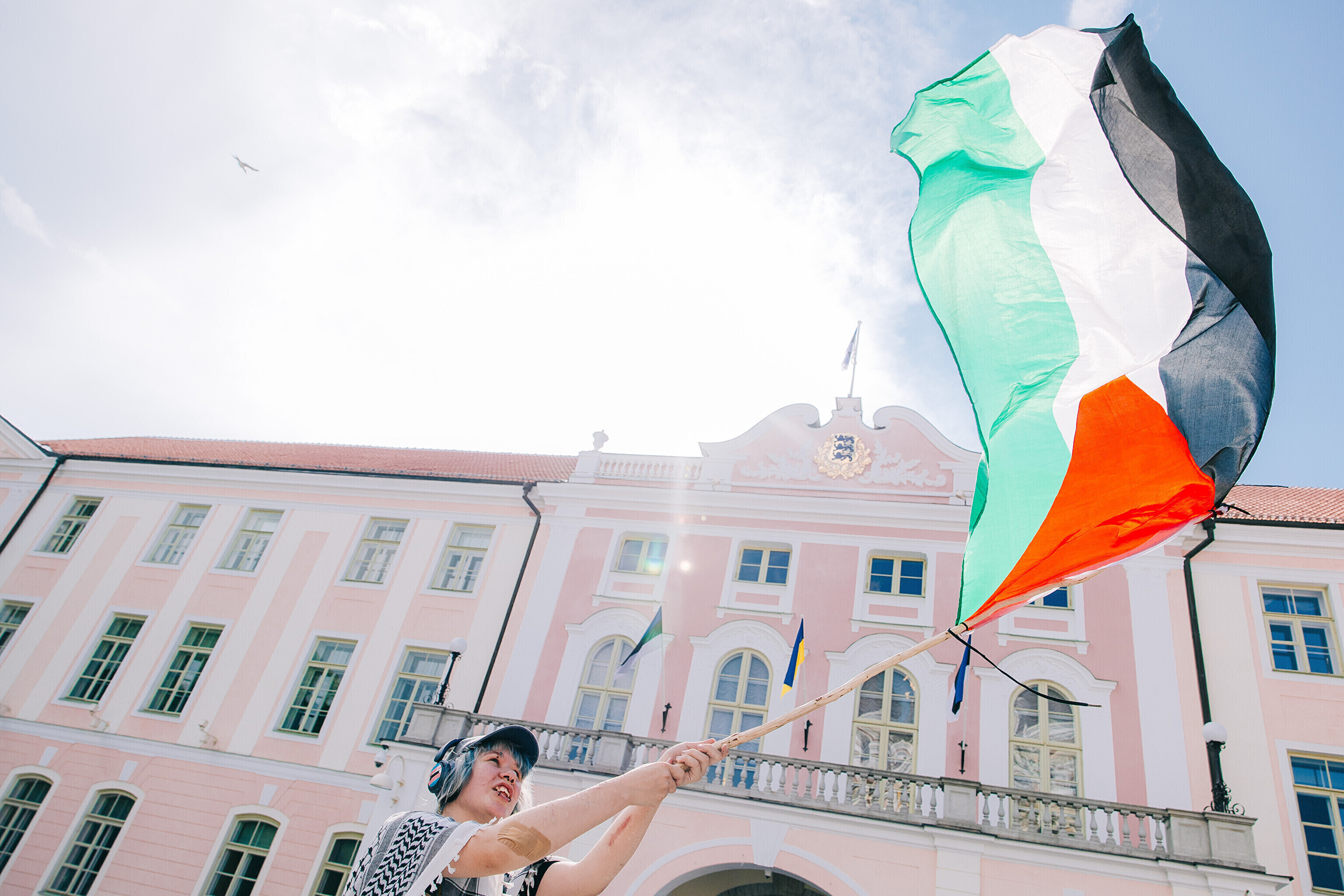 The demonstration was organized by activists from PALestonia, a movement supporting Palestine.
