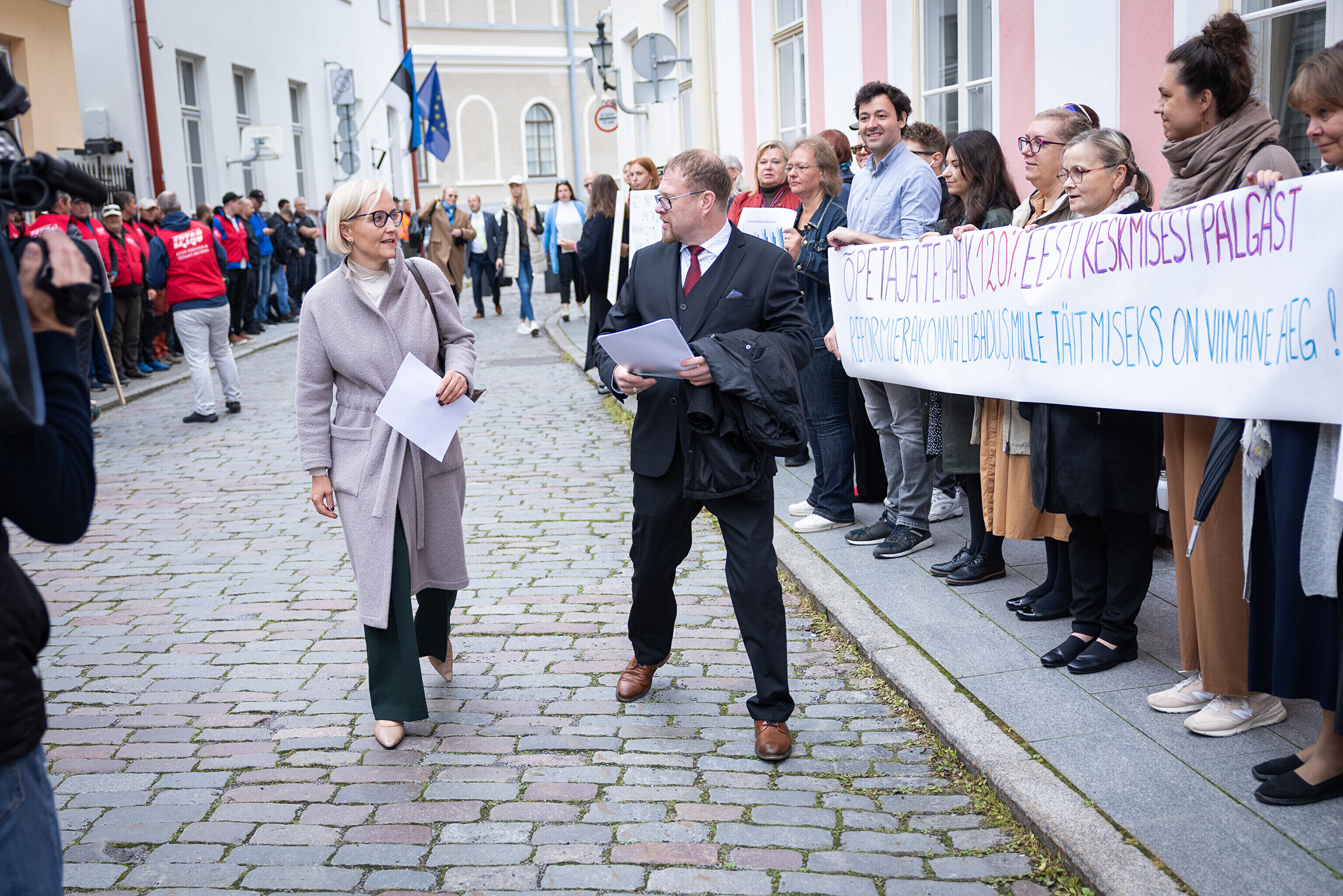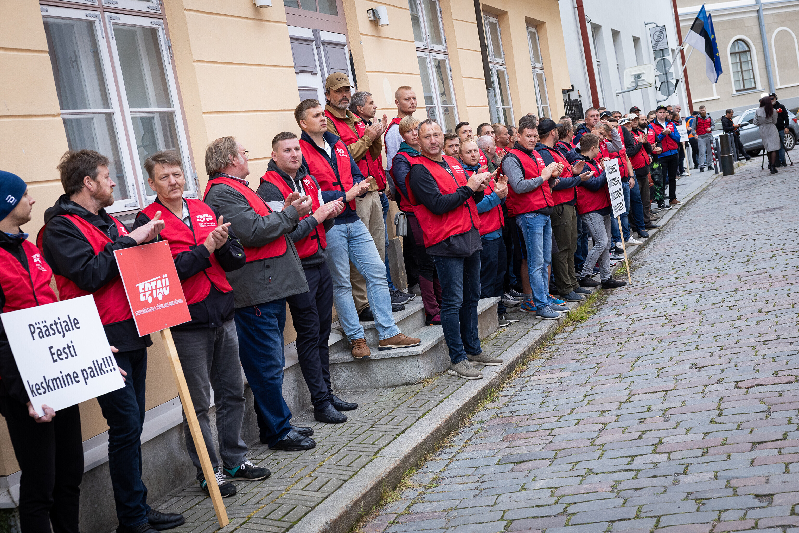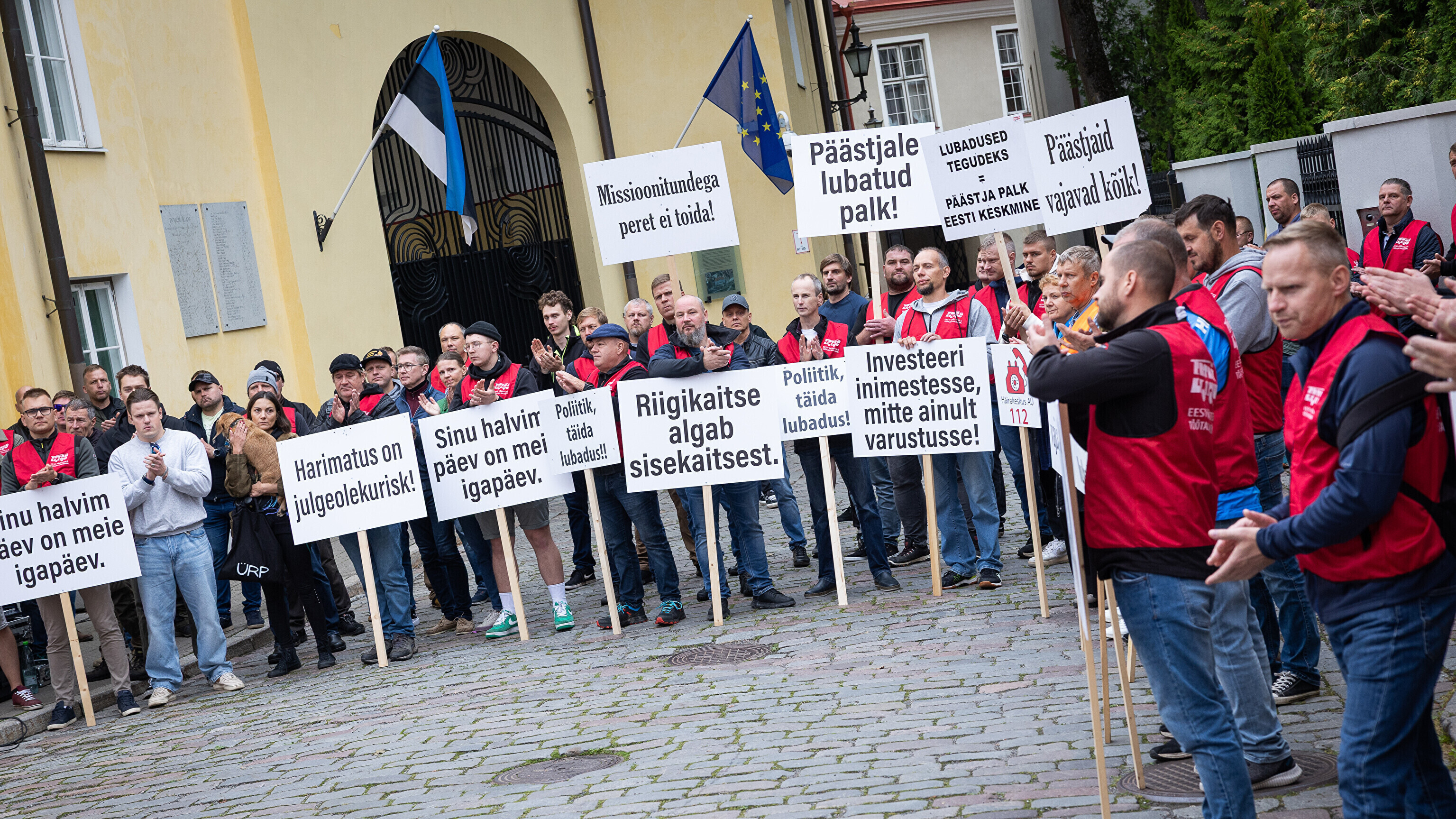Teachers and emergency services unions protested at Toompea in Tallinn on Tuesday, calling for higher wages as the government discusses next year's budget.