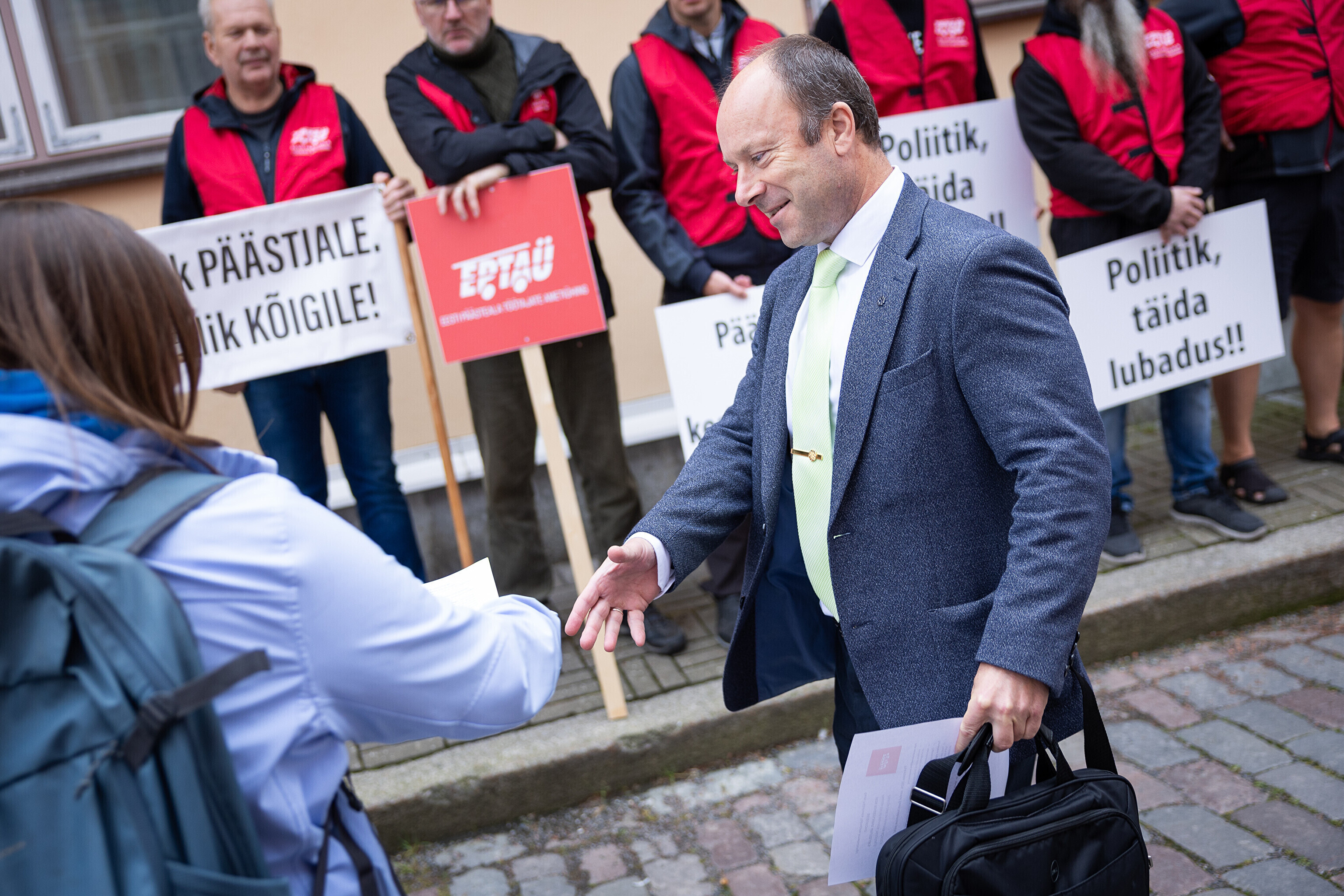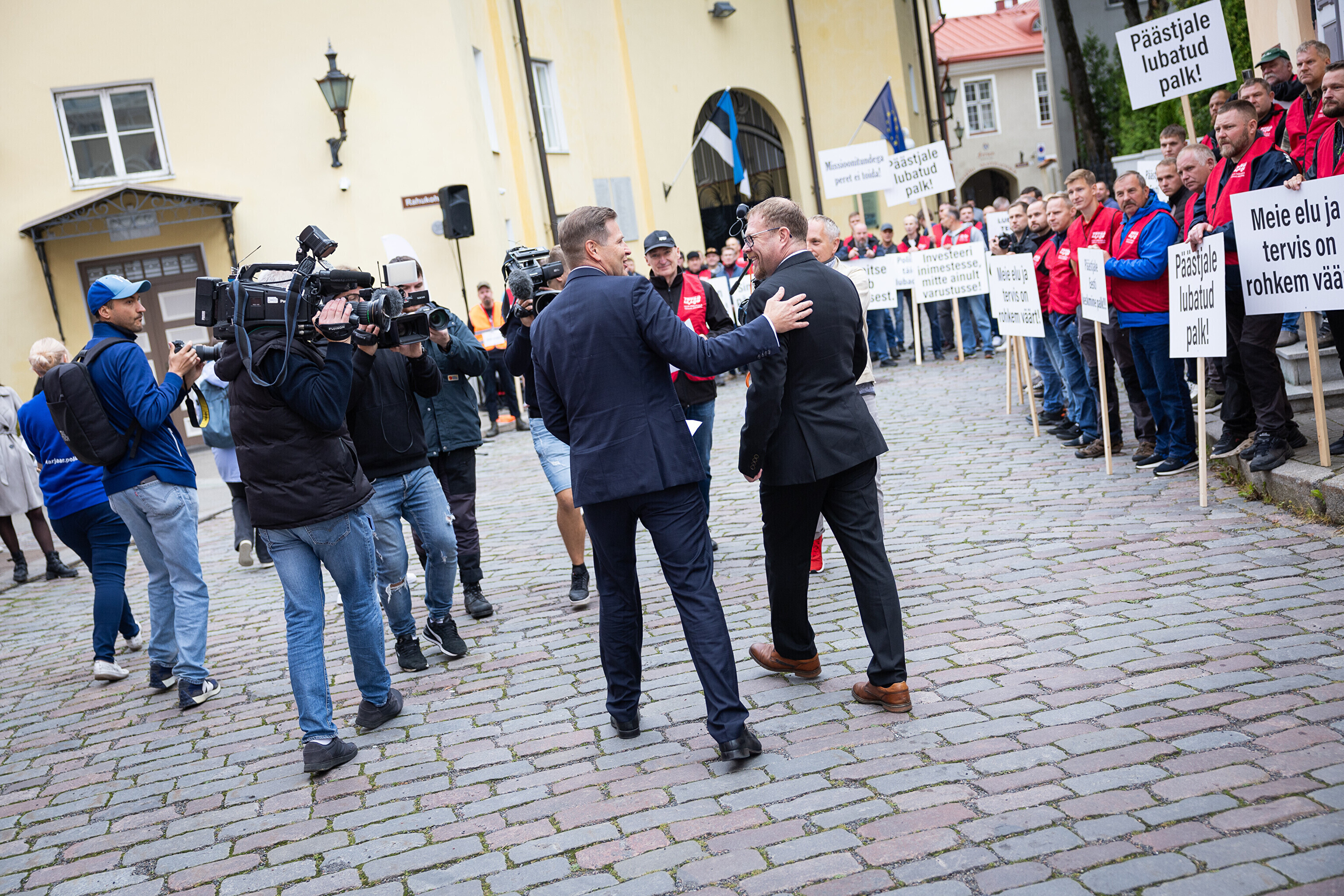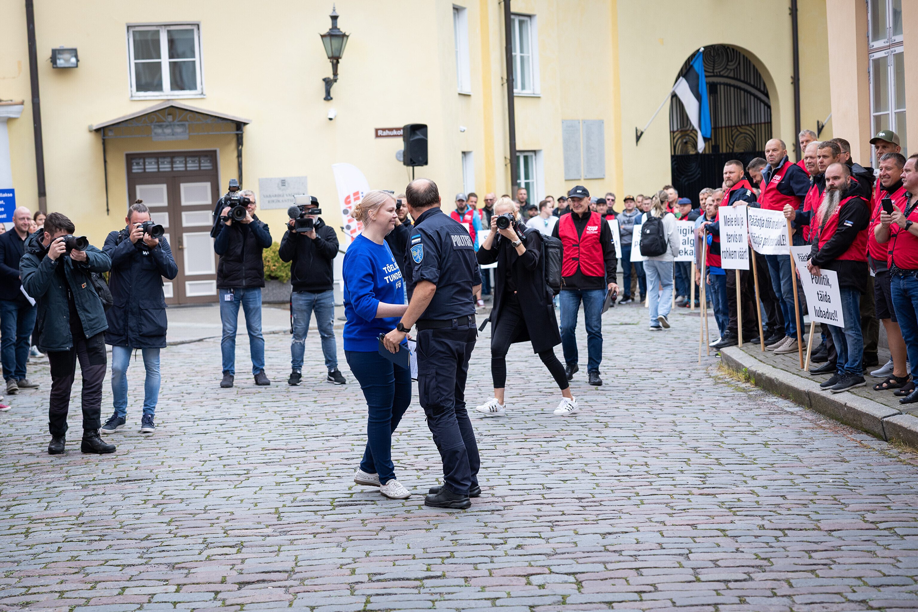 Teachers and emergency services unions protested at Toompea in Tallinn on Tuesday, calling for higher wages as the government discusses next year's budget.