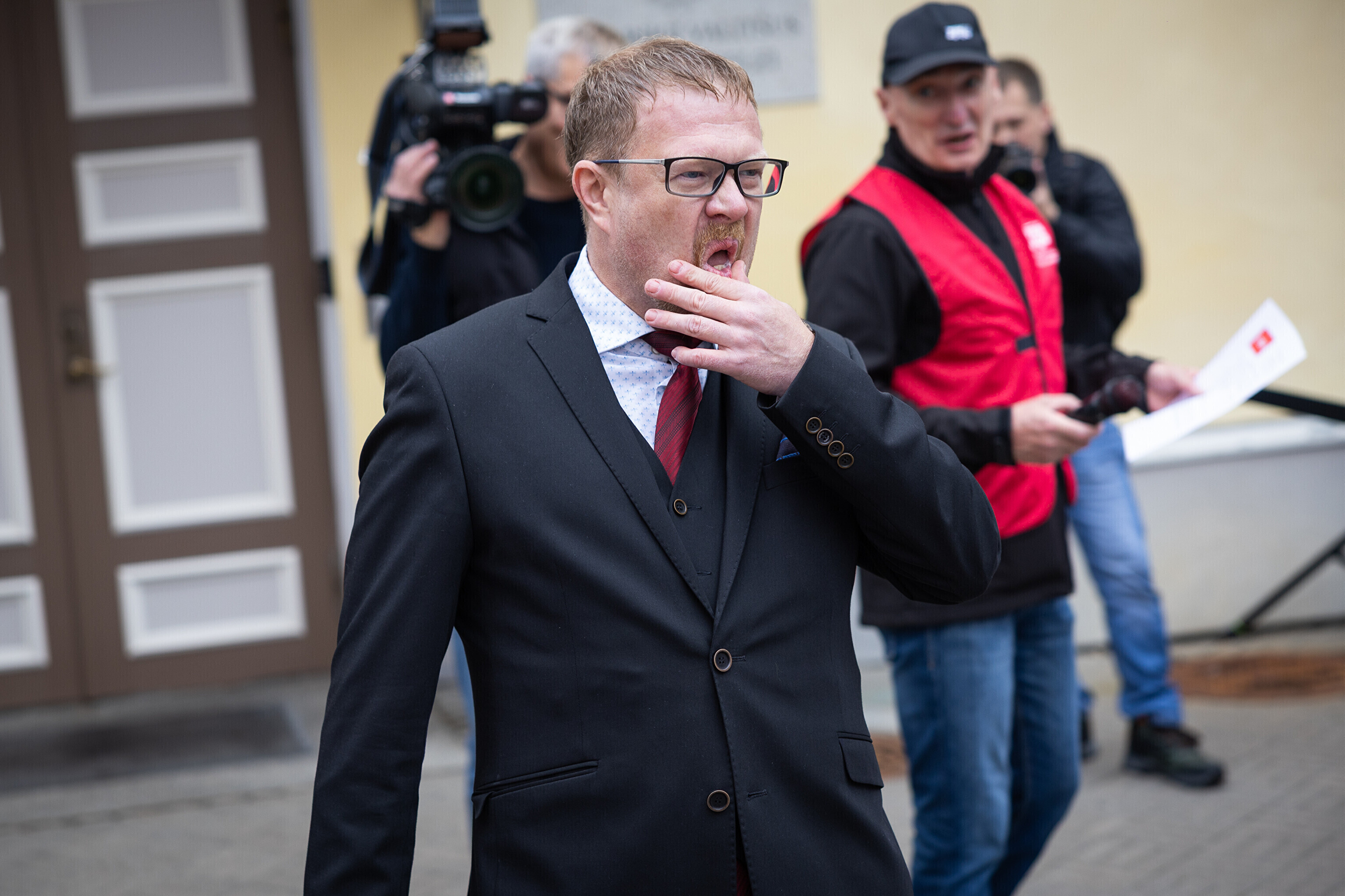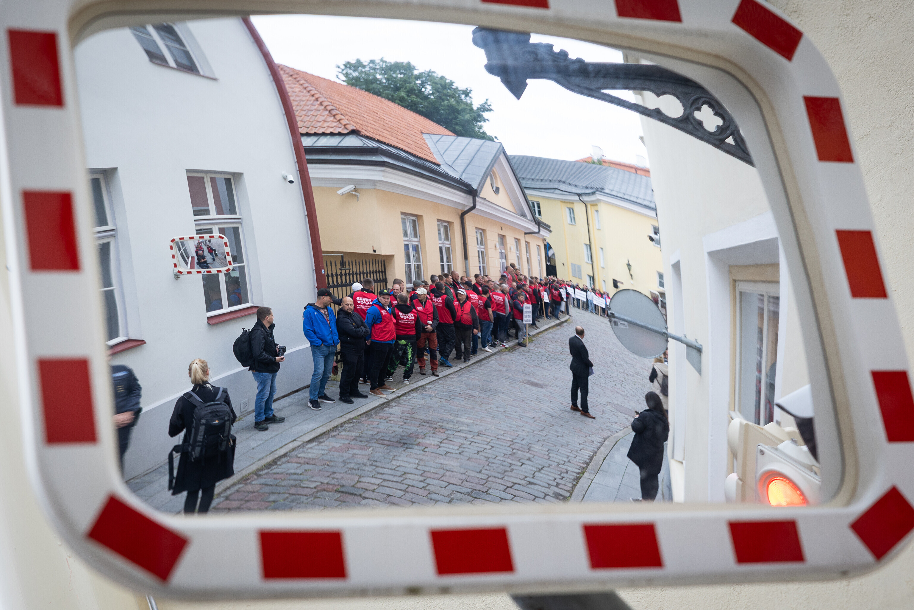 Protestors lined the street that leads to Stenbock House, where the government works, at 9 a.m. as ministers walked to work.