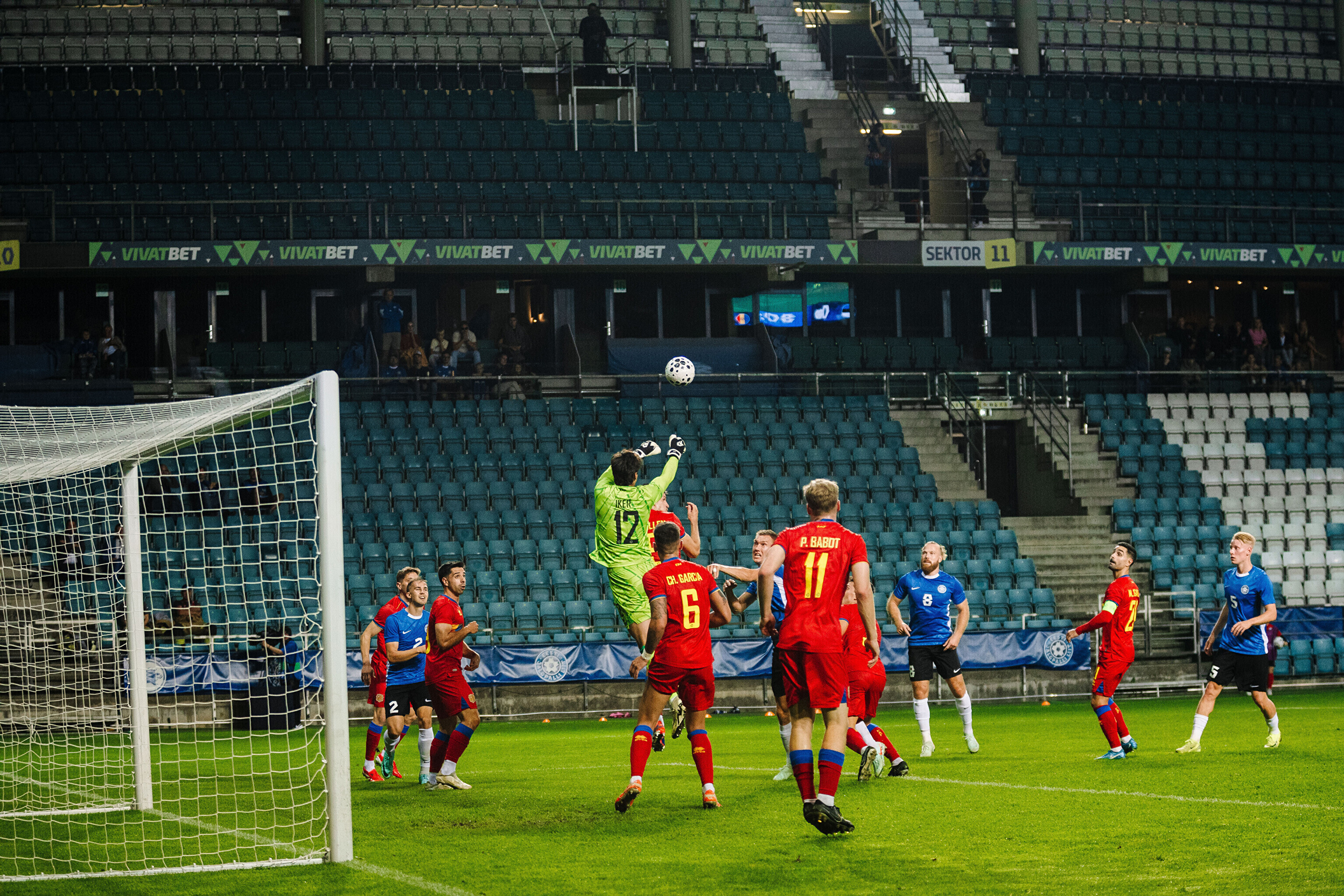 In the 41st minute, Andorra striker Guillaume Lopez got past the Estonian defenders and took a shot, but Estonia's 'keeper and captain Karl Hein stood firm.