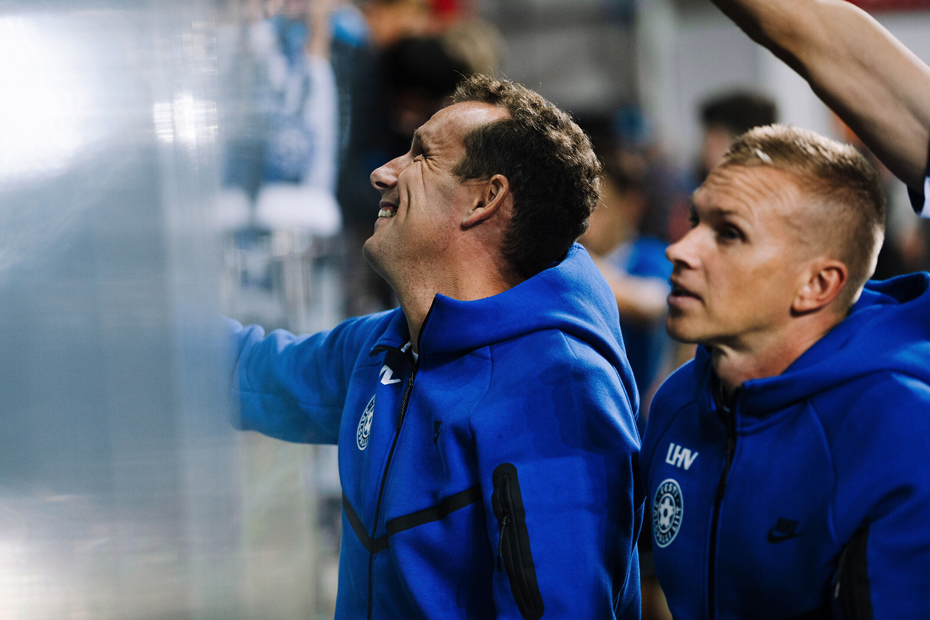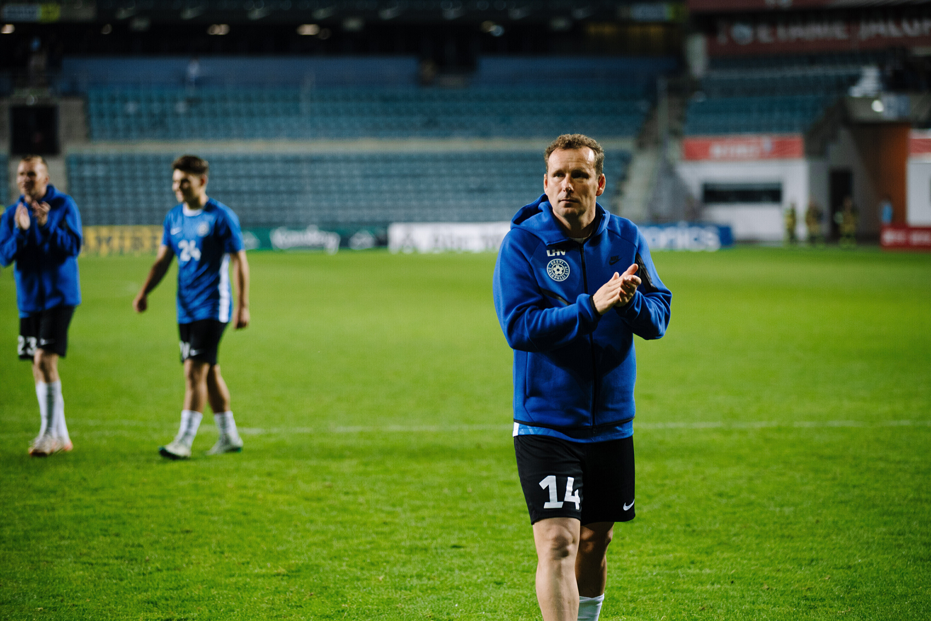 The other highlight of the first half was manager Jürgen Henn sending Edgar Tur and Mattias Käit onto the pitch, to substitute for the two players, Teniste and Vassiljev, being honored that evening. The pair left the field of play to rapturous applause.
