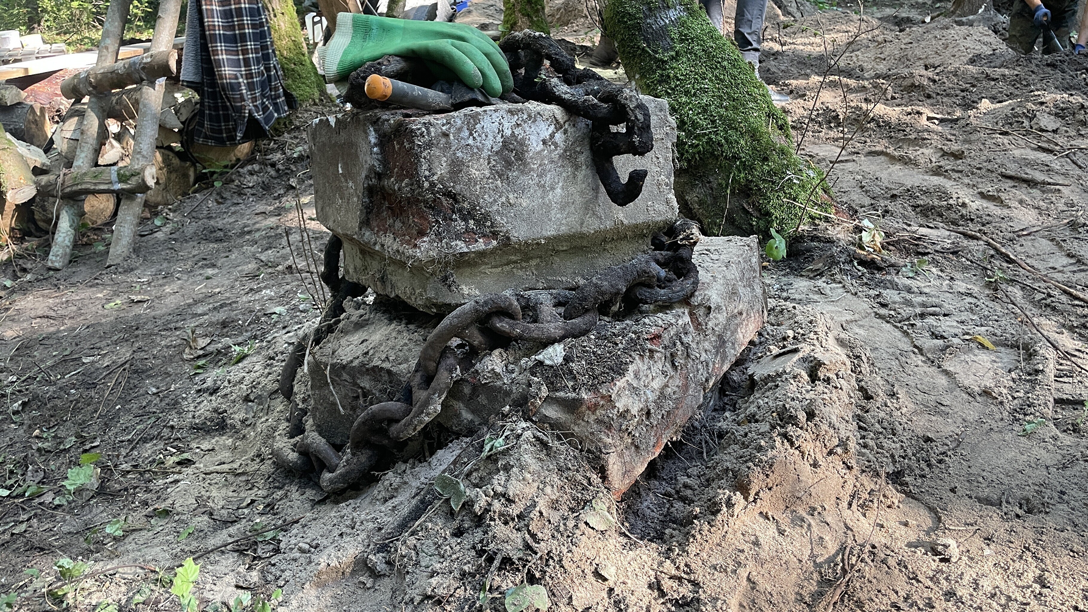 During the course of the work, archaeologists also found fragments of a pedestal, which may have supported a crucifix, and nearby found part of an anchor chain, which may have served as a fence, and other items such as a bottle were found in situ.
