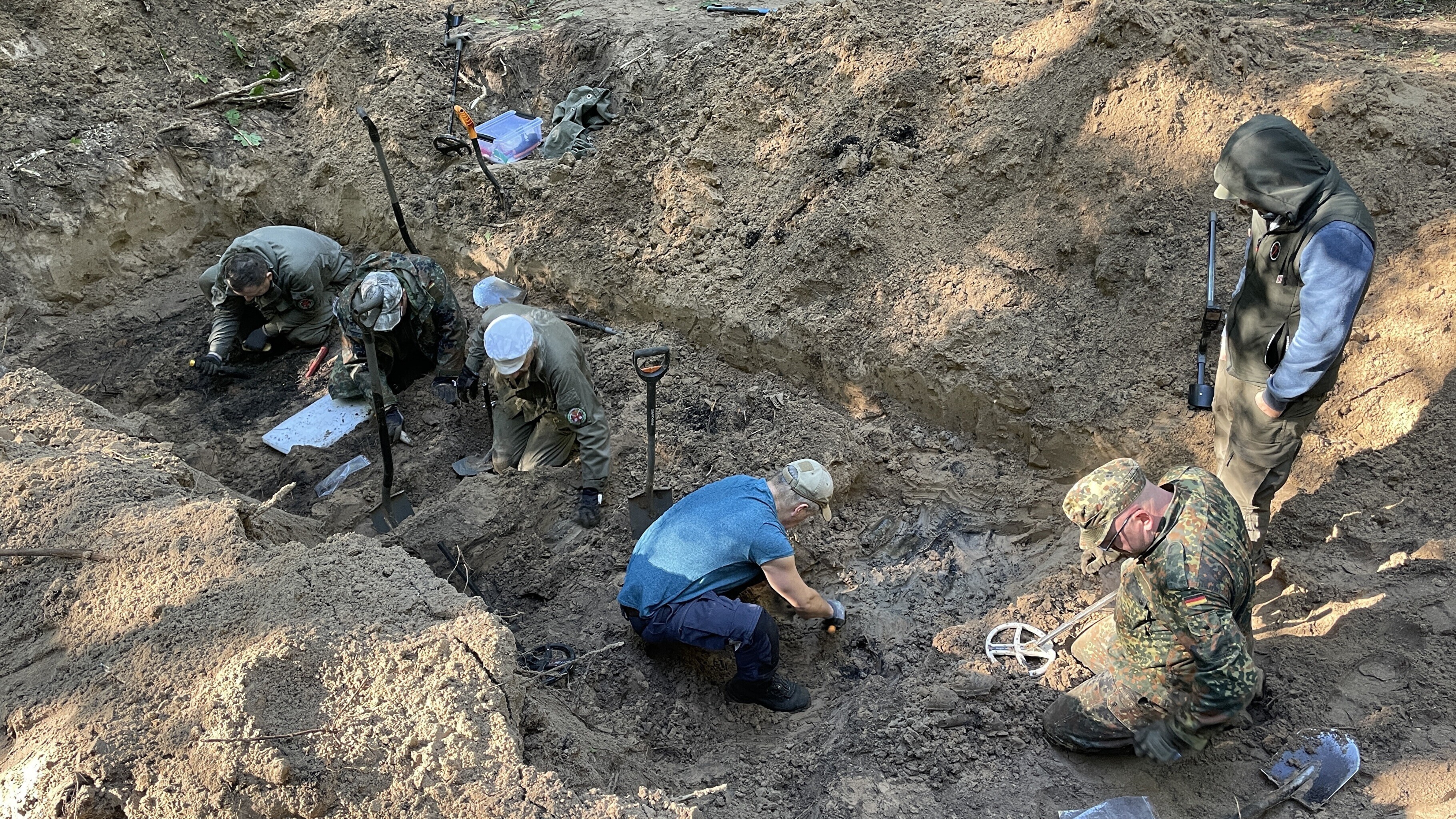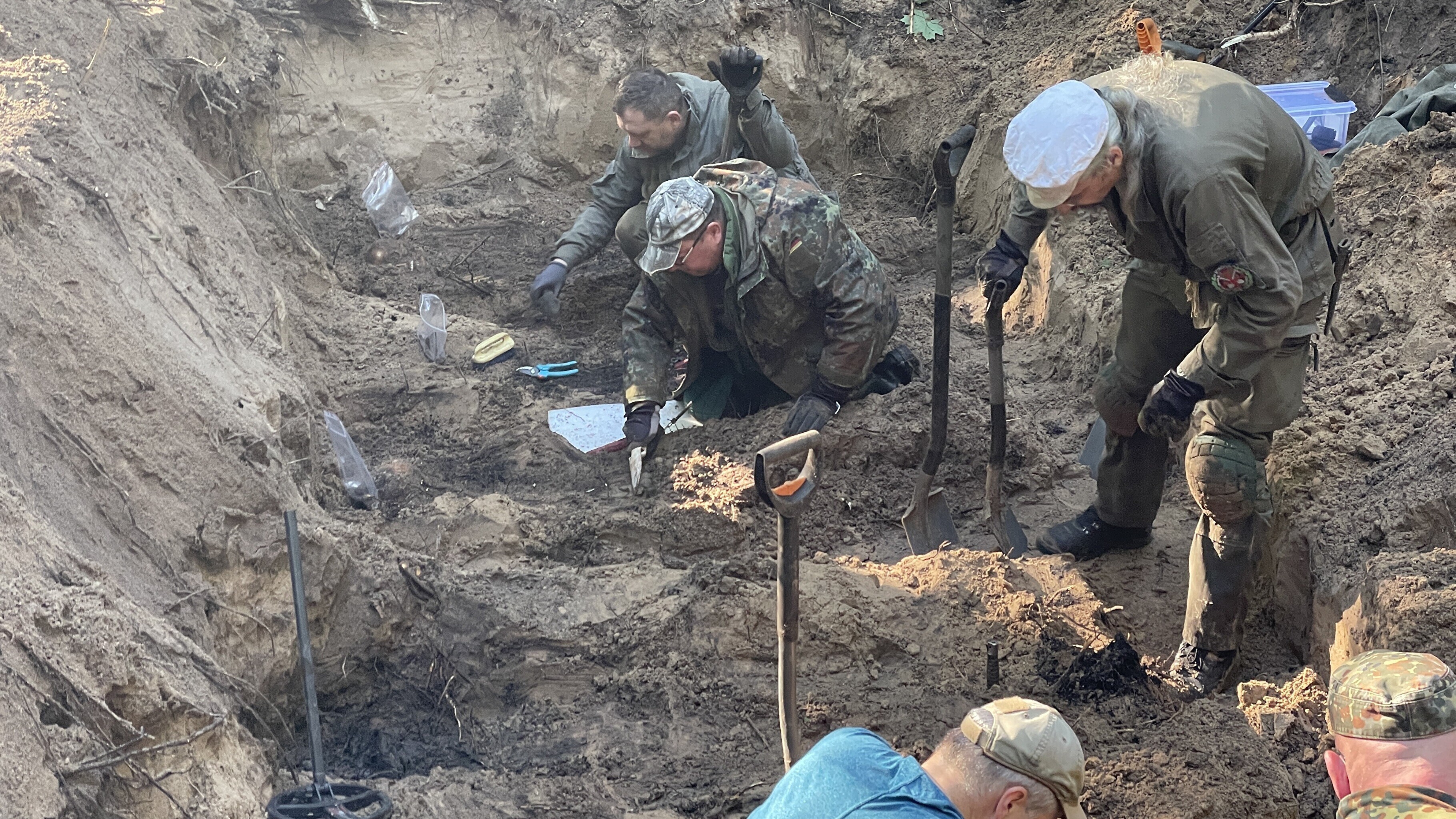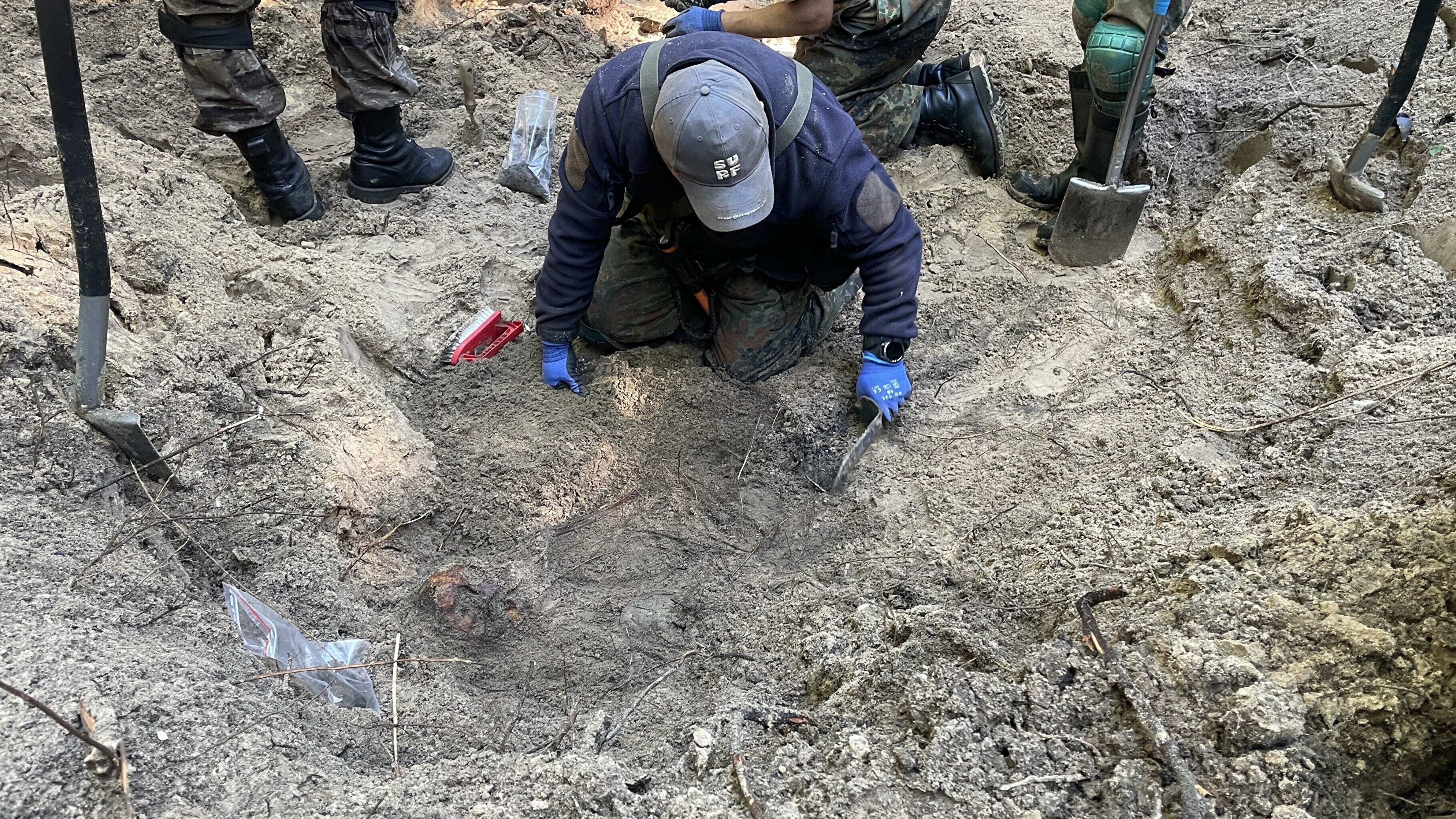 "The soil here is sandy, which makes it possible to thoroughly clean the remains and excavate the grave in great detail. The work is not yet completed; for this reason we cannot state the exact number of soldiers. Presumably, around 80 soldiers," Shutov said.