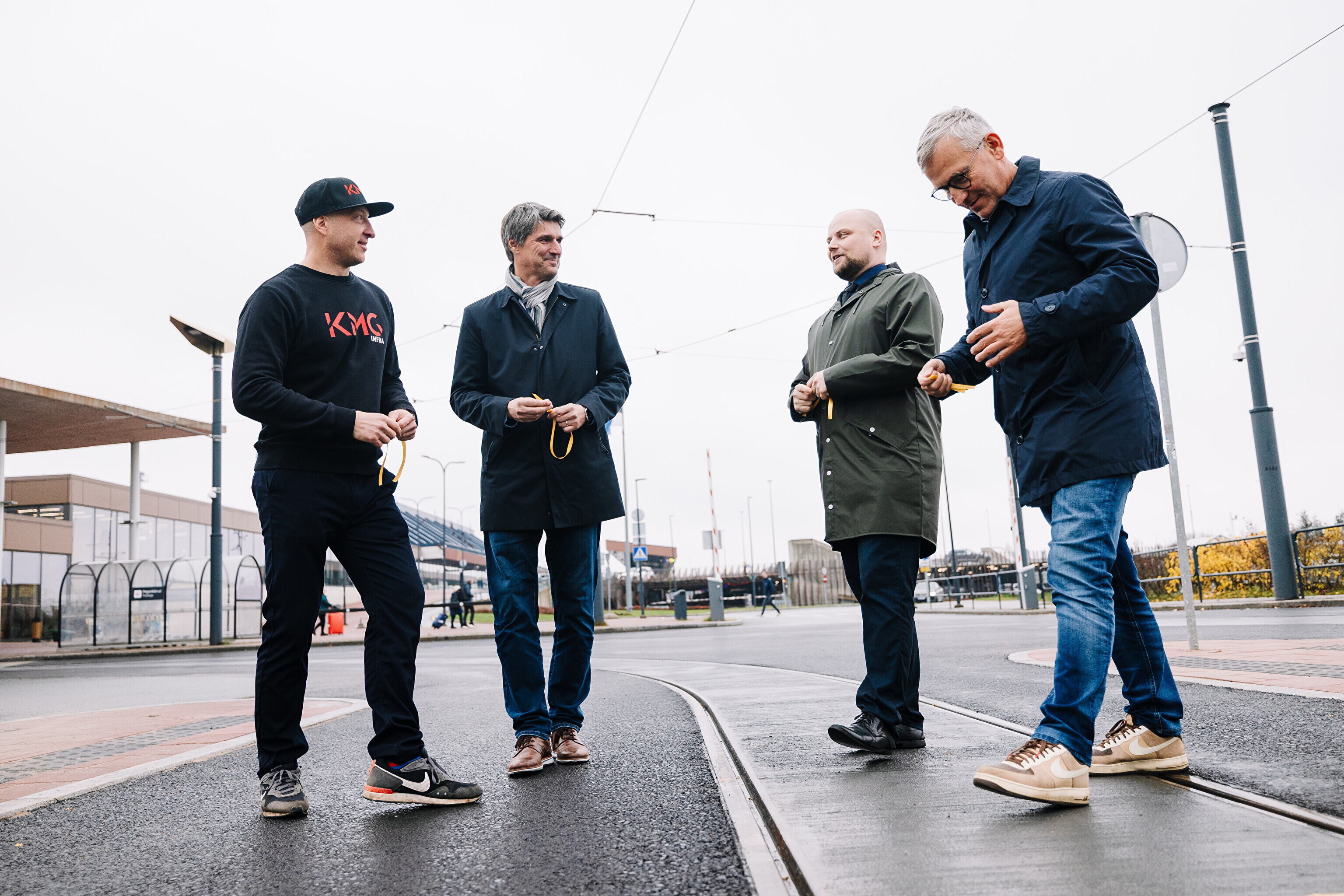 The newly completed tram branch is 110 meters long. Construction began on August 18 and was completed on October 31, 2025. During the works, tour buses as well as city and county bus lines were rerouted to ensure smooth traffic flow. Design work was carried out by Road-Expert OÜ, with construction by KMG Infra OÜ.