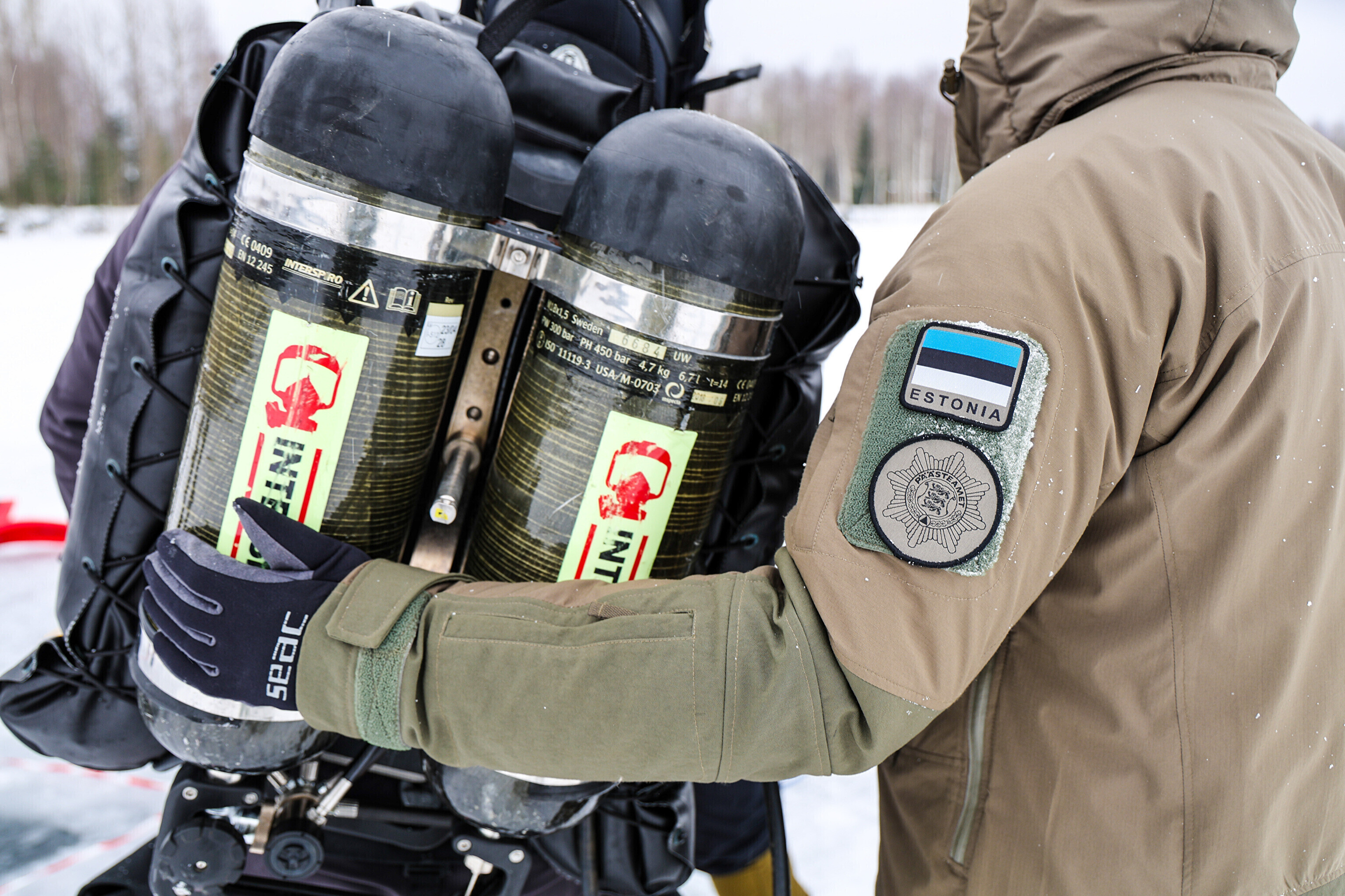 "Searching for or moving explosive devices on the seabed is part of our regular duties, which we practiced this week in harsh freezing temperatures and under a thick layer of ice," said Lt. Indrek Paju, commander of the Estonian Navy's diving group.