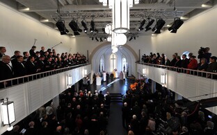 Prime Minister Jüri Ratas (Center) attended an event in St. John's Church of St. Petersburg to mark the passing of 100 years since a demonstration of Estonians calling for autonomy, which he said paved the way to a free Estonia.