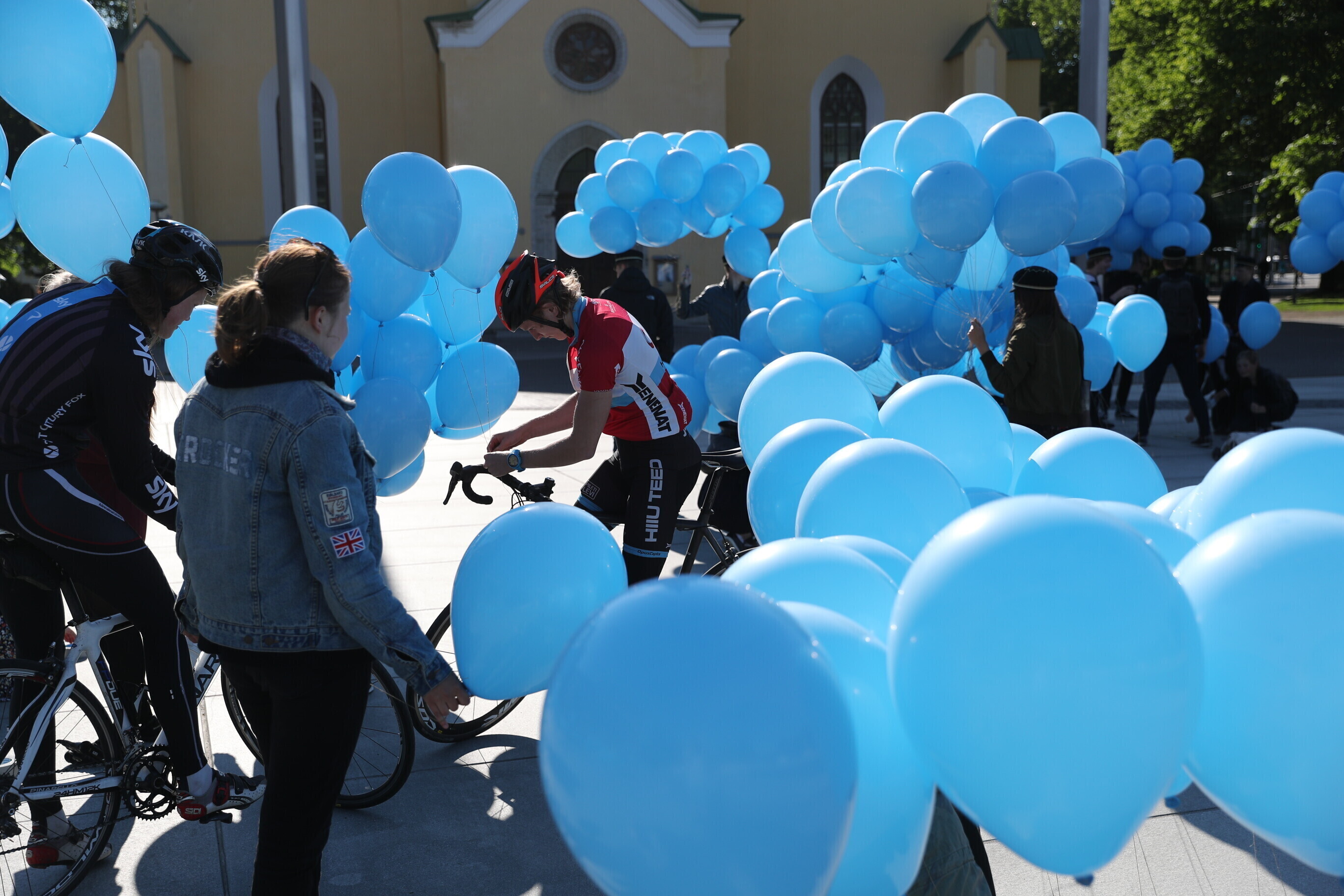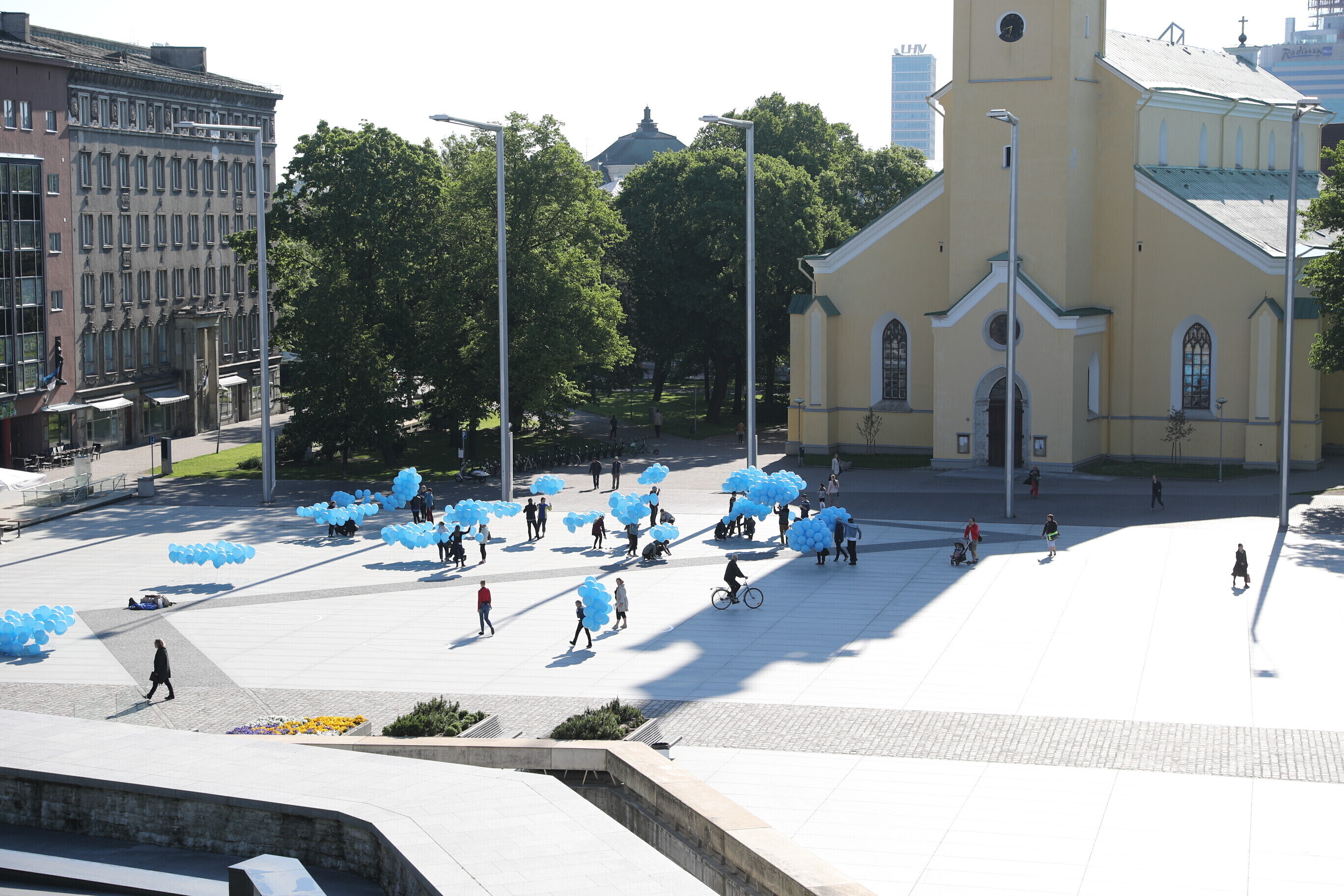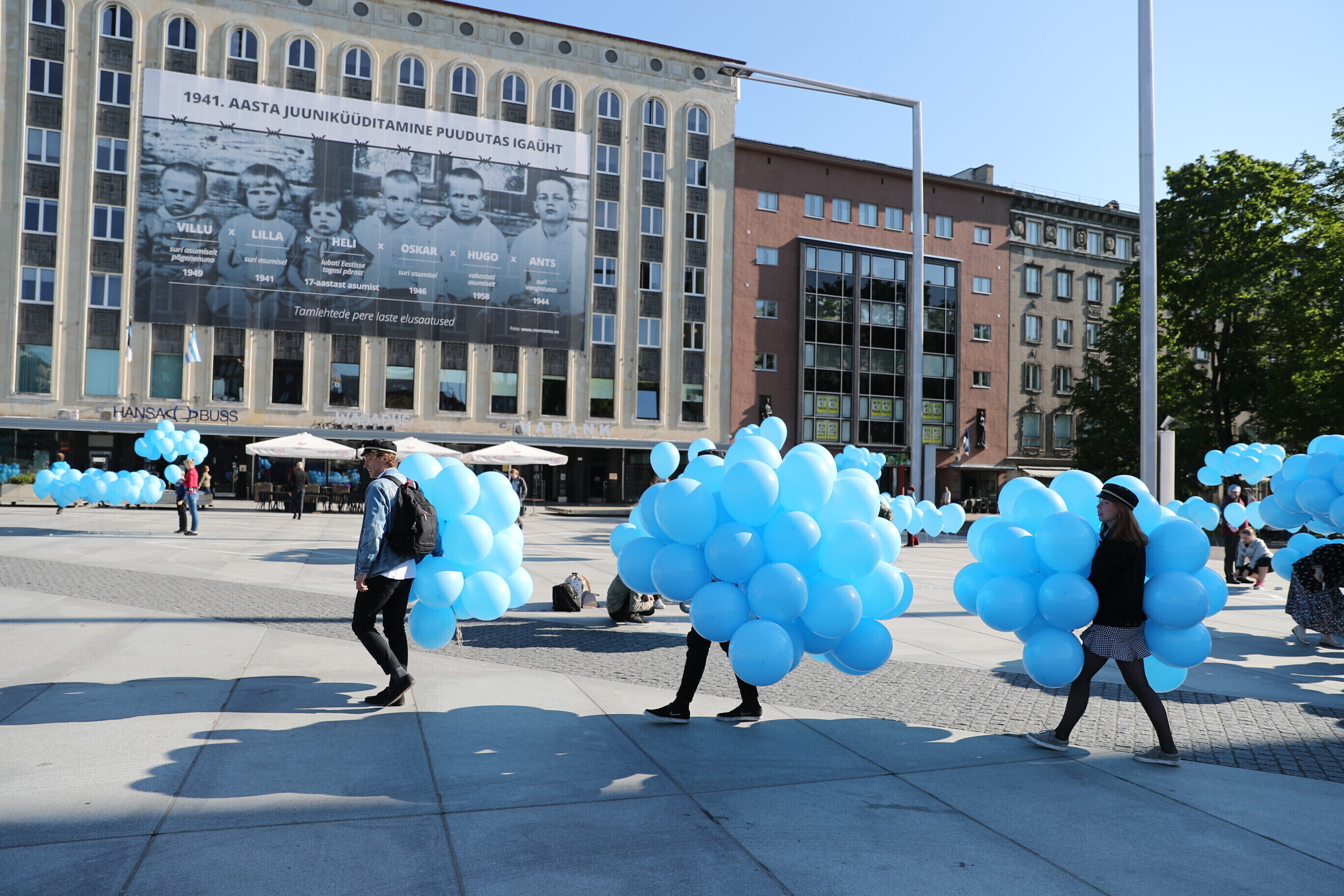 In Tallinn's Freedom Square, a memorial service was held at the foot of the War of Independence Victory Column at midday on Wednesday, ahead of which the square was filled with thousands of light blue balloons symbolizing tears.