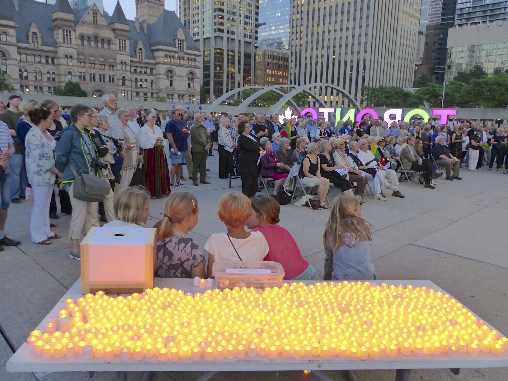 On Tuesday evening, over 500 Canadians, including members of its Estonian, Latvian, Lithuanian, Ukrainian, Rusian and Polish communities, attended a memorial event and candle-lighting in Toronto's Nathan Phillips Square in the heart of downtown Toronto, according to a Baltic Federation of Canada press release.
